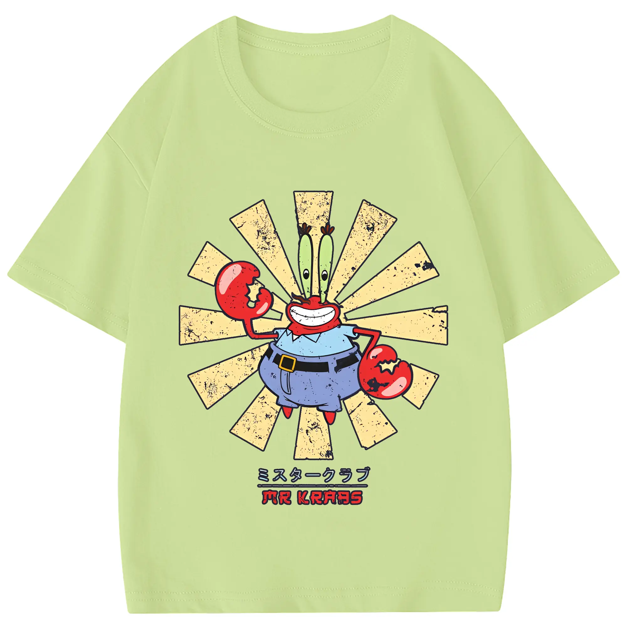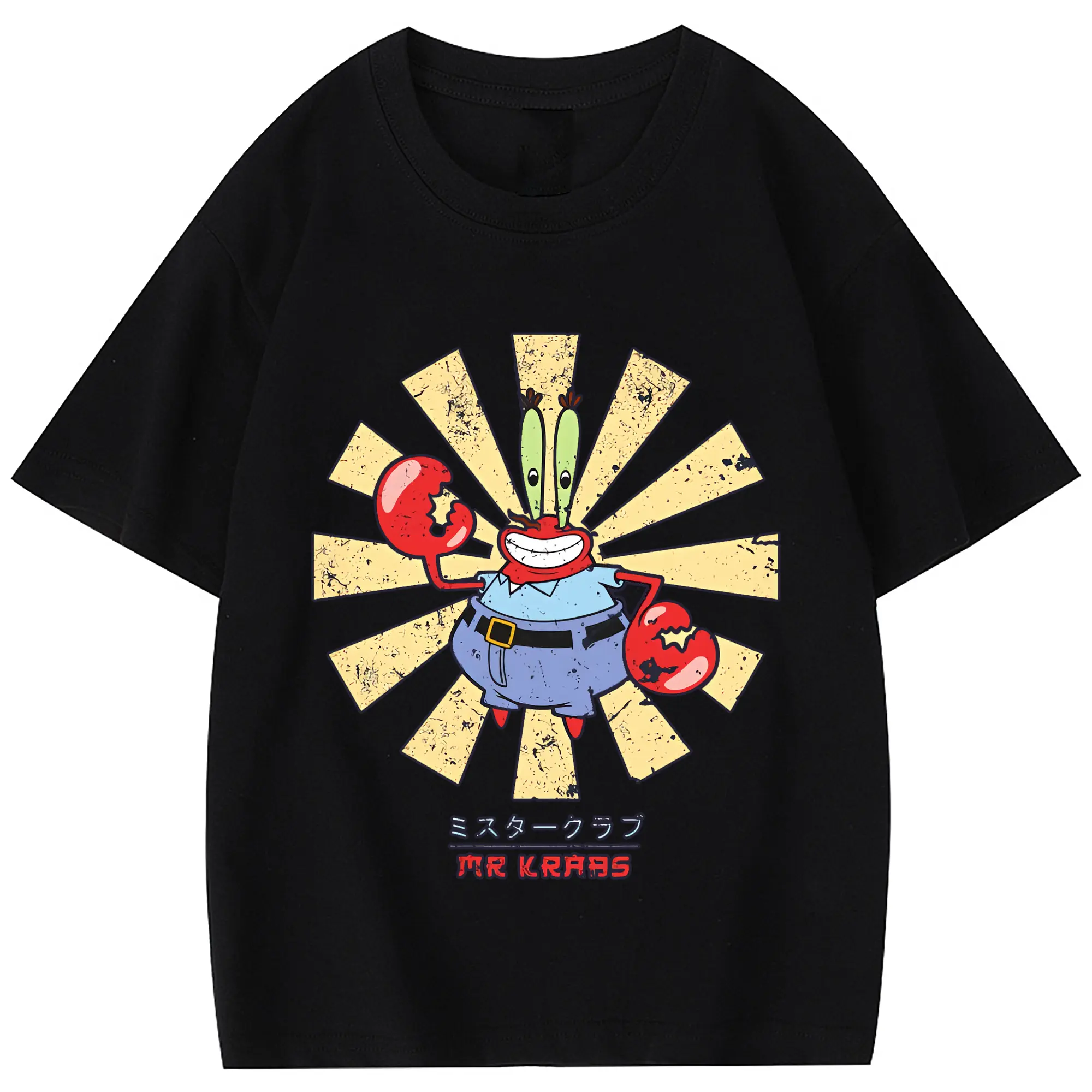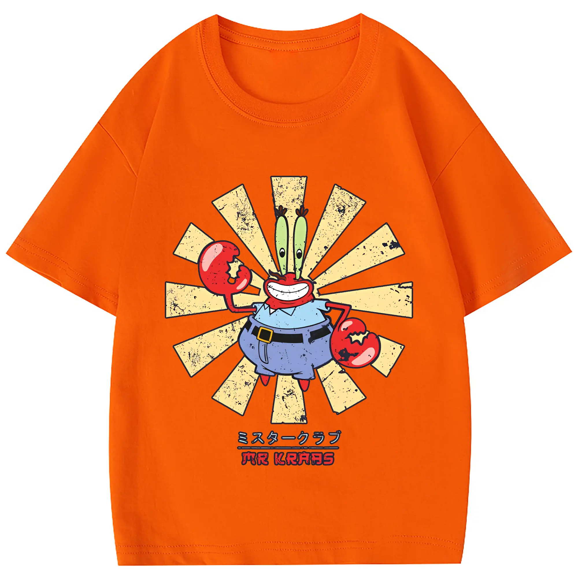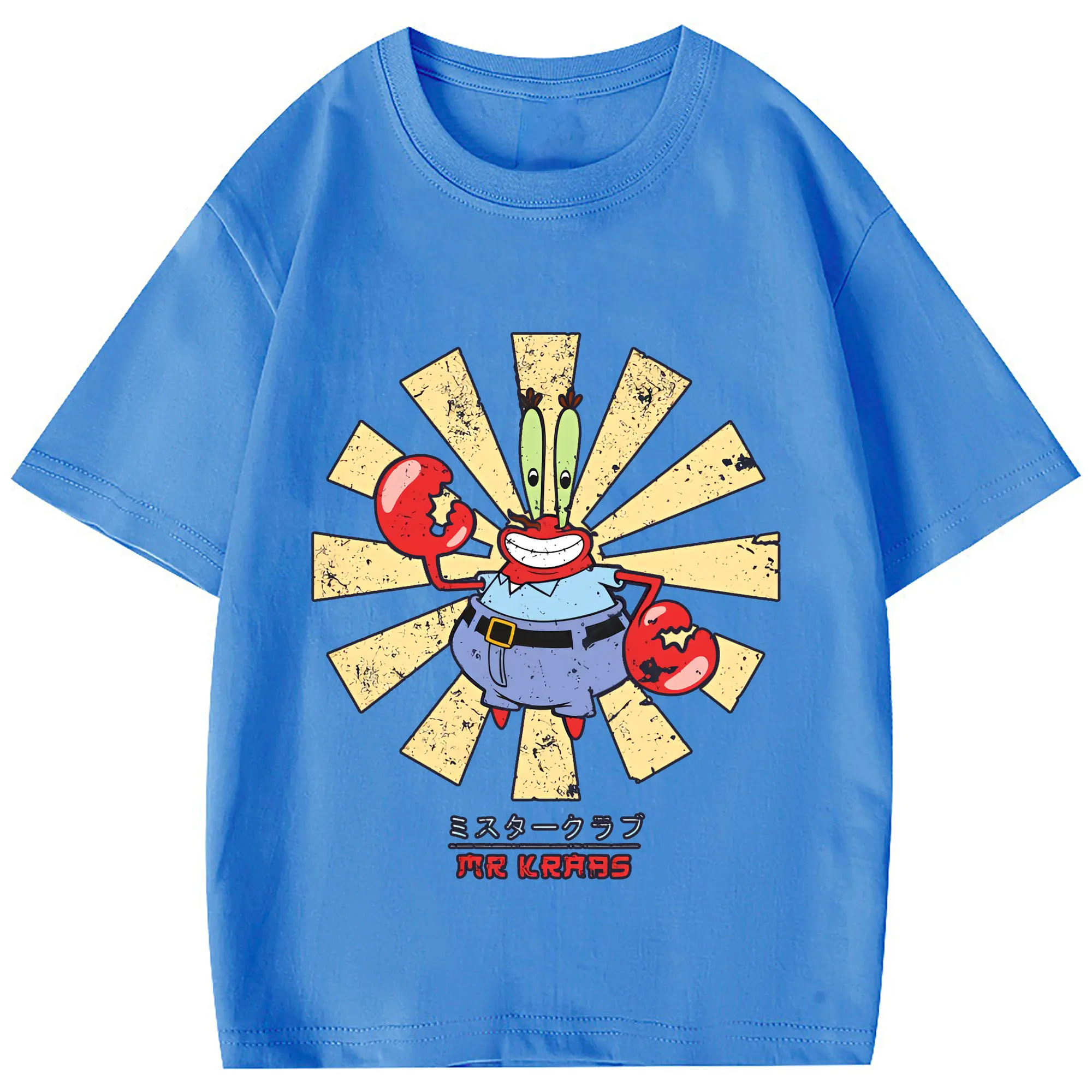 スポンジボブ グッズ ミスター・クラブ - 綿100% ヴィンテージ風 半袖Tシャツ ・ フロントプリント ・ 柔らか肌触り ・ 通気性 快適 ・ スポーツ カジュアル 外出用
