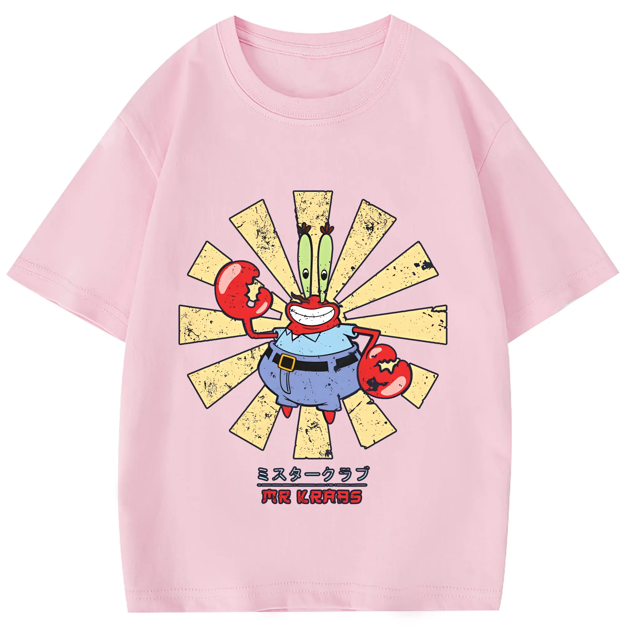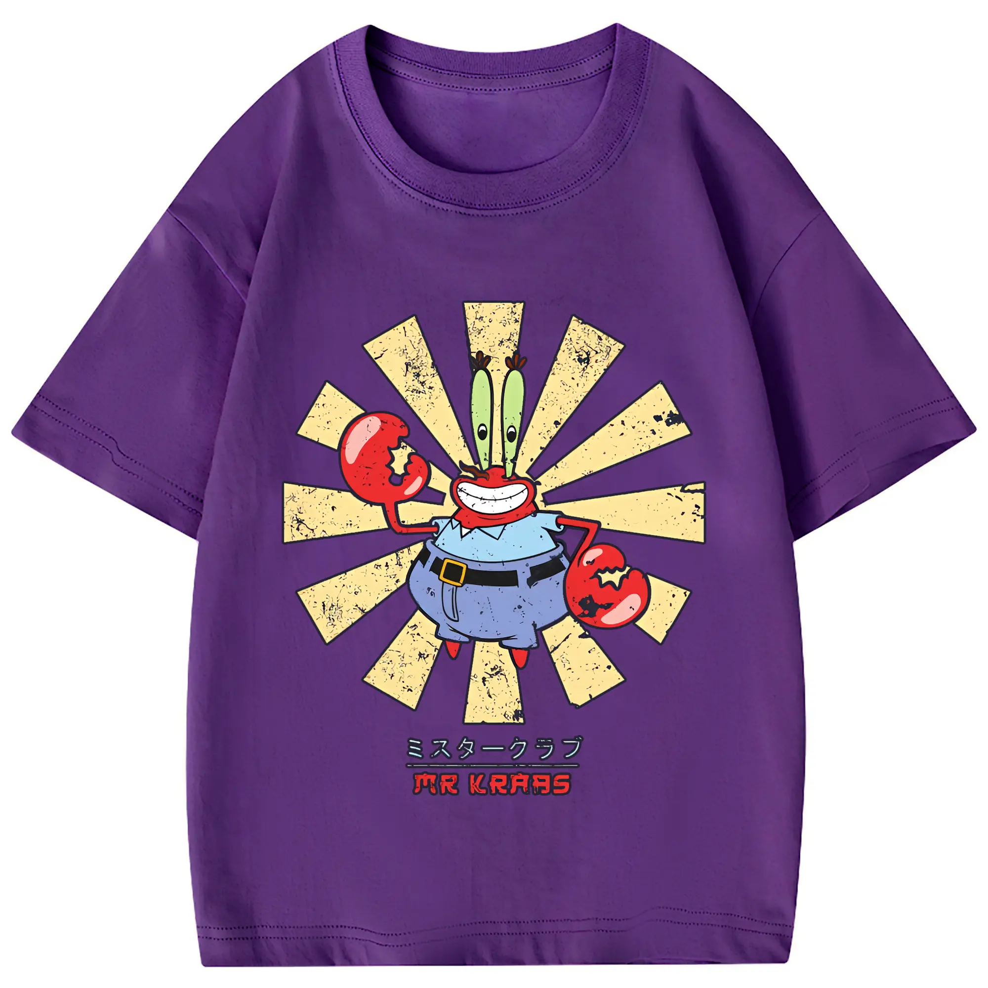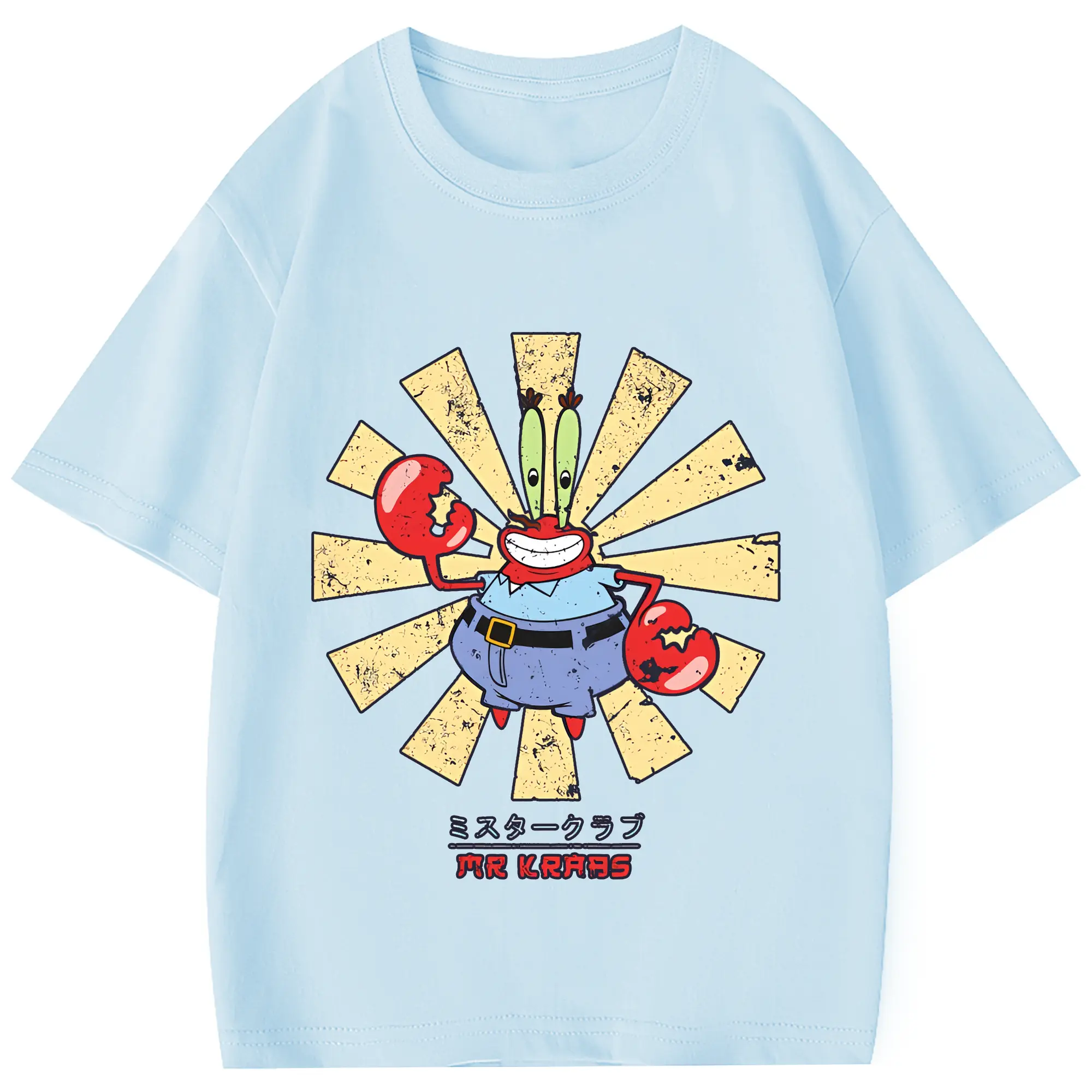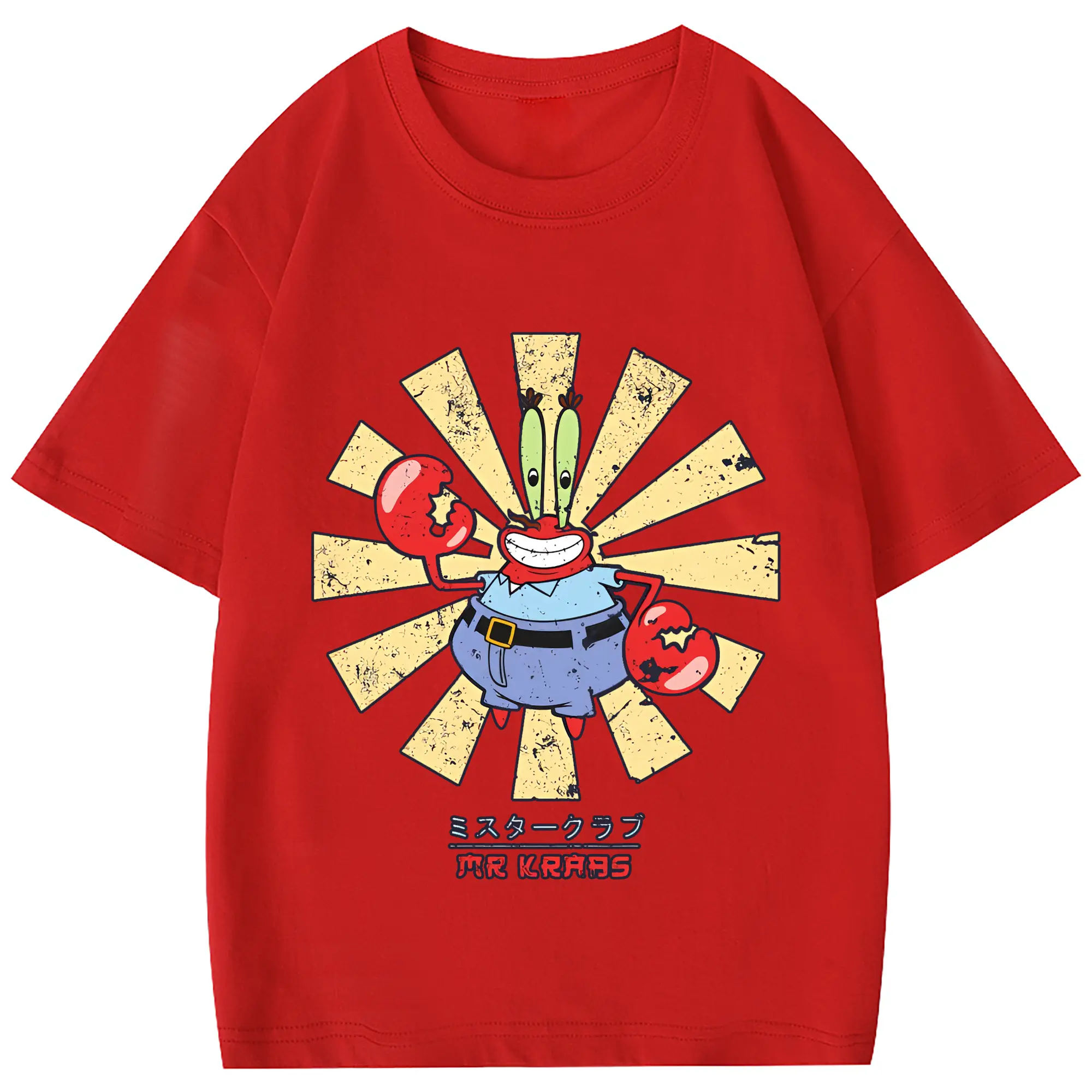 スポンジボブ グッズ ミスター・クラブ - 綿100% ヴィンテージ風 半袖Tシャツ ・ フロントプリント ・ 柔らか肌触り ・ 通気性 快適 ・ スポーツ カジュアル 外出用