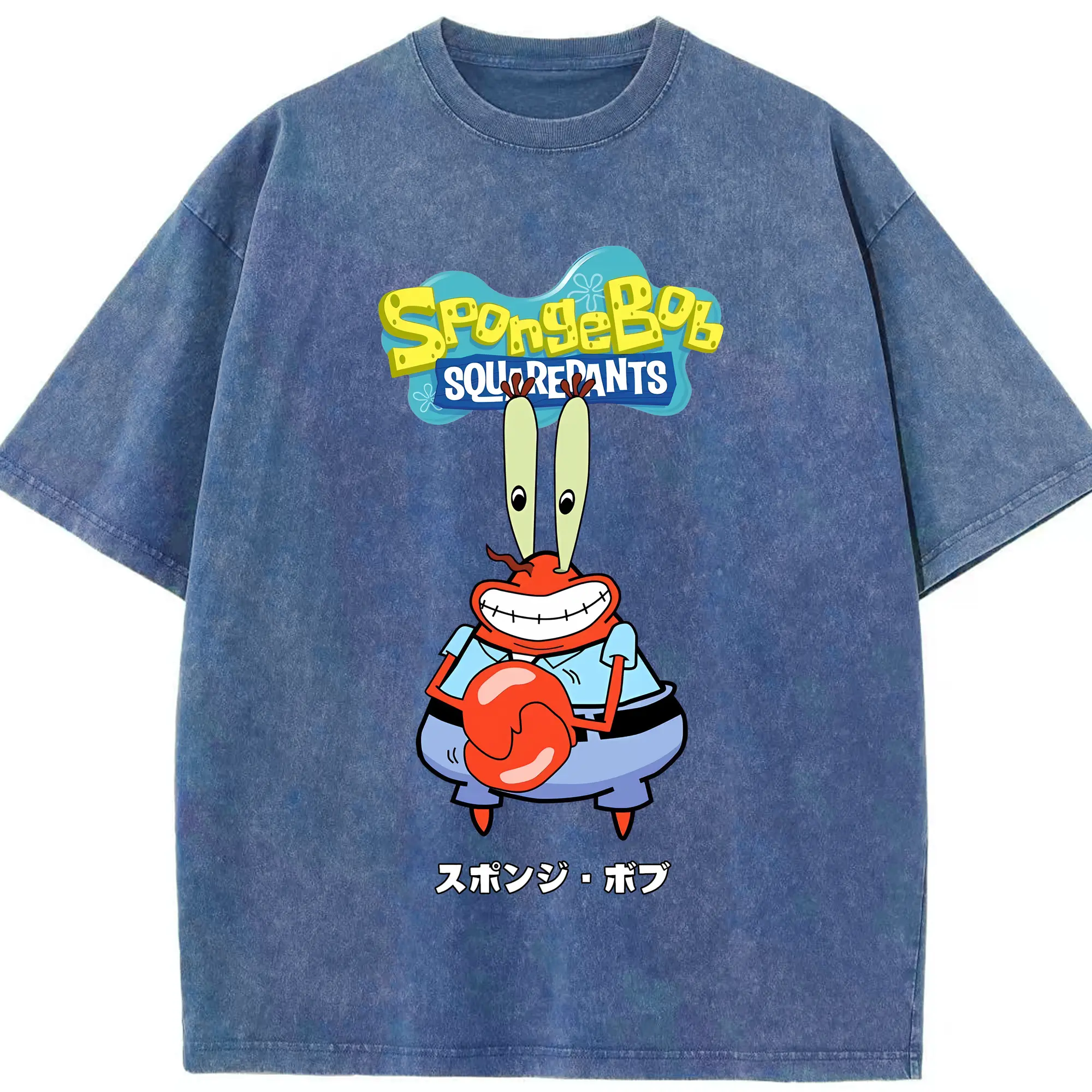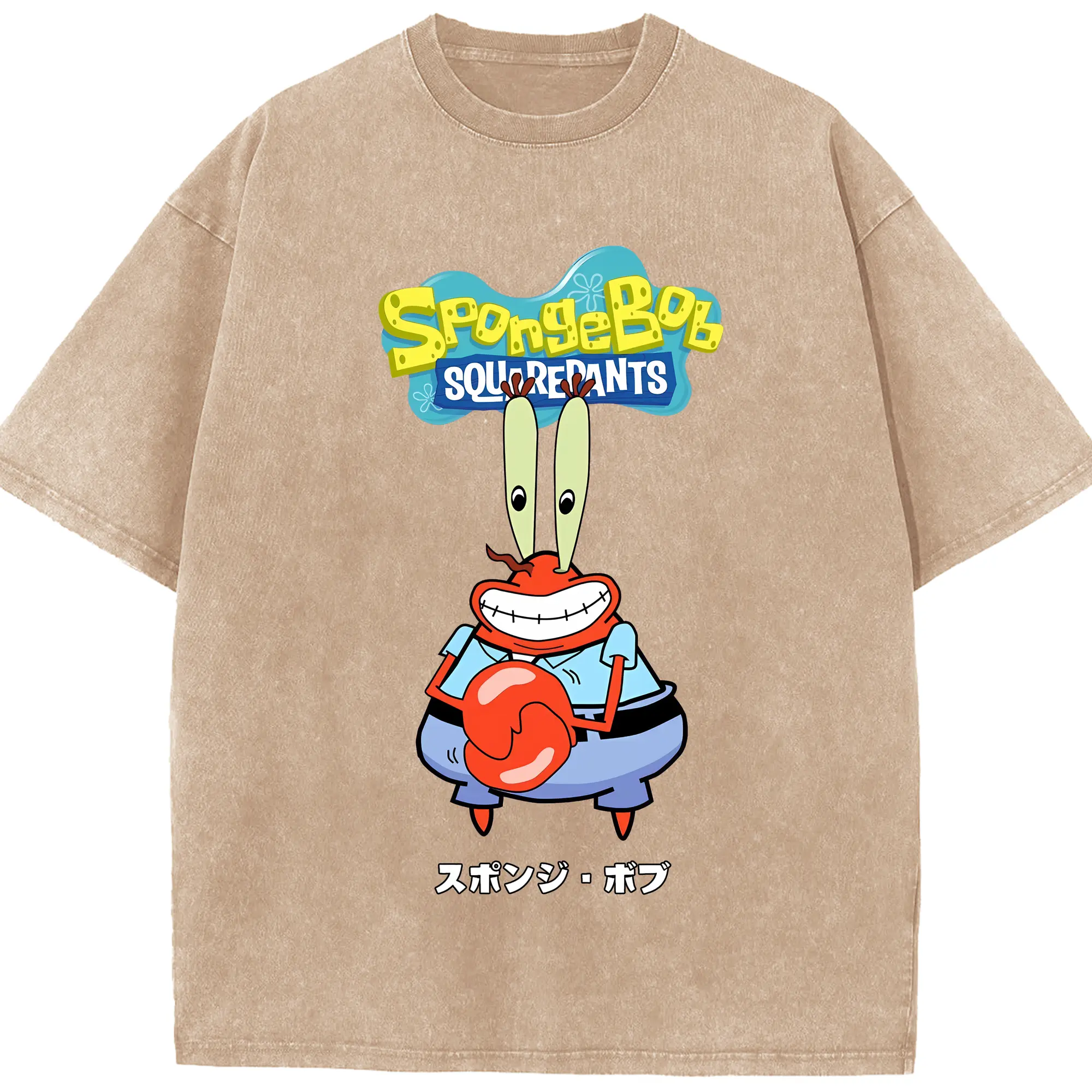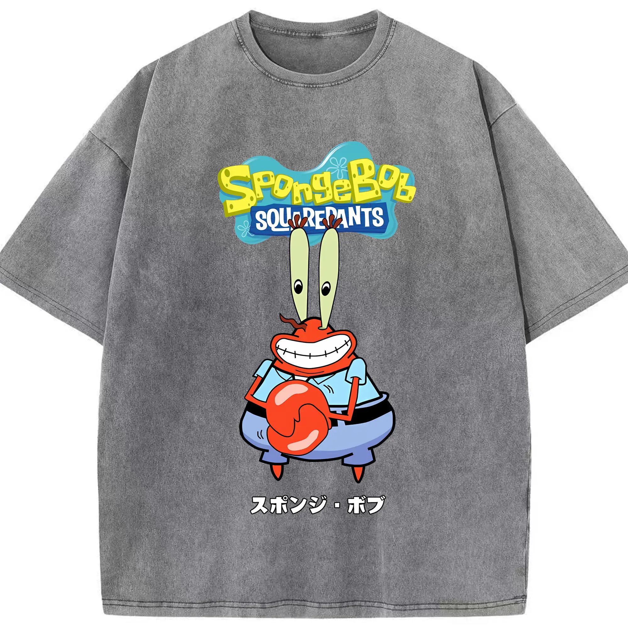 スポンジボブ グッズ ミスター・クラブ - 綿100% ヴィンテージ風 半袖Tシャツ ・ 背面プリント ・ 柔らか肌触り ・ 通気性 快適 ・ スポーツ カジュアル 外出用