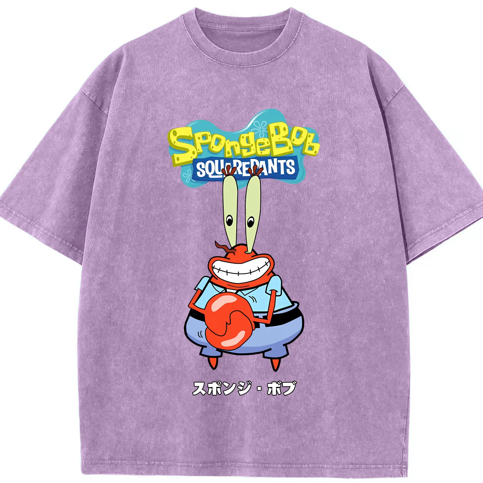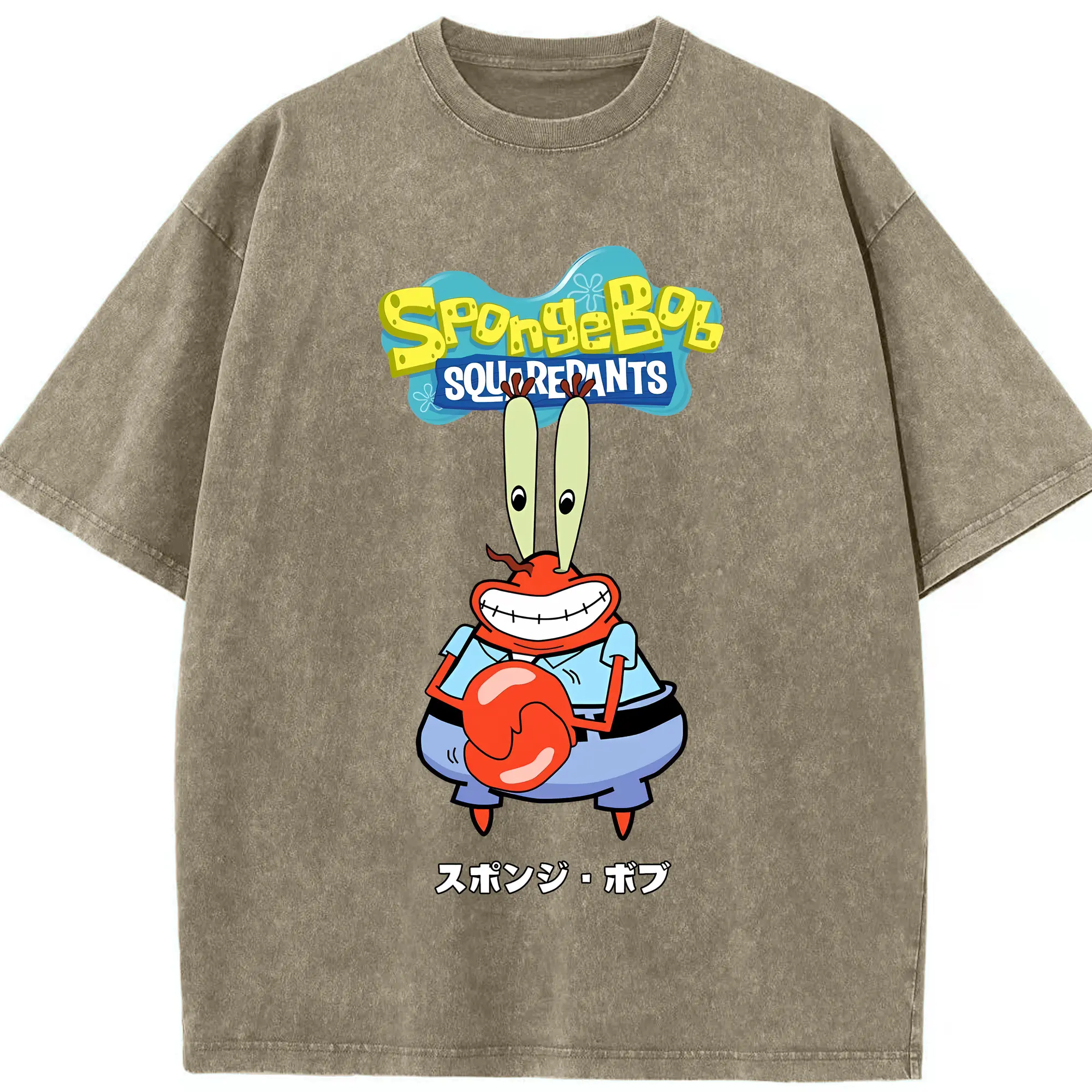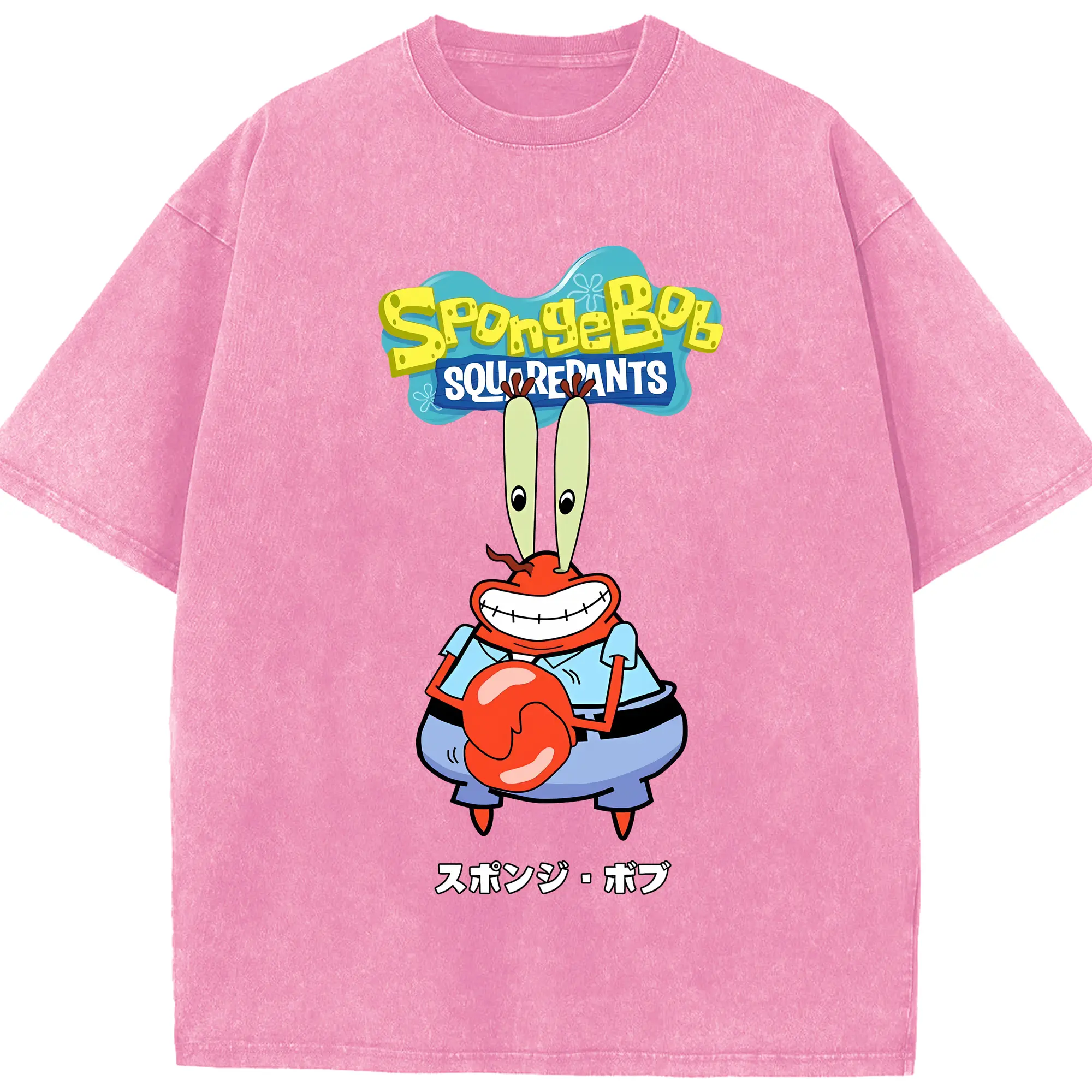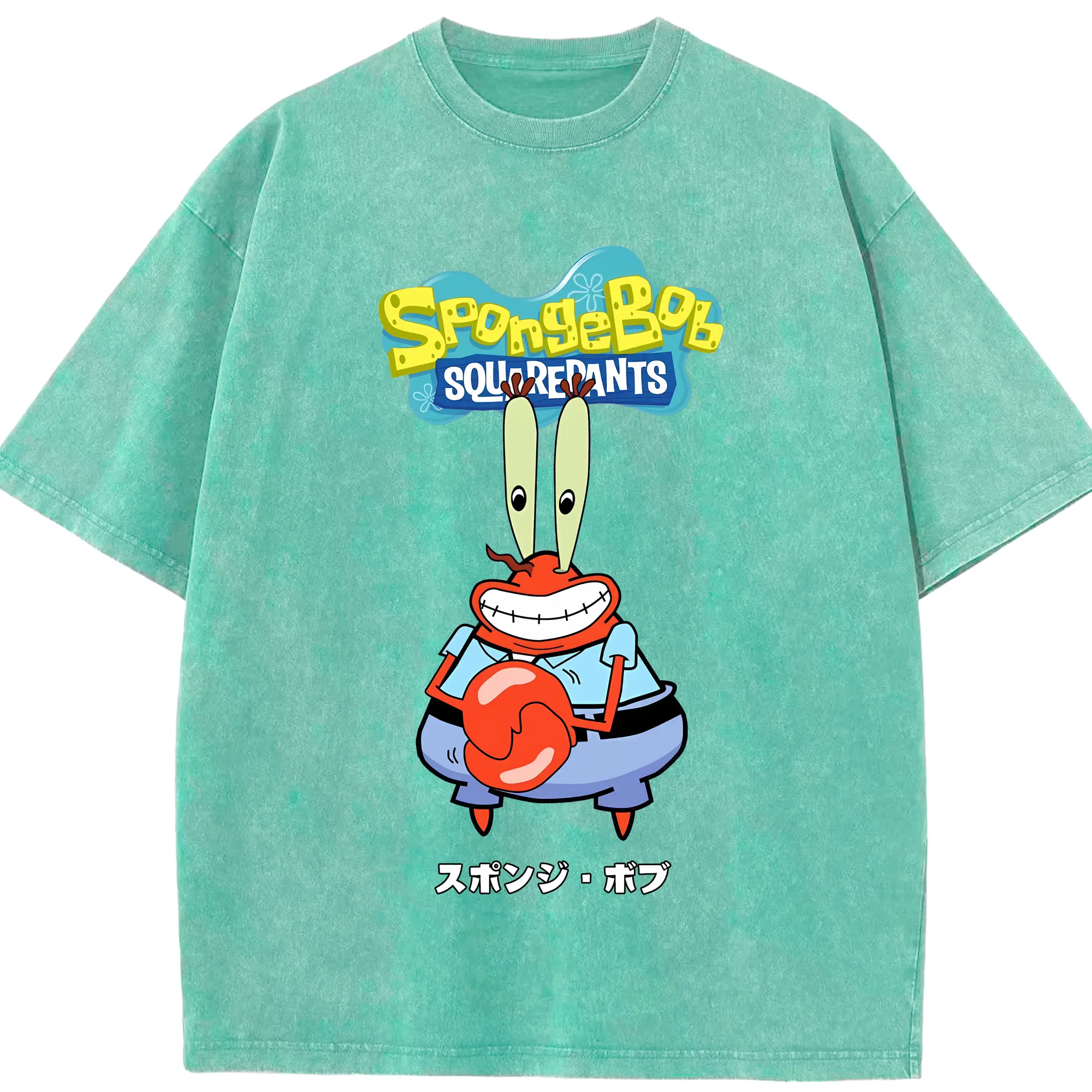 スポンジボブ グッズ ミスター・クラブ - 綿100% ヴィンテージ風 半袖Tシャツ ・ 背面プリント ・ 柔らか肌触り ・ 通気性 快適 ・ スポーツ カジュアル 外出用