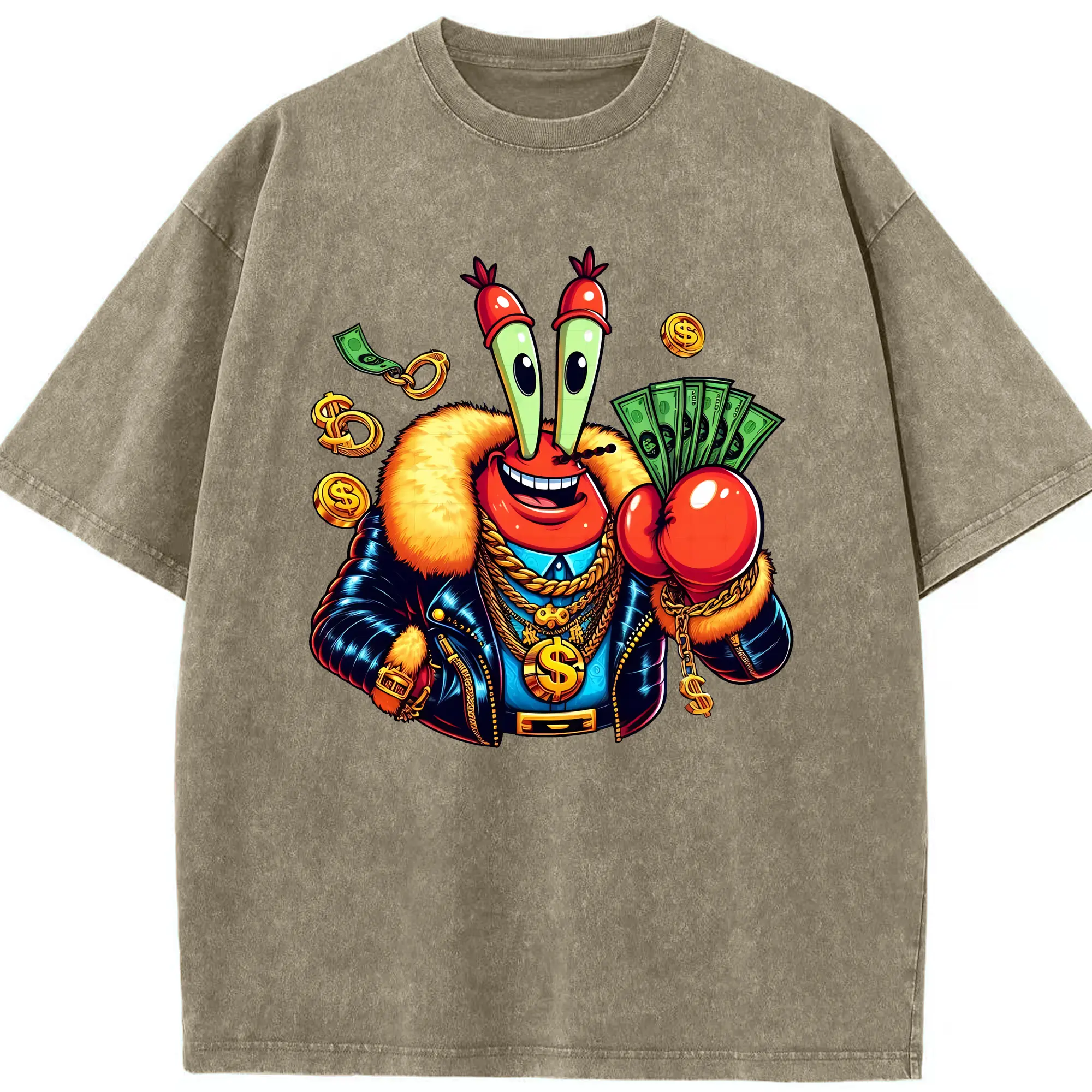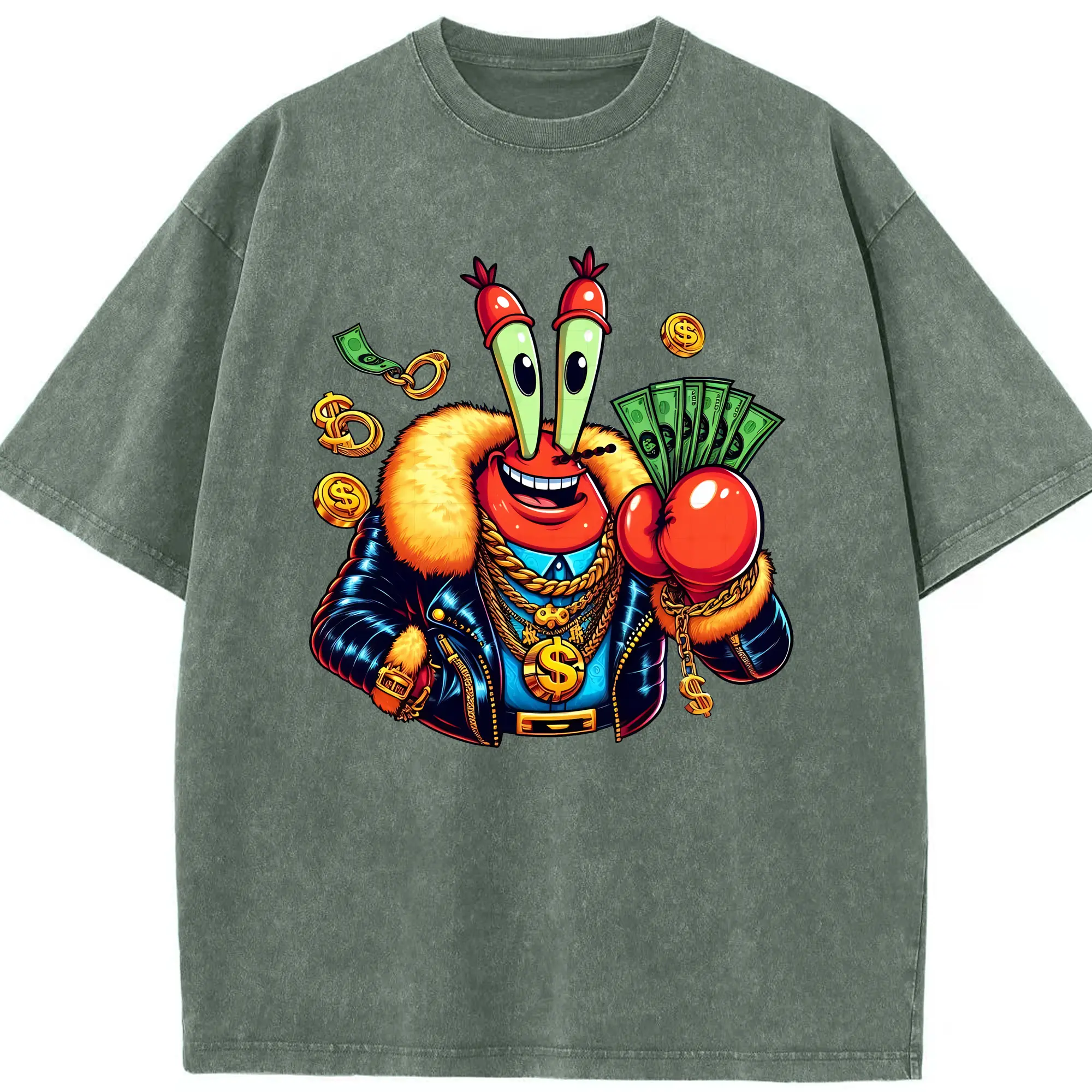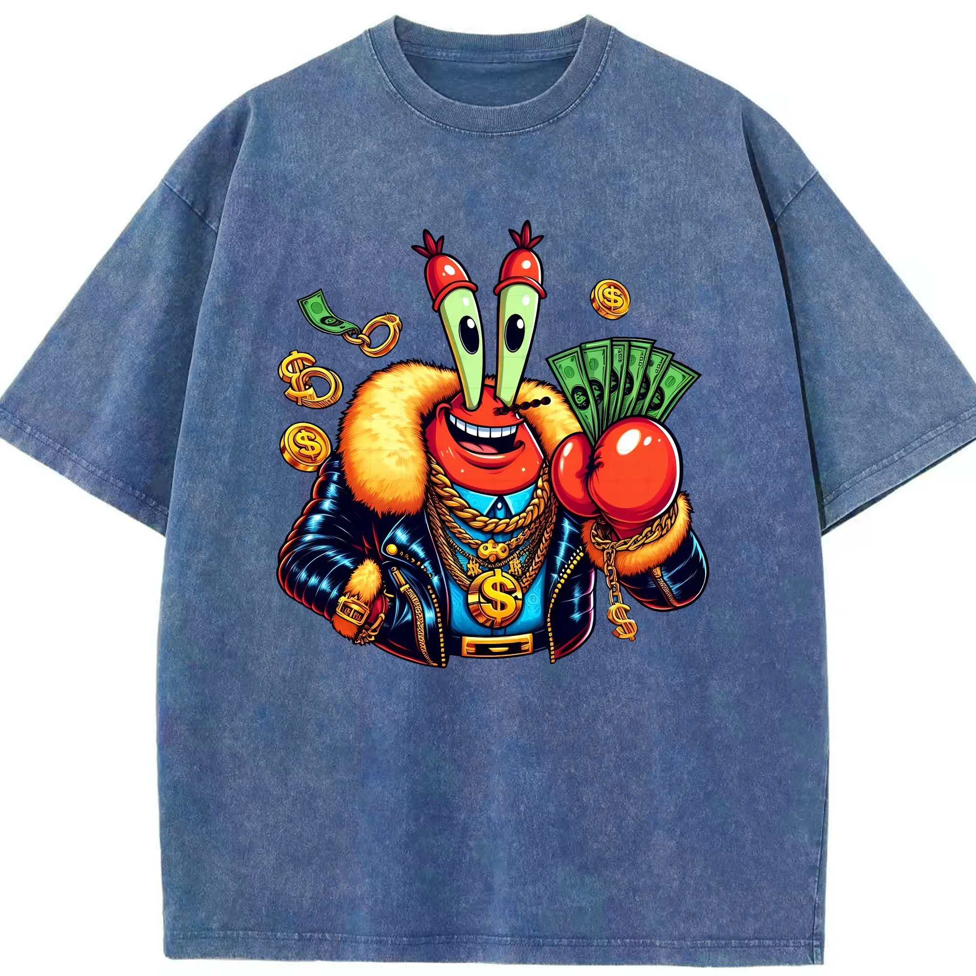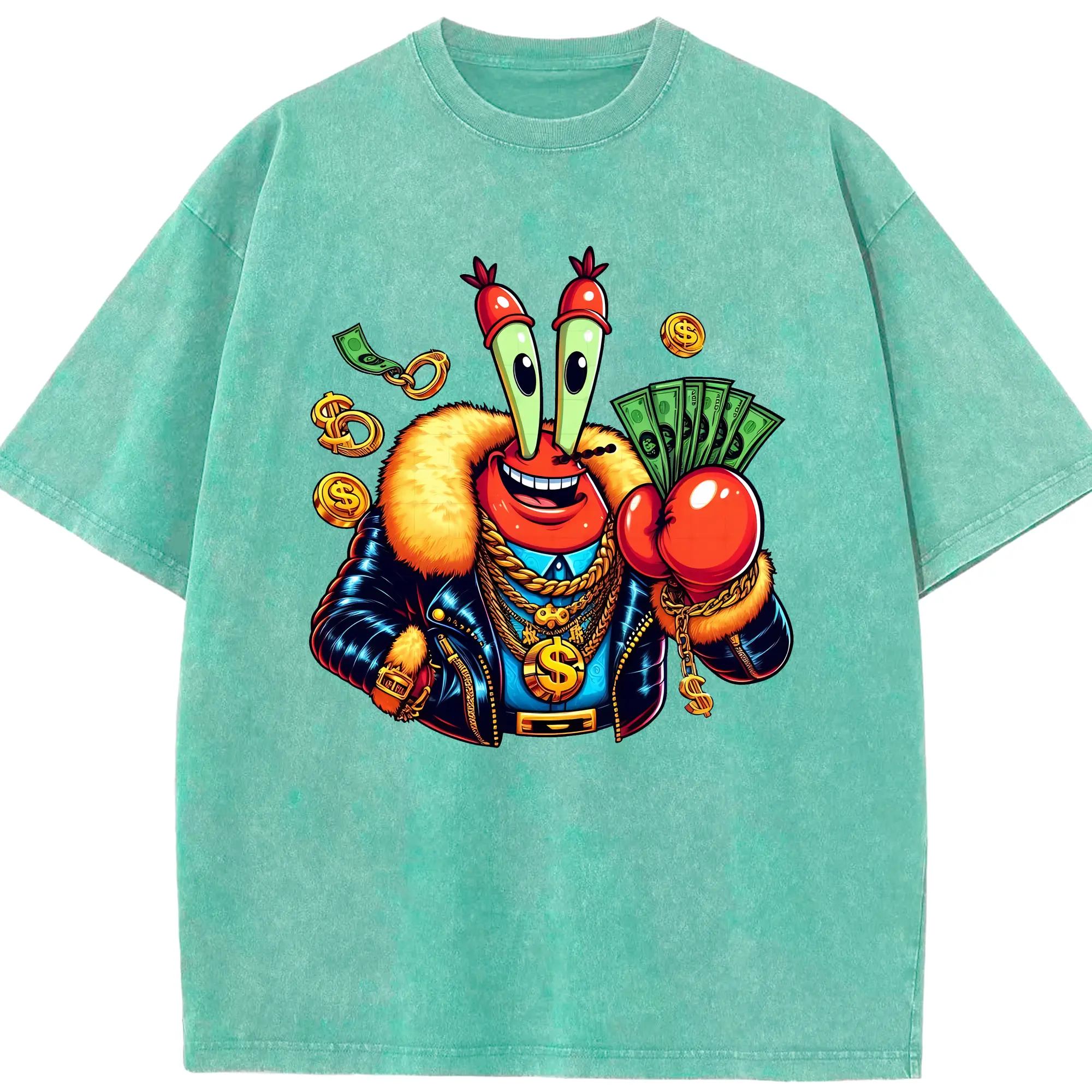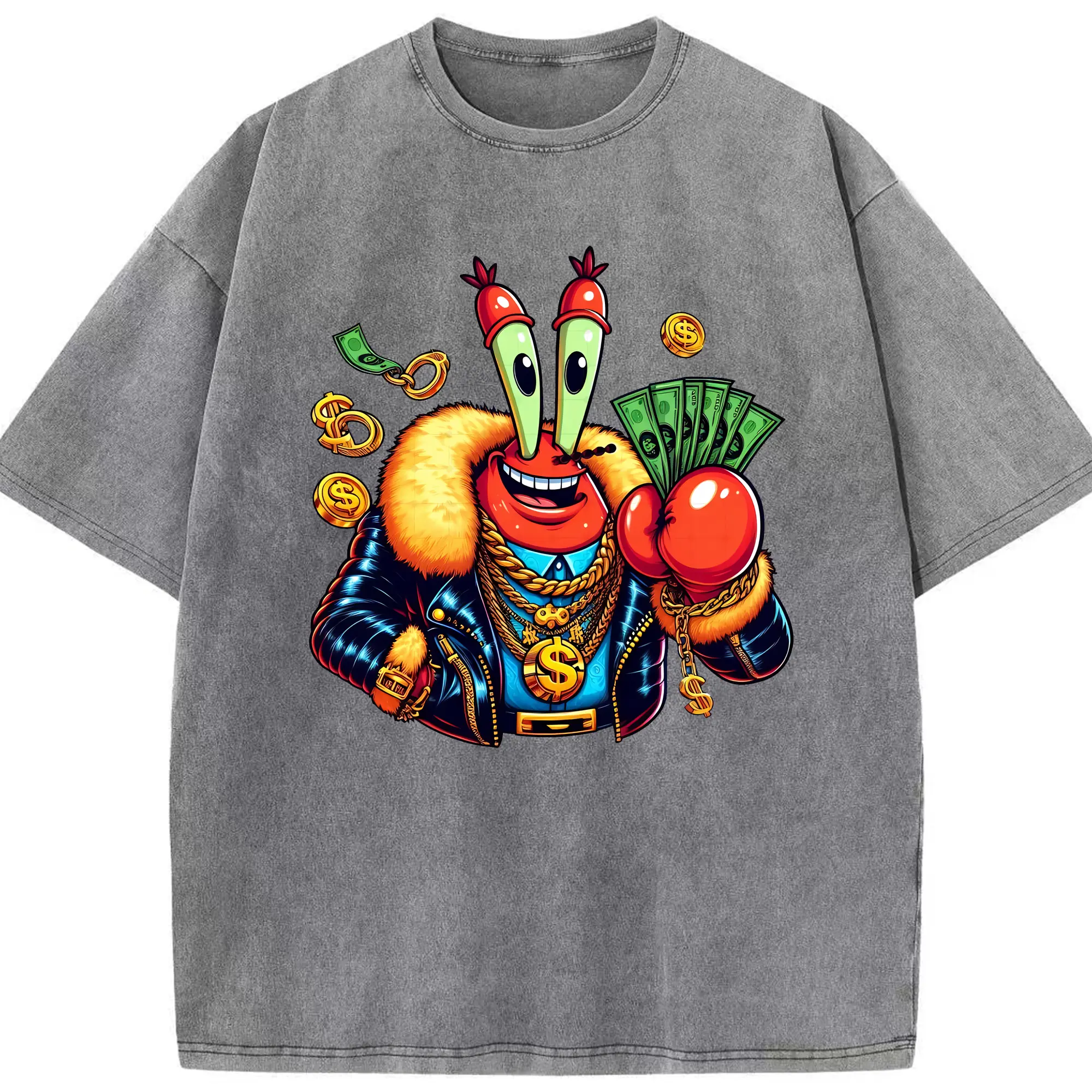 スポンジボブ グッズ ミスター・クラブ - 綿100% ヴィンテージ風 半袖Tシャツ ・ 背面プリント ・ 柔らか肌触り ・ 通気性 快適 ・ スポーツ カジュアル 外出用