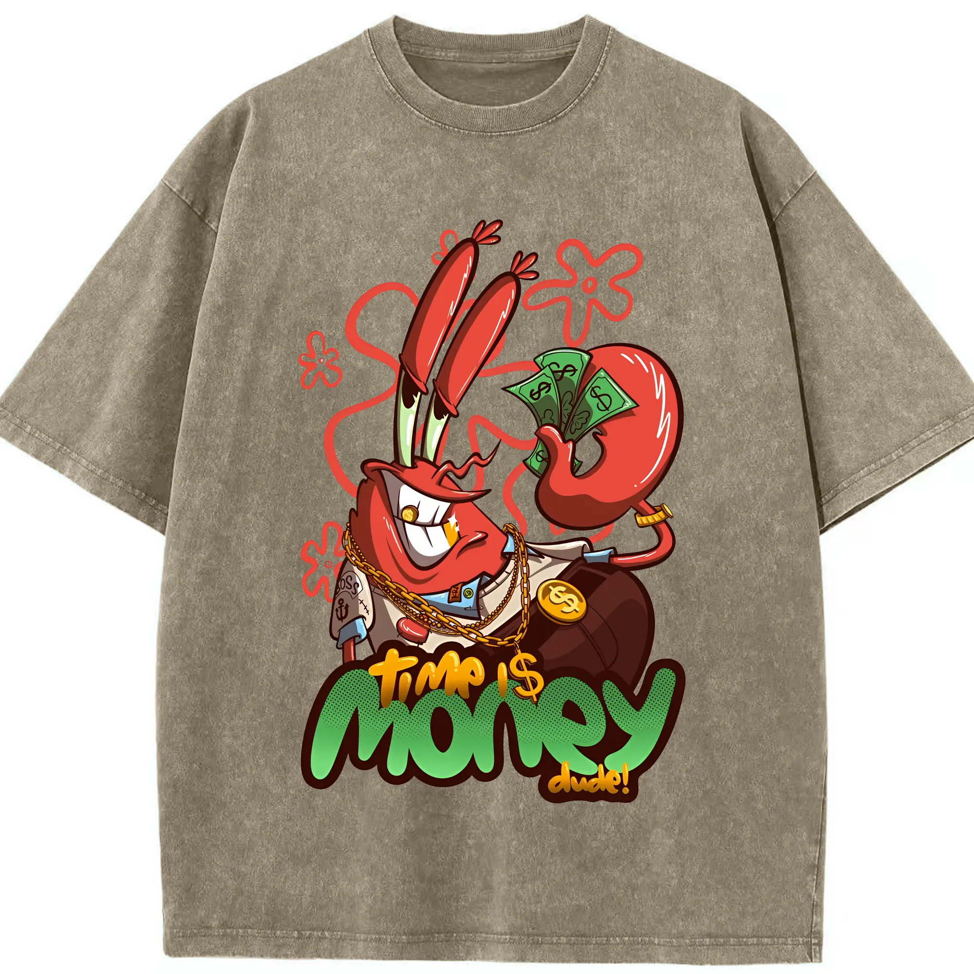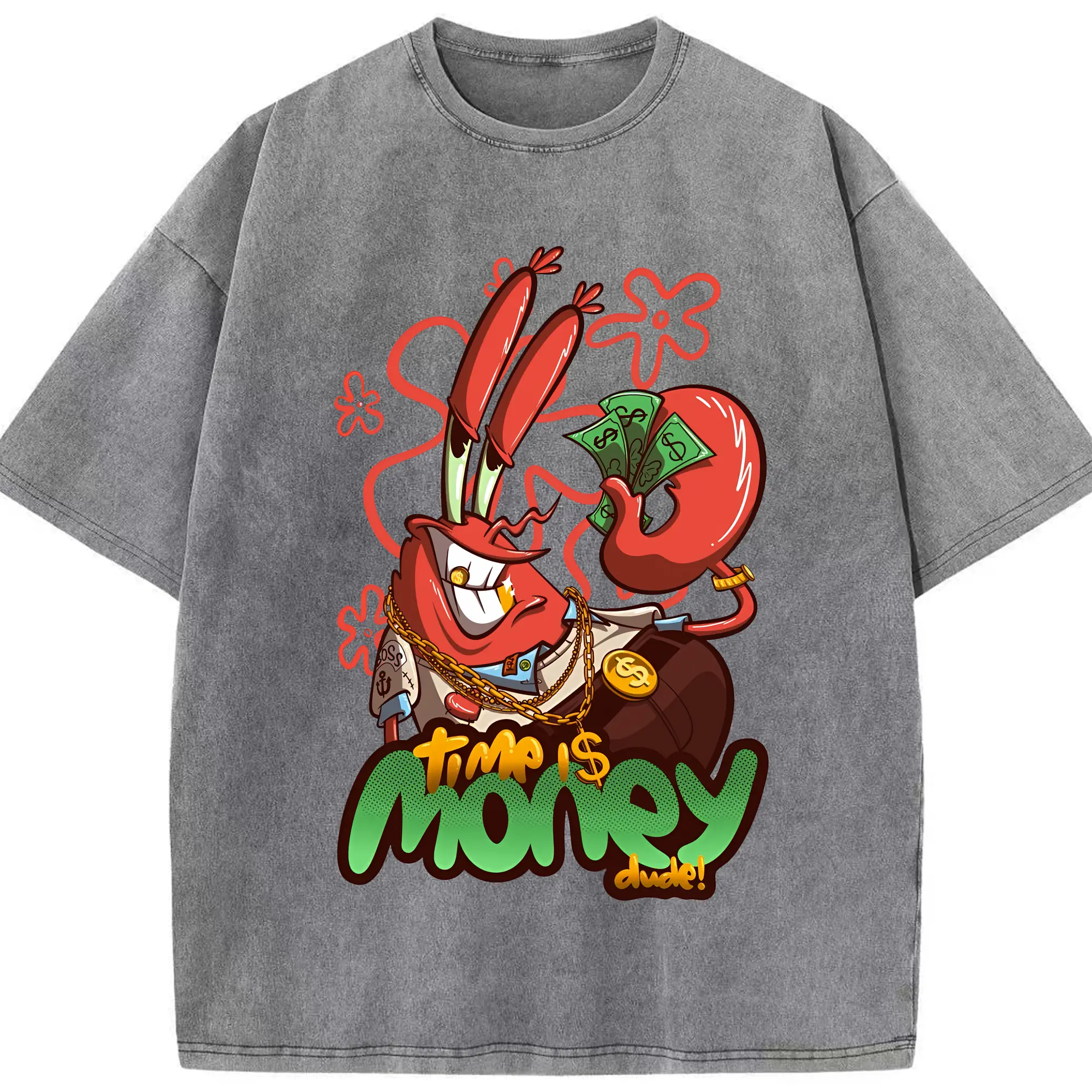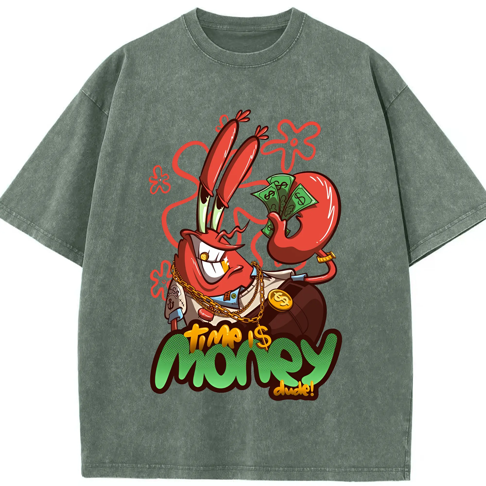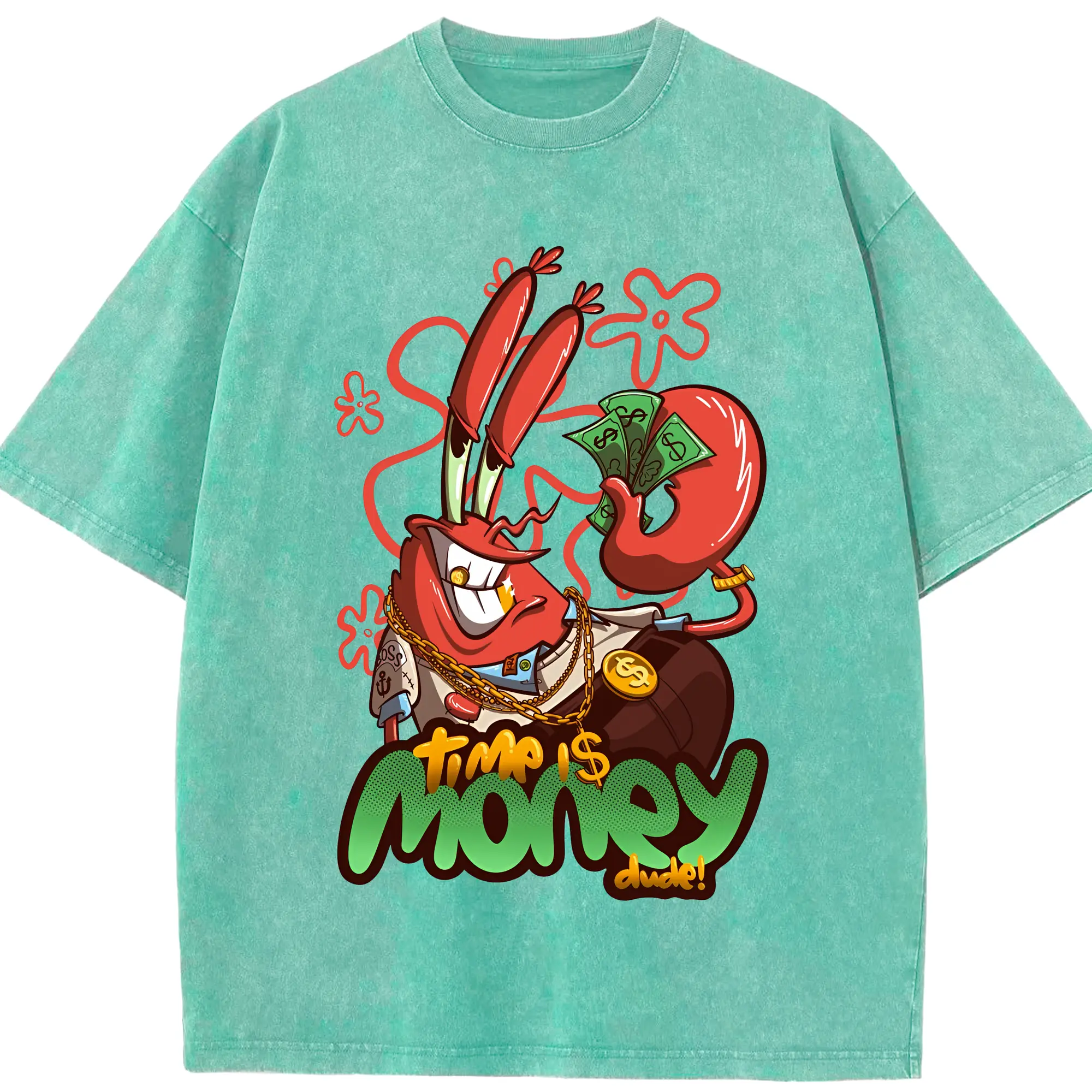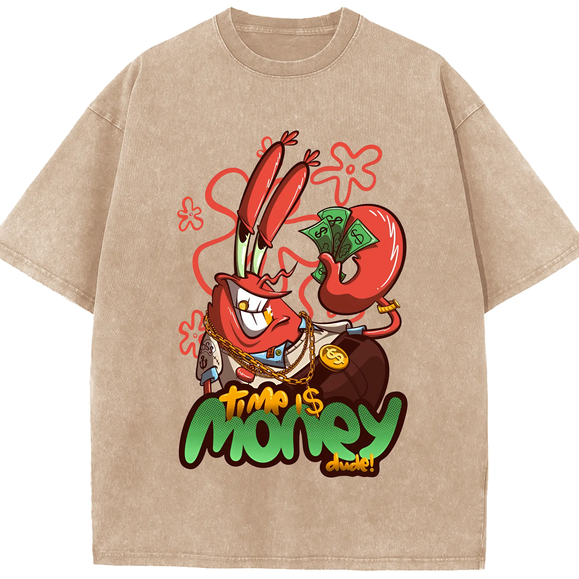 スポンジボブ グッズ ミスター・クラブ - 綿100% ヴィンテージ風 半袖Tシャツ ・ 背面プリント ・ 柔らか肌触り ・ 通気性 快適 ・ スポーツ カジュアル 外出用