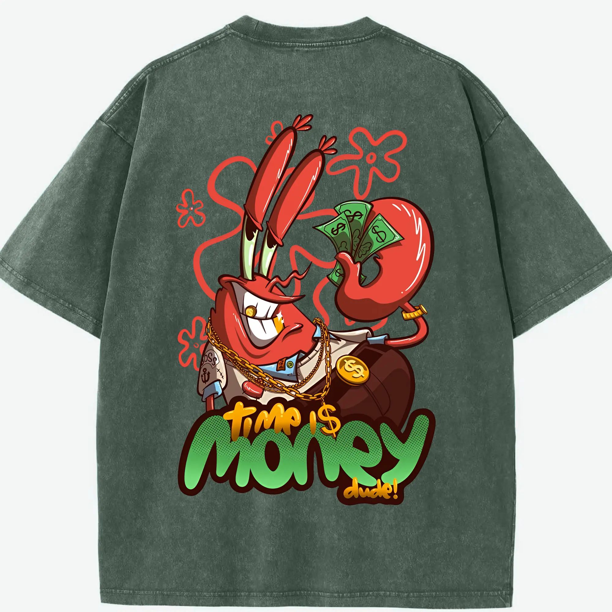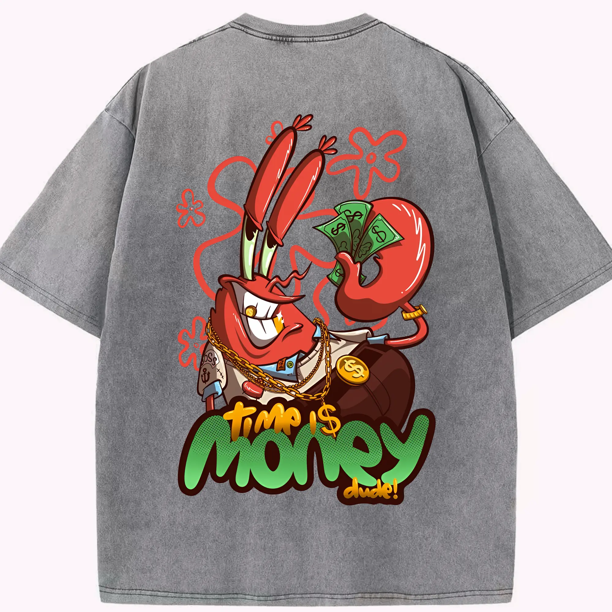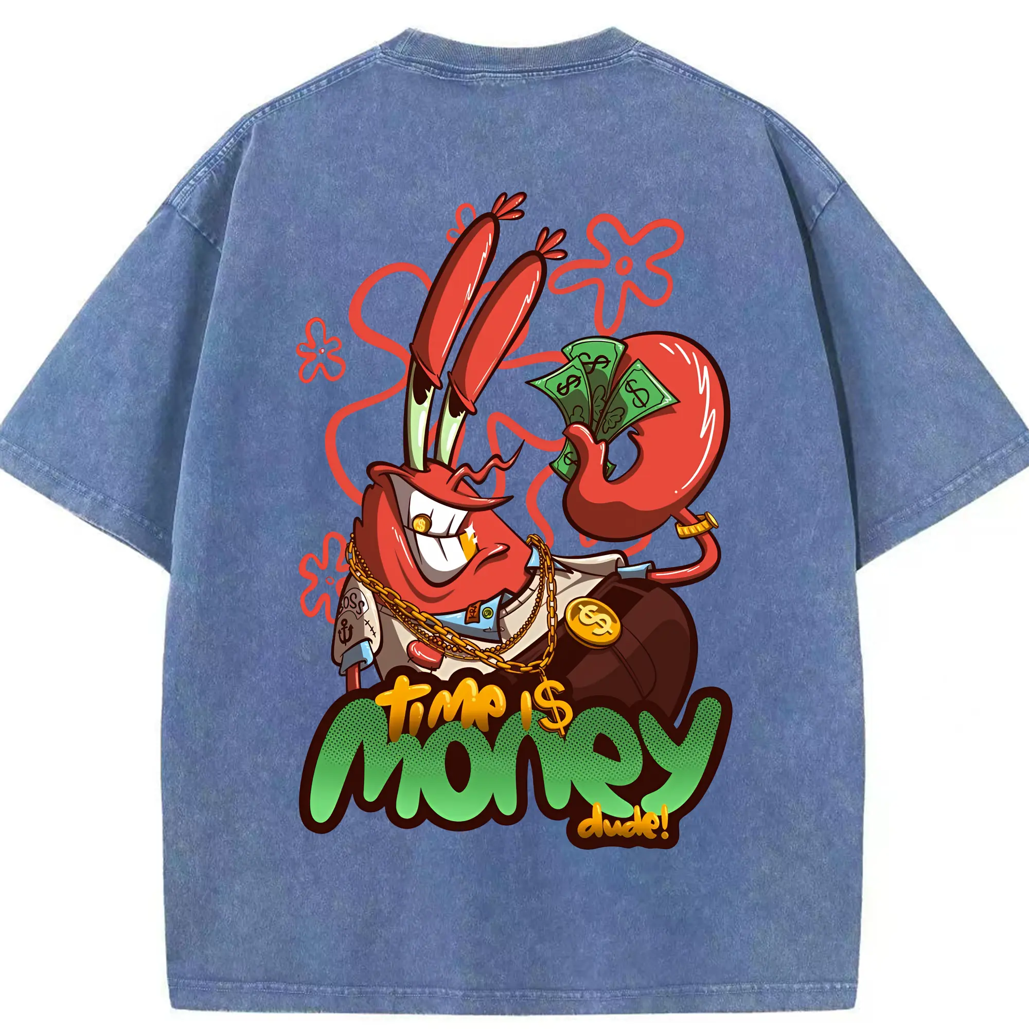 スポンジボブ グッズ ミスター・クラブ - 綿100% ヴィンテージ風 半袖Tシャツ ・ フロントプリント ・ 柔らか肌触り ・ 通気性 快適 ・ スポーツ カジュアル 外出用