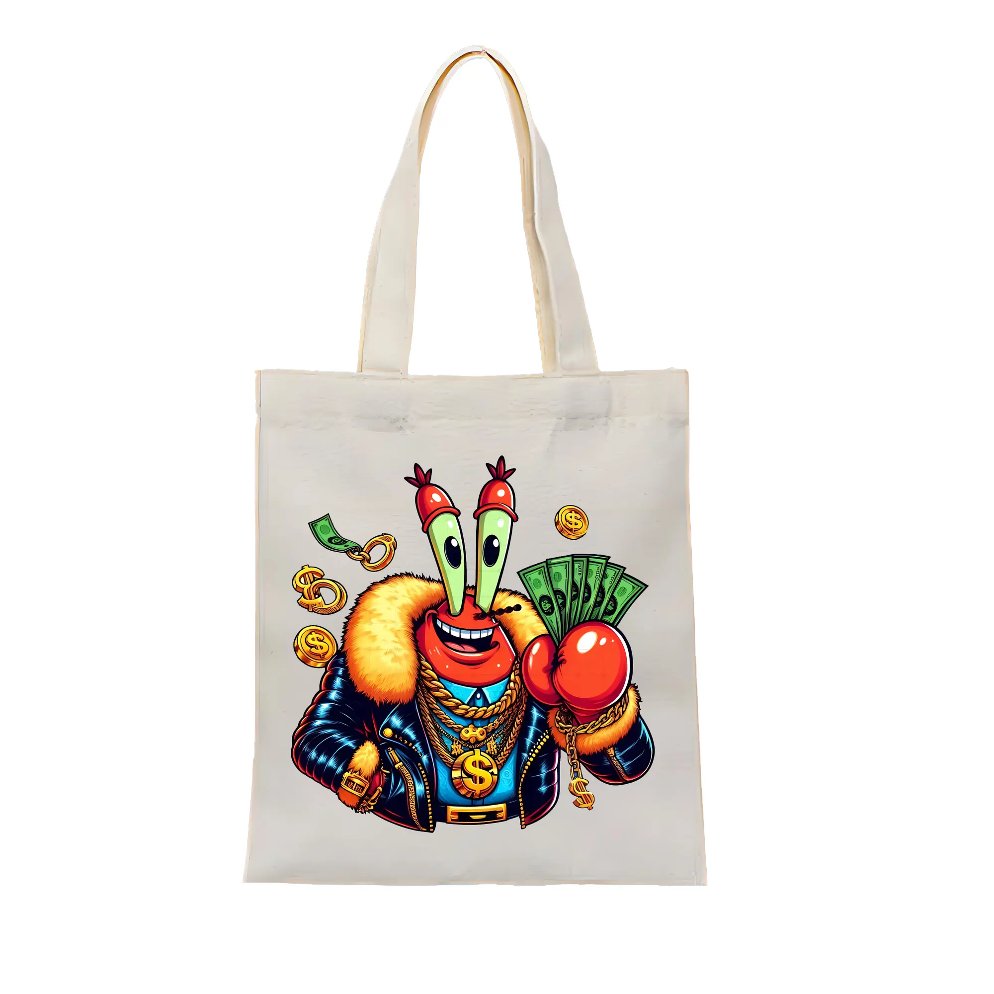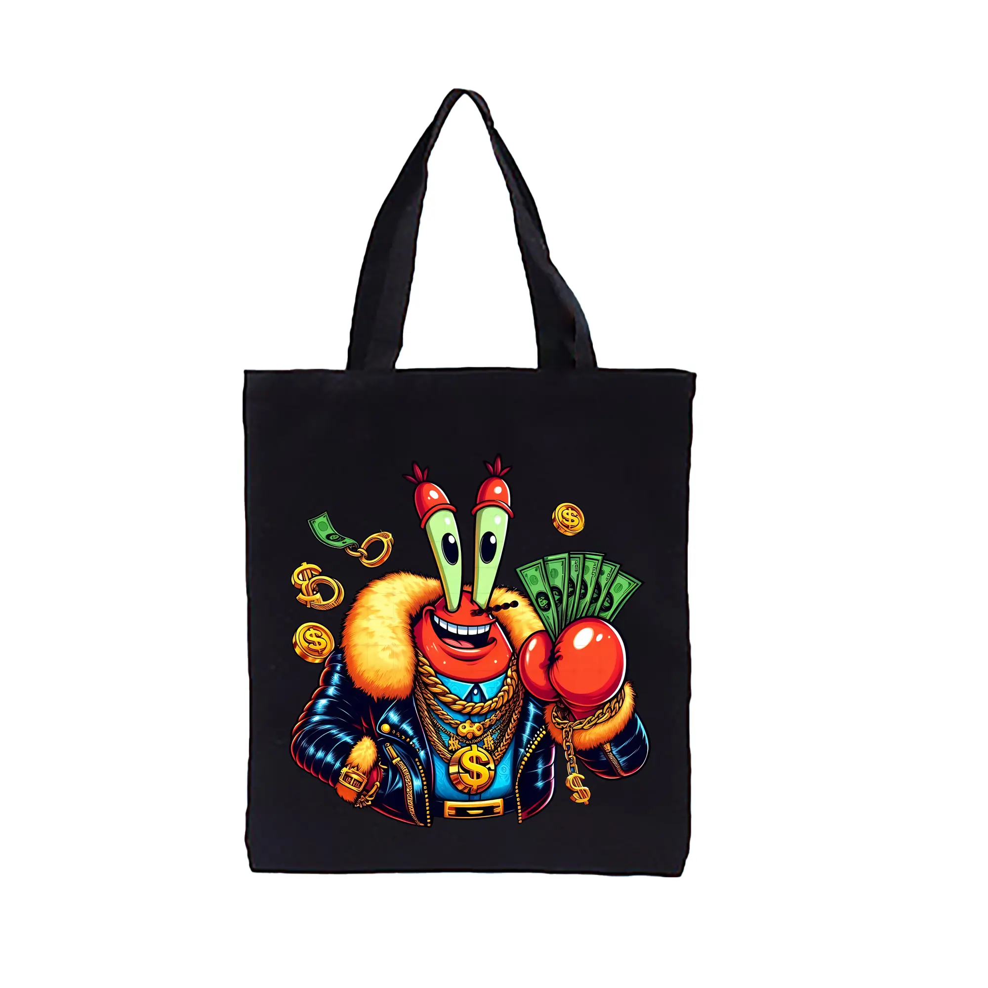 スポンジボブ グッズ ミスター・クラブ - 縦型キャンバス手提げバッグ(トートバッグ) ・ キャンバス素材 ・ ショッピング用 ・ 軽量 丈夫 お手入れ簡単