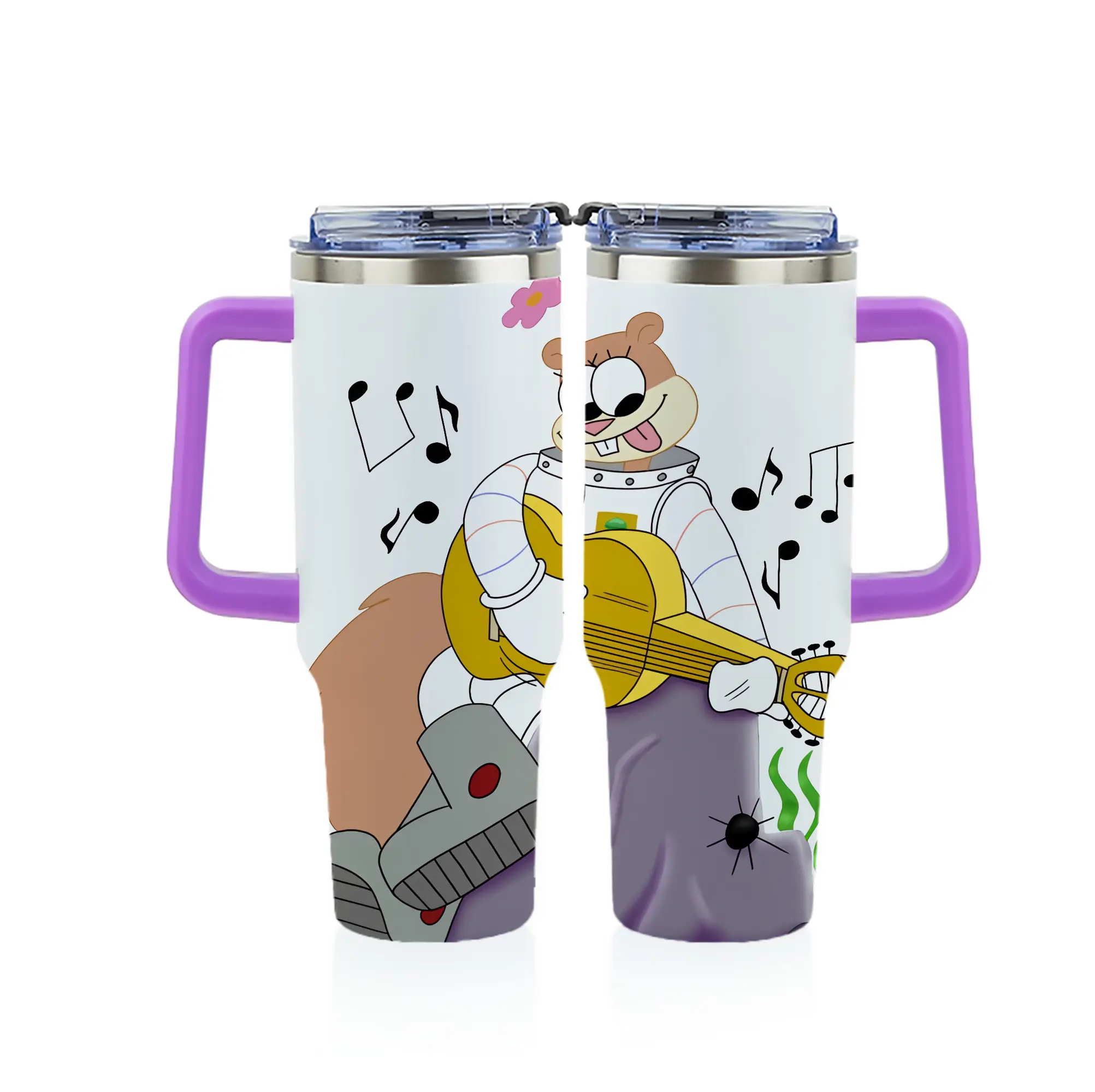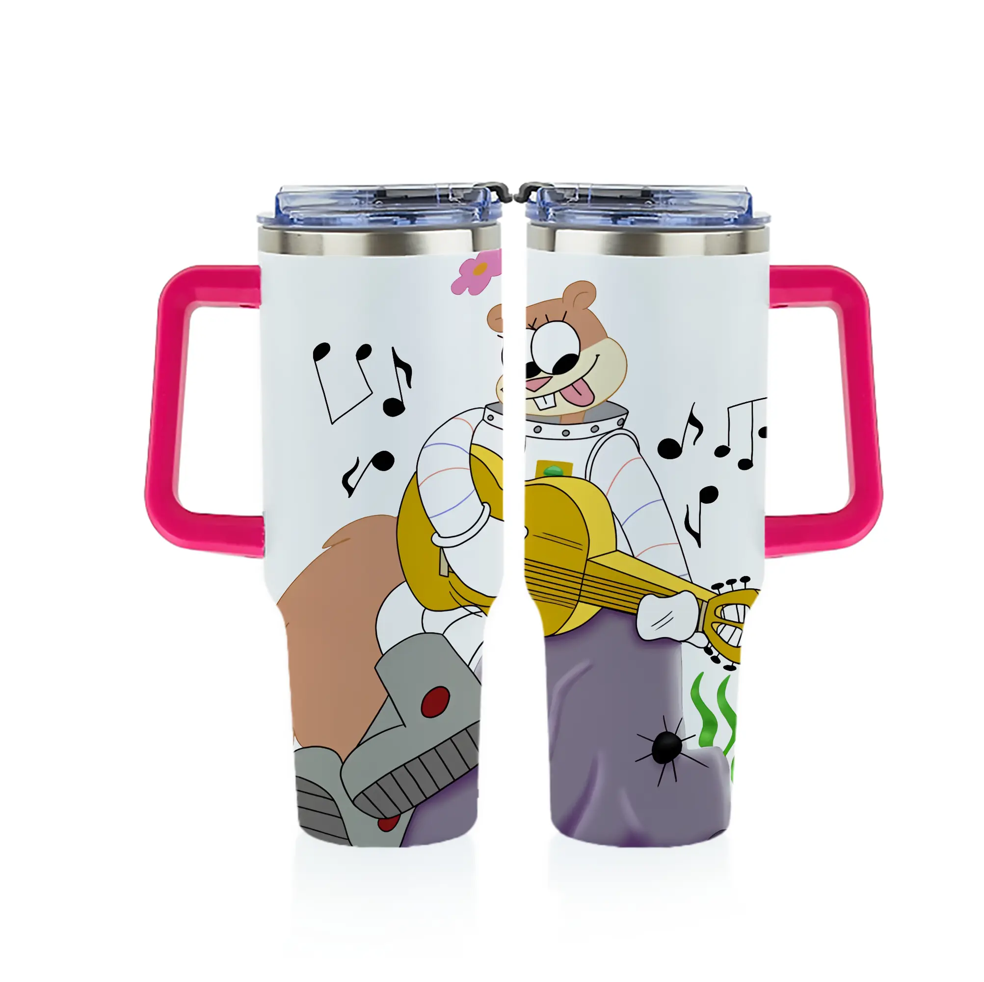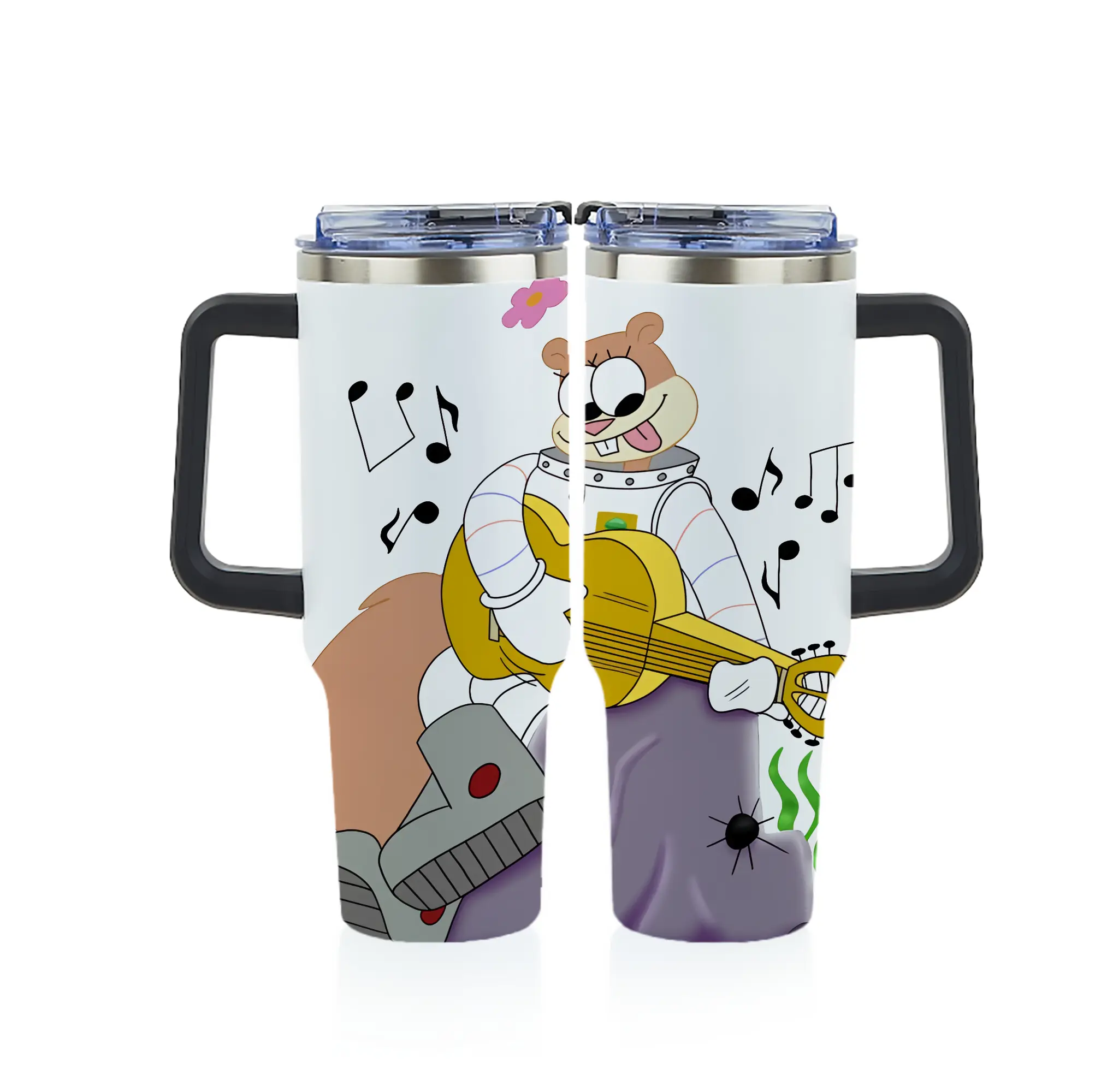 スポンジボブ グッズ サンディ - 綿100% 半袖Tシャツ ・ バックプリント ・ 快適 通気性 ・ 日常使い 散歩 スポーツ用