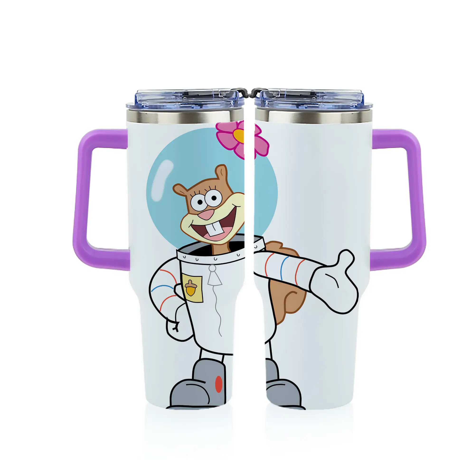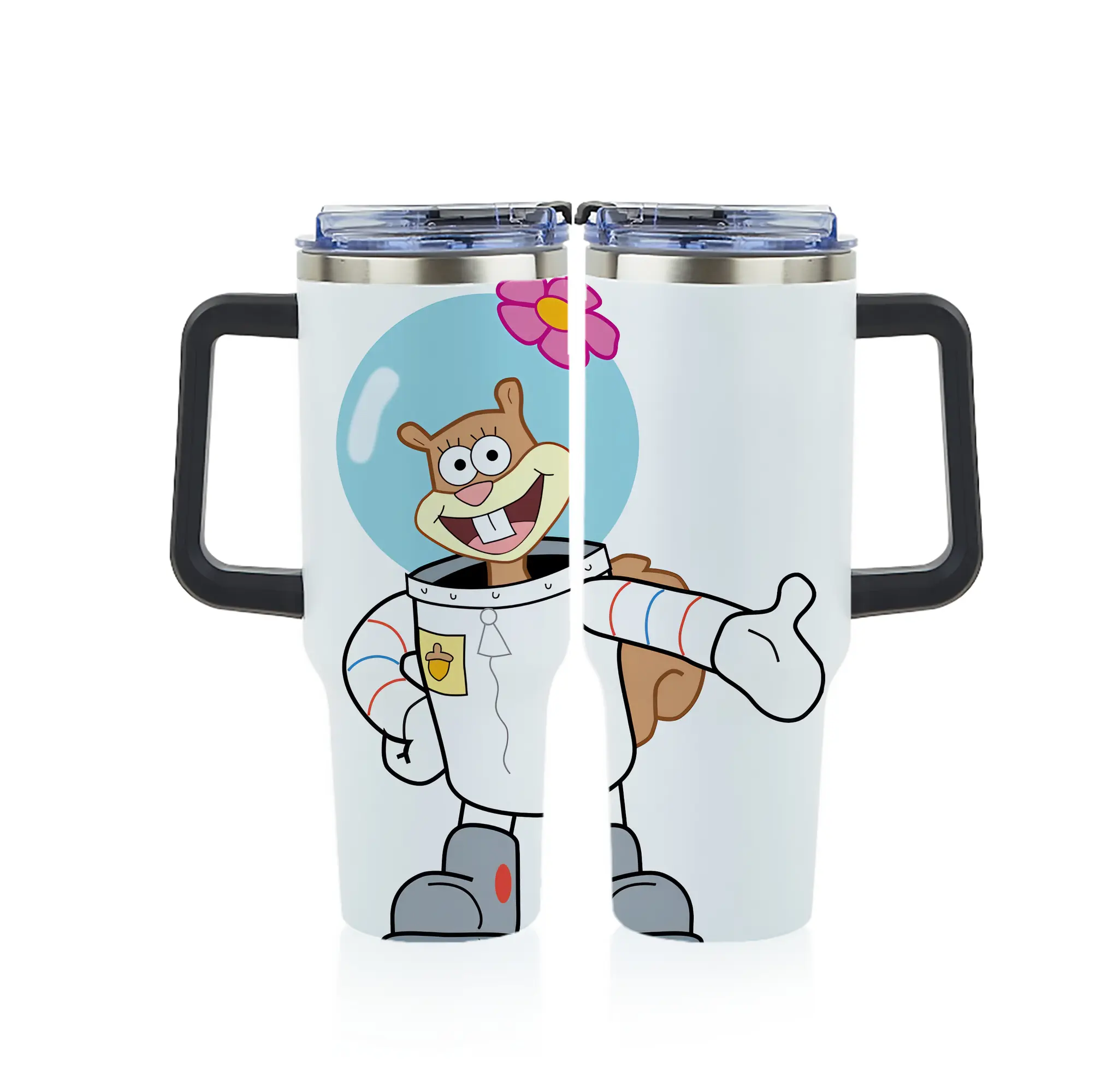 スポンジボブ グッズ サンディ - 1200mL フルプリント車用タンブラー ・ 304ステンレス 内側 ・ 201ステンレス 外側 ・ 保温 保冷 ・ 通勤 ドライブ アウトドア用