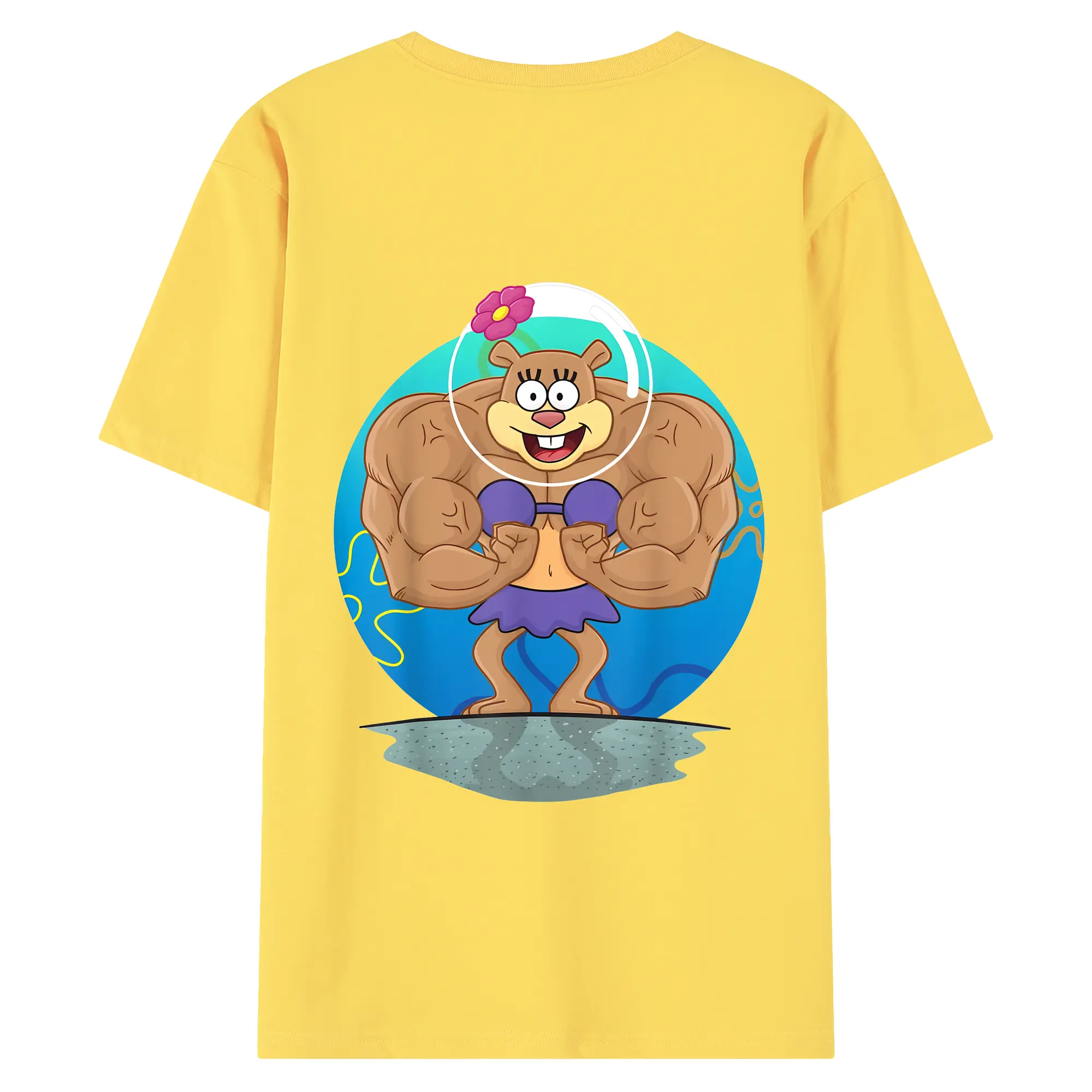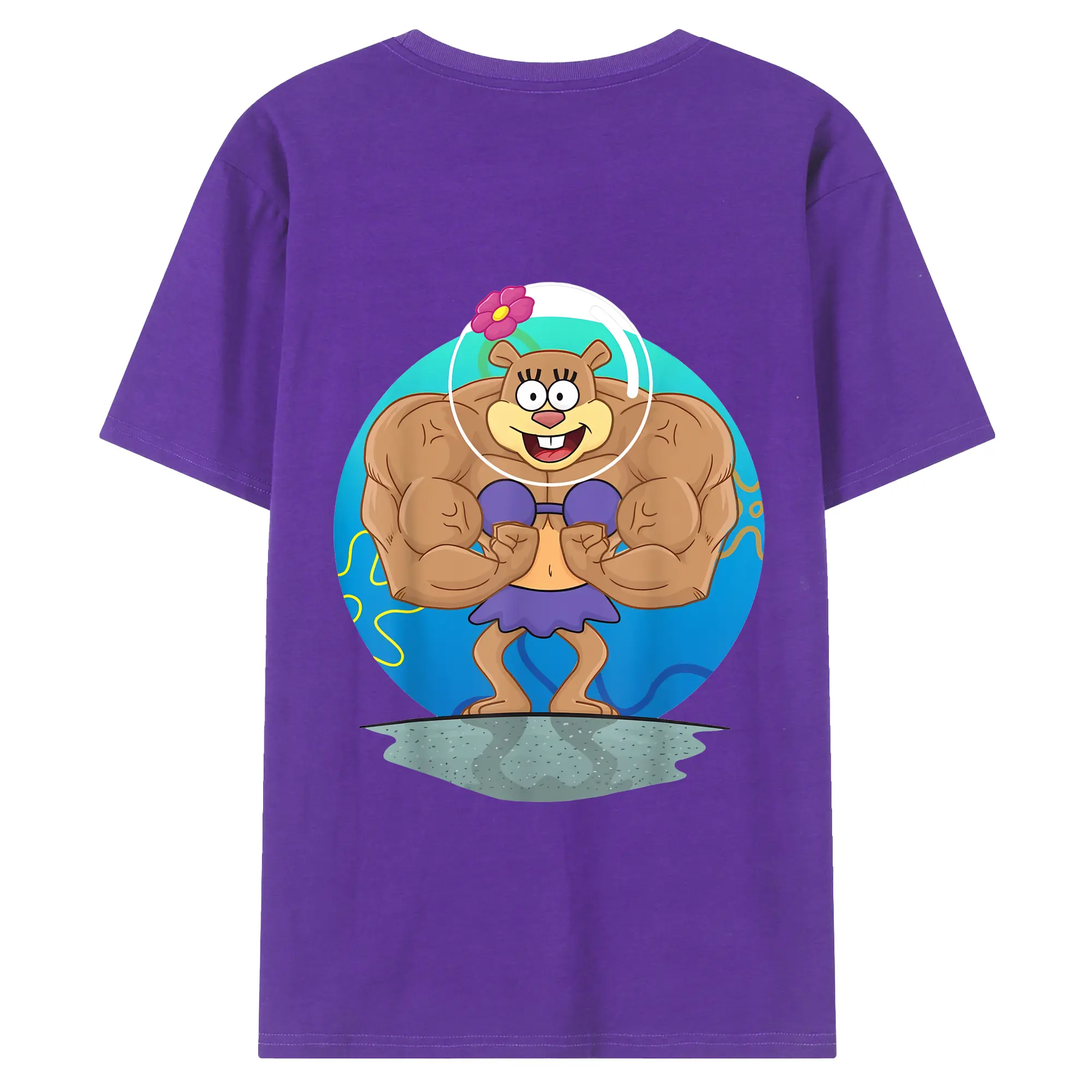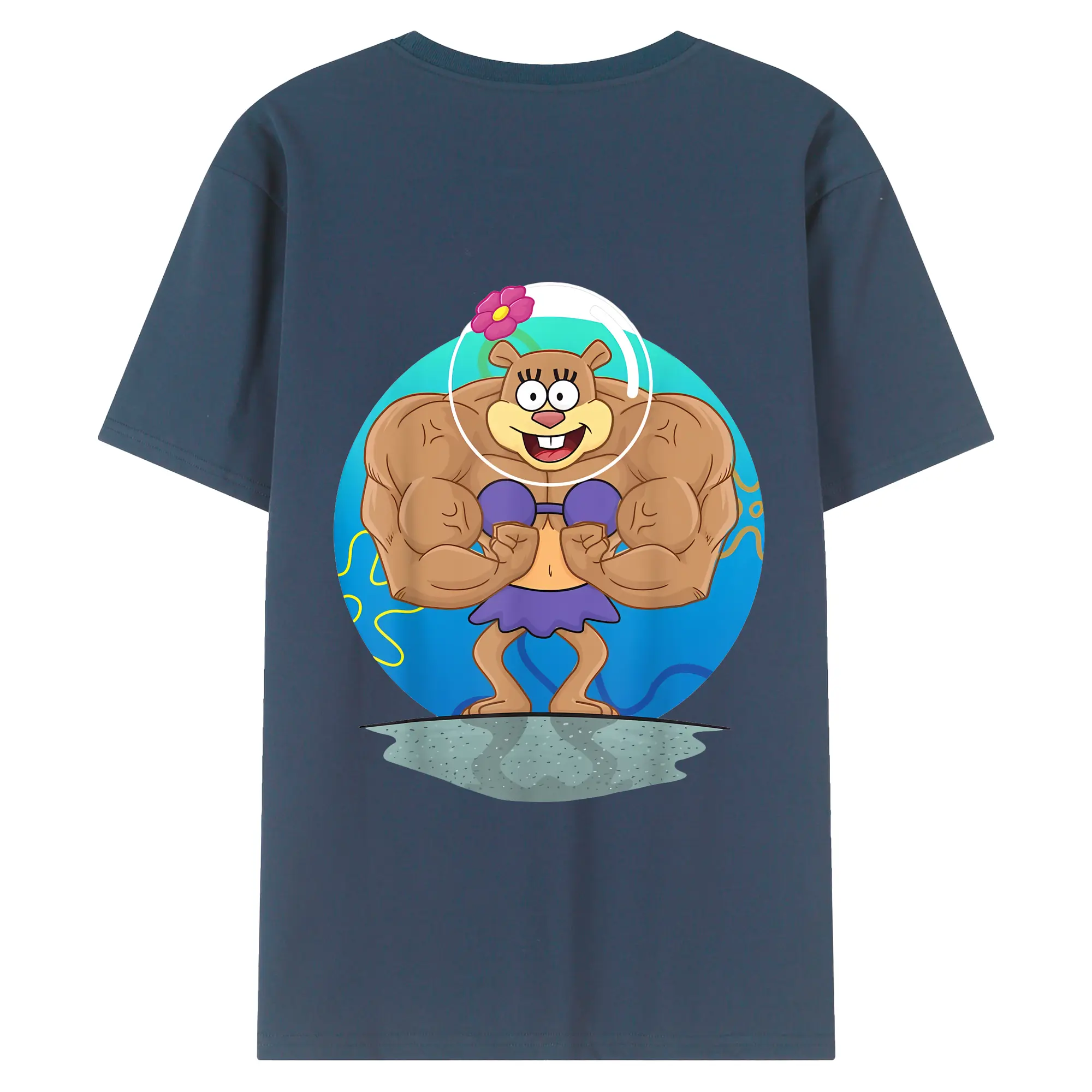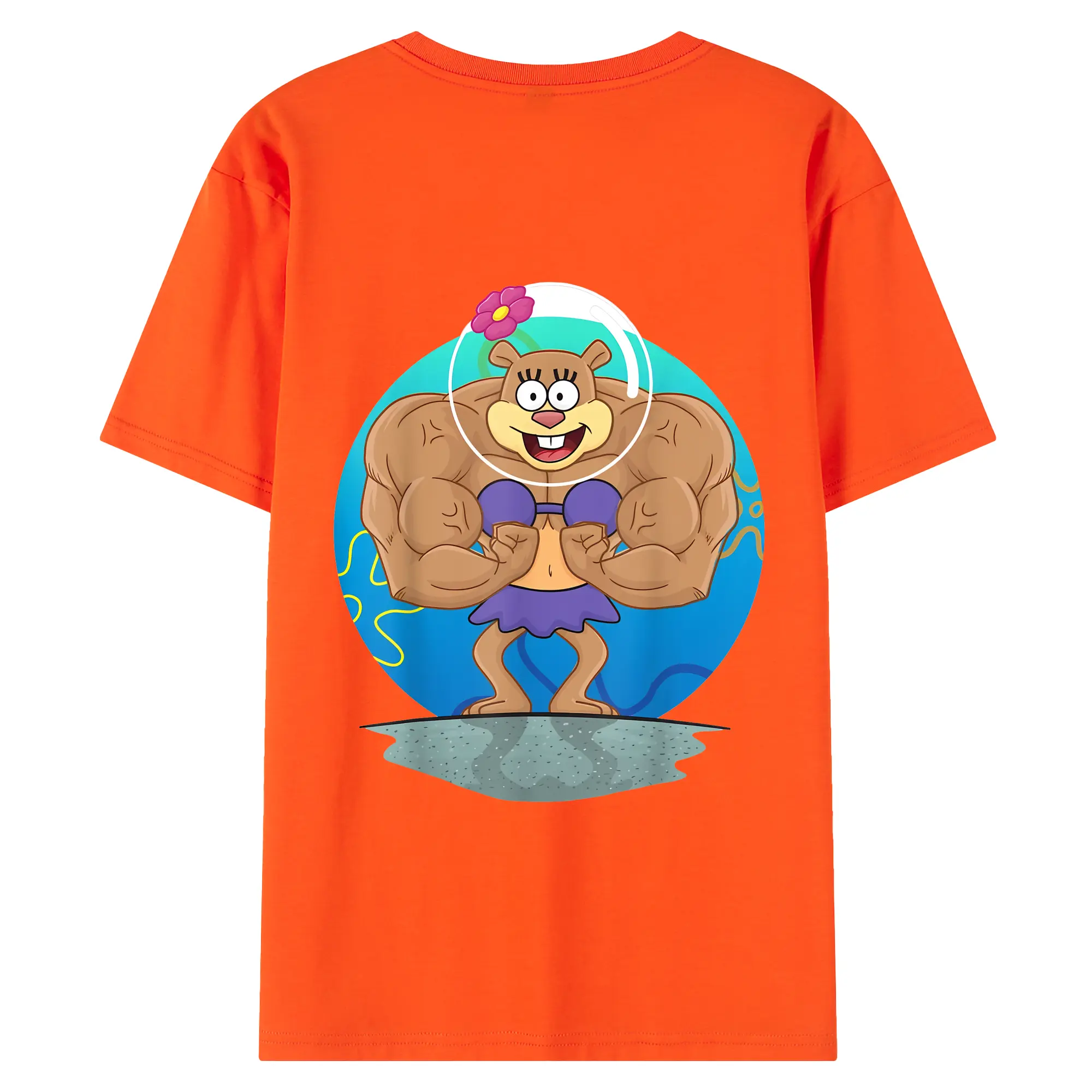 スポンジボブ グッズ サンディ - 綿100% ヴィンテージ風 半袖Tシャツ ・ 背面プリント ・ 柔らか肌触り ・ 通気性 快適 ・ スポーツ カジュアル 外出用