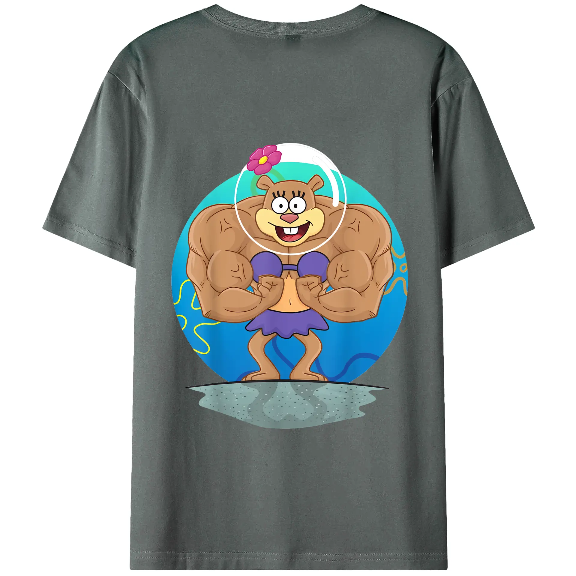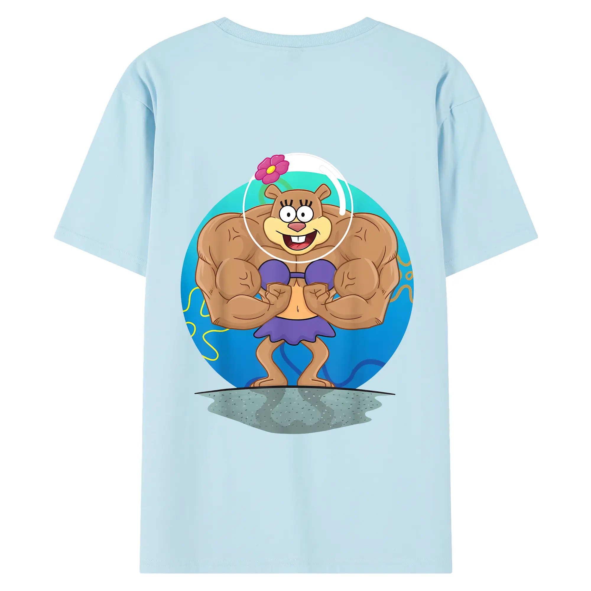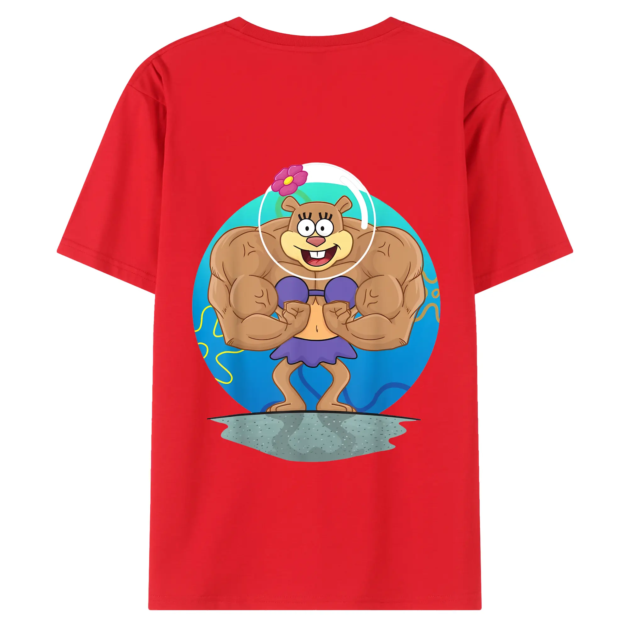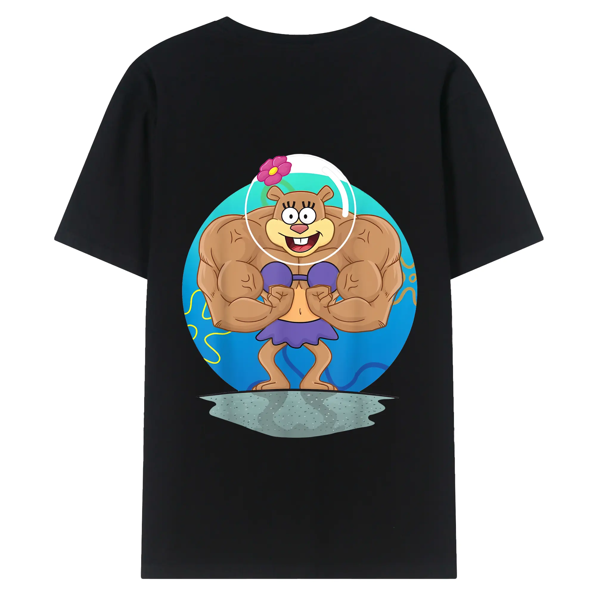 スポンジボブ グッズ サンディ - 綿100% ヴィンテージ風 半袖Tシャツ ・ 背面プリント ・ 柔らか肌触り ・ 通気性 快適 ・ スポーツ カジュアル 外出用
