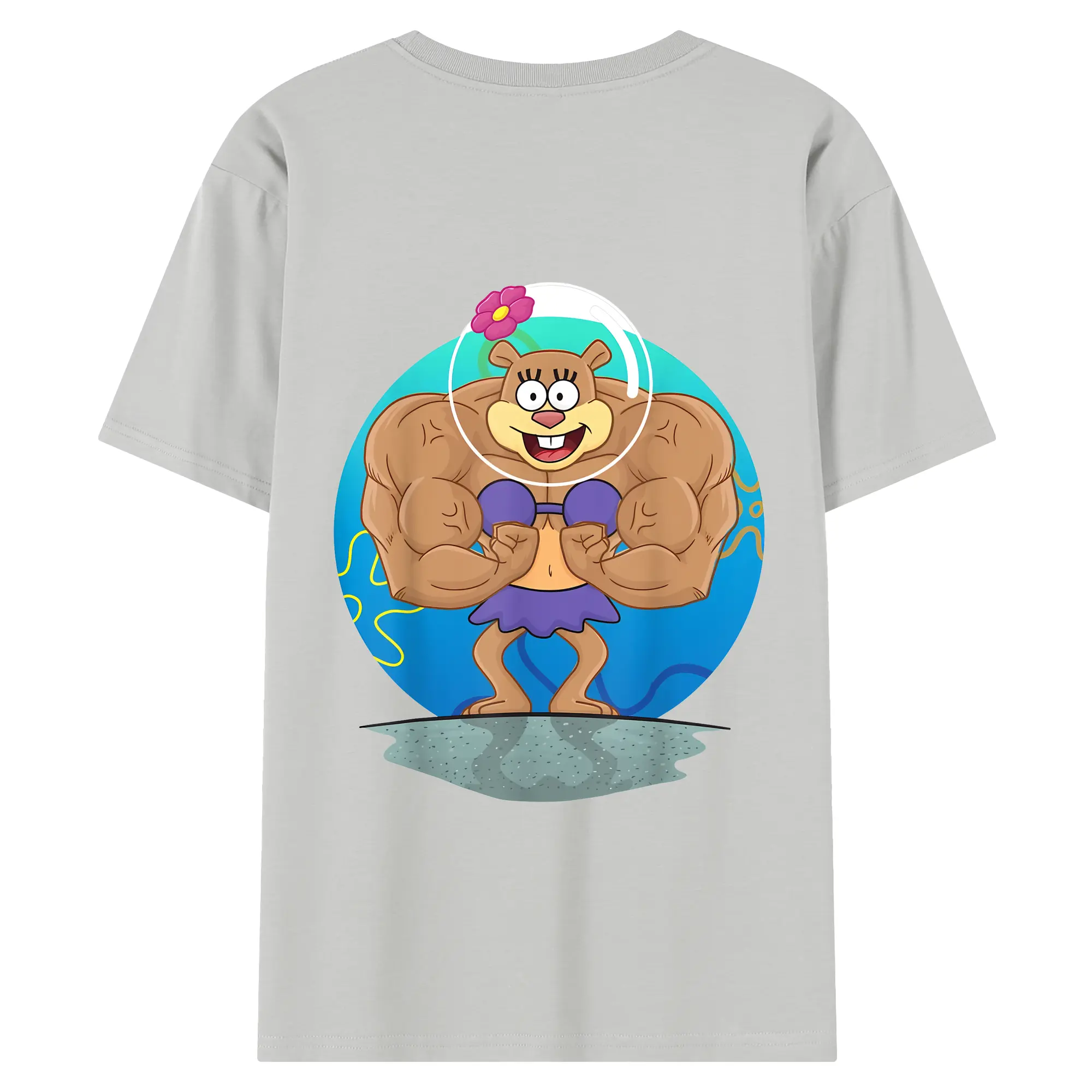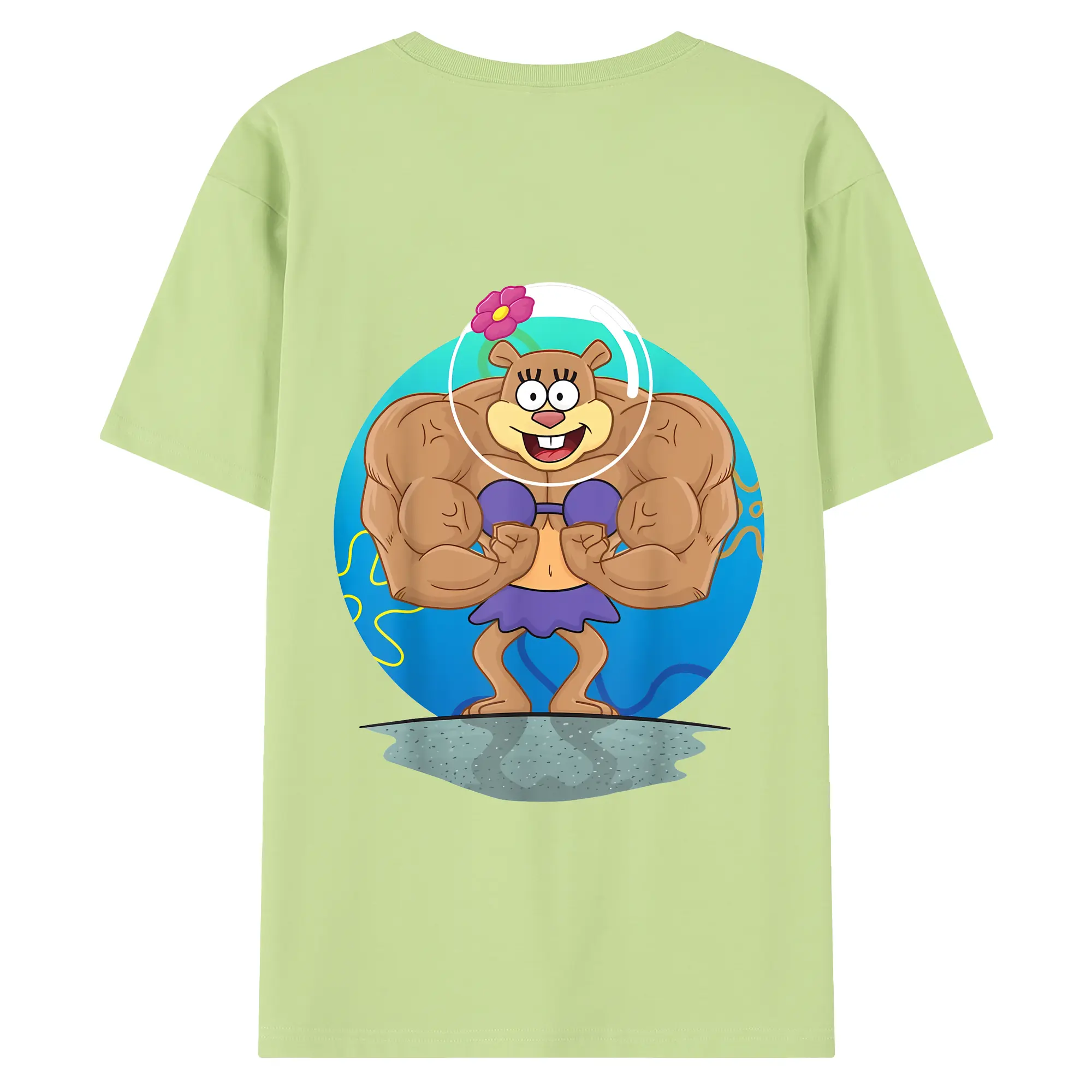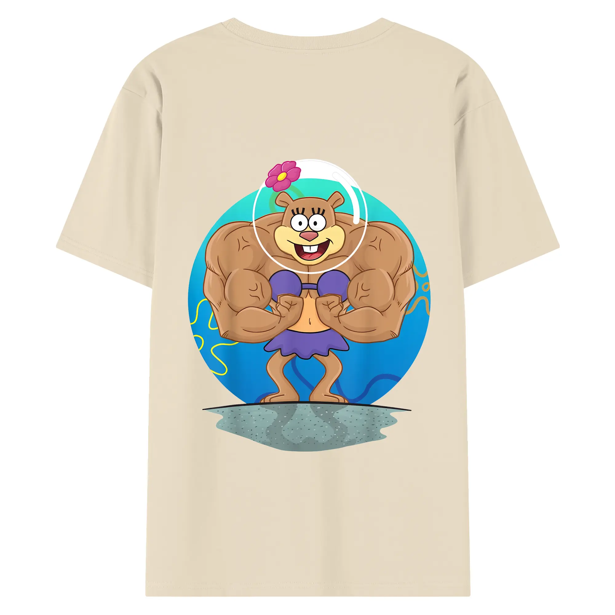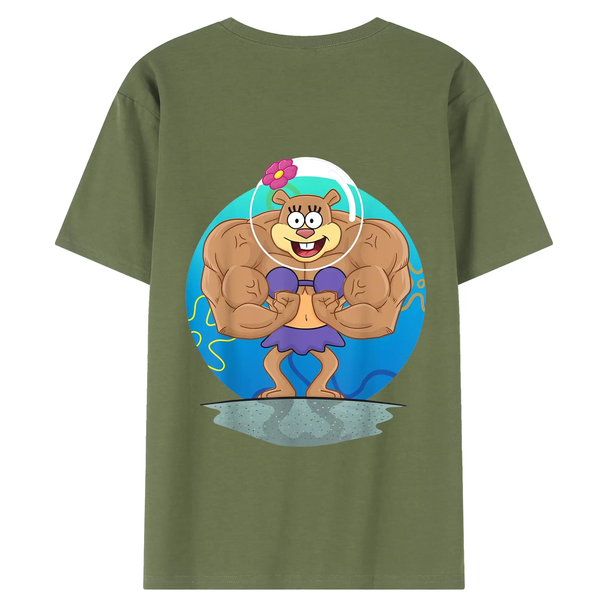 スポンジボブ グッズ サンディ - 綿100% ヴィンテージ風 半袖Tシャツ ・ 背面プリント ・ 柔らか肌触り ・ 通気性 快適 ・ スポーツ カジュアル 外出用