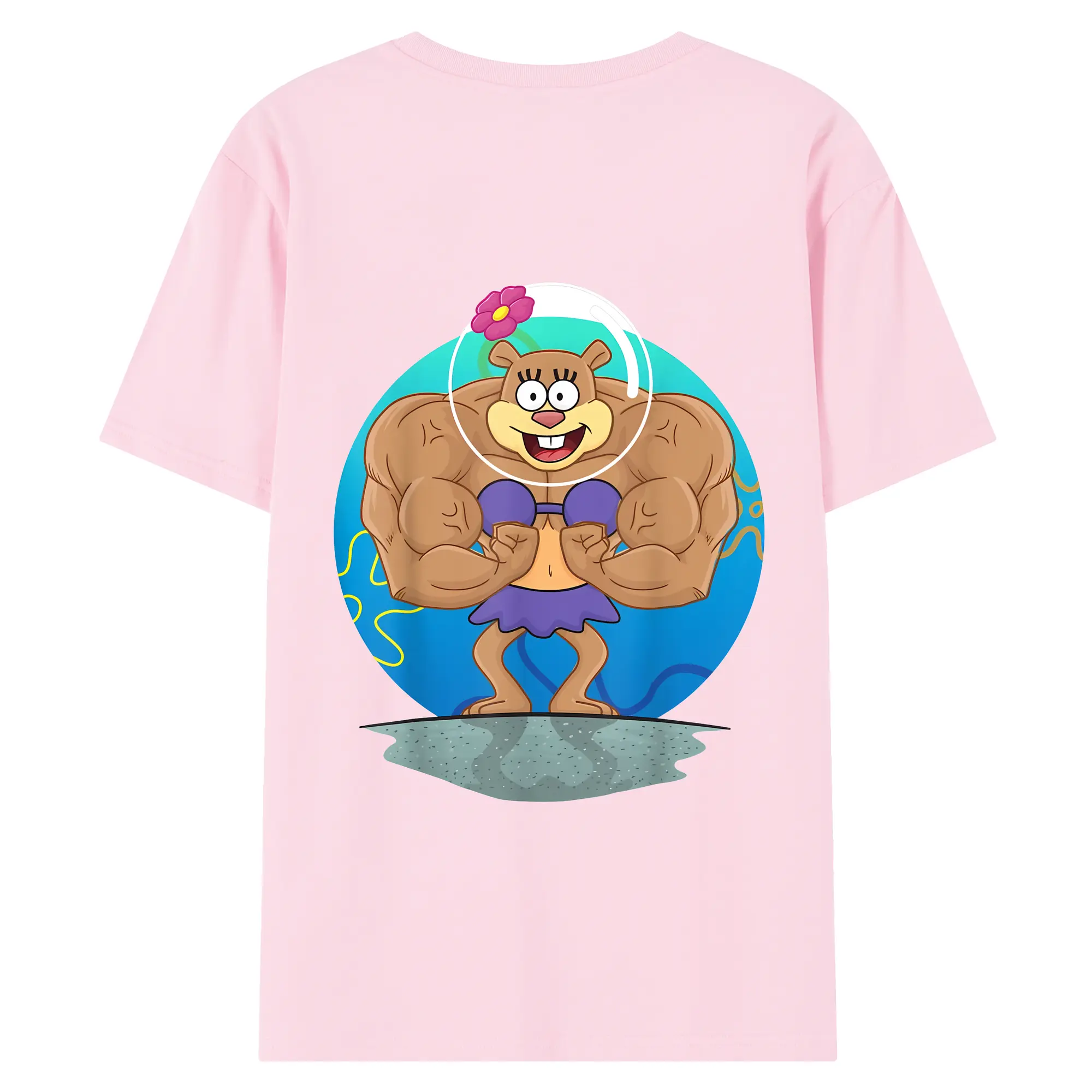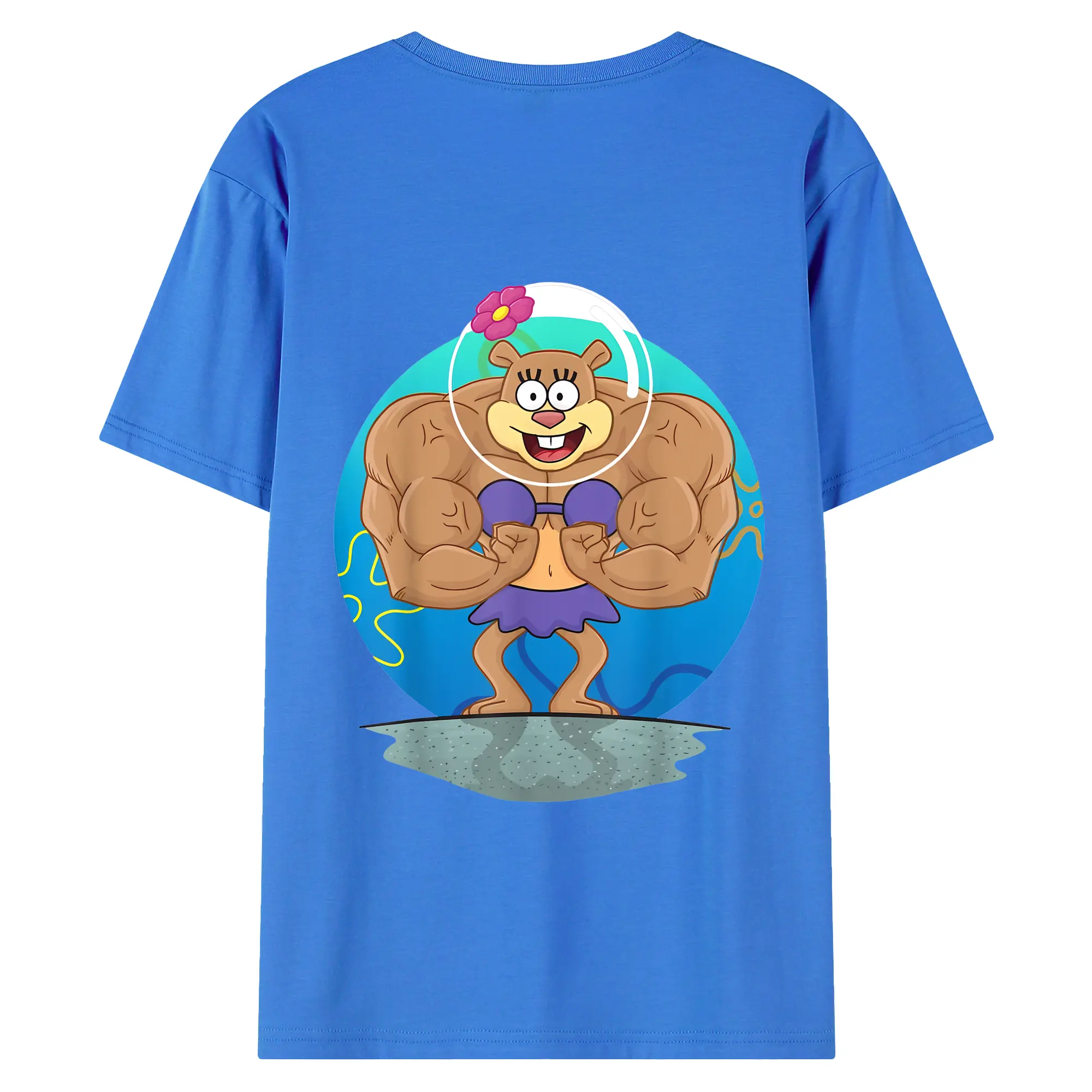 スポンジボブ グッズ サンディ - 綿100% 半袖Tシャツ ・ フロントプリント ・ 快適 通気性 ・ 日常使い 散歩 スポーツ用