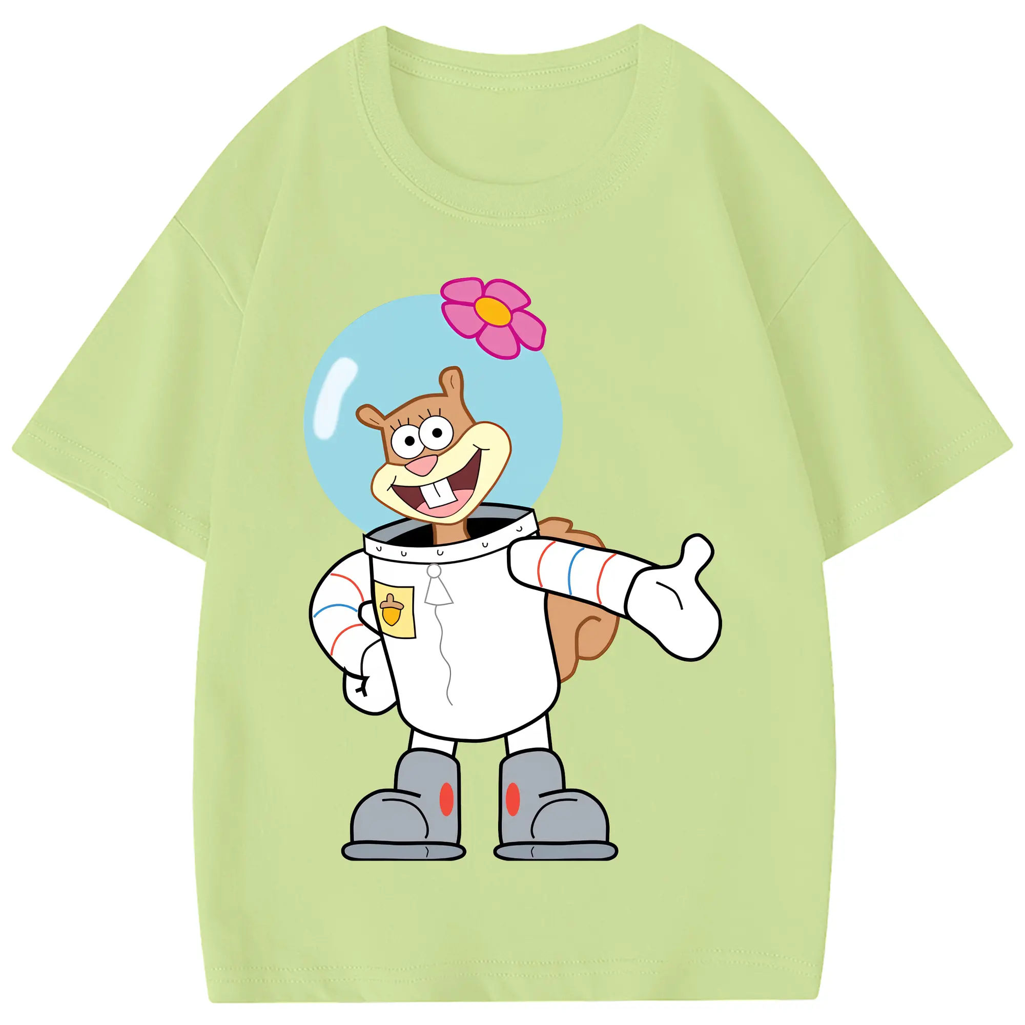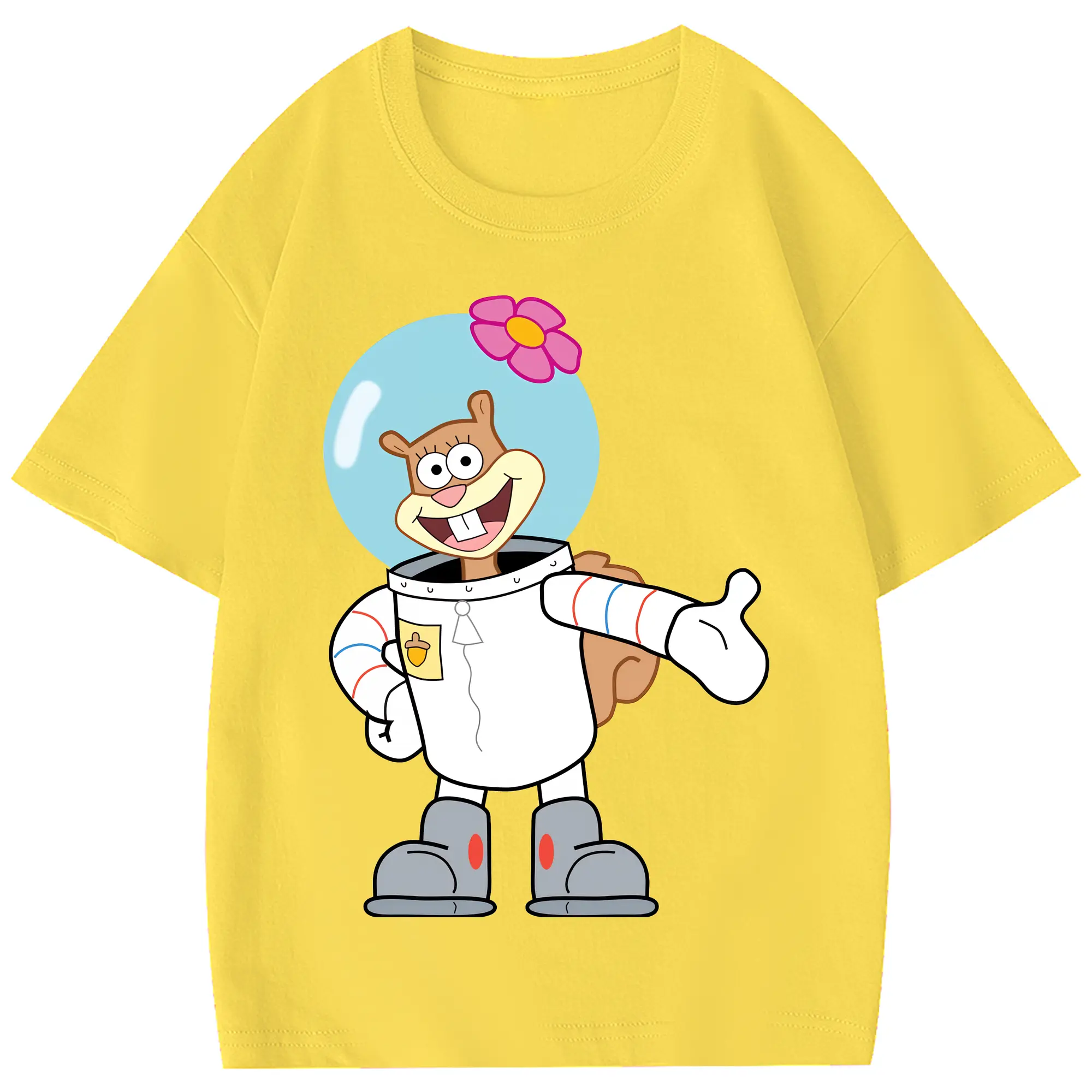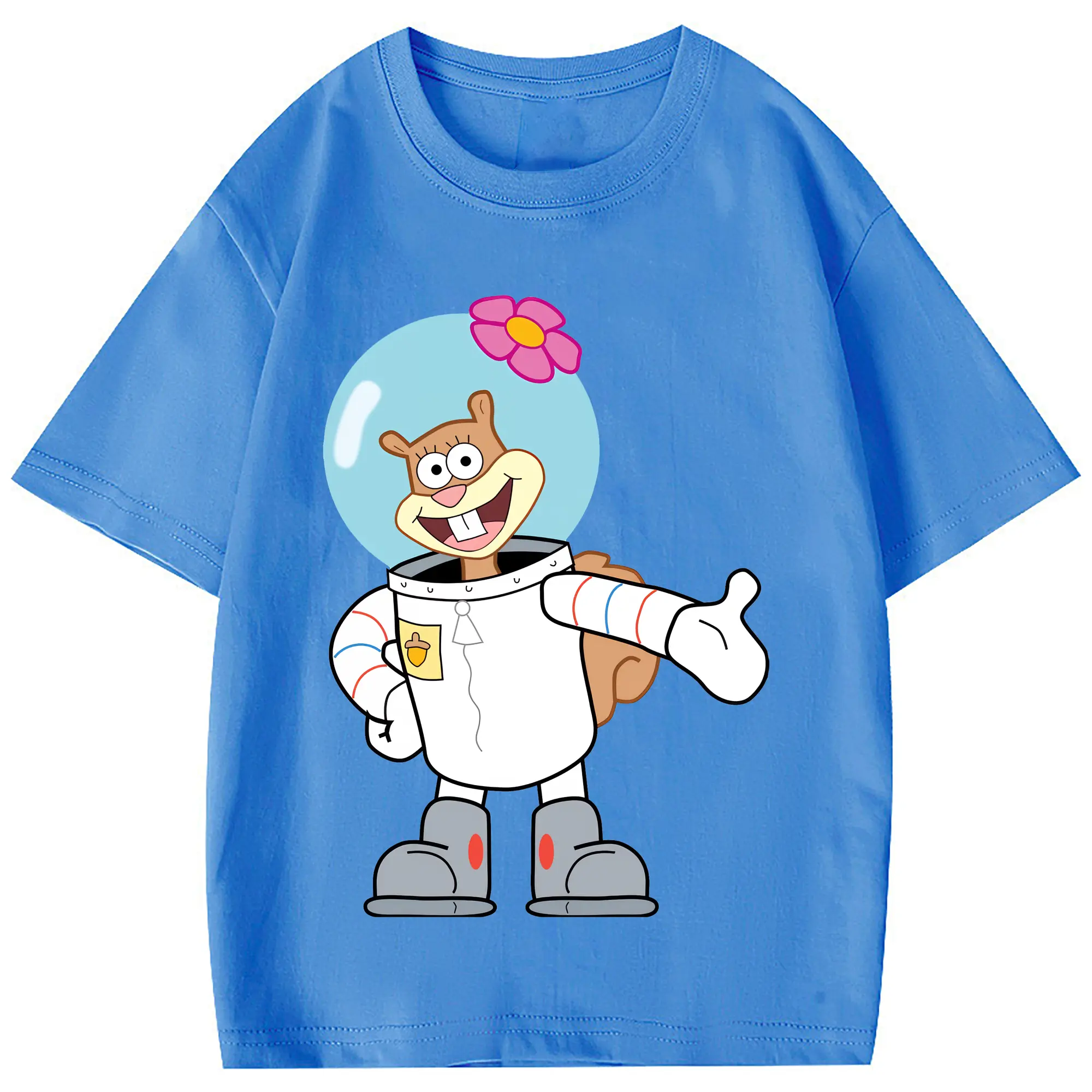 スポンジボブ グッズ サンディ - 綿100% 半袖Tシャツ ・ フロントプリント ・ 快適 通気性 ・ 日常使い 散歩 スポーツ用