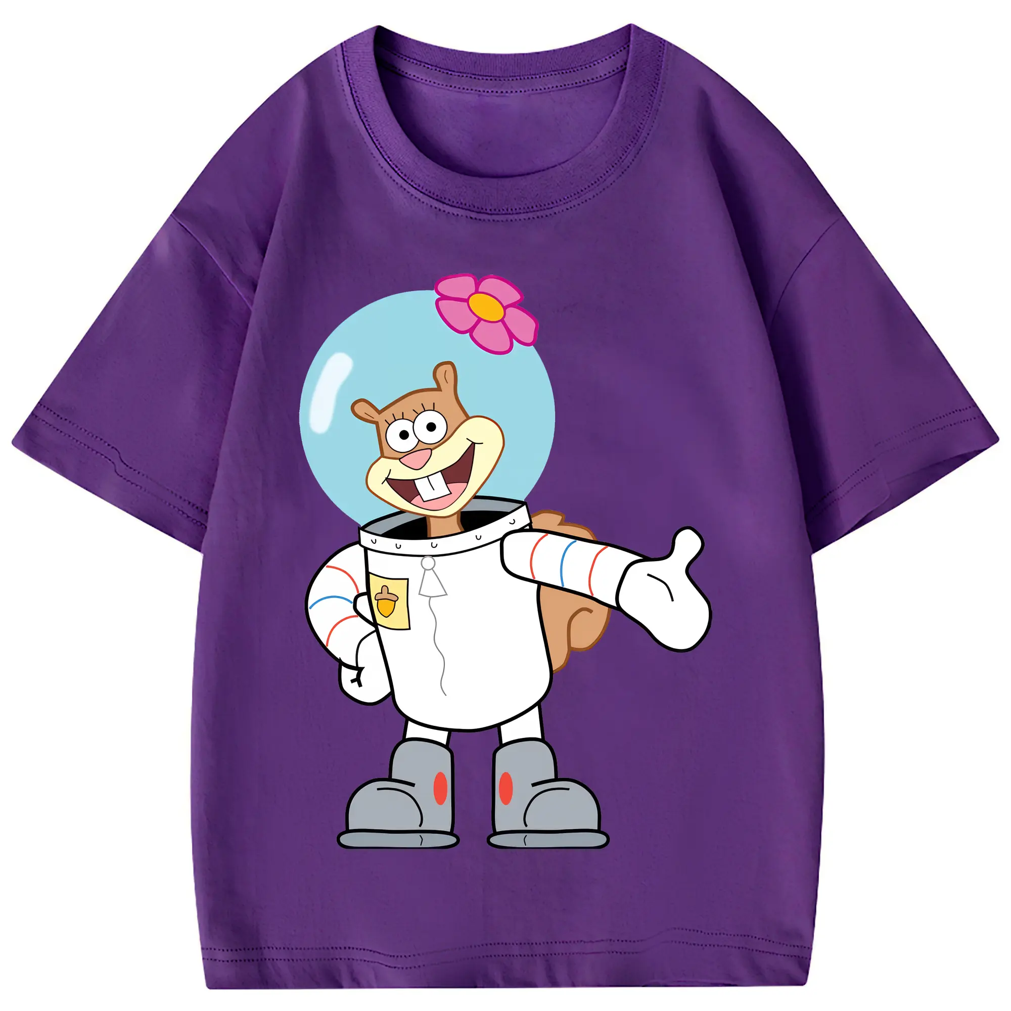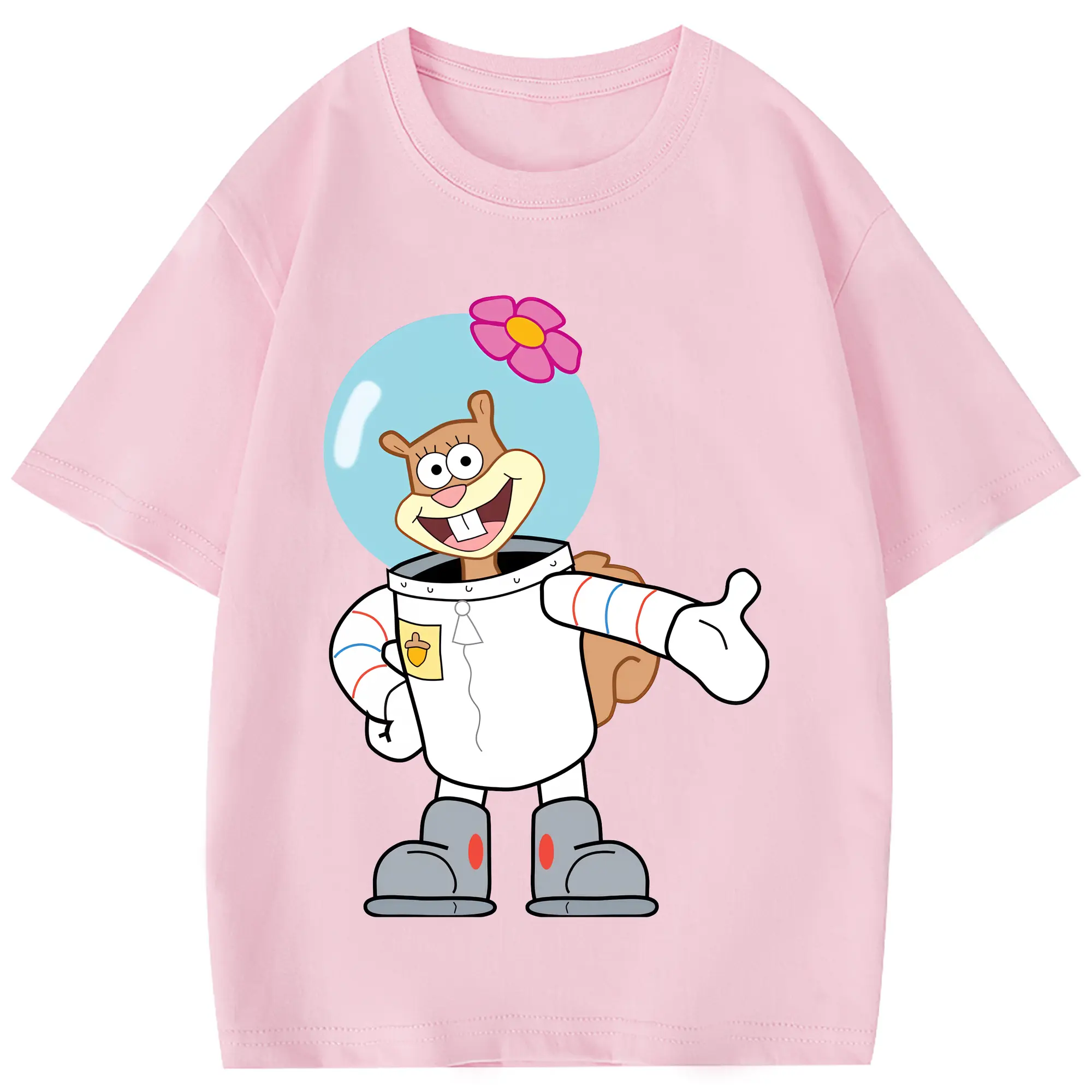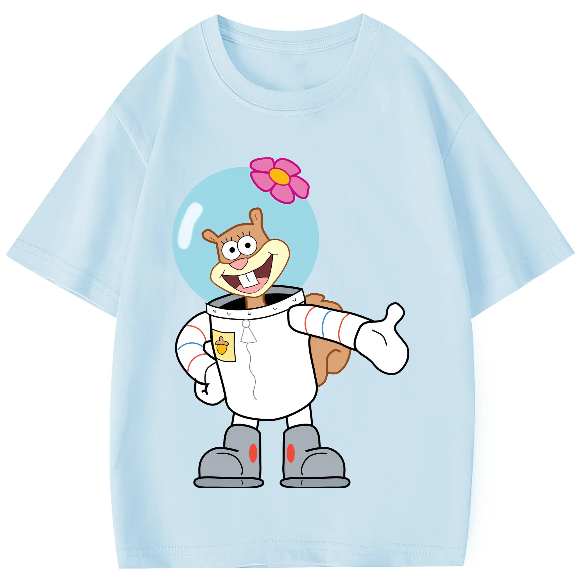 スポンジボブ グッズ サンディ - 綿100% 半袖Tシャツ ・ フロントプリント ・ 快適 通気性 ・ 日常使い 散歩 スポーツ用