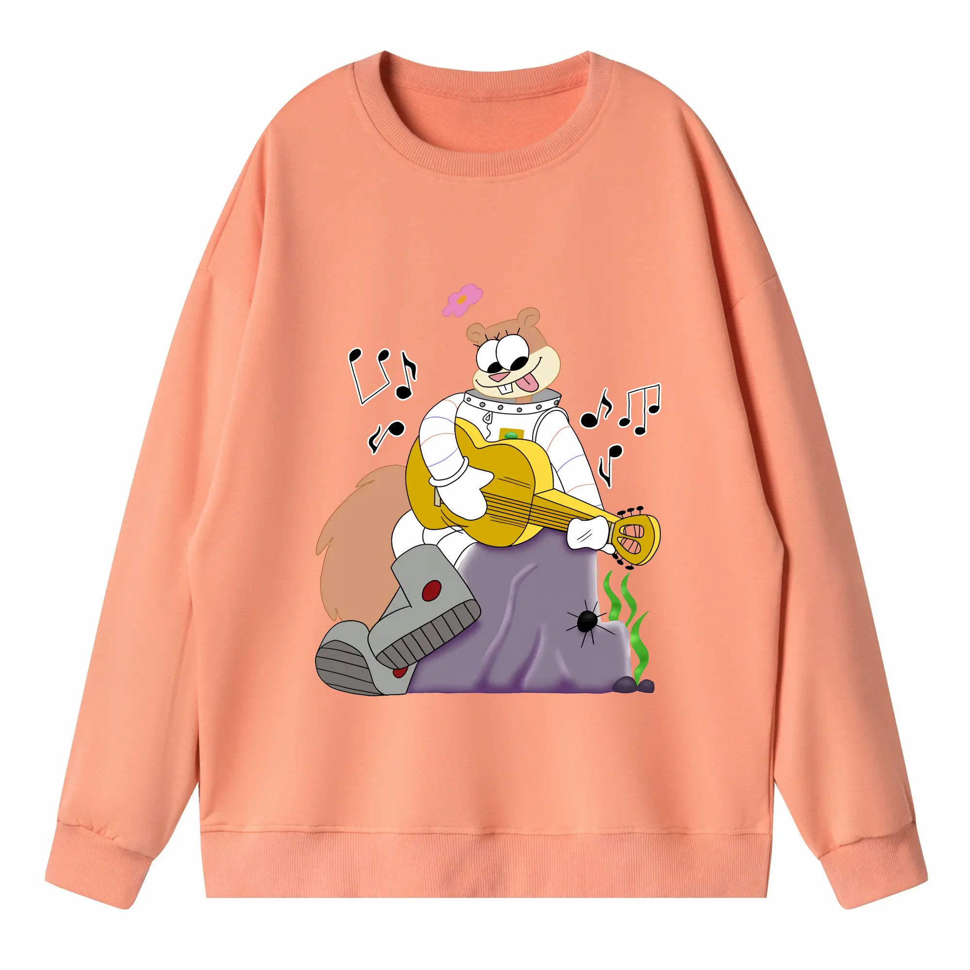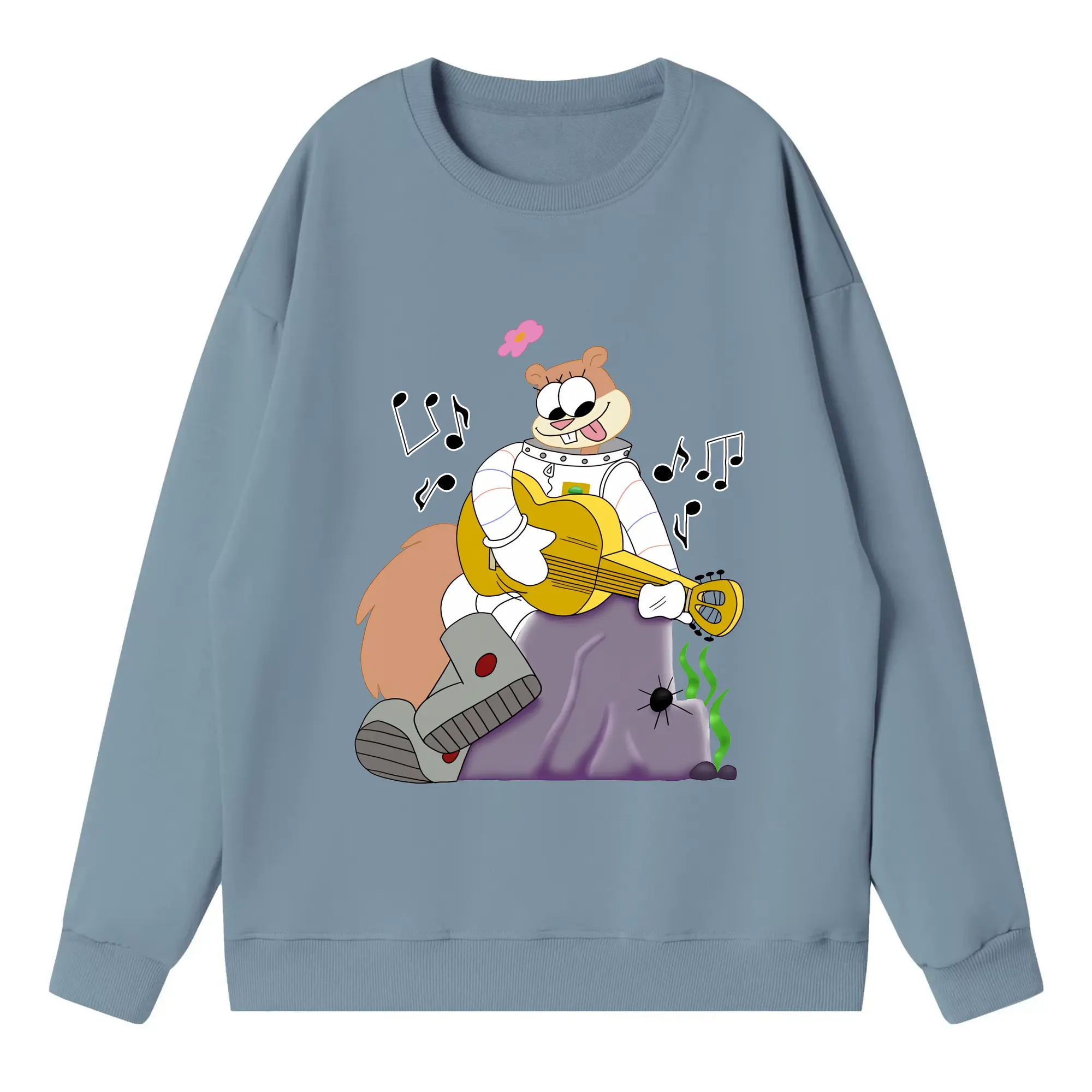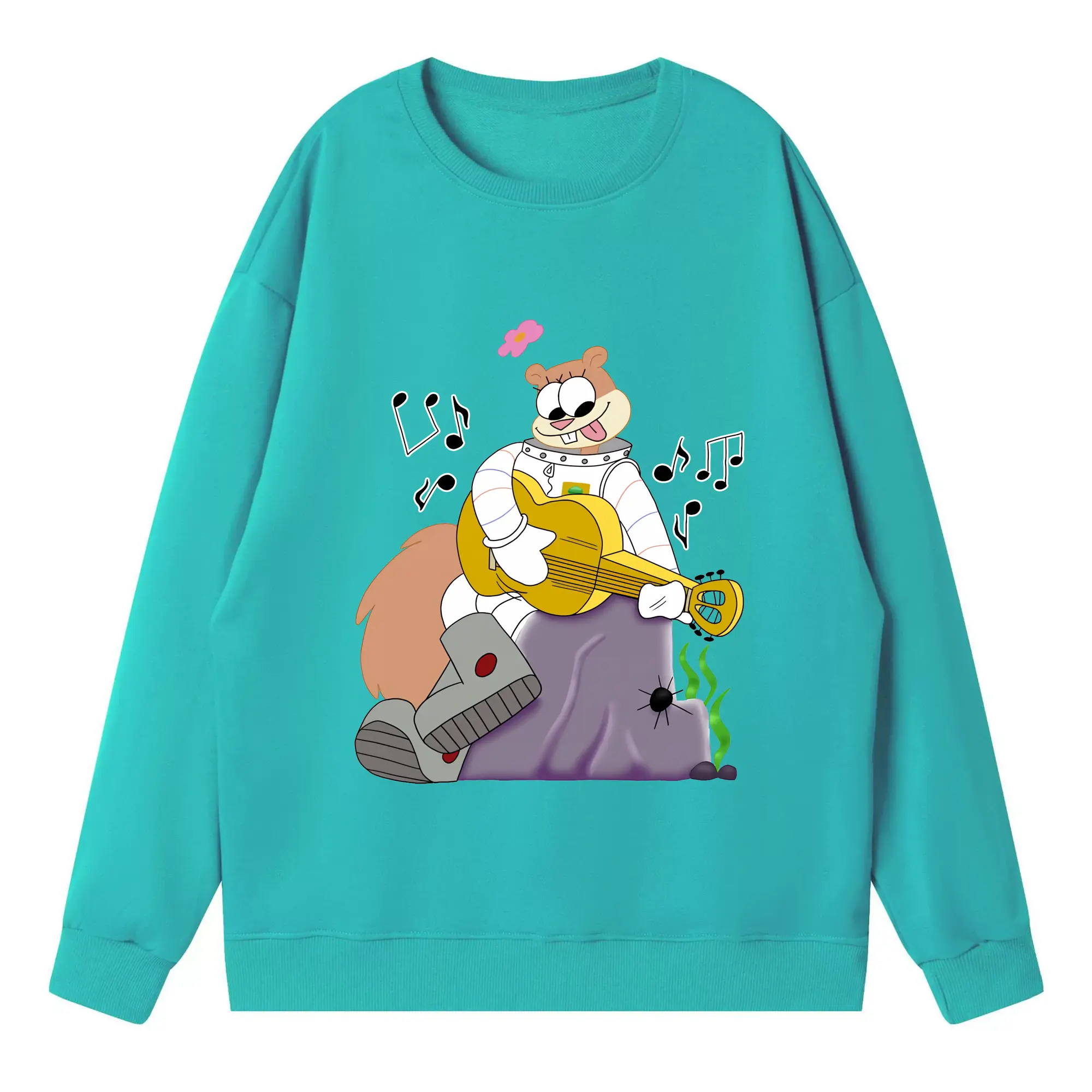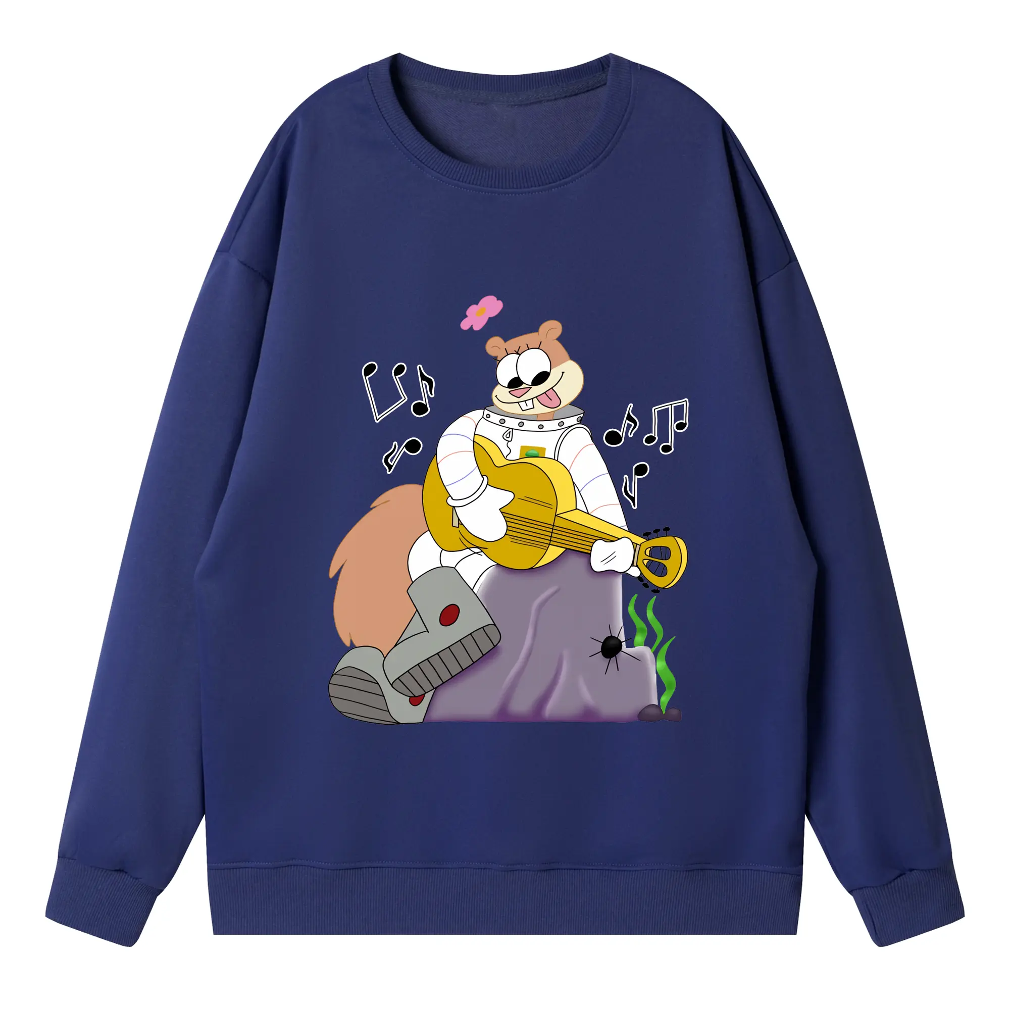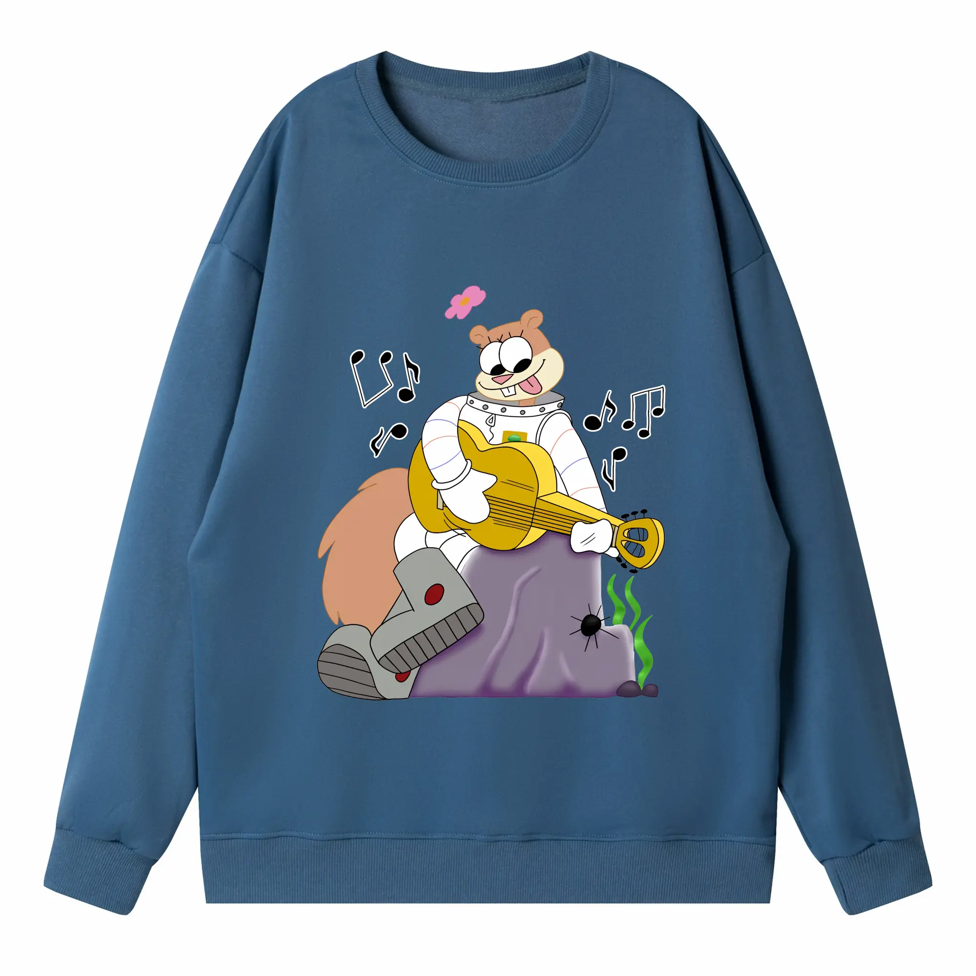 スポンジボブ グッズ サンディ - 高品質 クルーネック スウェット ・ コットン59% ポリエステル41% ・ ユニセックス 長袖 トレーナー ・ カジュアル デイリー スポーツ 散歩用