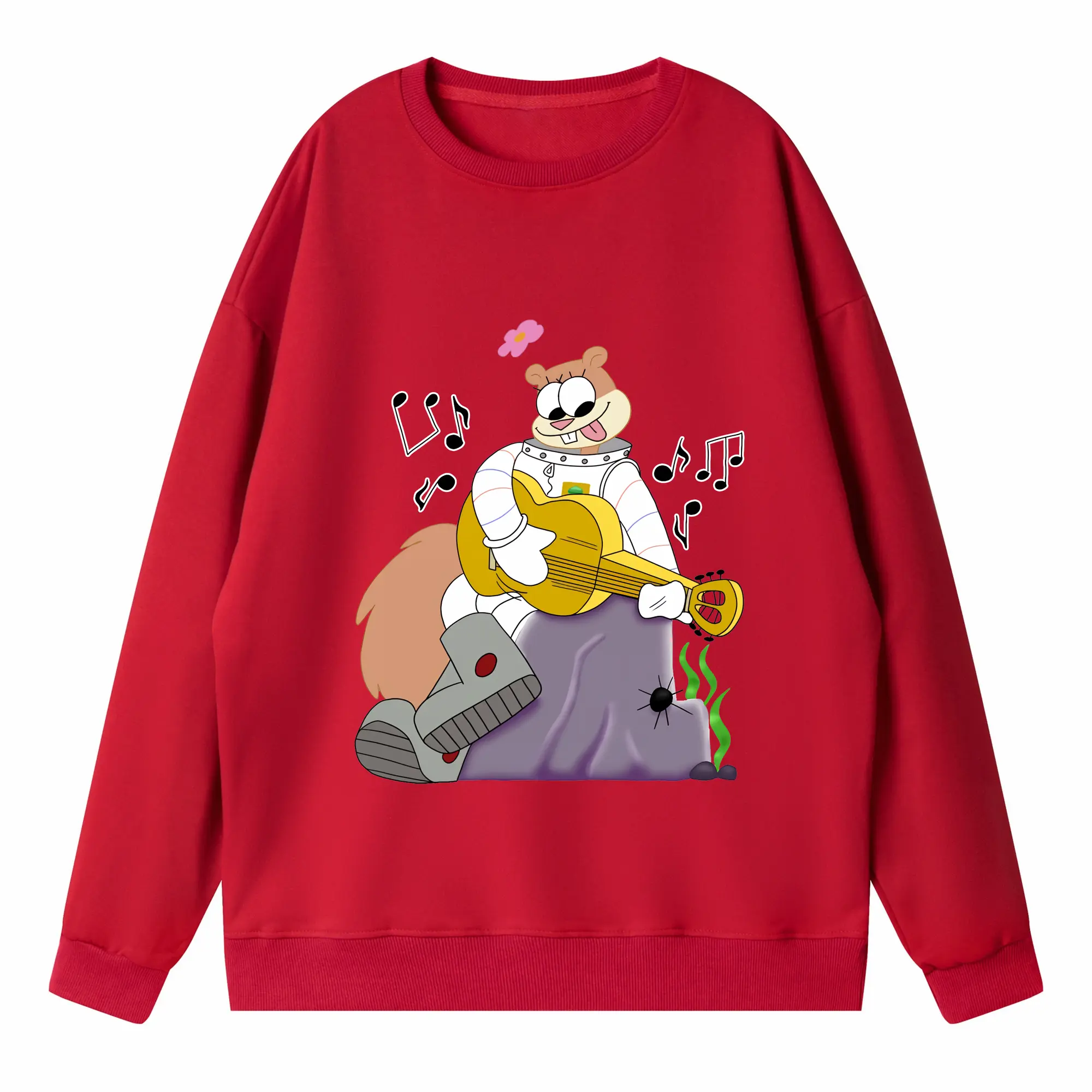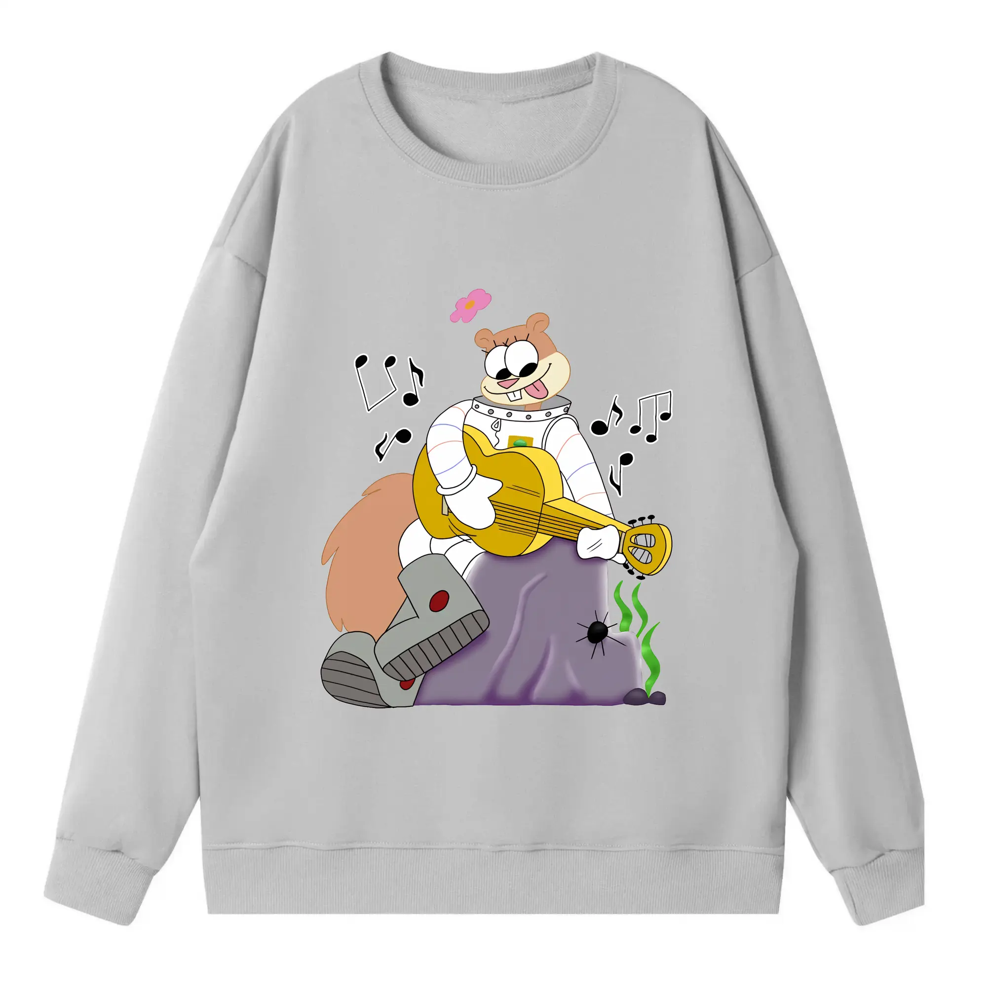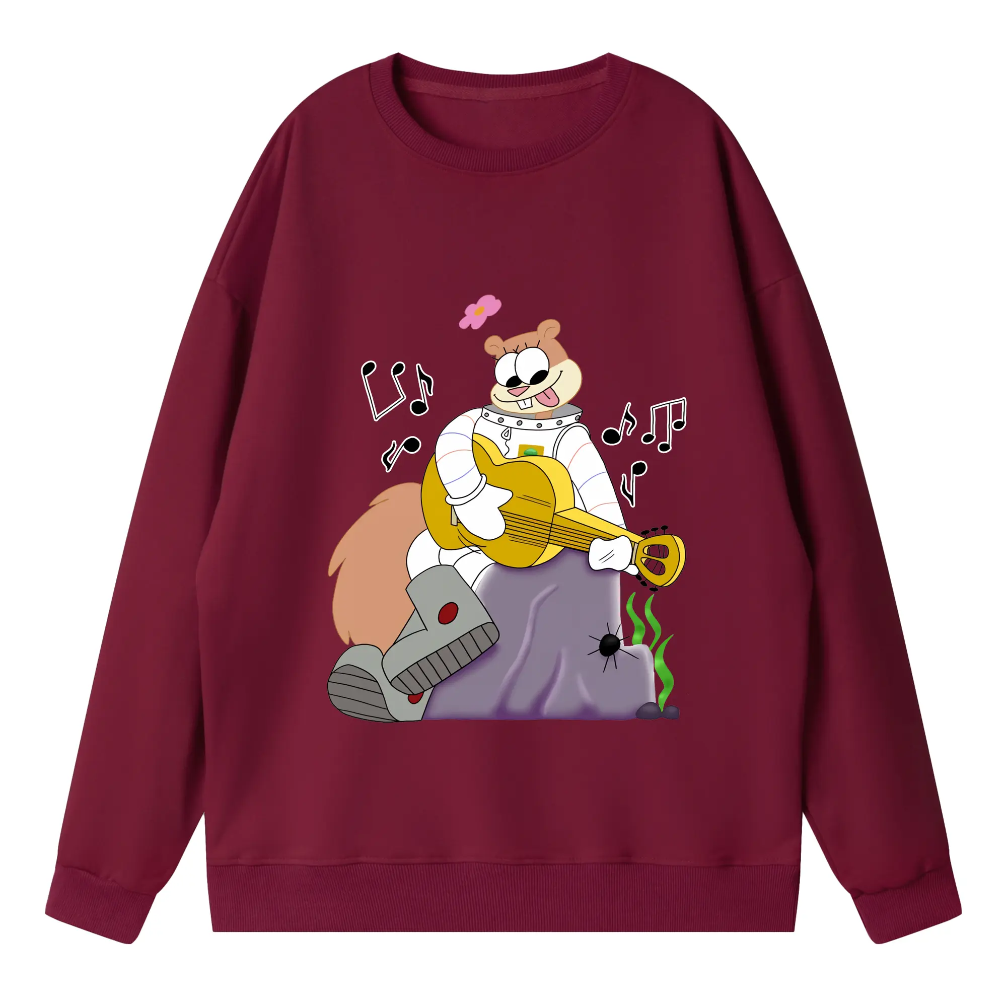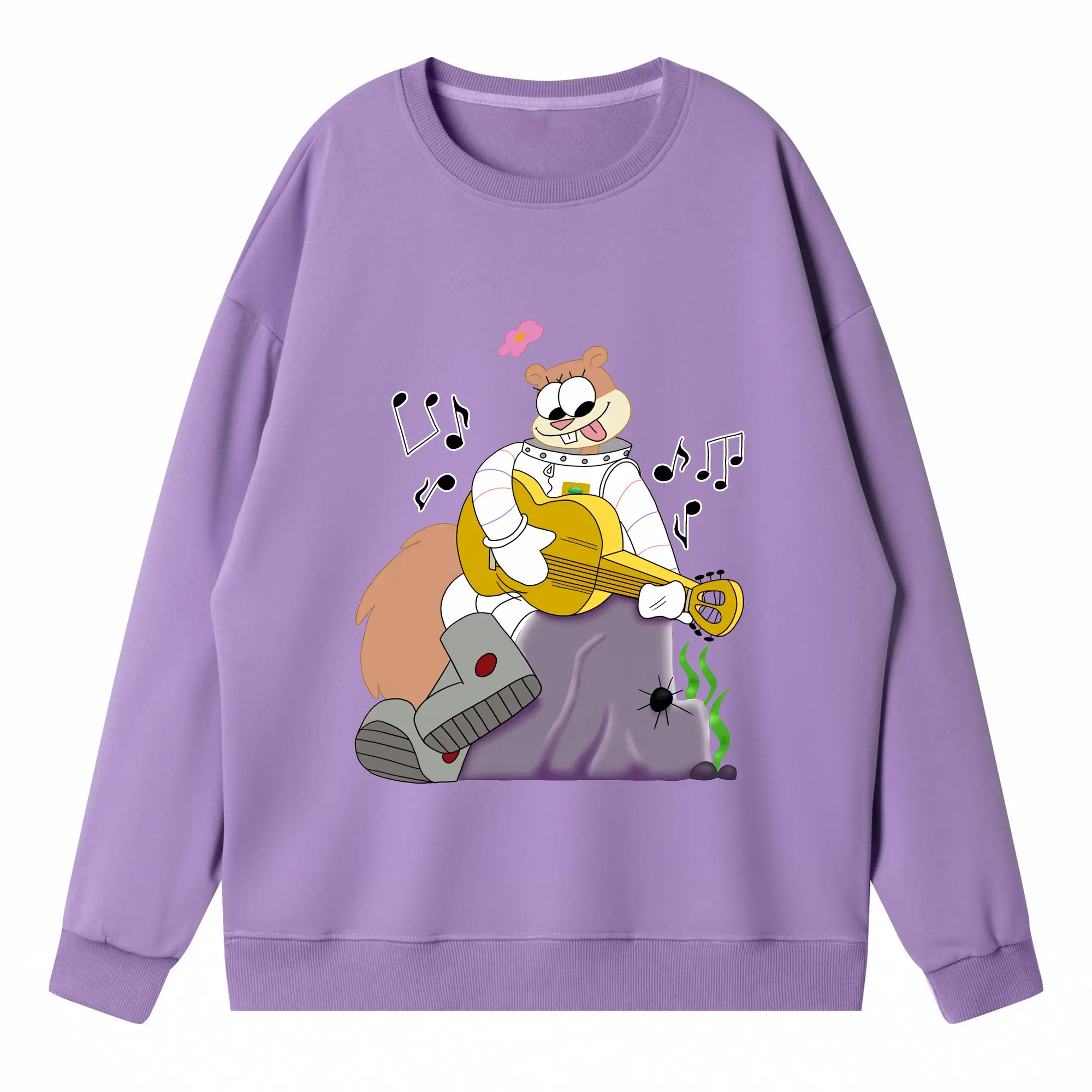 スポンジボブ グッズ サンディ - 高品質 クルーネック スウェット ・ コットン59% ポリエステル41% ・ ユニセックス 長袖 トレーナー ・ カジュアル デイリー スポーツ 散歩用