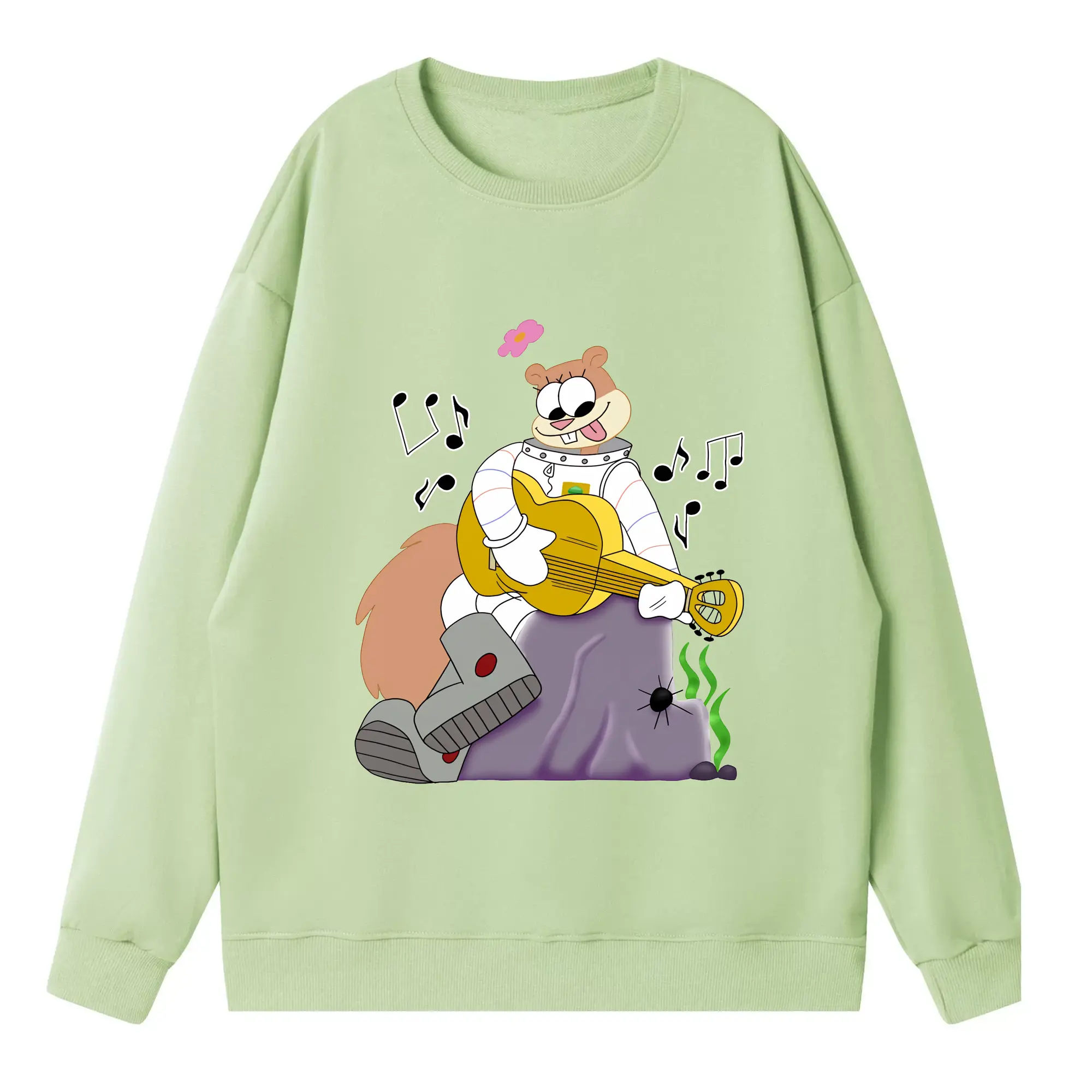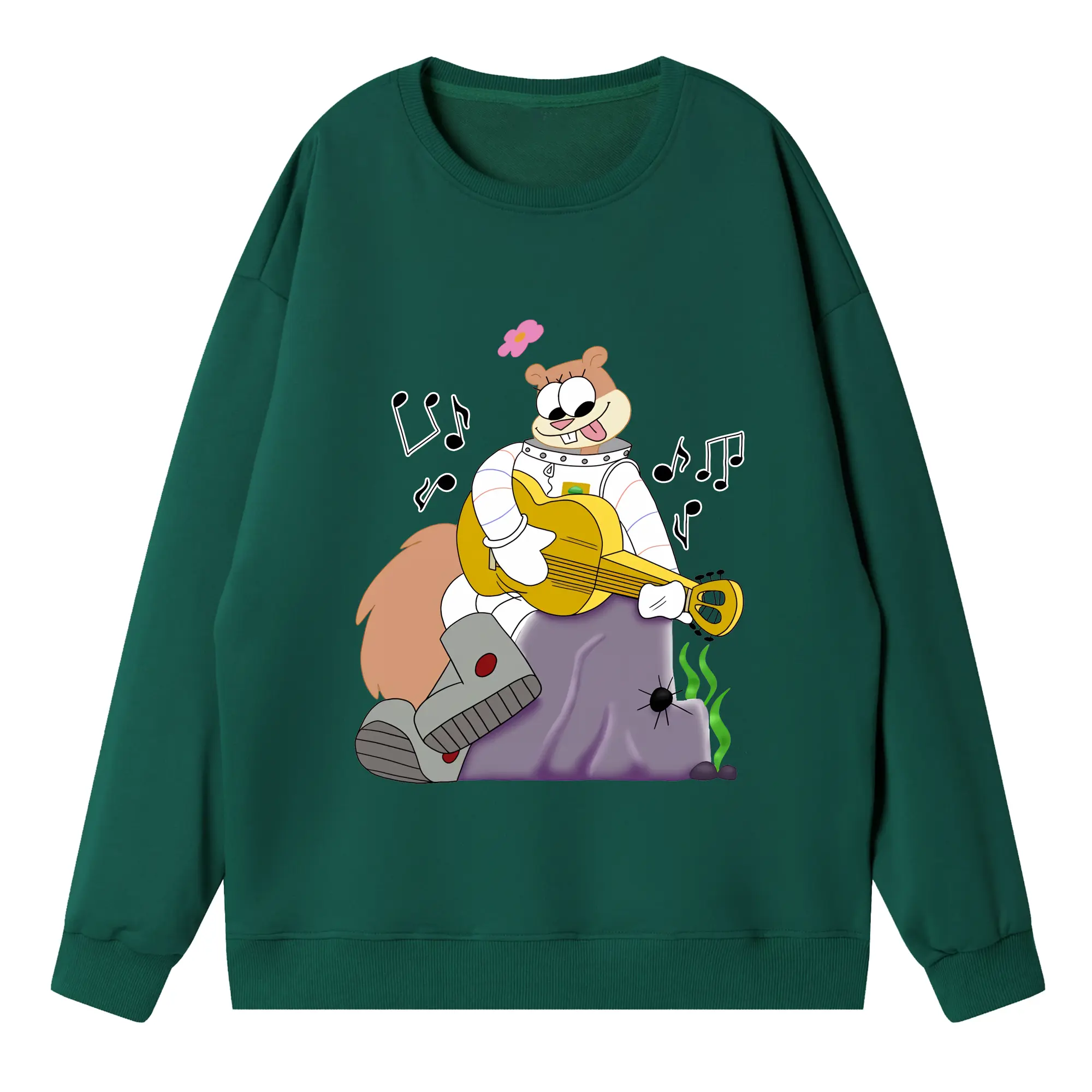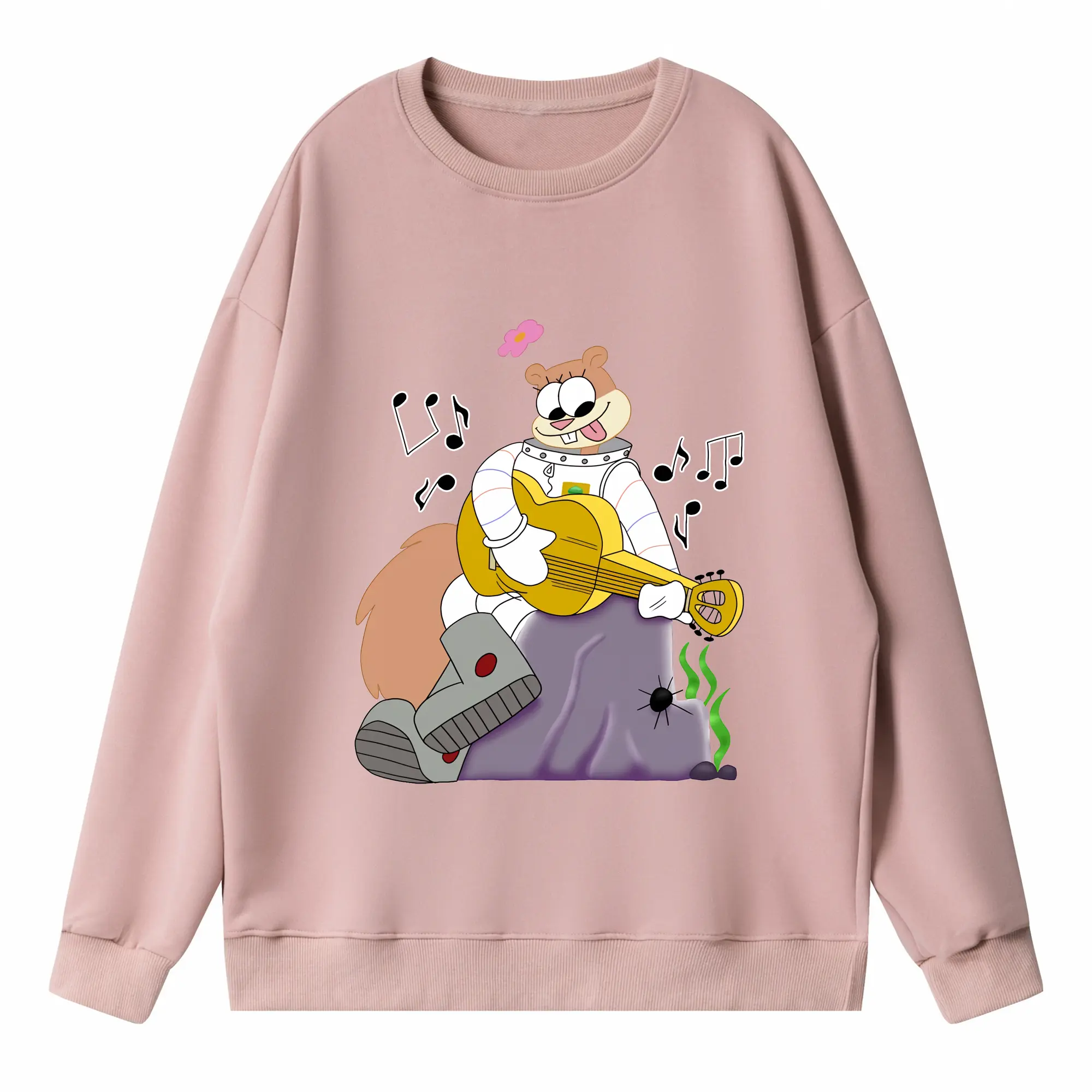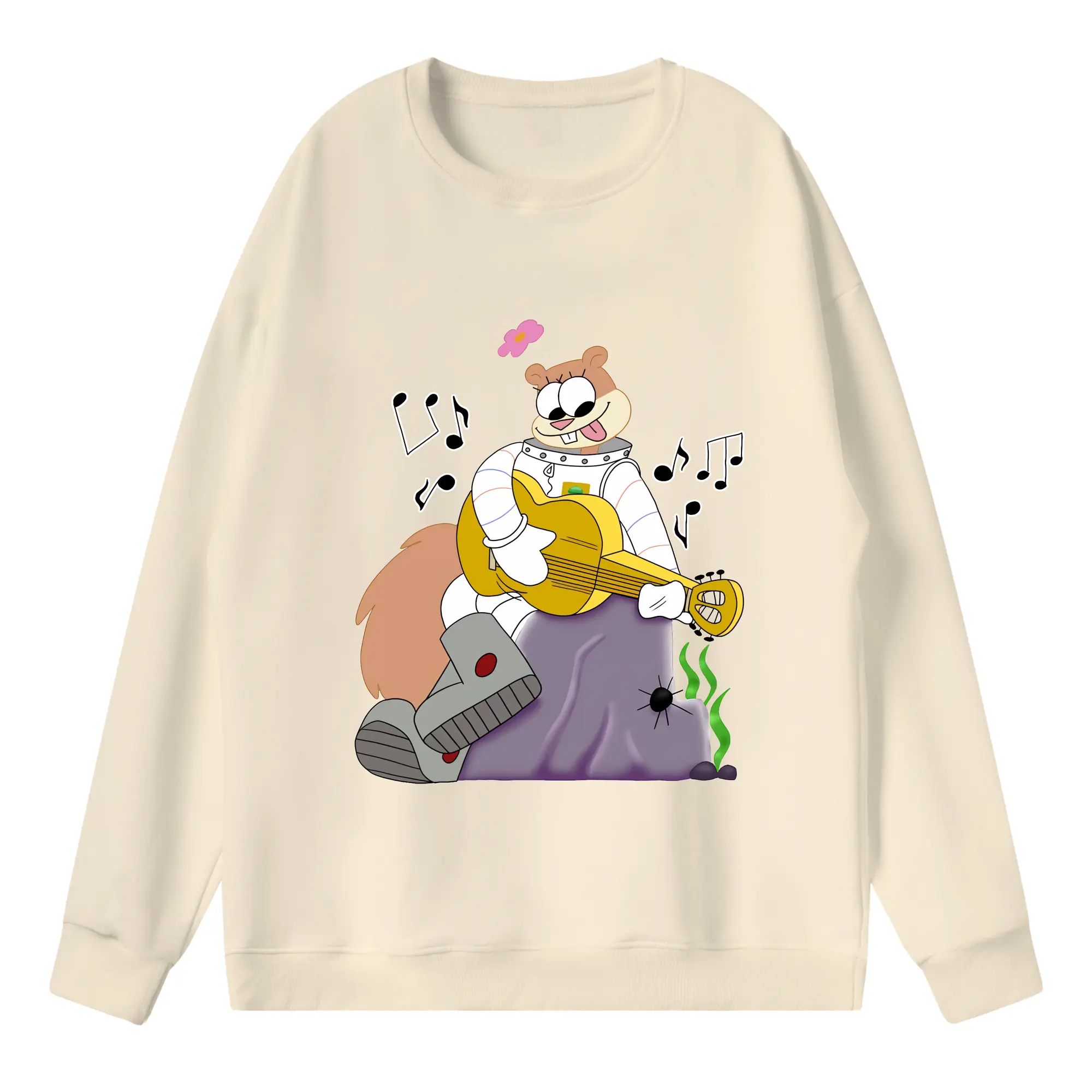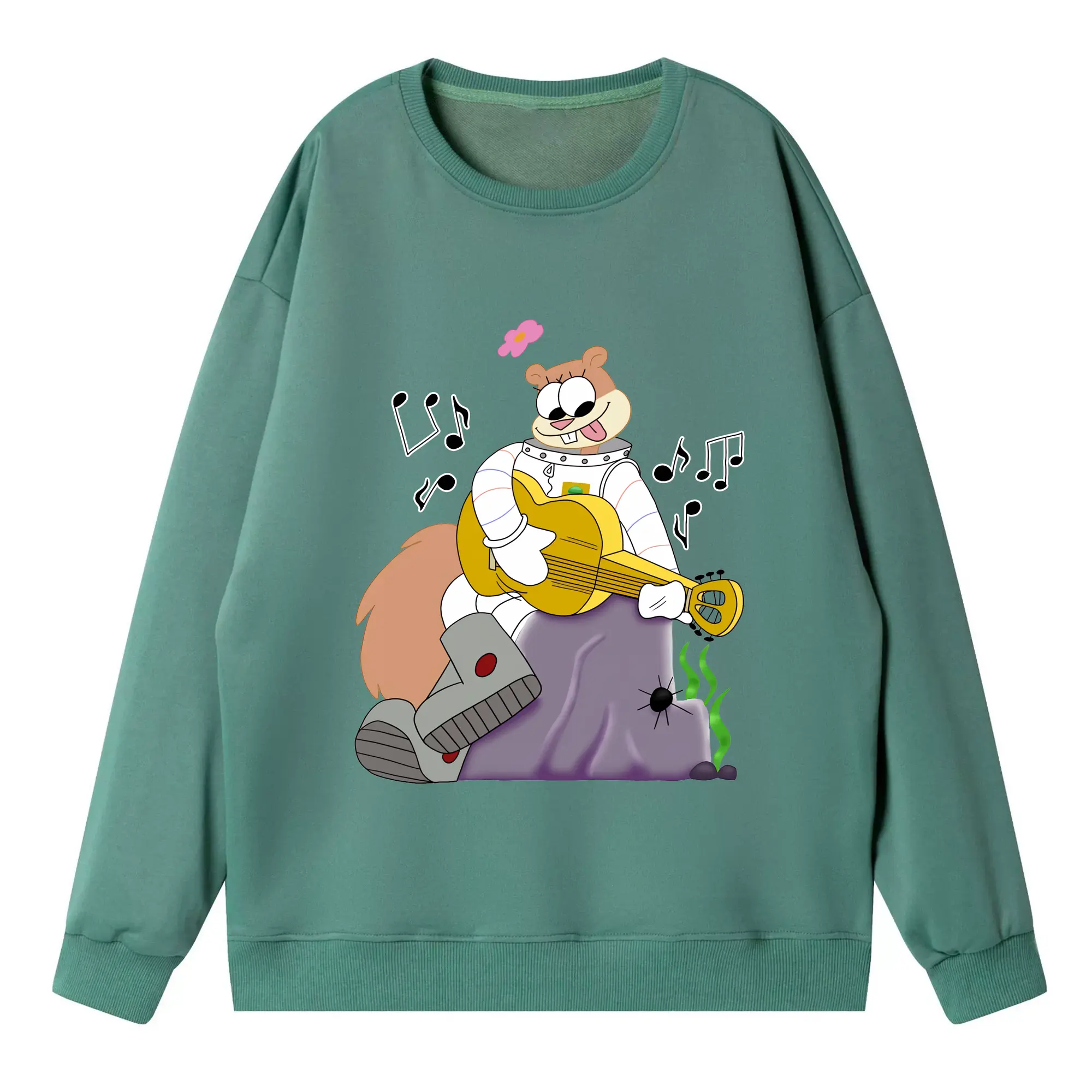 スポンジボブ グッズ サンディ - 高品質 クルーネック スウェット ・ コットン59% ポリエステル41% ・ ユニセックス 長袖 トレーナー ・ カジュアル デイリー スポーツ 散歩用