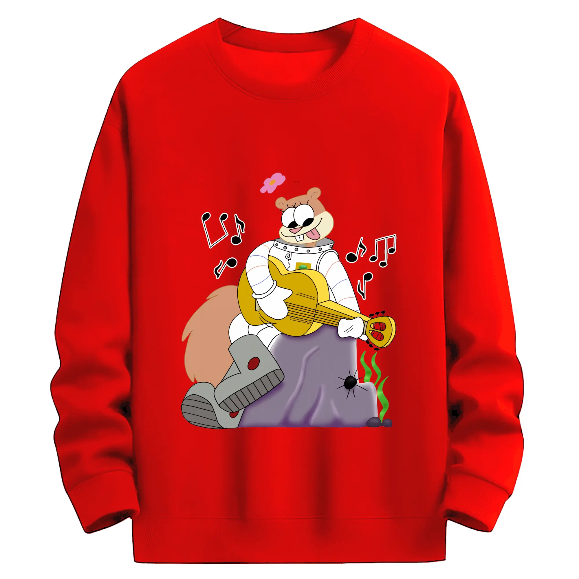 スポンジボブ グッズ サンディ - 高品質 クルーネック スウェット ・ コットン59% ポリエステル41% ・ ユニセックス 長袖 トレーナー ・ カジュアル デイリー スポーツ 散歩用