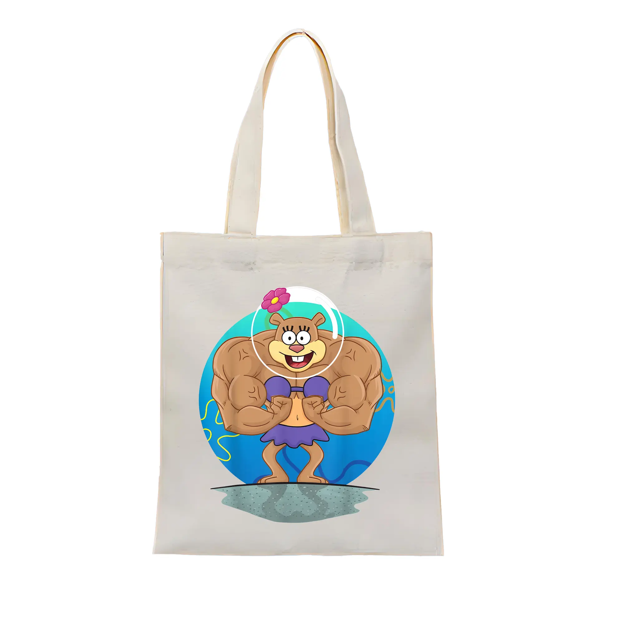 スポンジボブ グッズ サンディ - 縦型キャンバス手提げバッグ(トートバッグ) ・ キャンバス素材 ・ ショッピング用 ・ 軽量 丈夫 お手入れ簡単