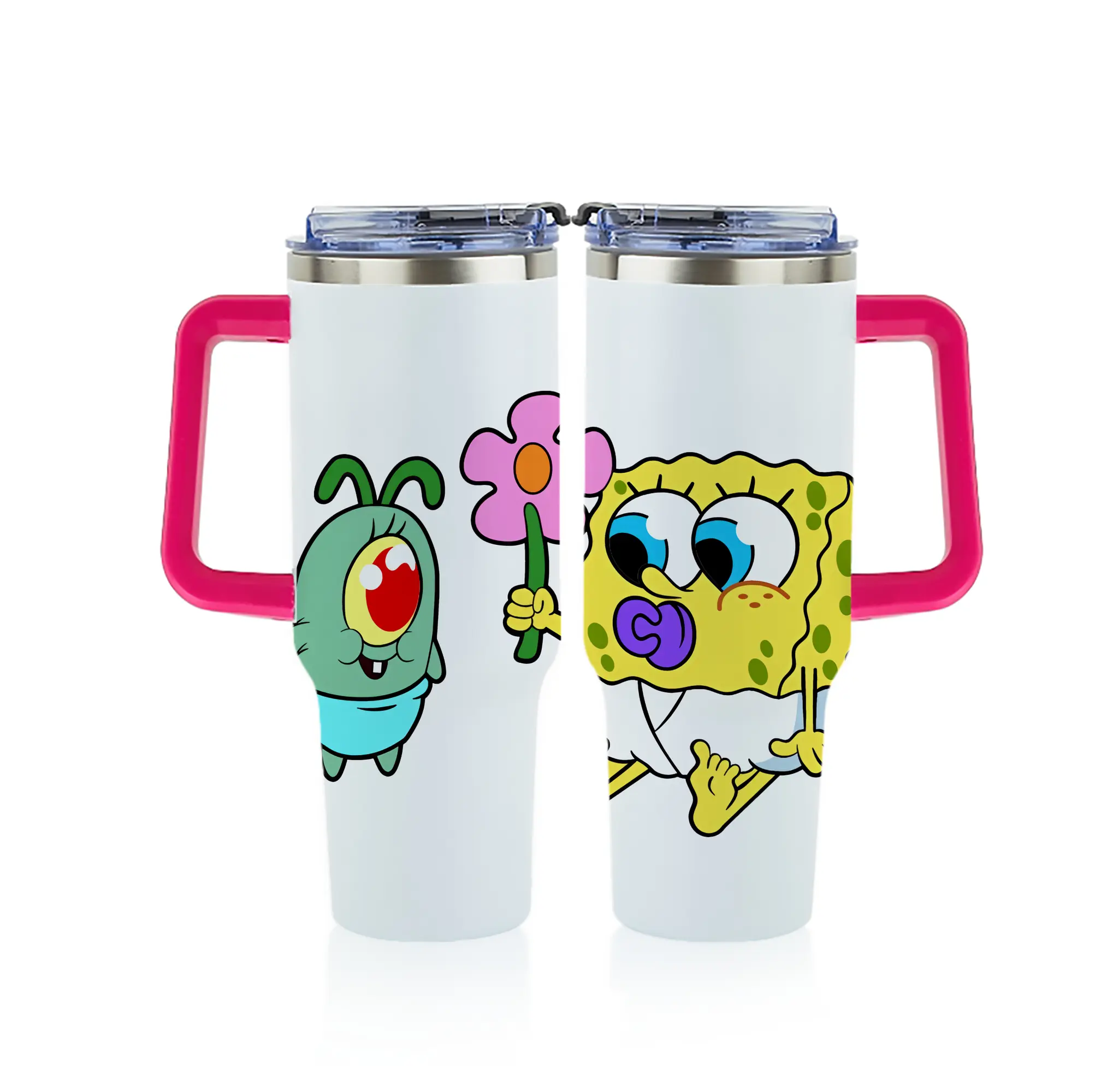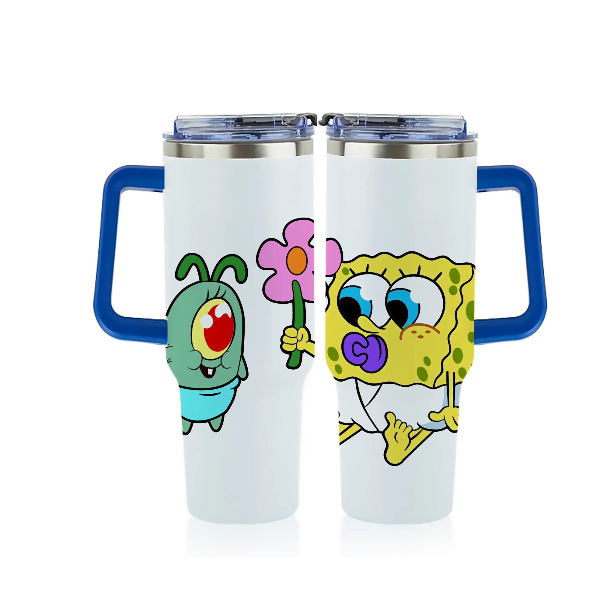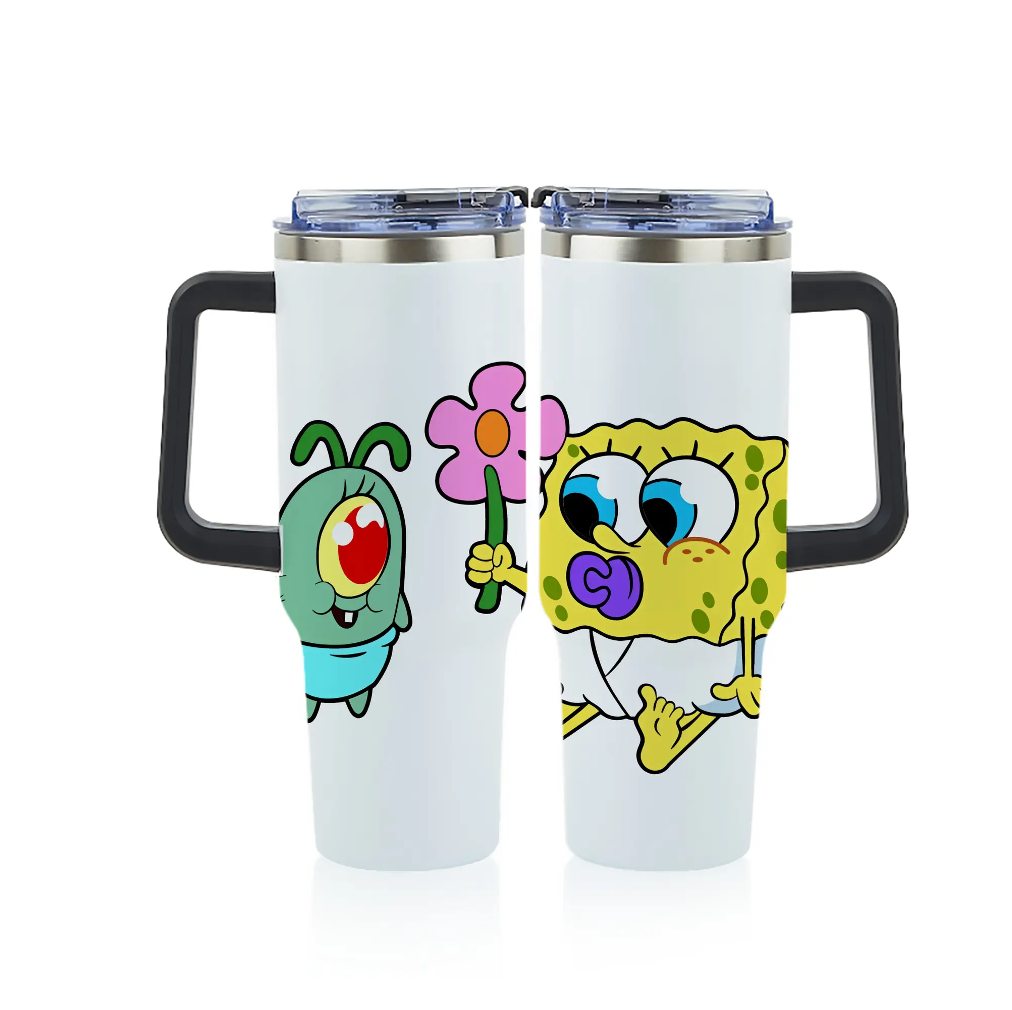 スポンジボブ グッズ プランクトン - 1200mL フルプリント車用タンブラー ・ 304ステンレス 内側 ・ 201ステンレス 外側 ・ 保温 保冷 ・ 通勤 ドライブ アウトドア用
