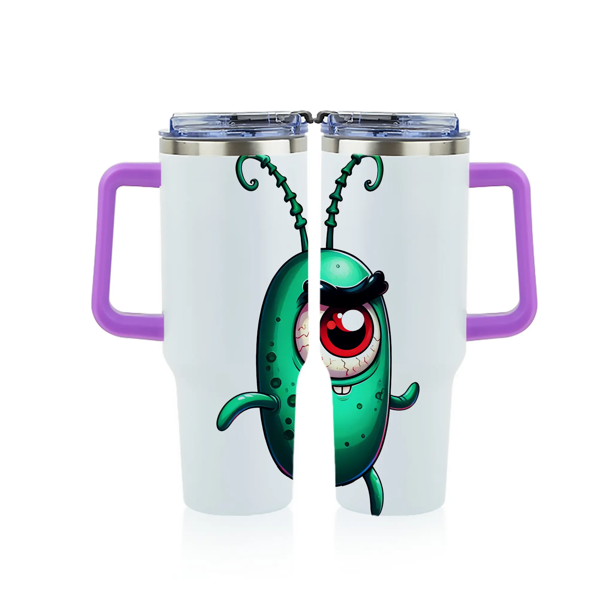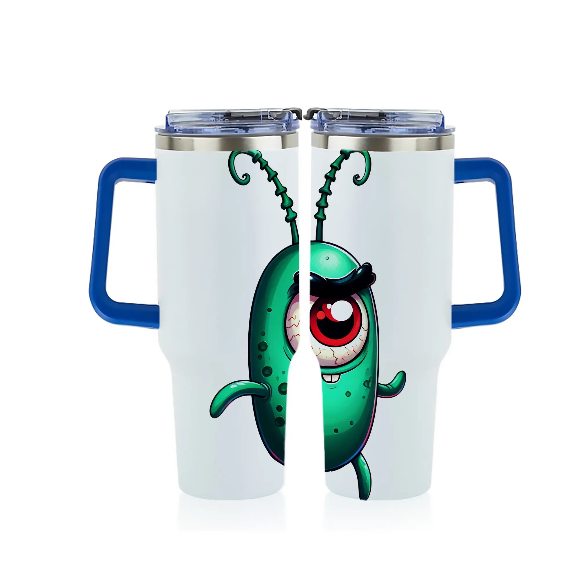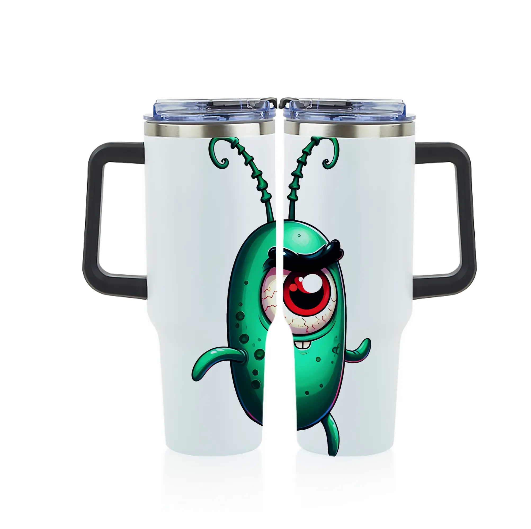 スポンジボブ グッズ プランクトン - 1200mL フルプリント車用タンブラー ・ 304ステンレス 内側 ・ 201ステンレス 外側 ・ 保温 保冷 ・ 通勤 ドライブ アウトドア用