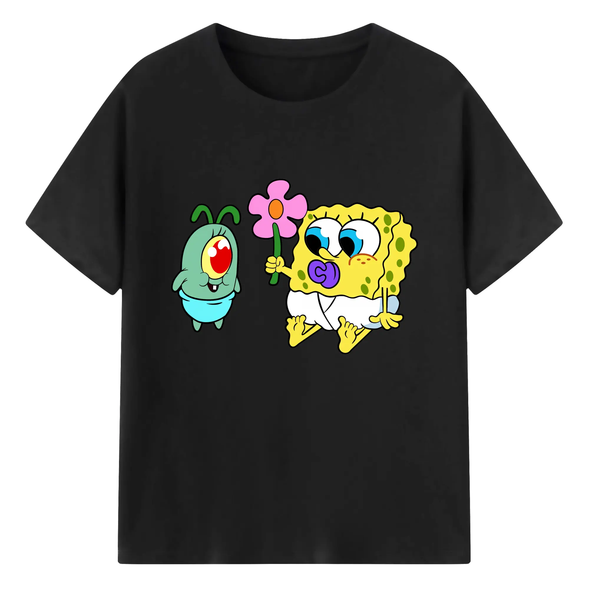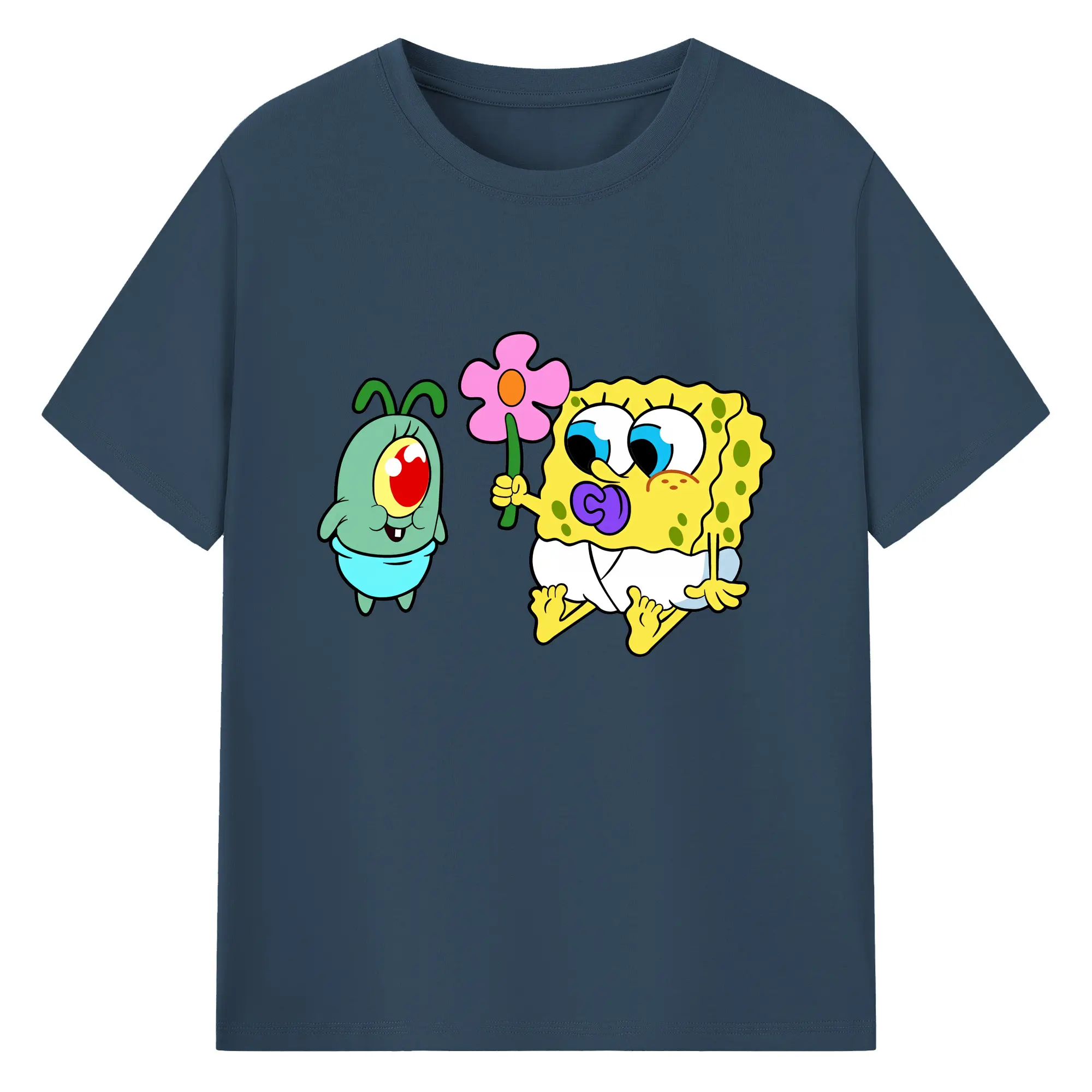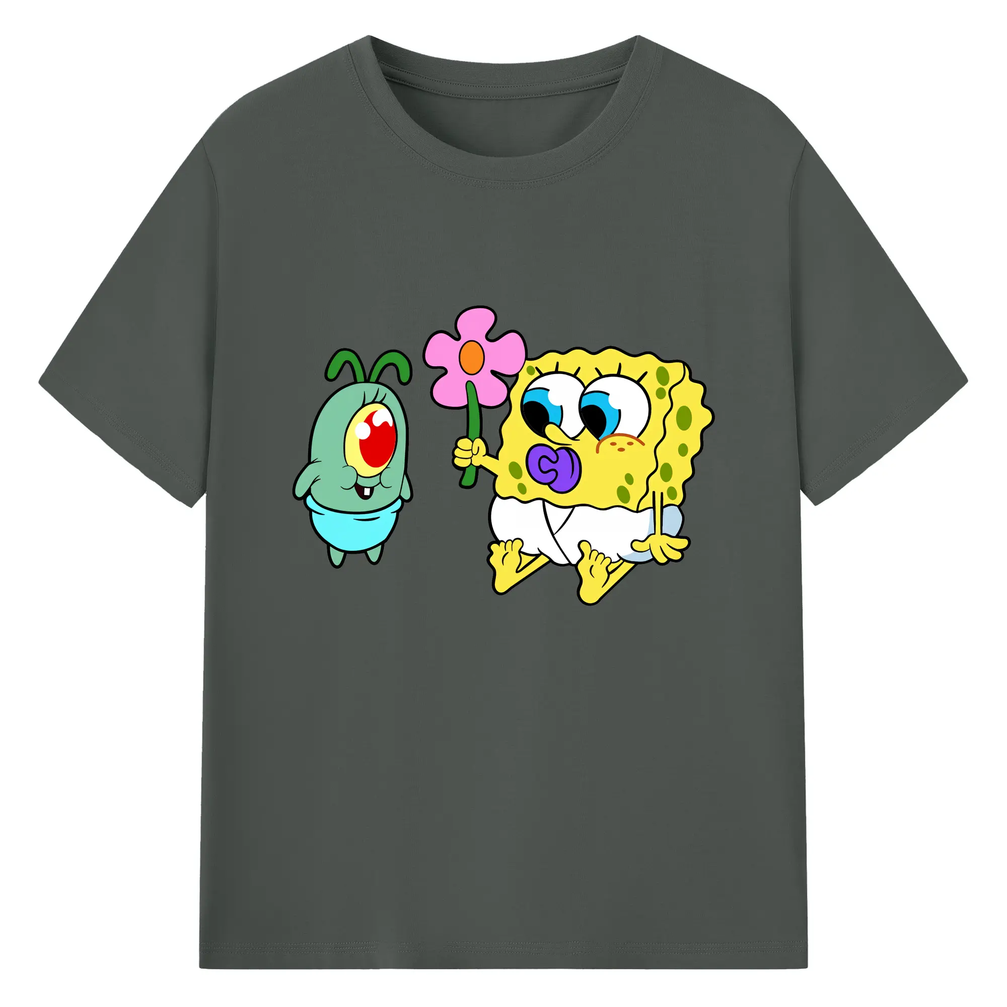 スポンジボブ グッズ プランクトン - 綿100% 半袖Tシャツ ・ バックプリント ・ 快適 通気性 ・ 日常使い 散歩 スポーツ用