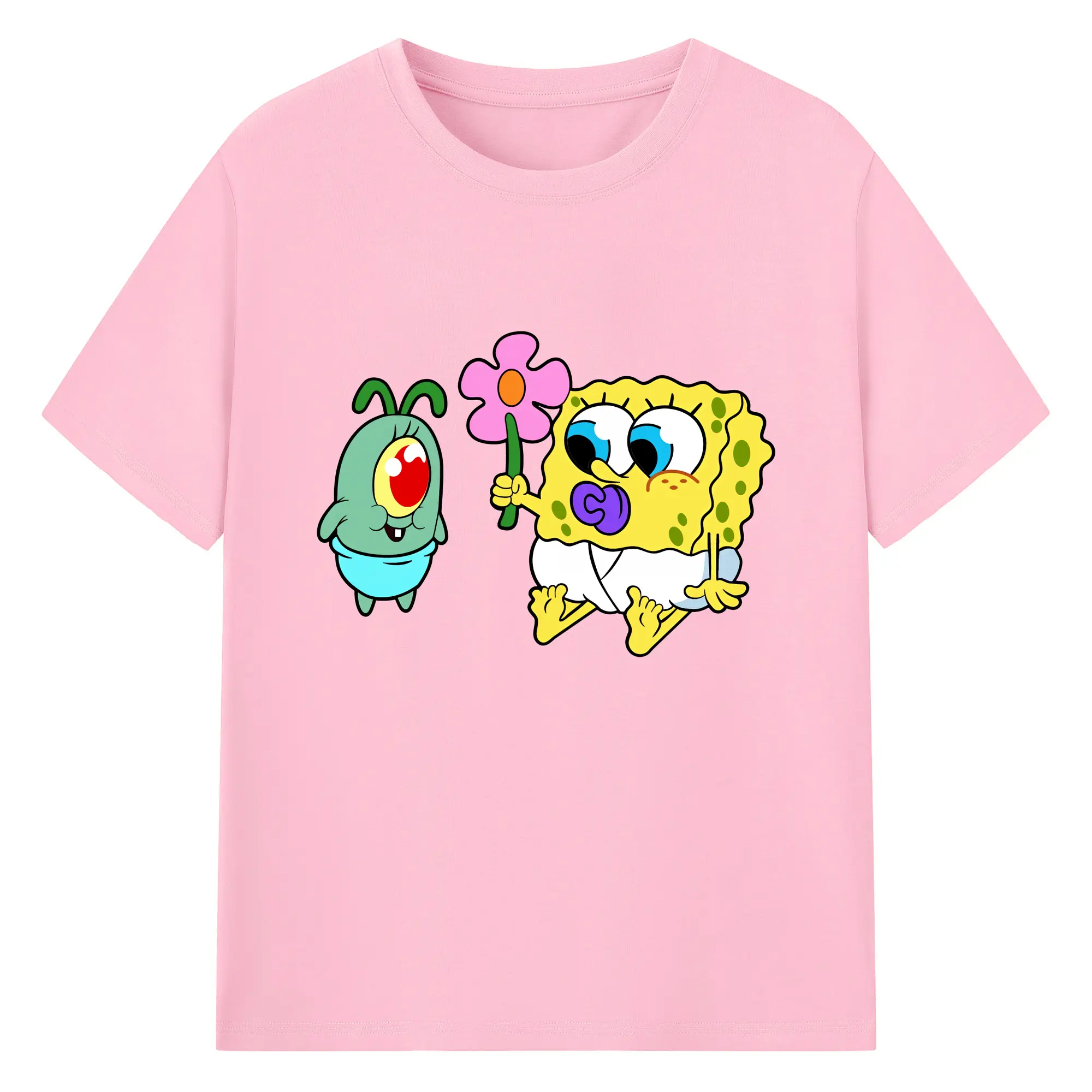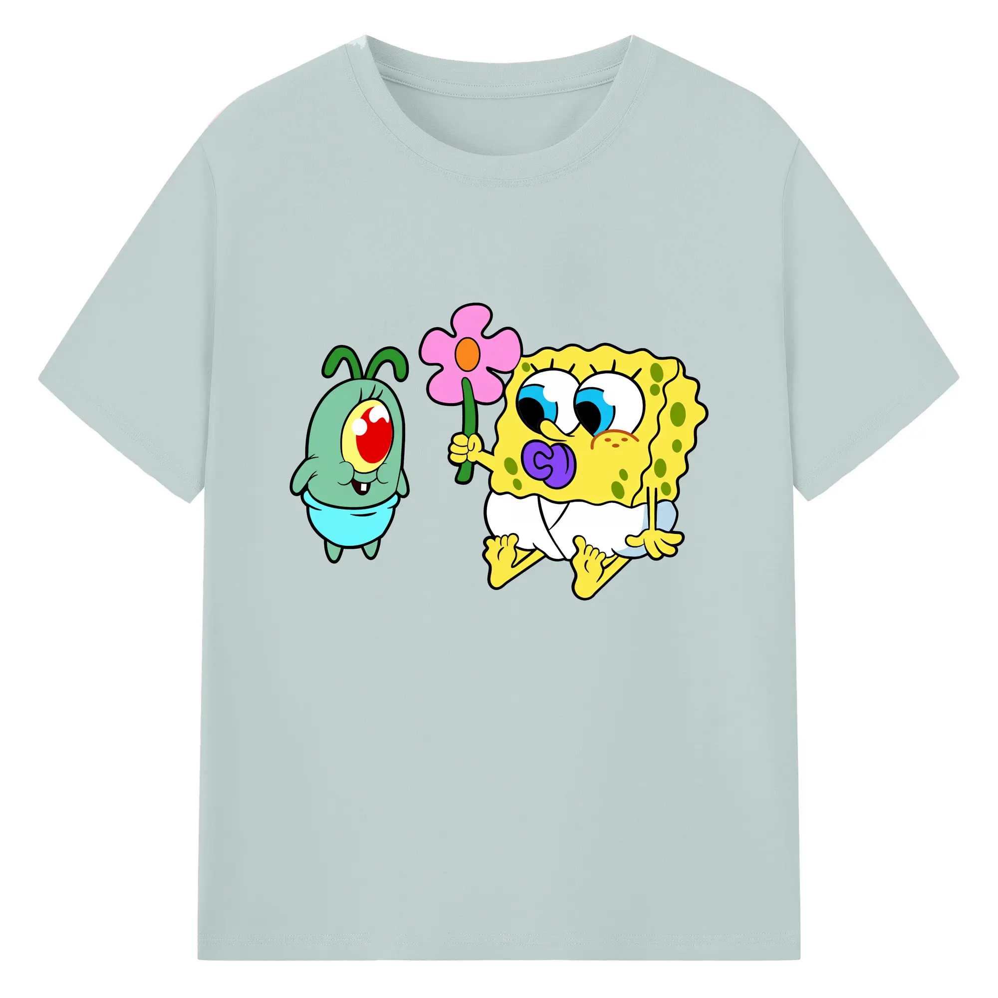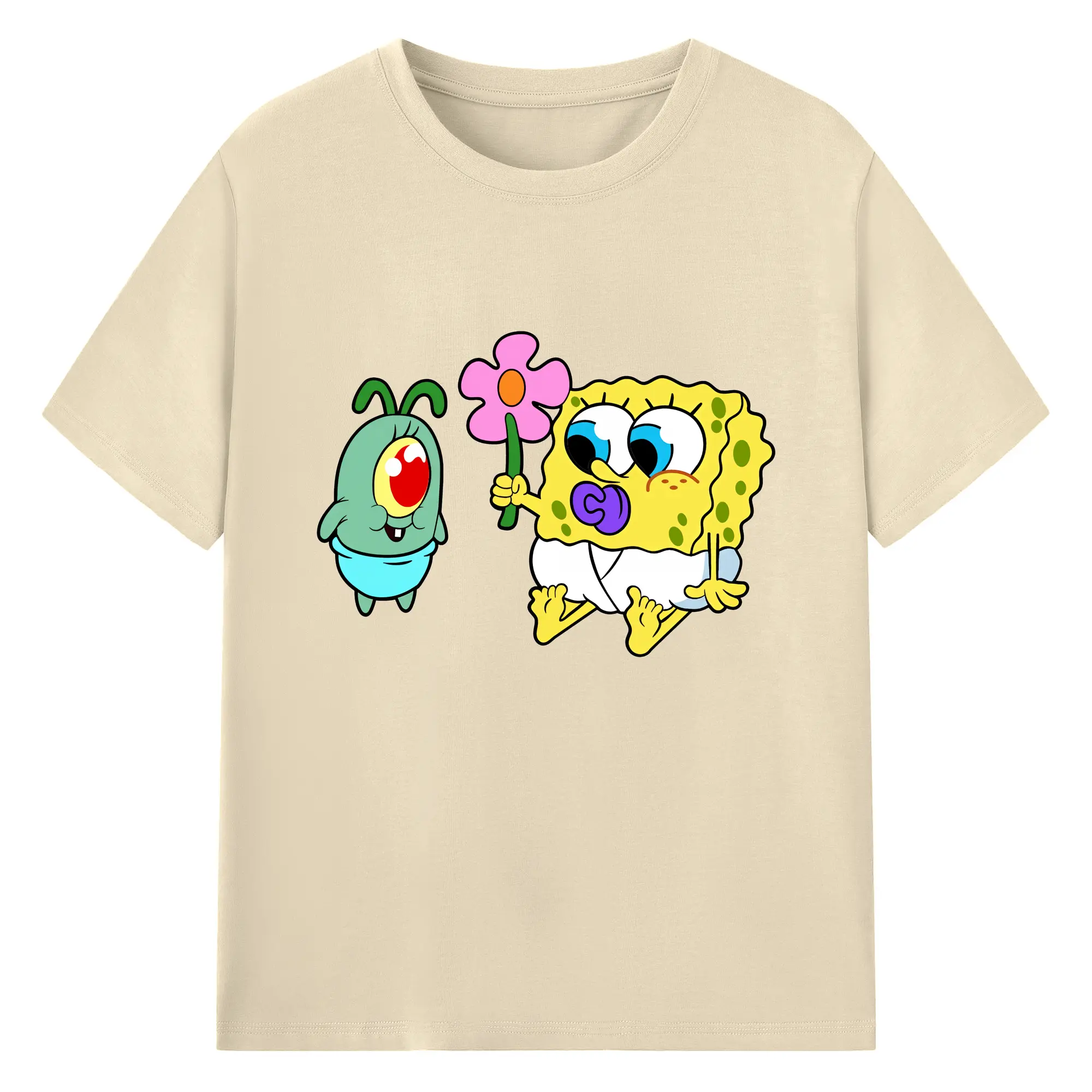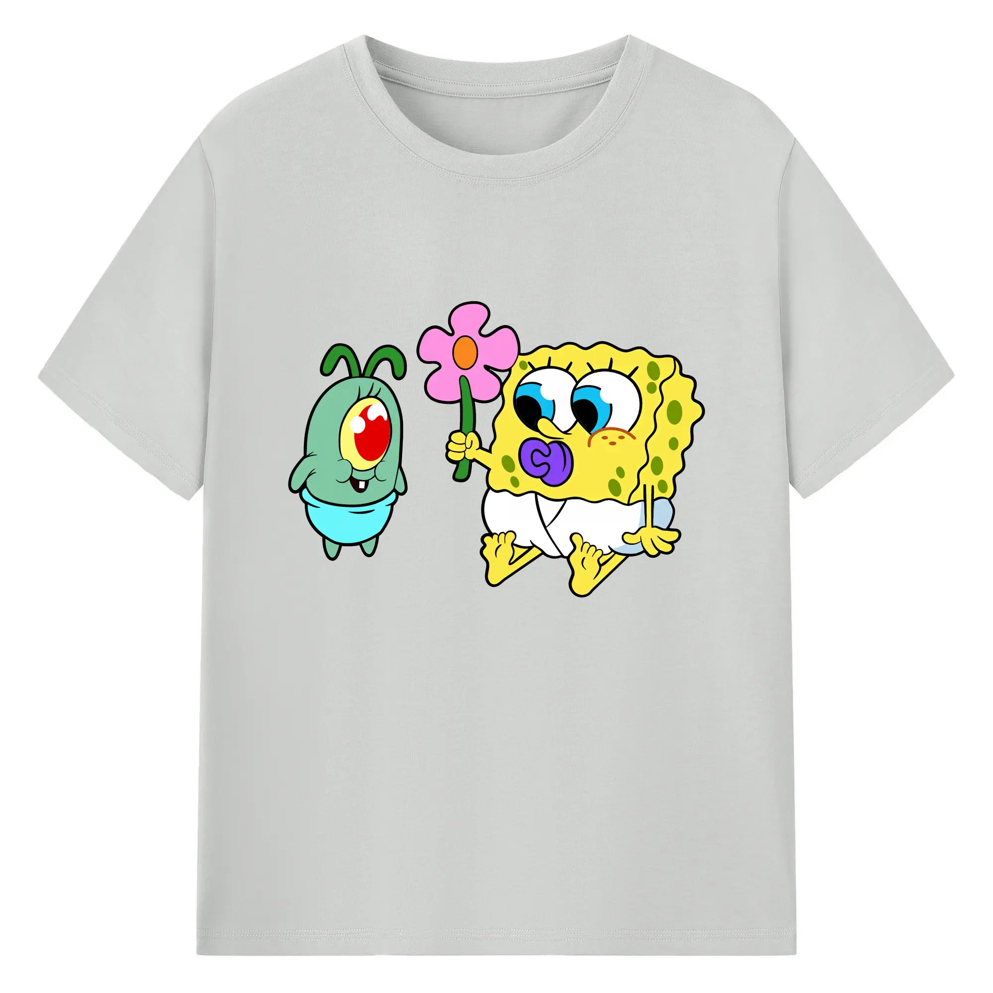 スポンジボブ グッズ プランクトン - 綿100% 半袖Tシャツ ・ バックプリント ・ 快適 通気性 ・ 日常使い 散歩 スポーツ用
