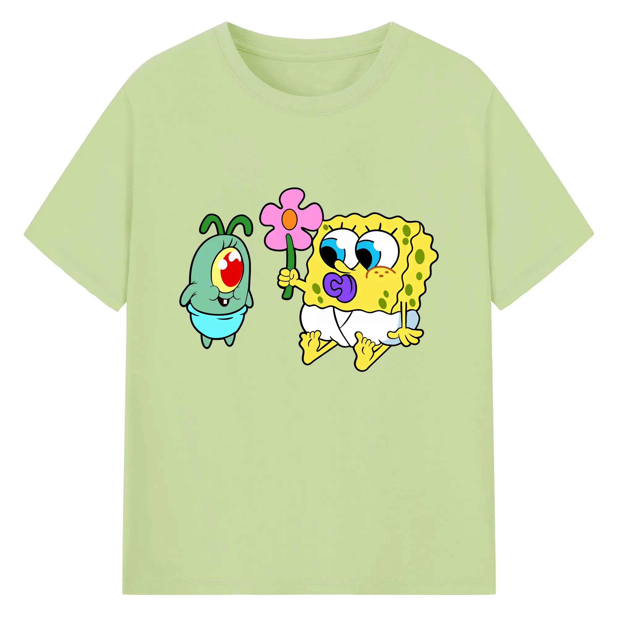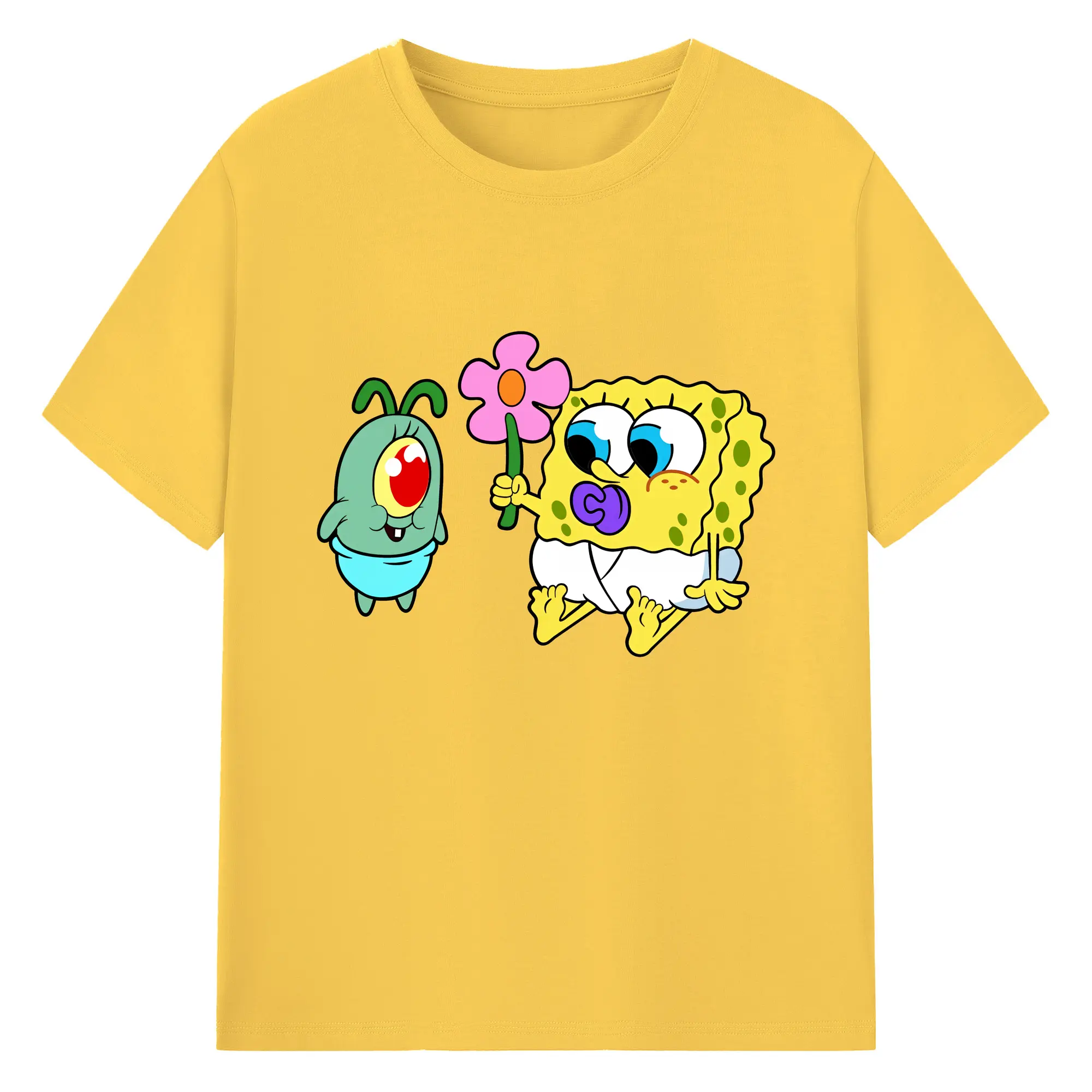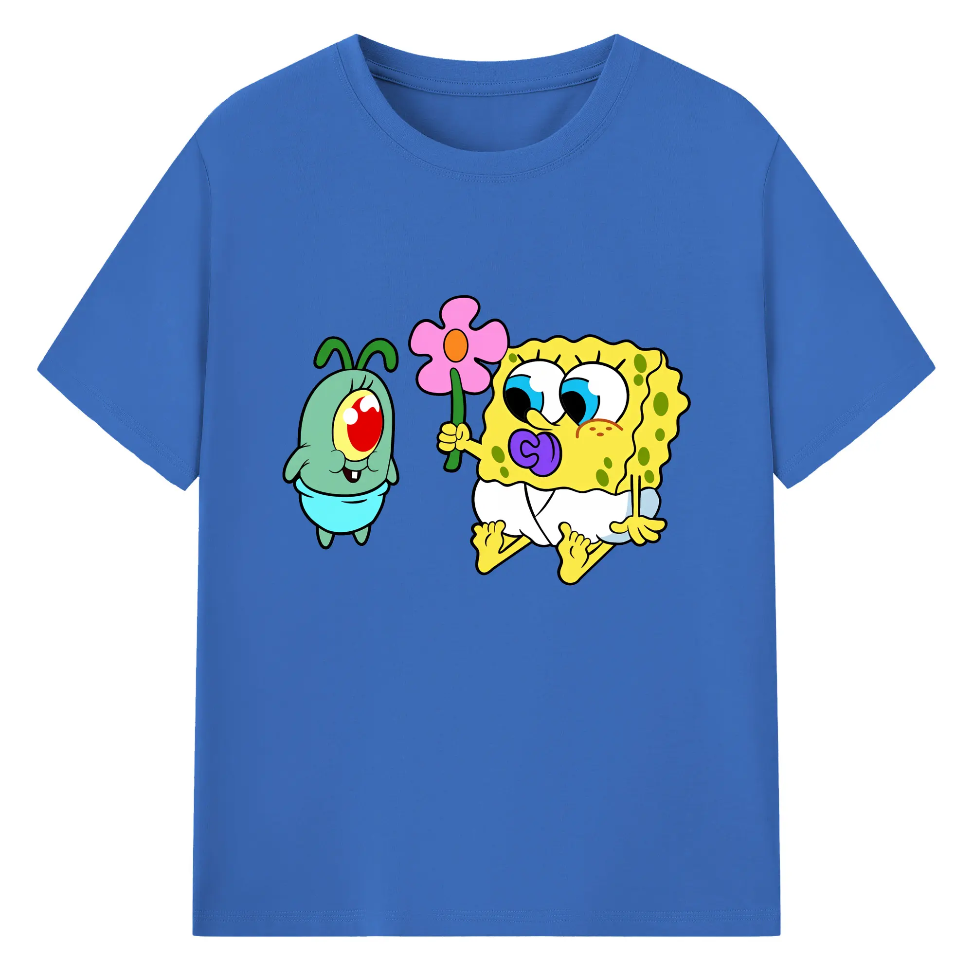 スポンジボブ グッズ プランクトン - 綿100% キッズTシャツ ・ フロントプリント ・ 快適 通気性 ・ スポーツ カジュアル 散歩用