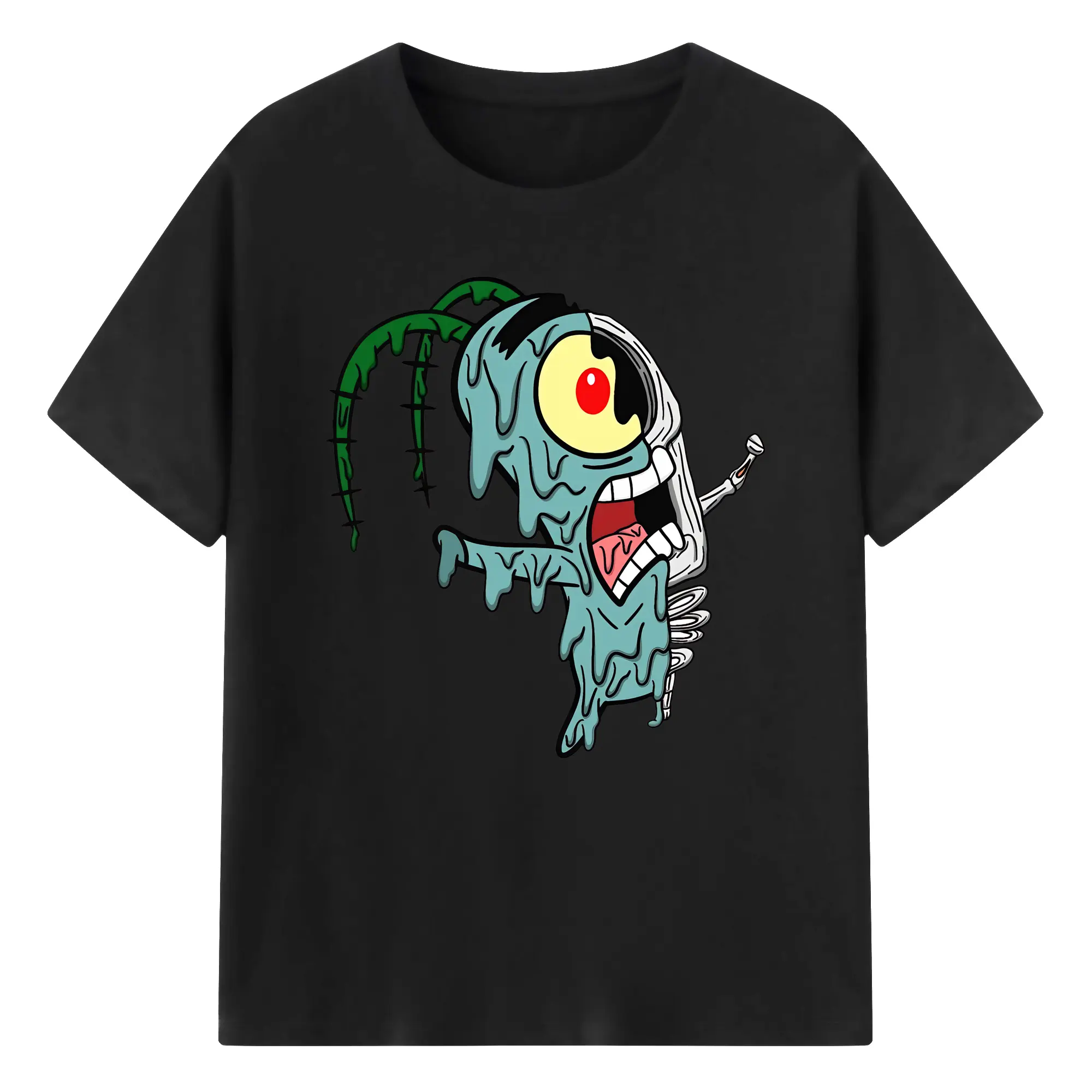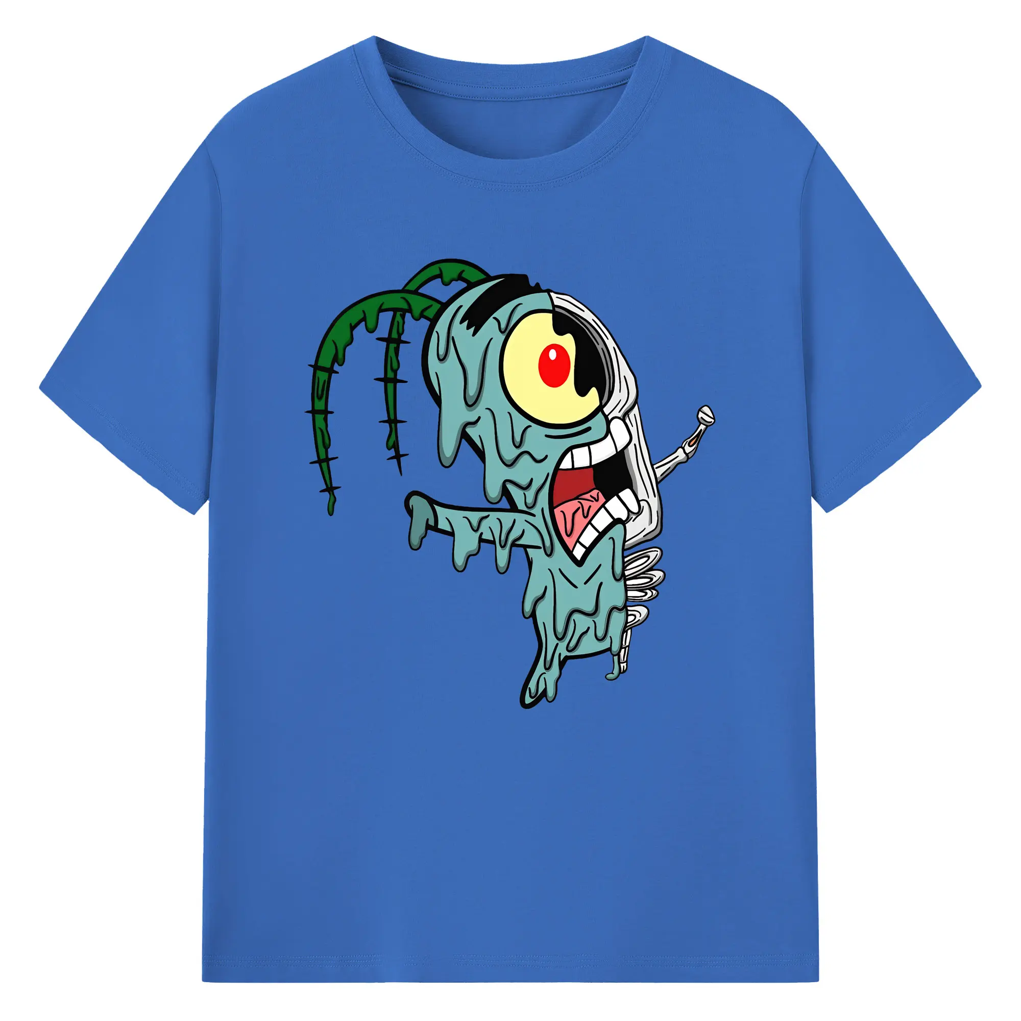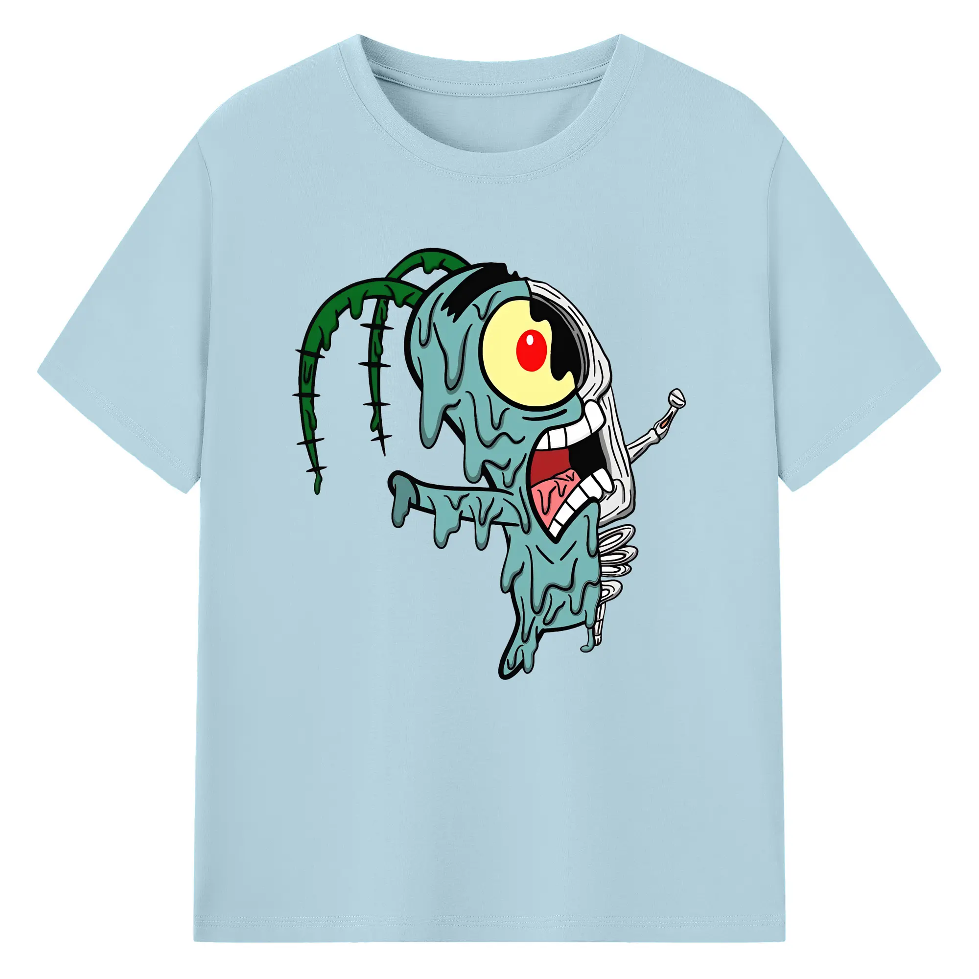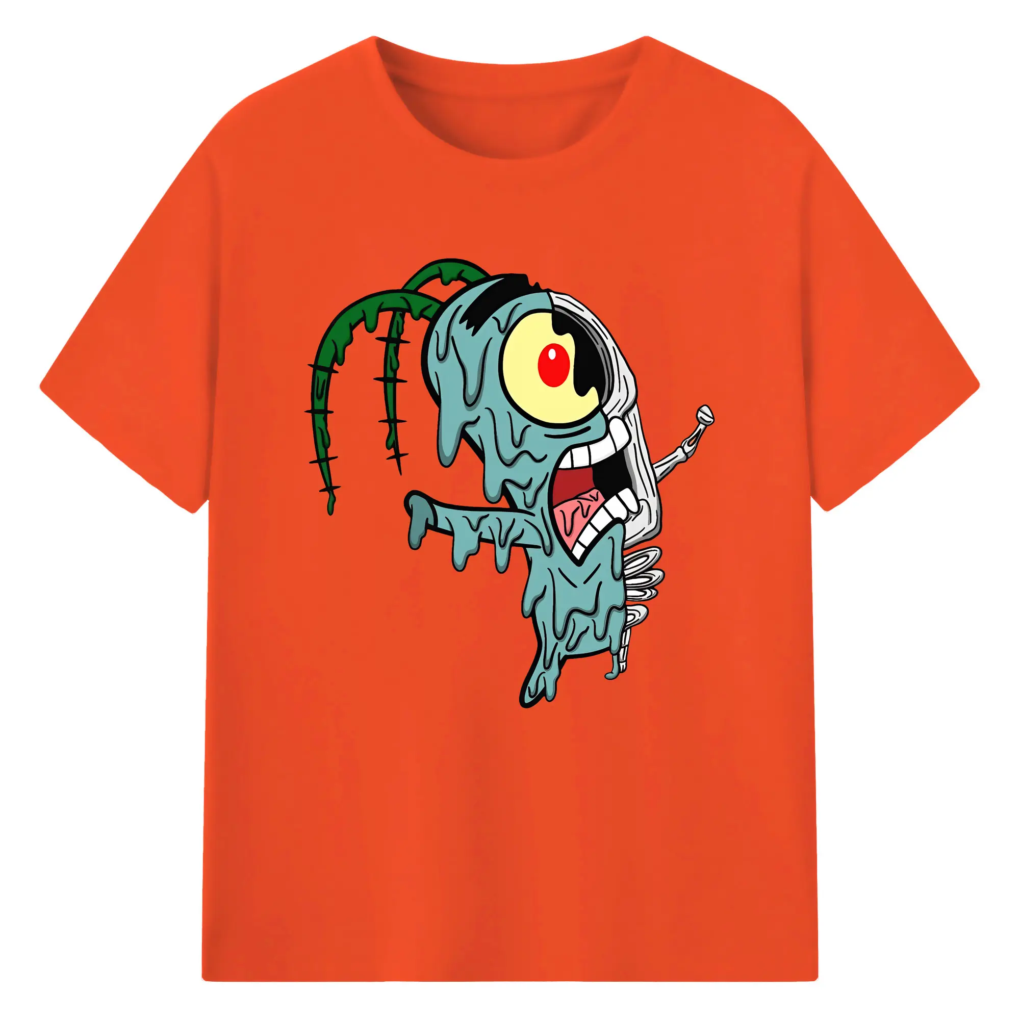 スポンジボブ グッズ プランクトン - 綿100% 半袖Tシャツ ・ バックプリント ・ 快適 通気性 ・ 日常使い 散歩 スポーツ用