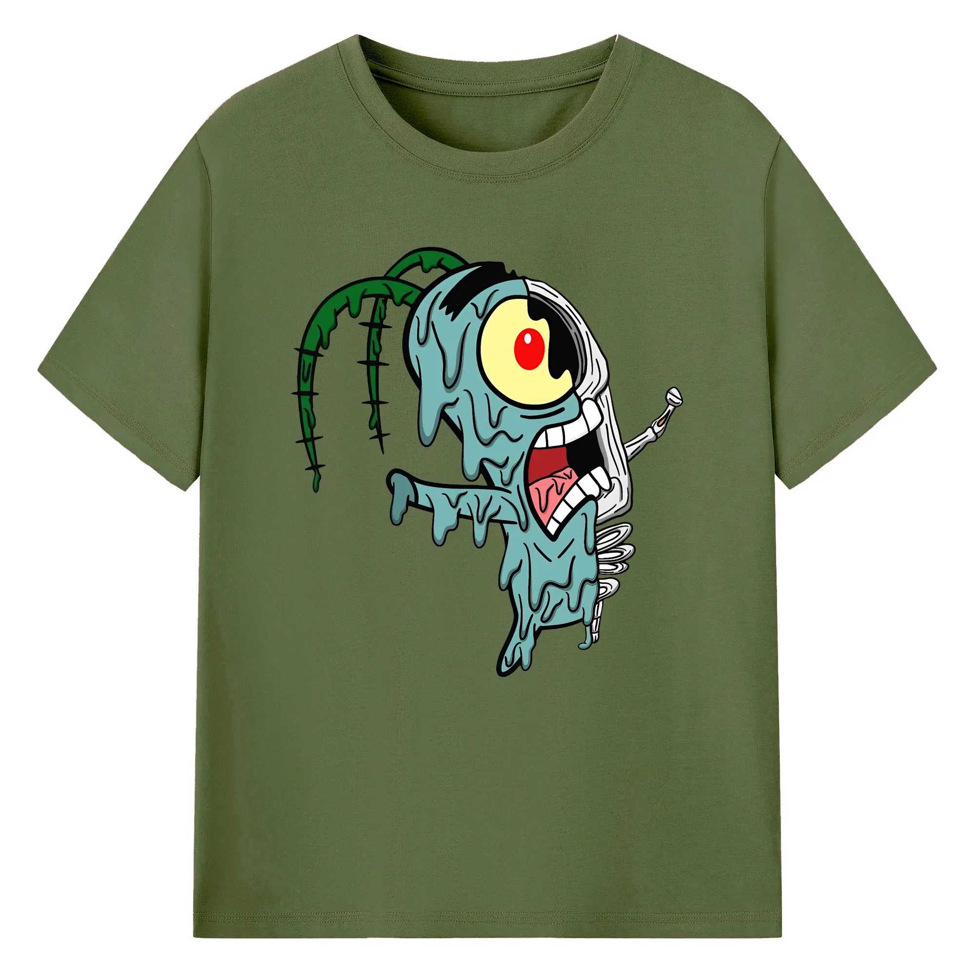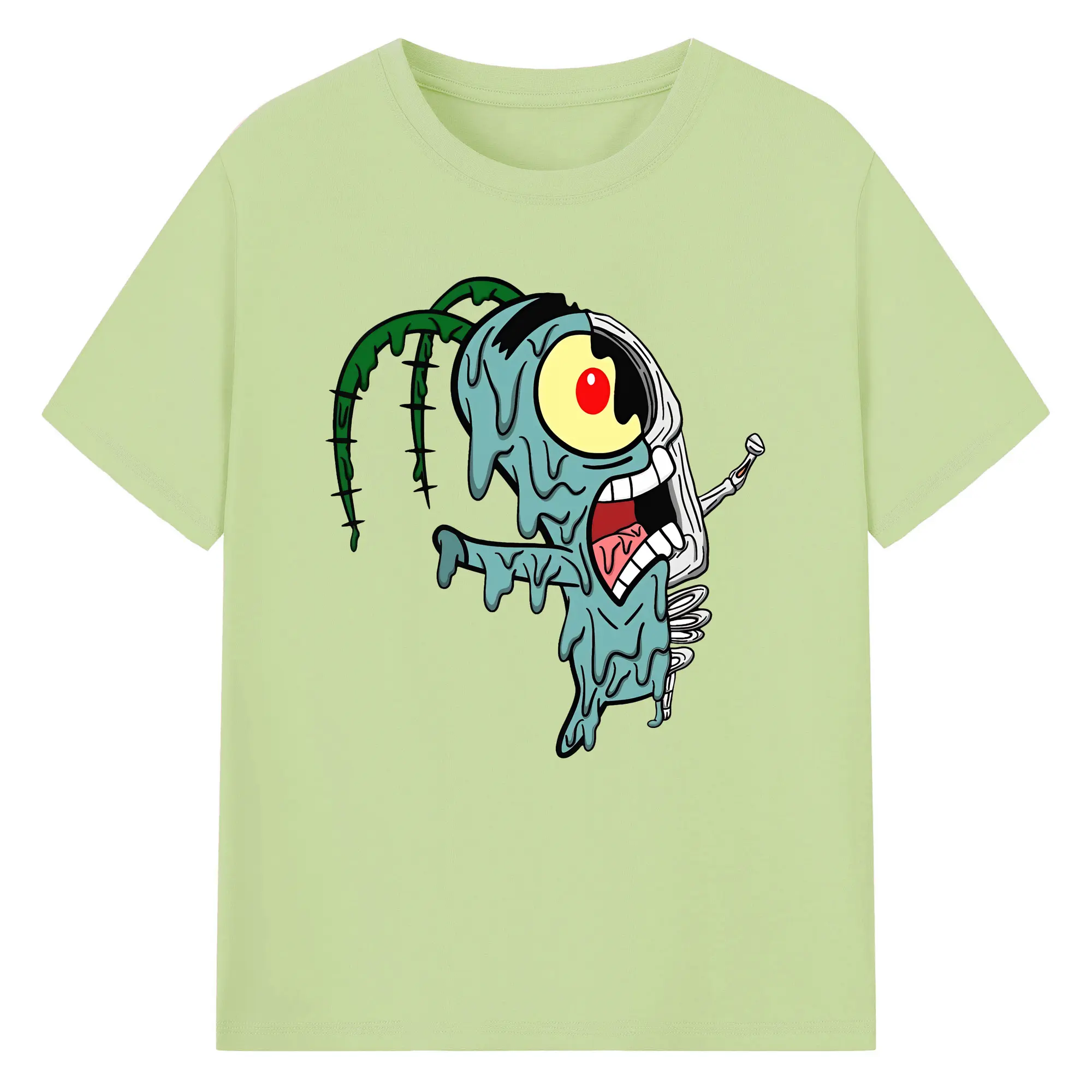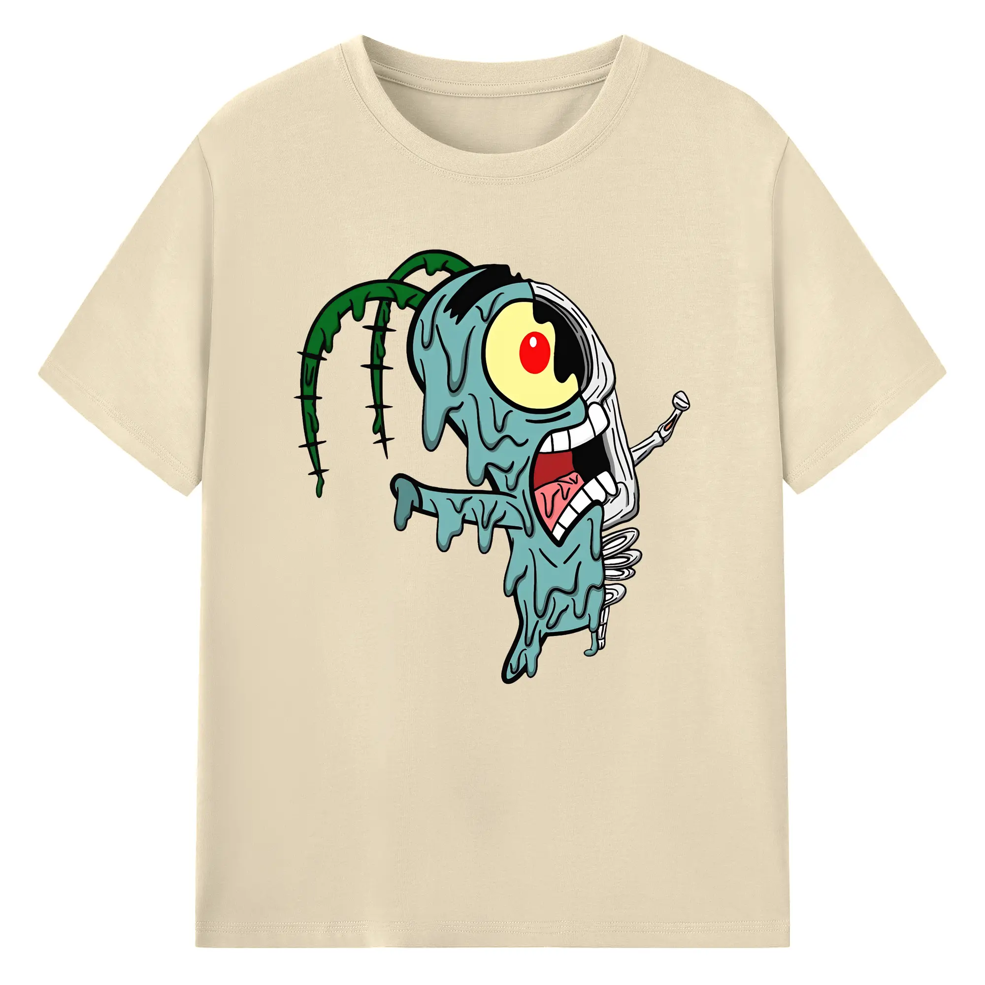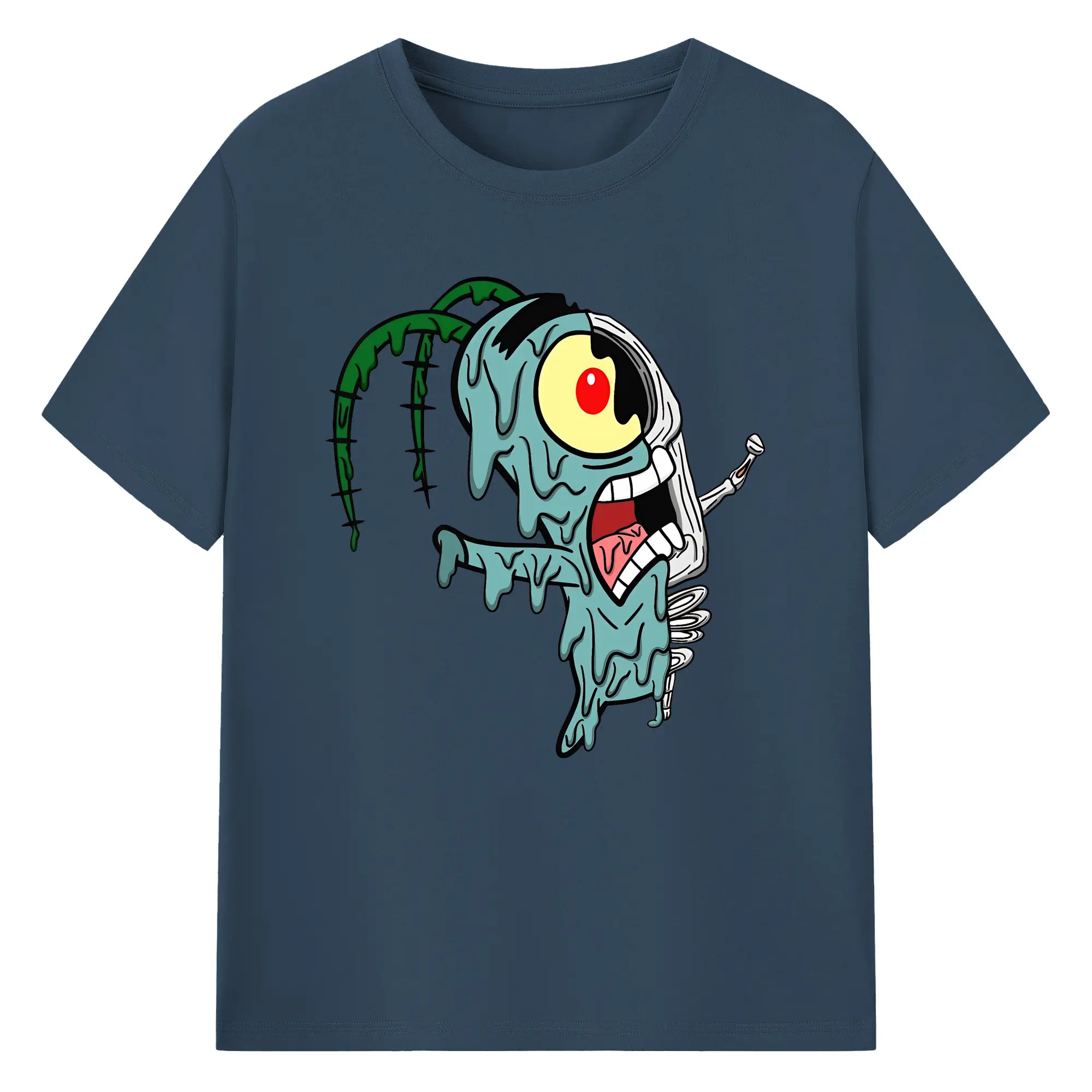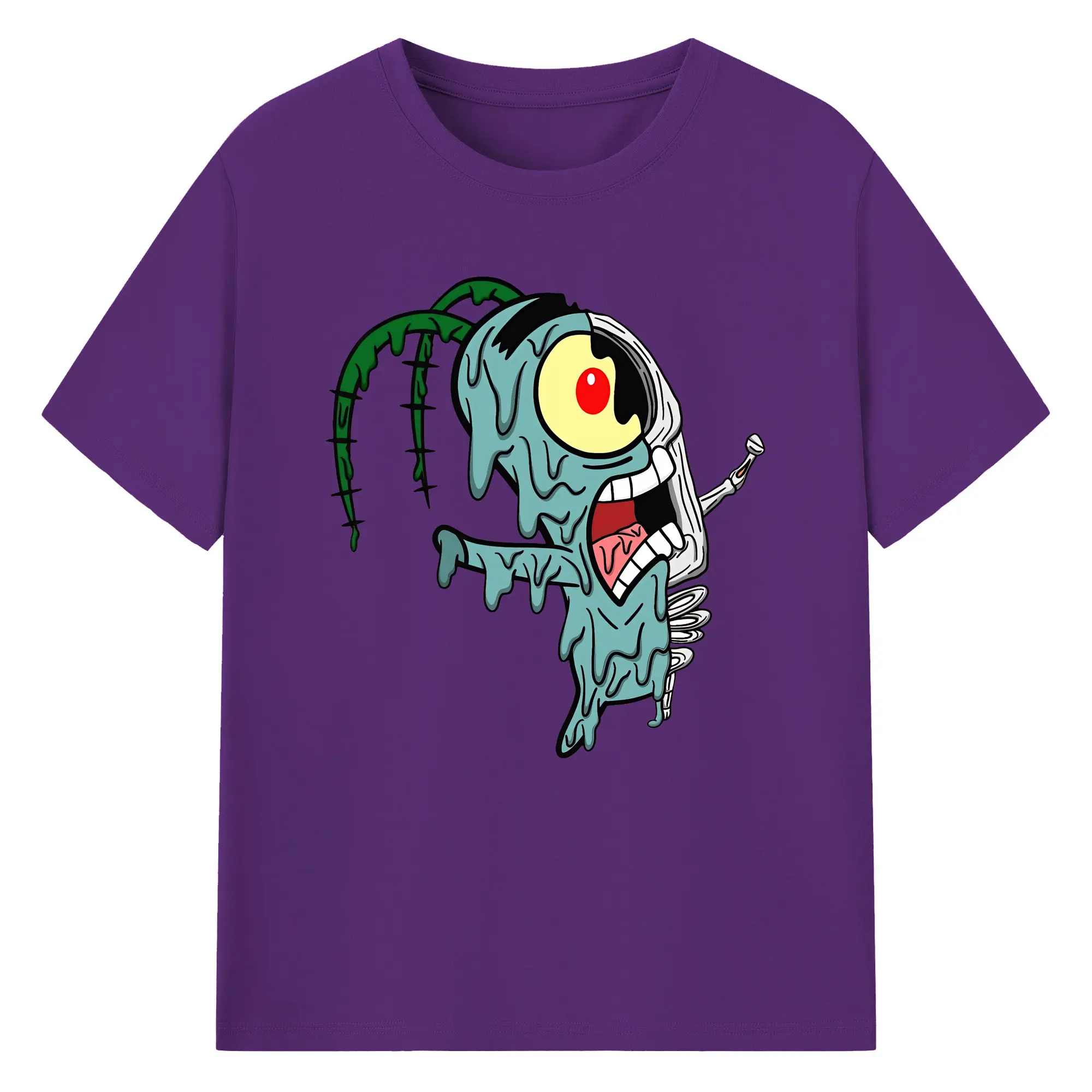 スポンジボブ グッズ プランクトン - 綿100% 半袖Tシャツ ・ バックプリント ・ 快適 通気性 ・ 日常使い 散歩 スポーツ用