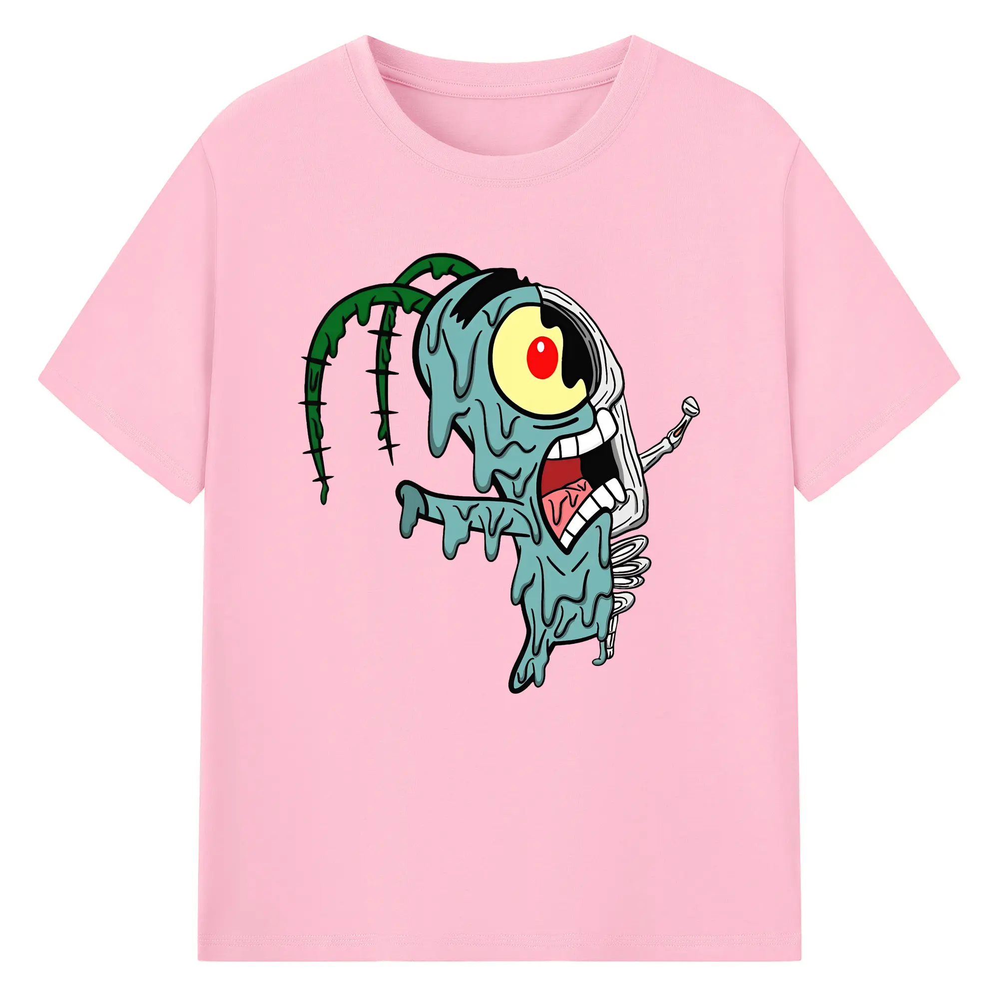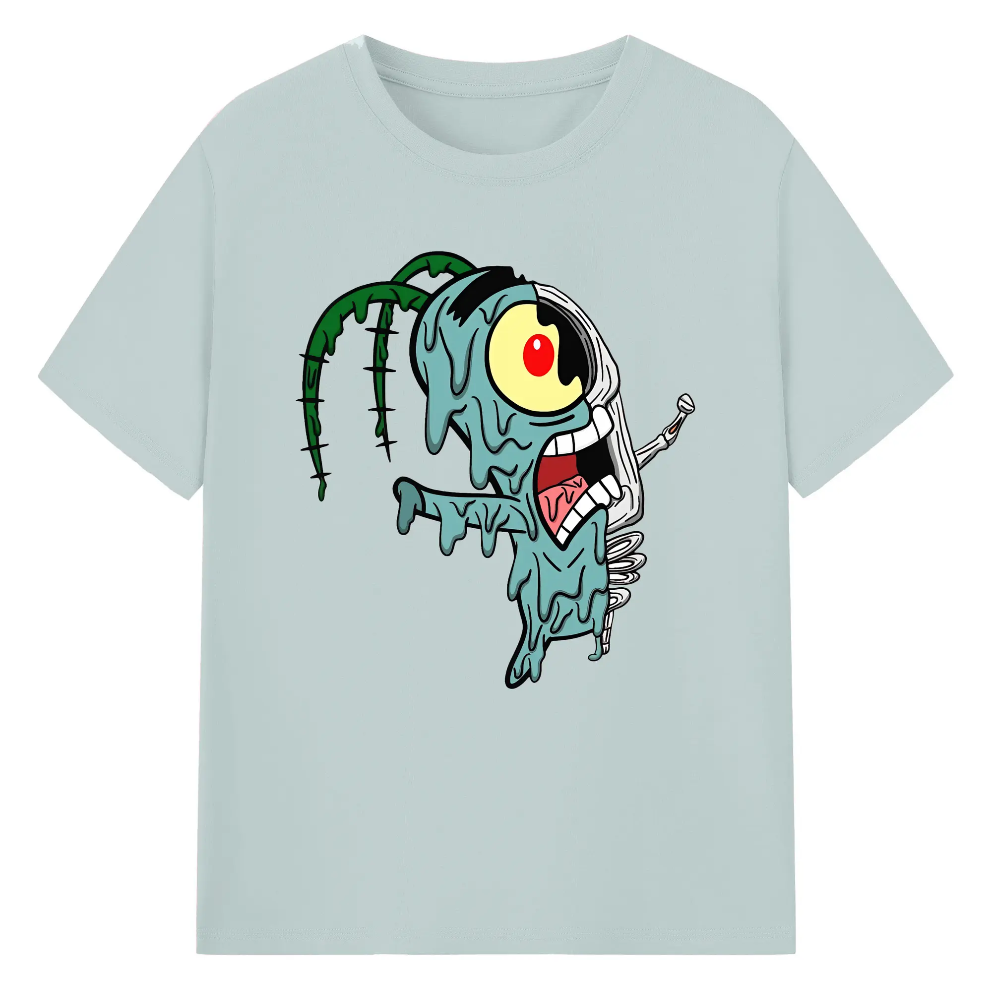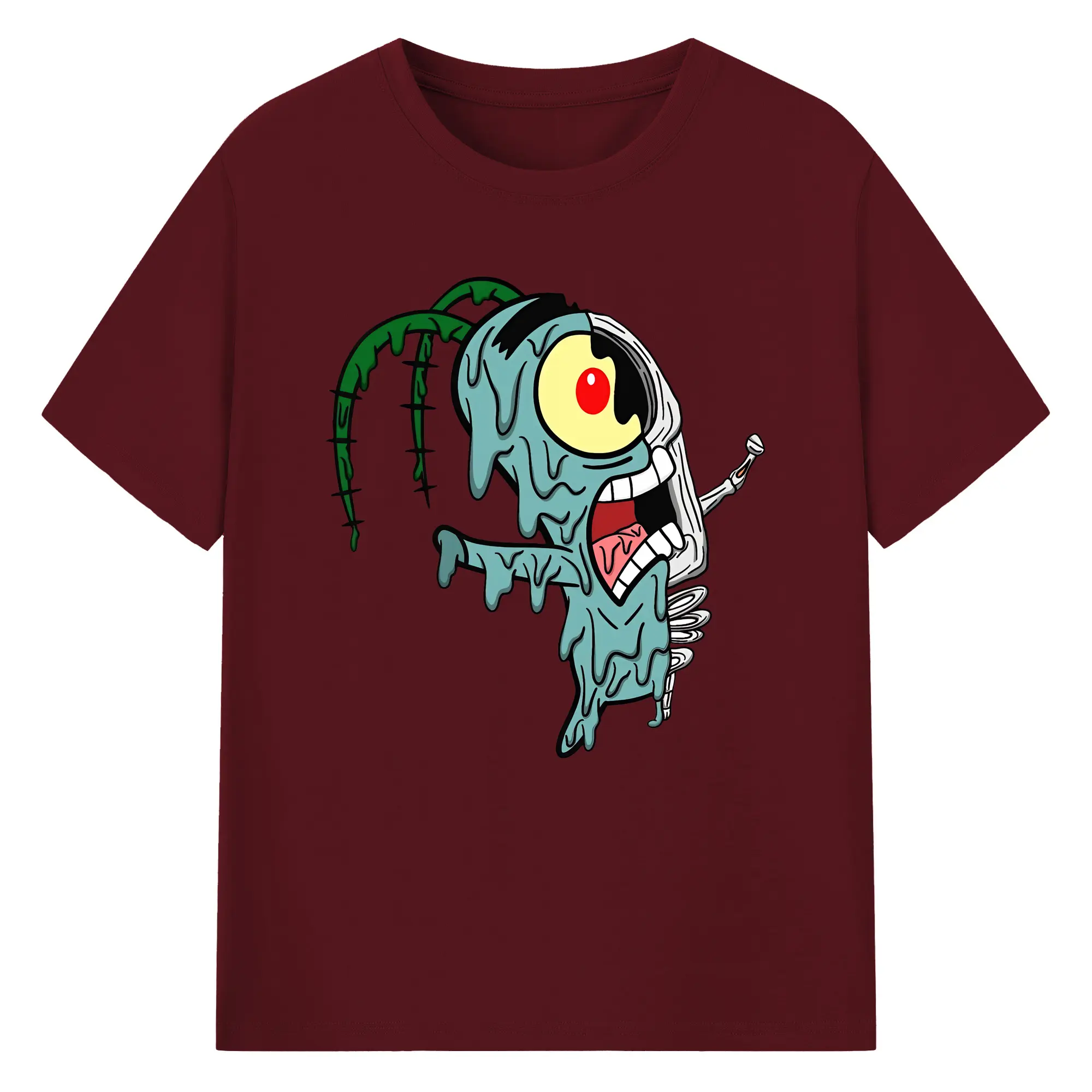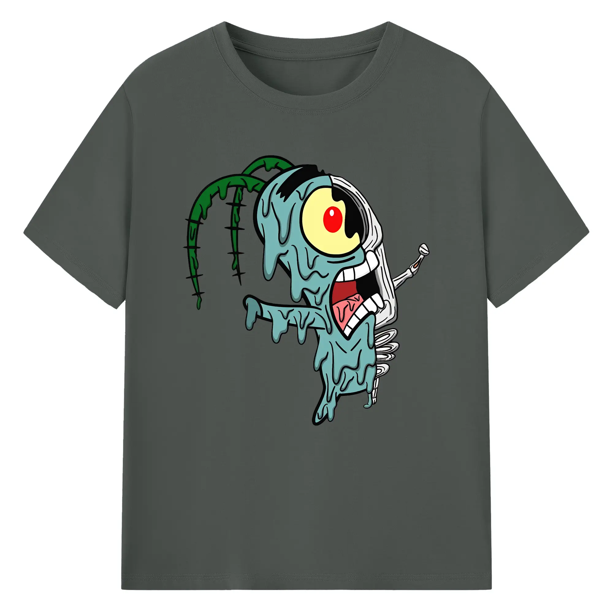 スポンジボブ グッズ プランクトン - 綿100% 半袖Tシャツ ・ バックプリント ・ 快適 通気性 ・ 日常使い 散歩 スポーツ用