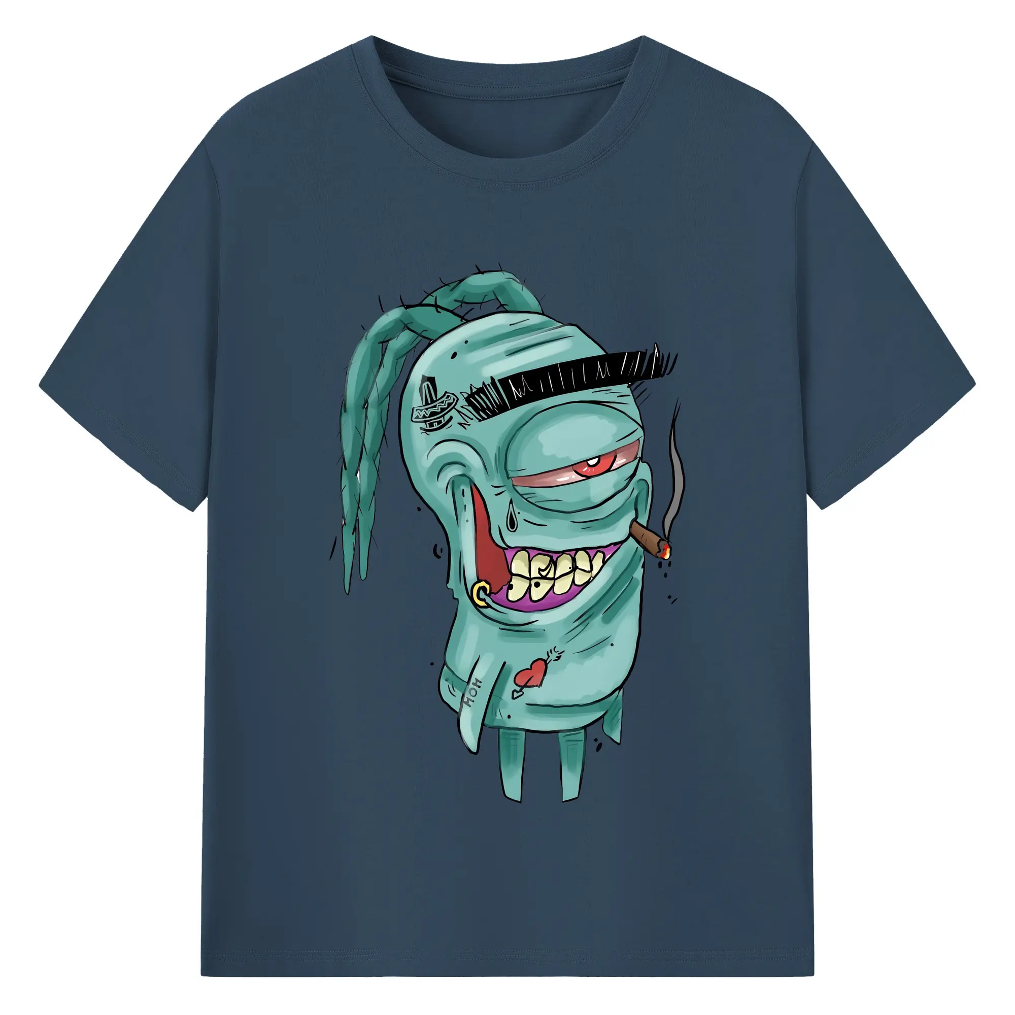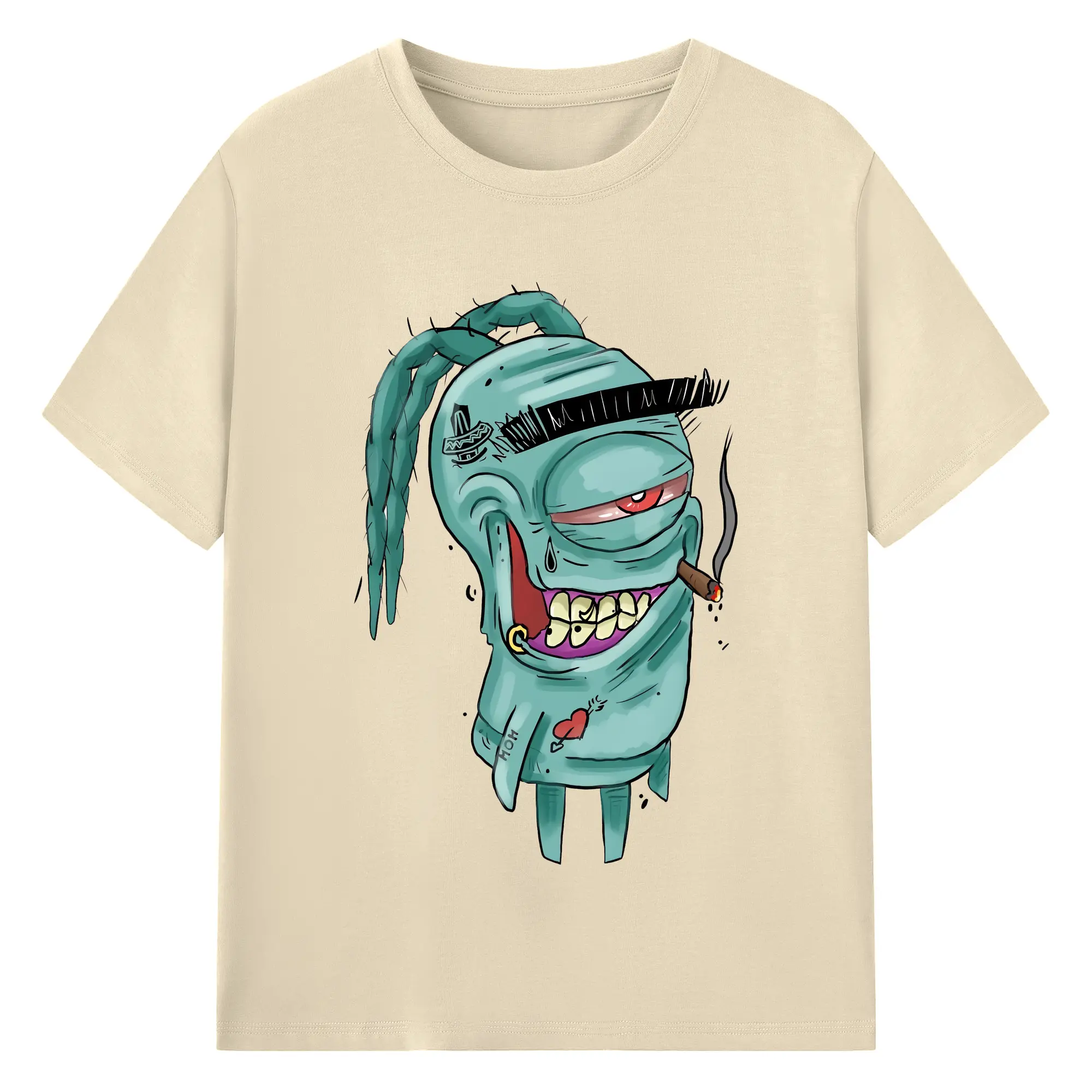 スポンジボブ グッズ プランクトン - 綿100% ヴィンテージ風 半袖Tシャツ ・ フロントプリント ・ 柔らか肌触り ・ 通気性 快適 ・ スポーツ カジュアル 外出用