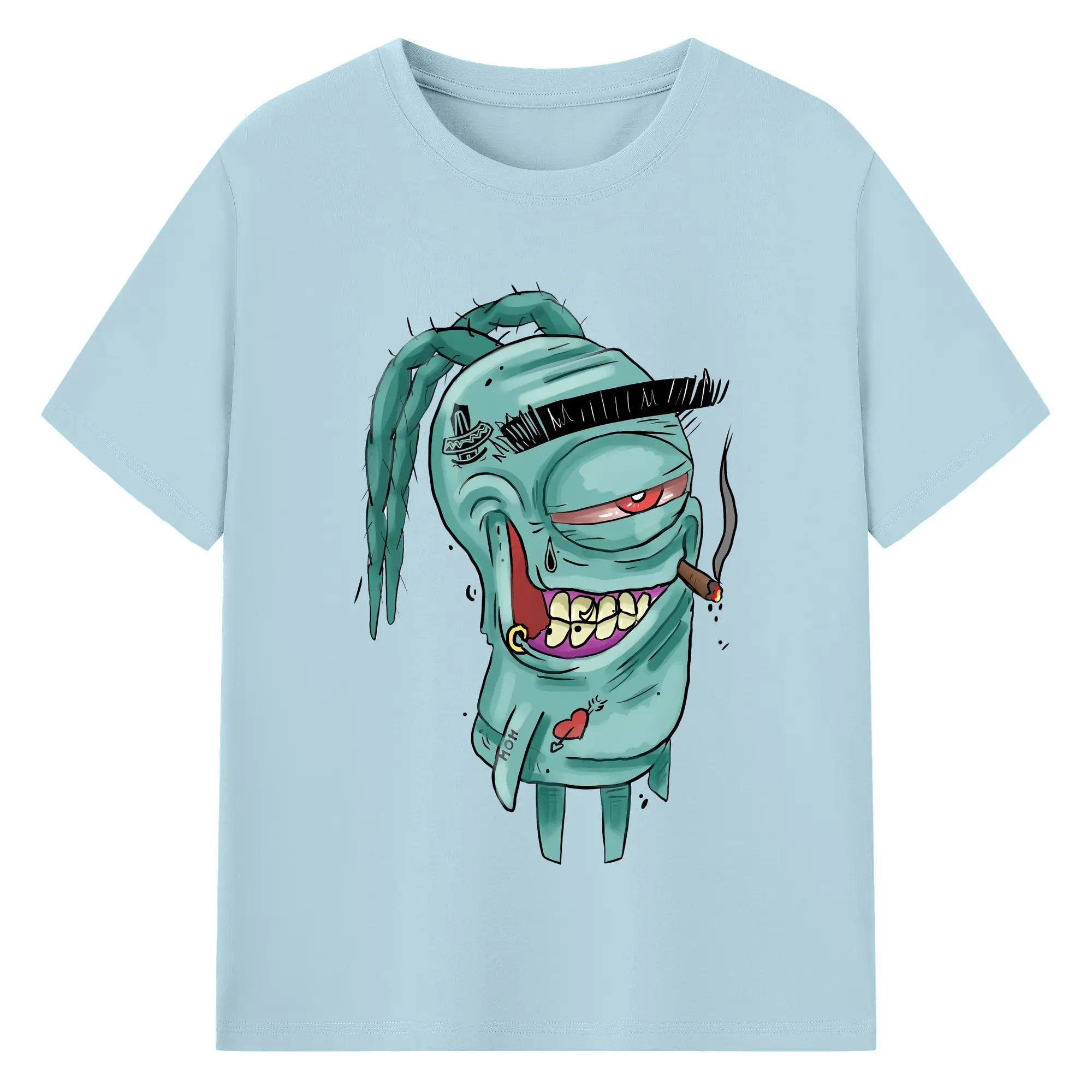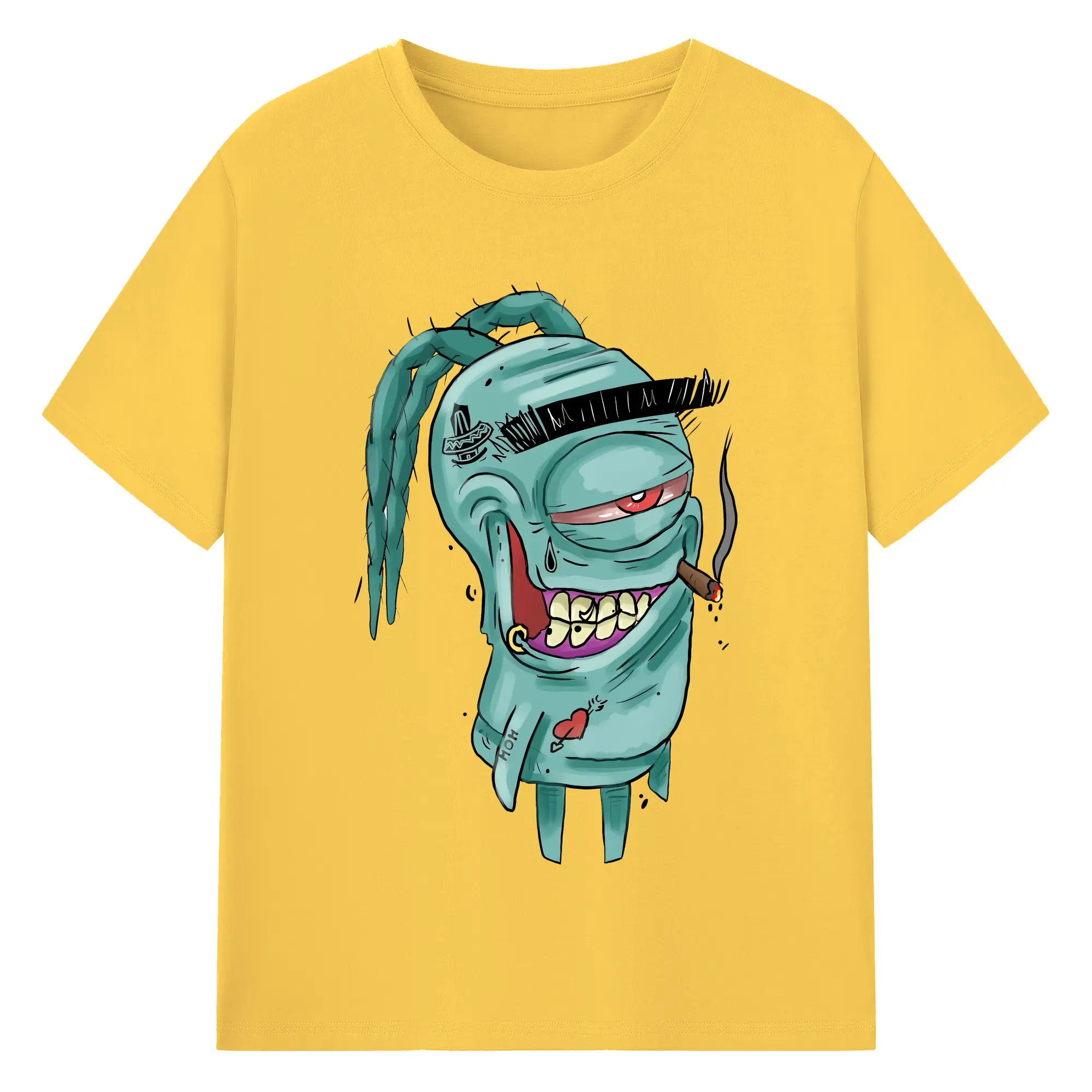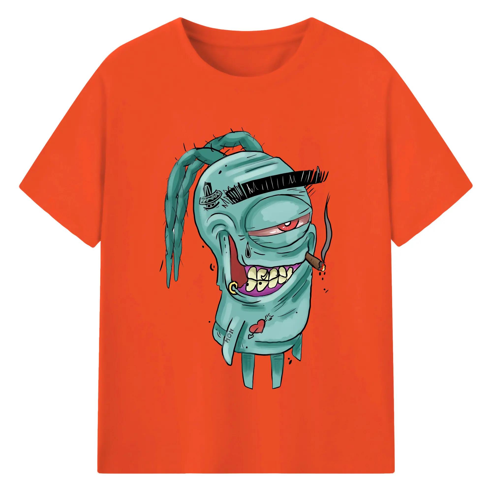 スポンジボブ グッズ プランクトン - 綿100% 半袖Tシャツ ・ バックプリント ・ 快適 通気性 ・ 日常使い 散歩 スポーツ用