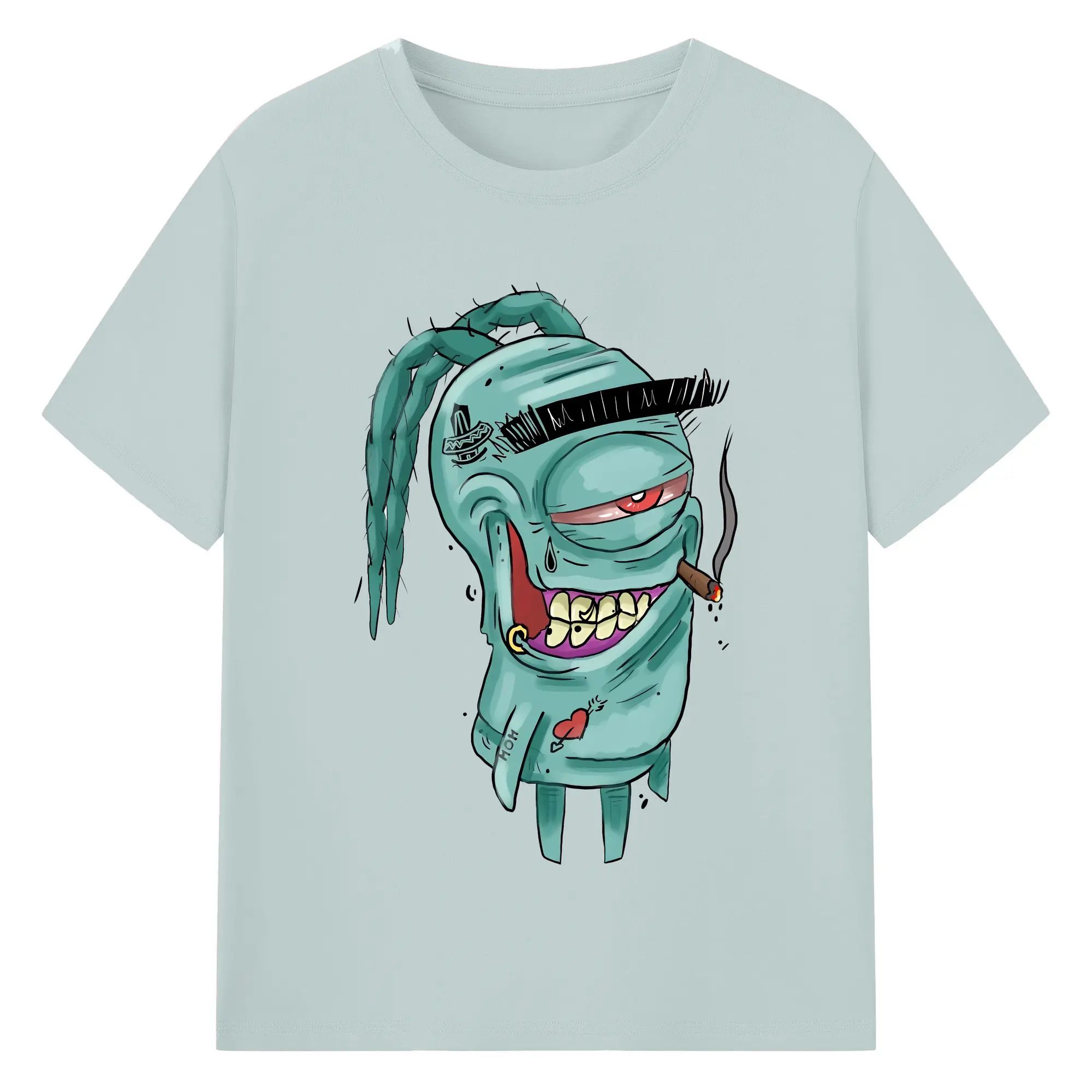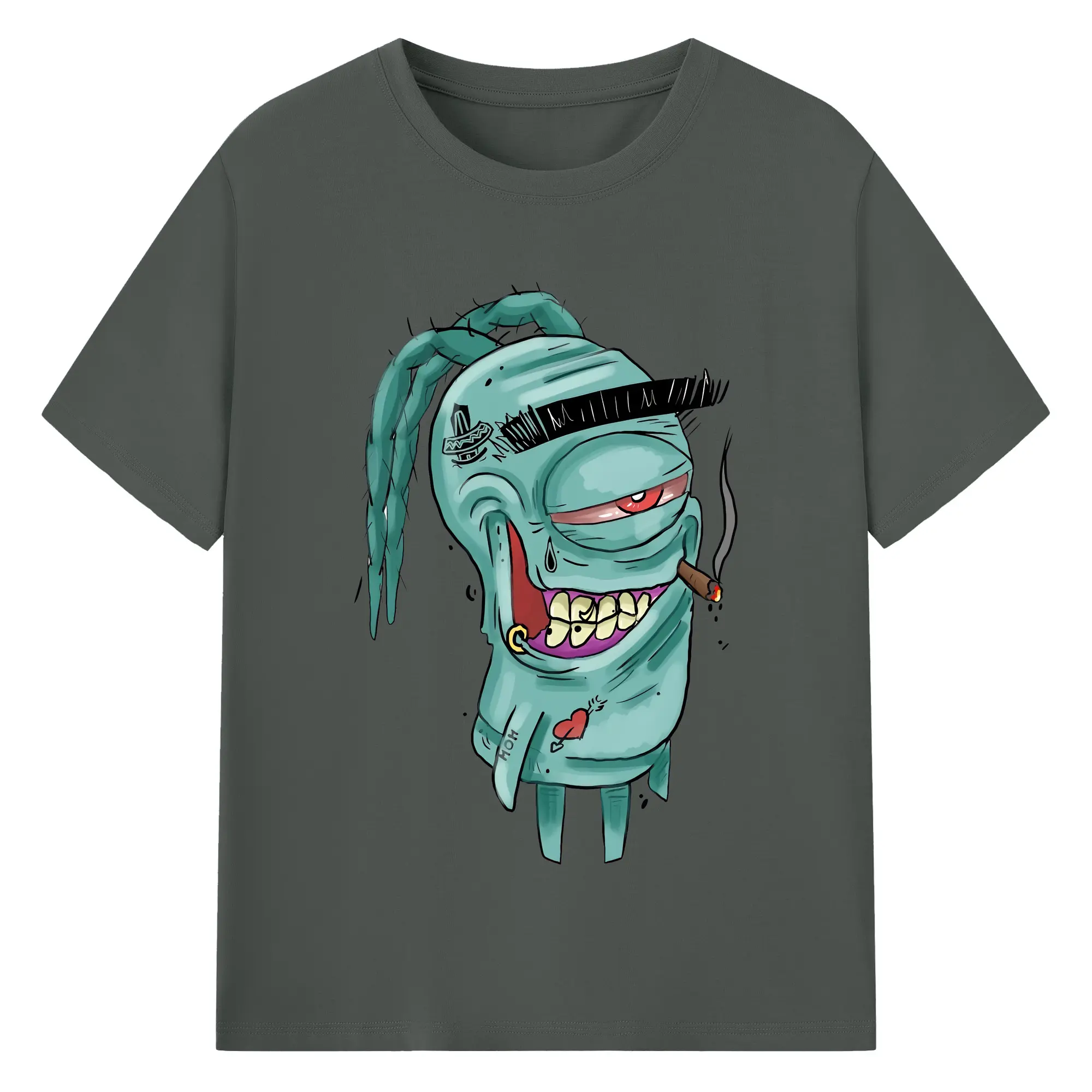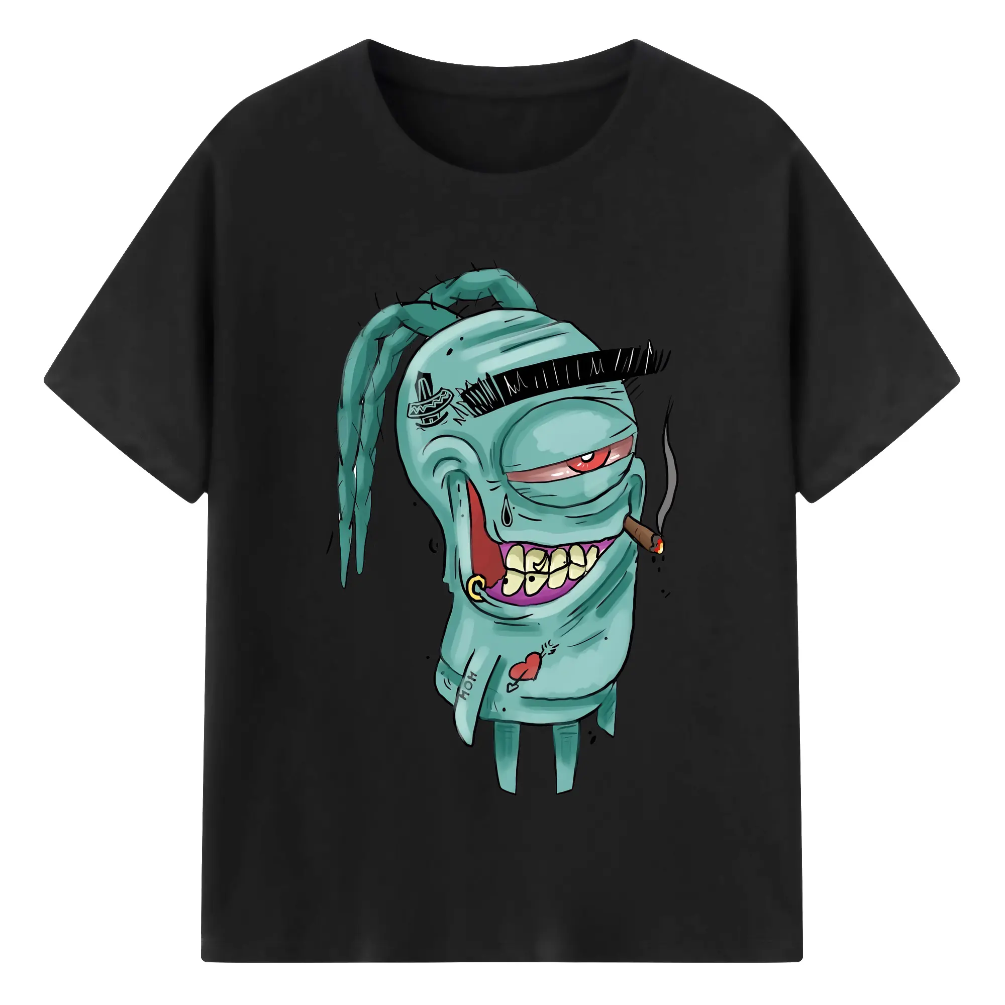 スポンジボブ グッズ プランクトン - 綿100% 半袖Tシャツ ・ バックプリント ・ 快適 通気性 ・ 日常使い 散歩 スポーツ用