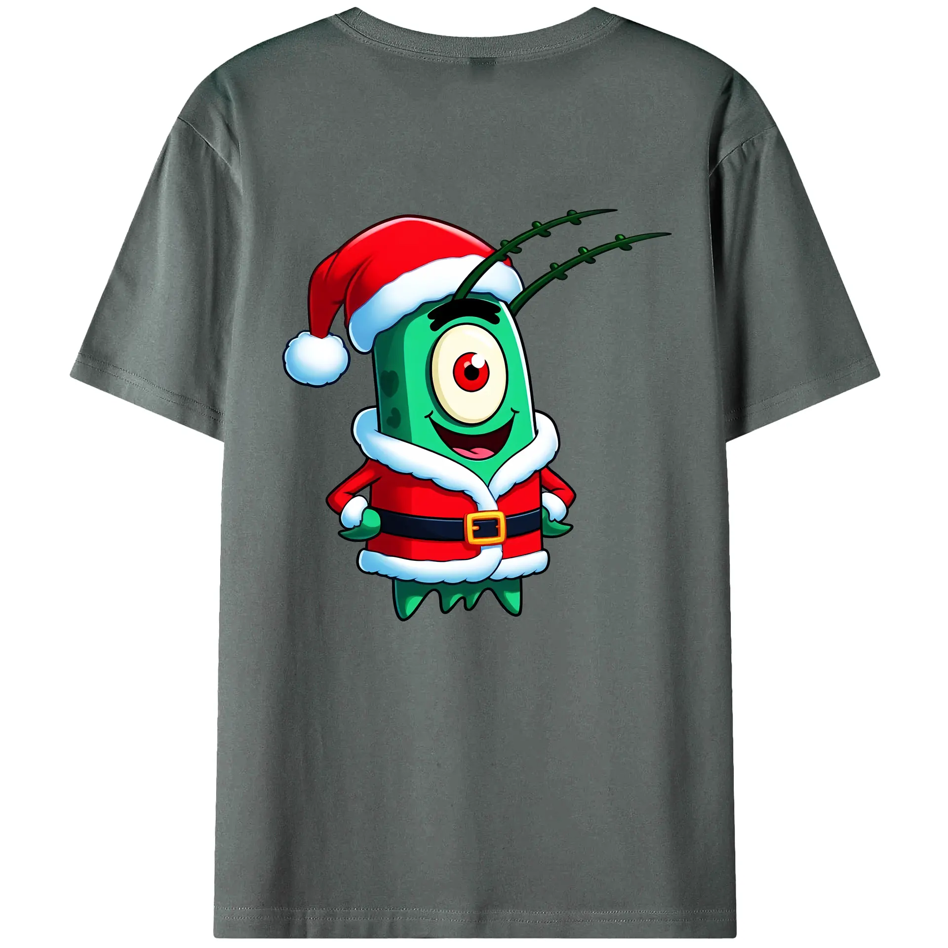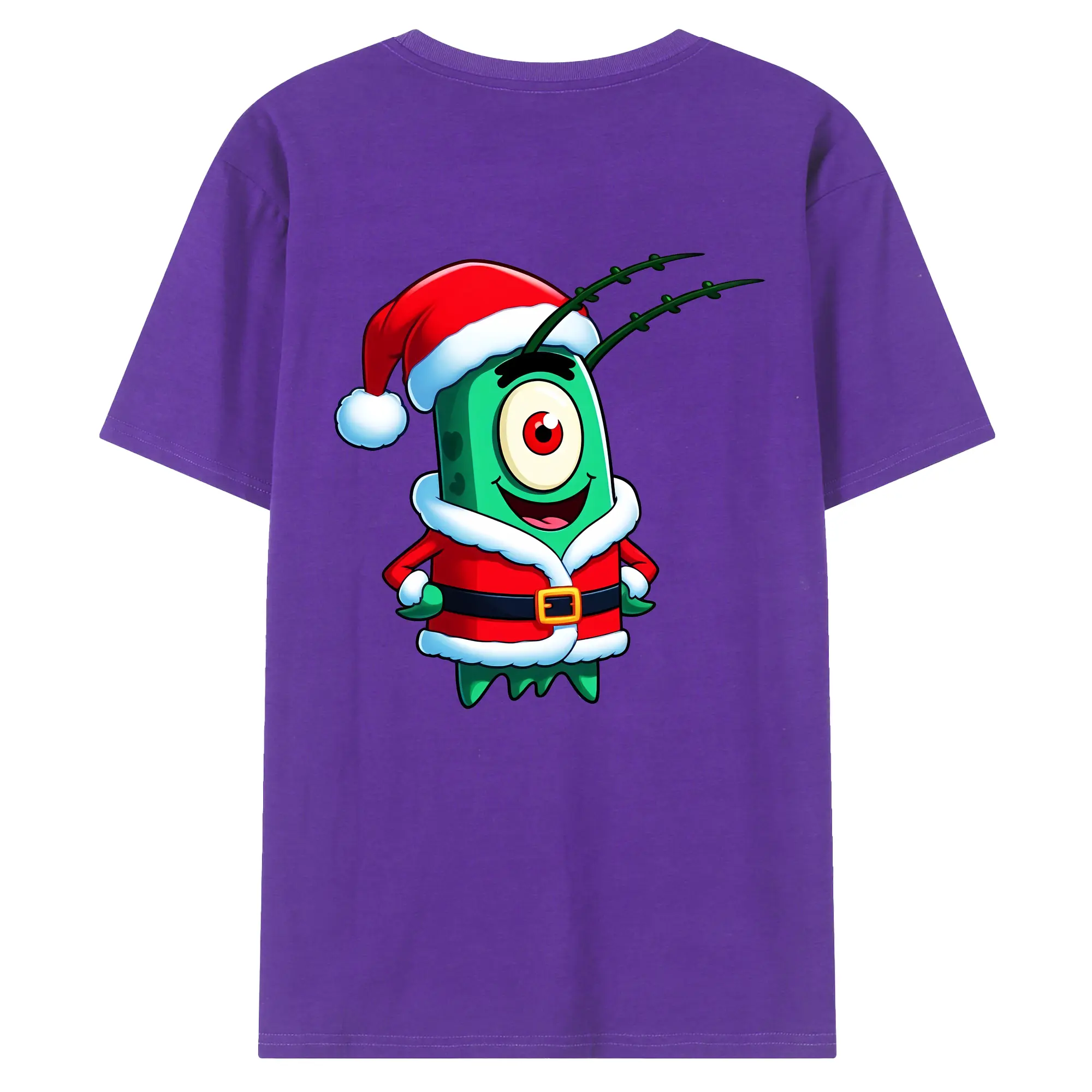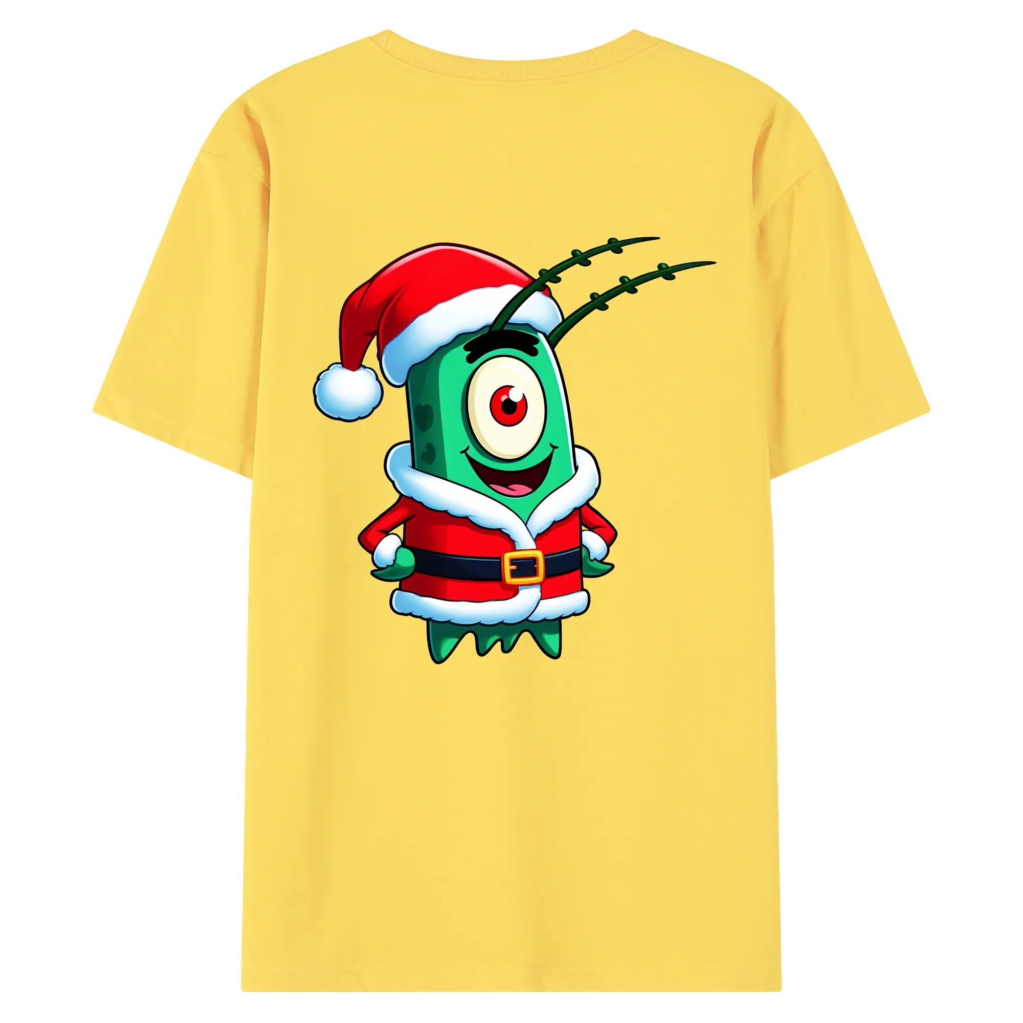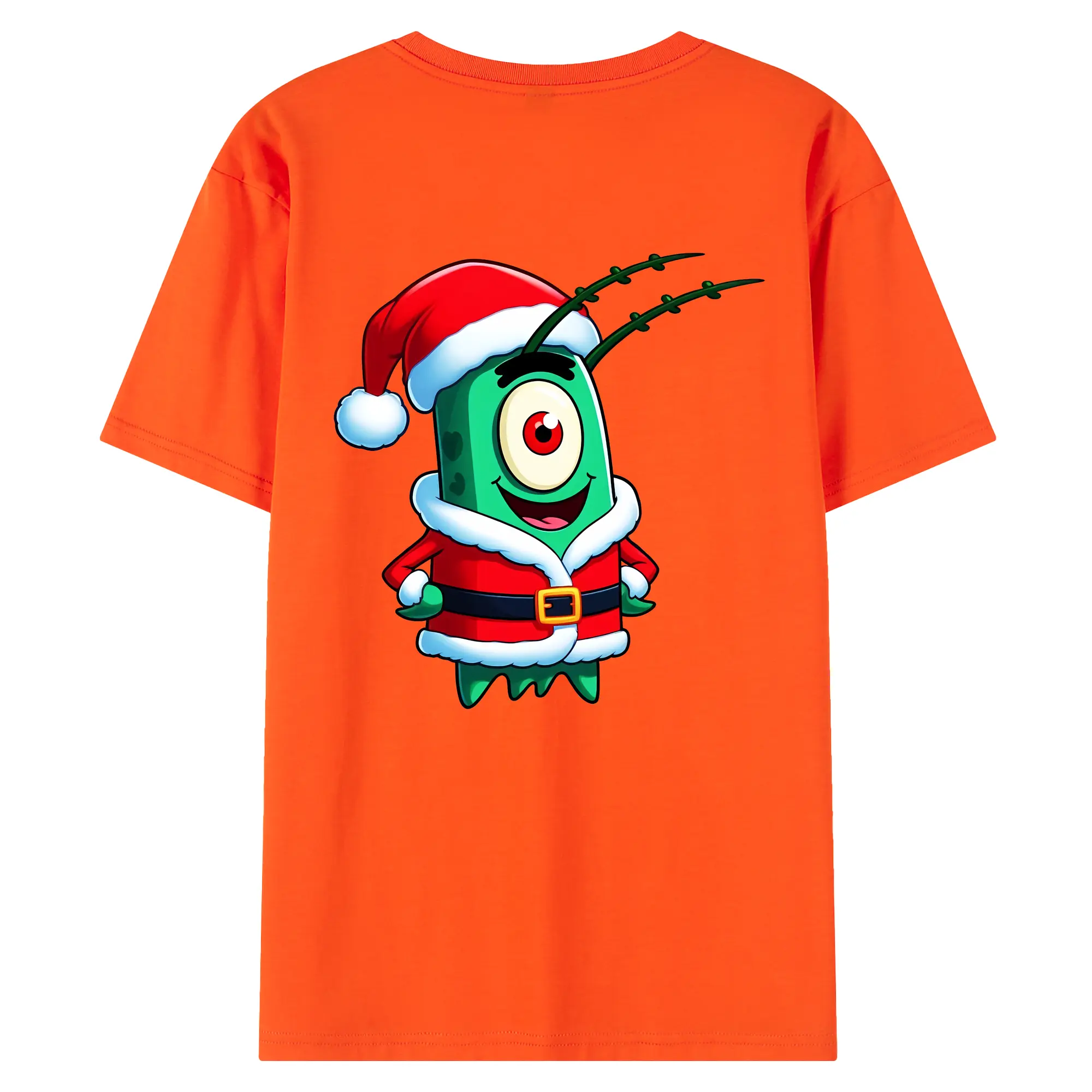 スポンジボブ グッズ プランクトン - 綿100% 半袖Tシャツ ・ フロントプリント ・ 快適 通気性 ・ 日常使い 散歩 スポーツ用