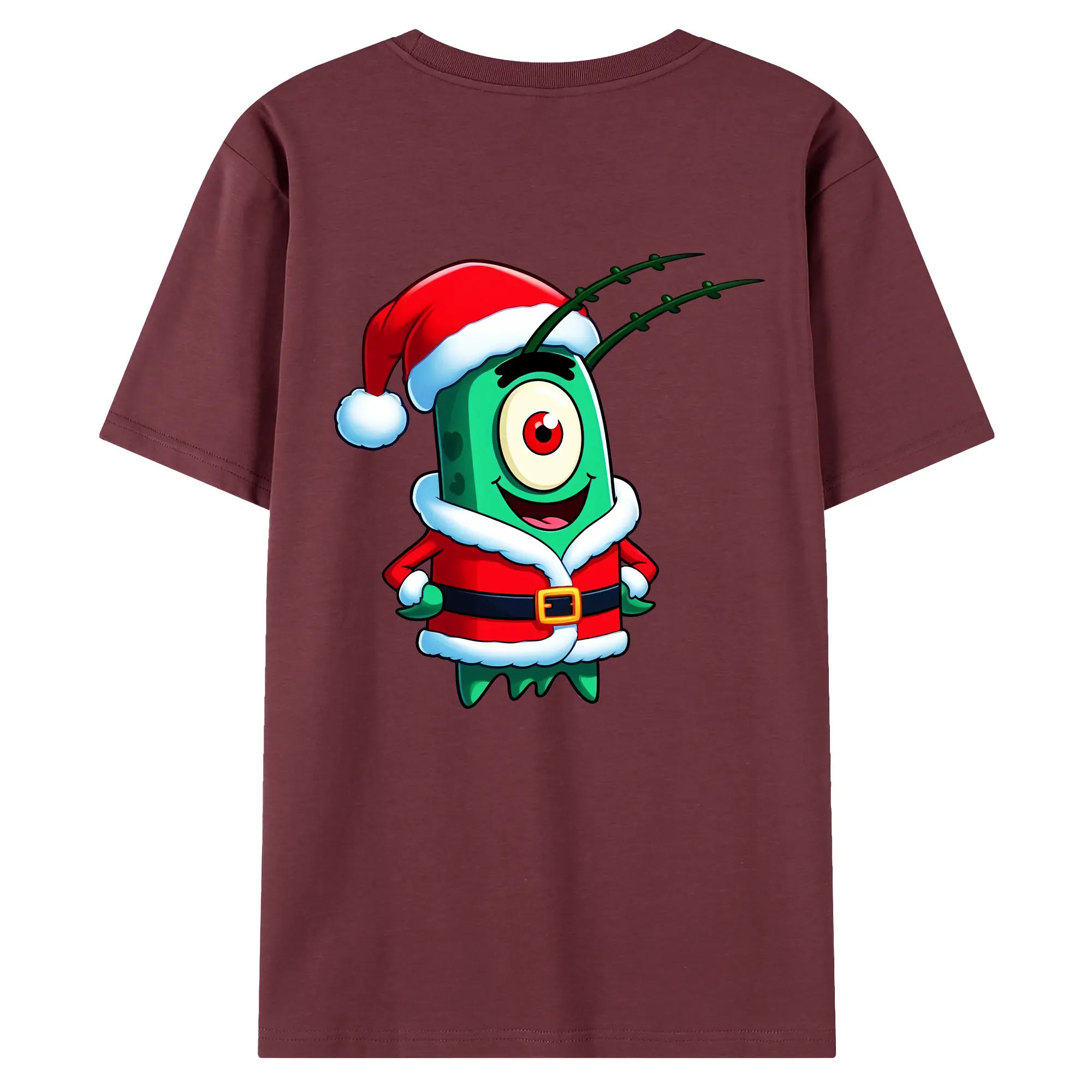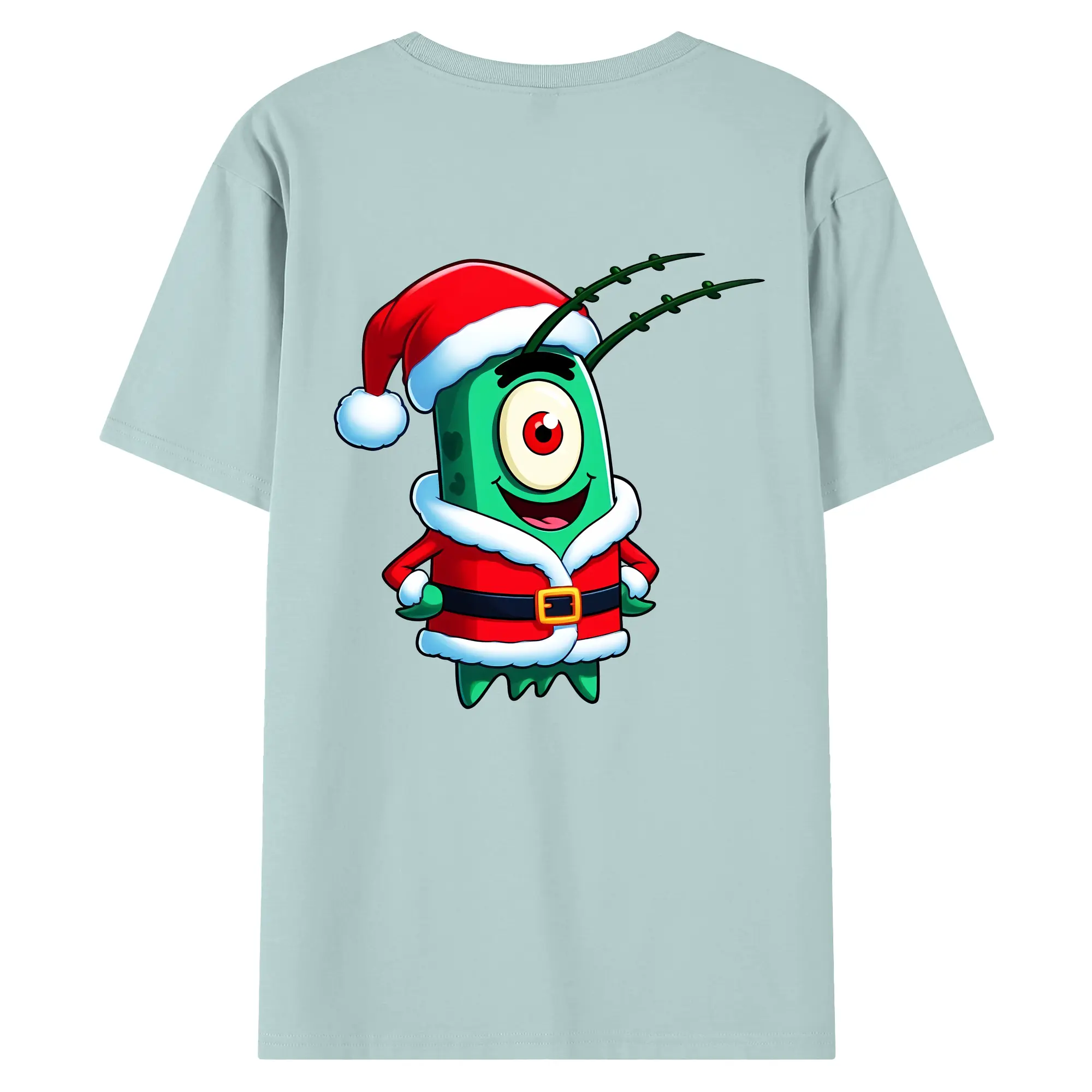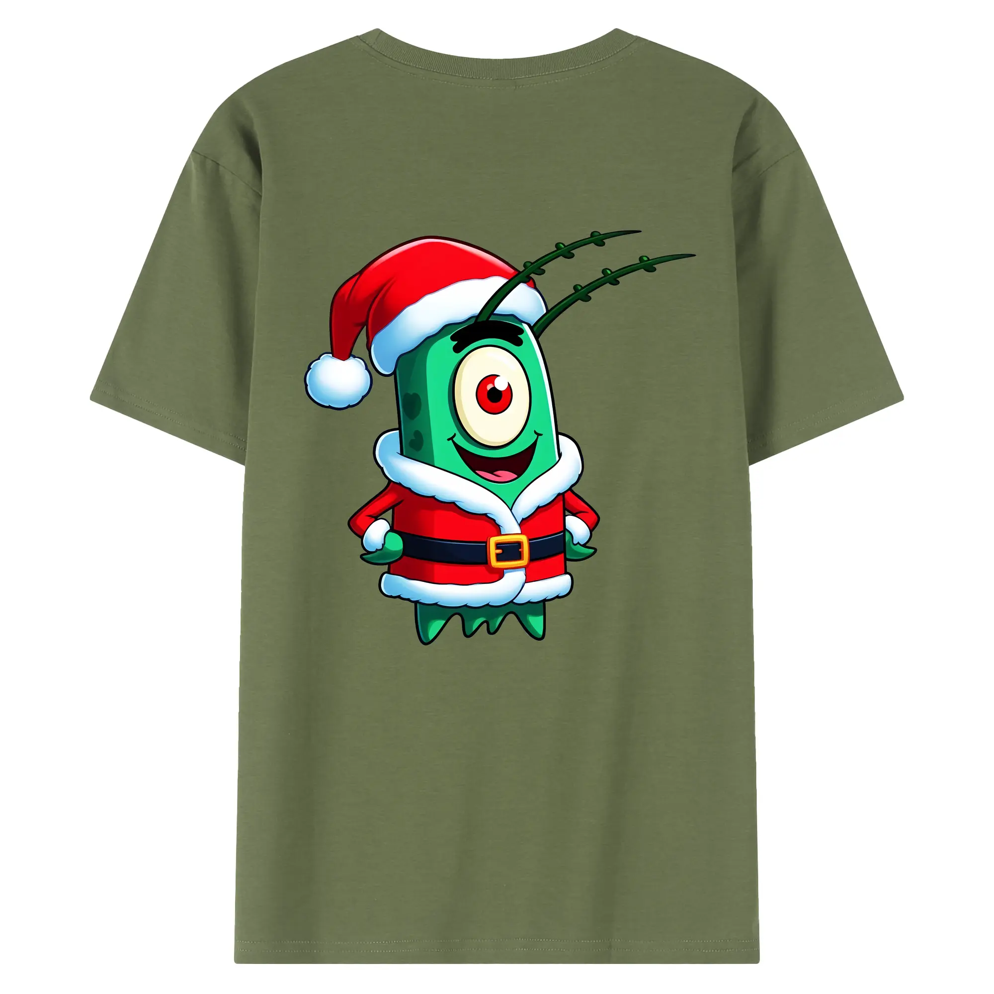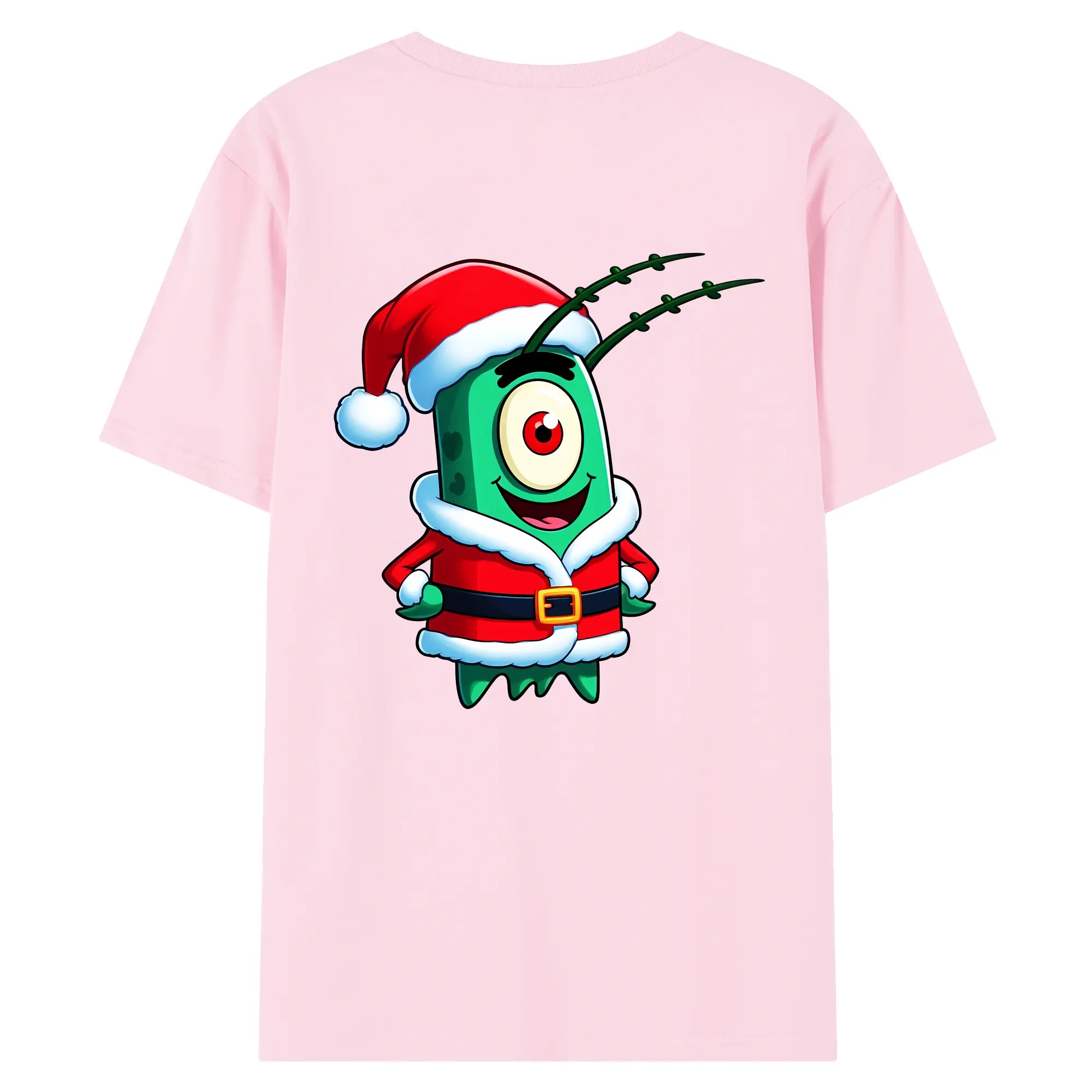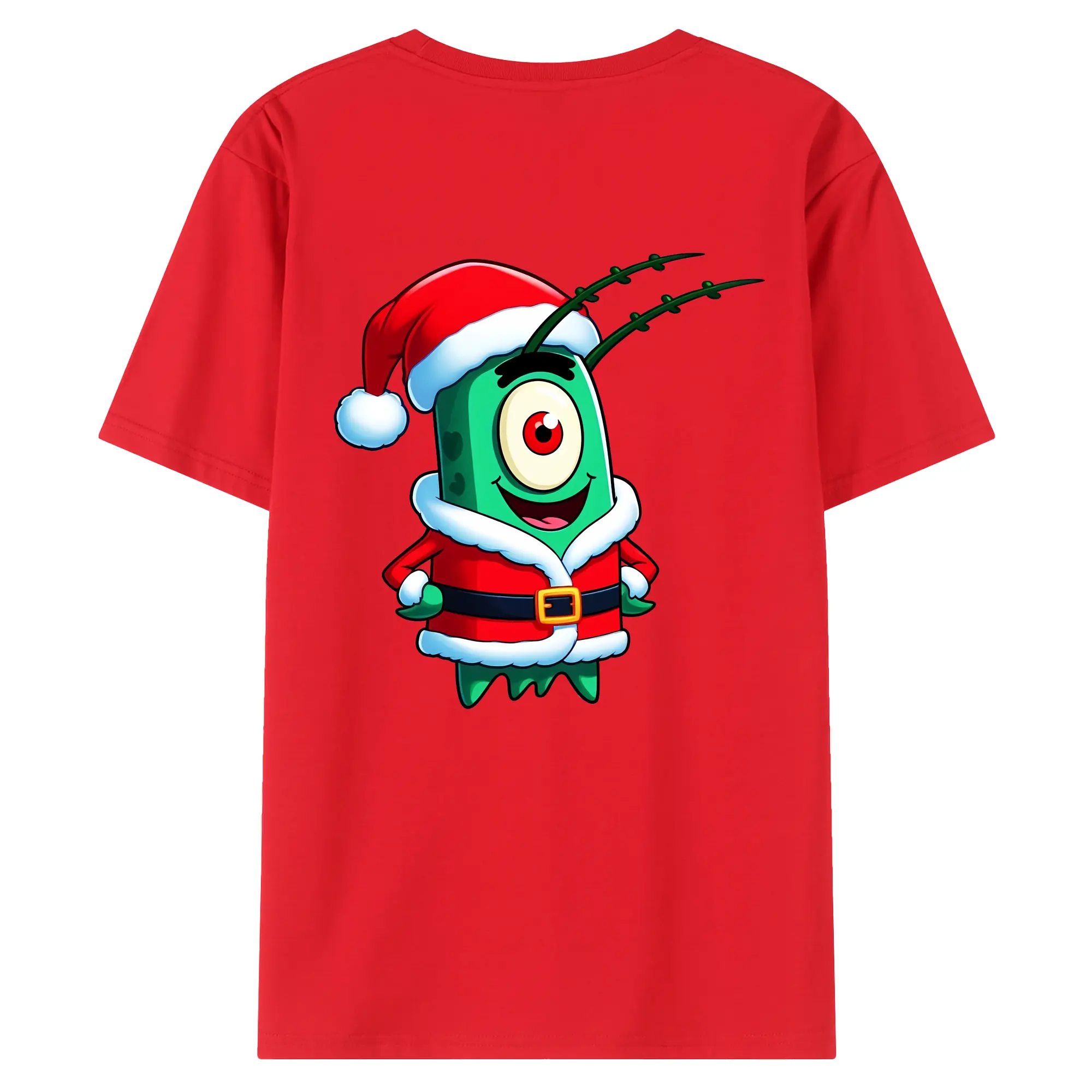 スポンジボブ グッズ プランクトン - 綿100% 半袖Tシャツ ・ フロントプリント ・ 快適 通気性 ・ 日常使い 散歩 スポーツ用