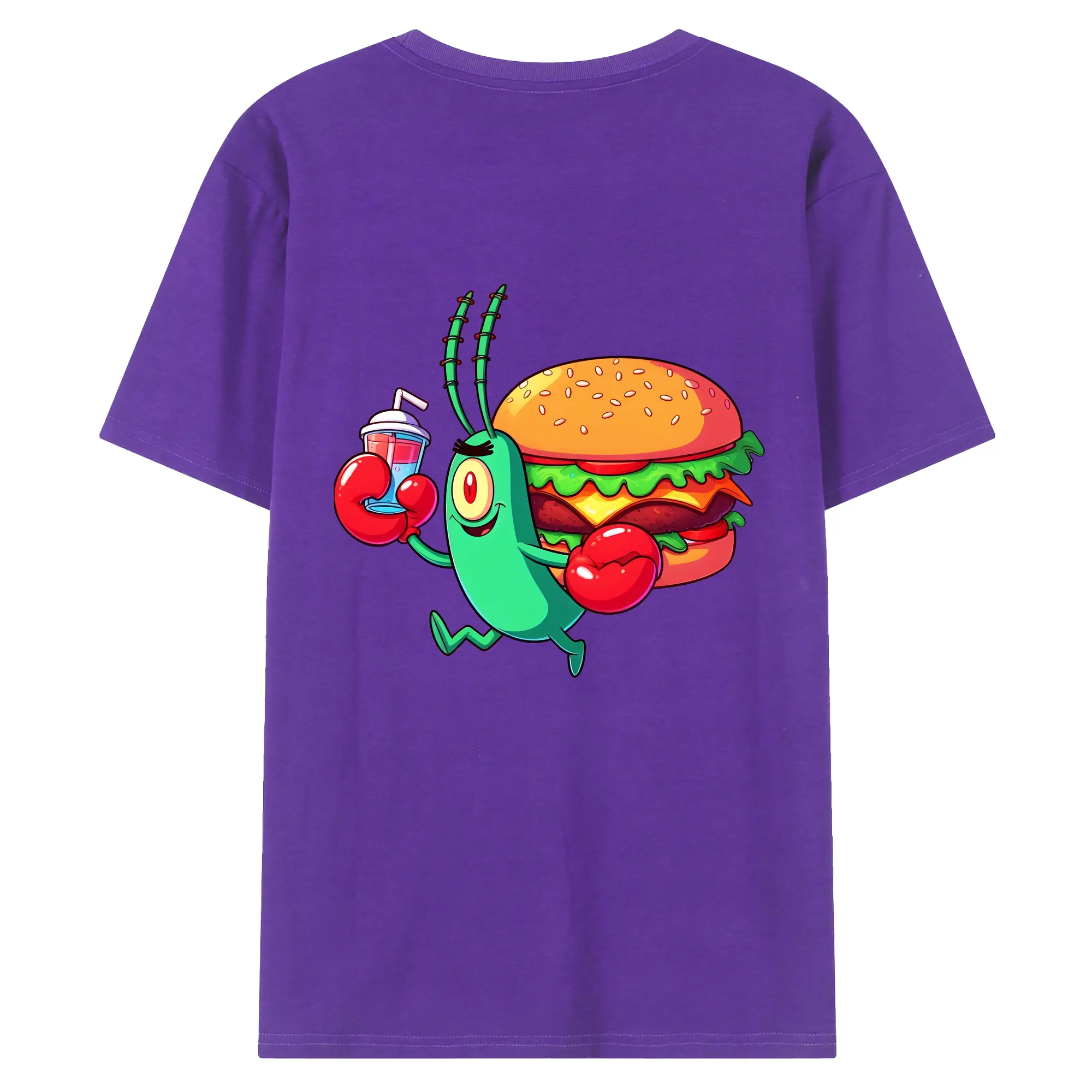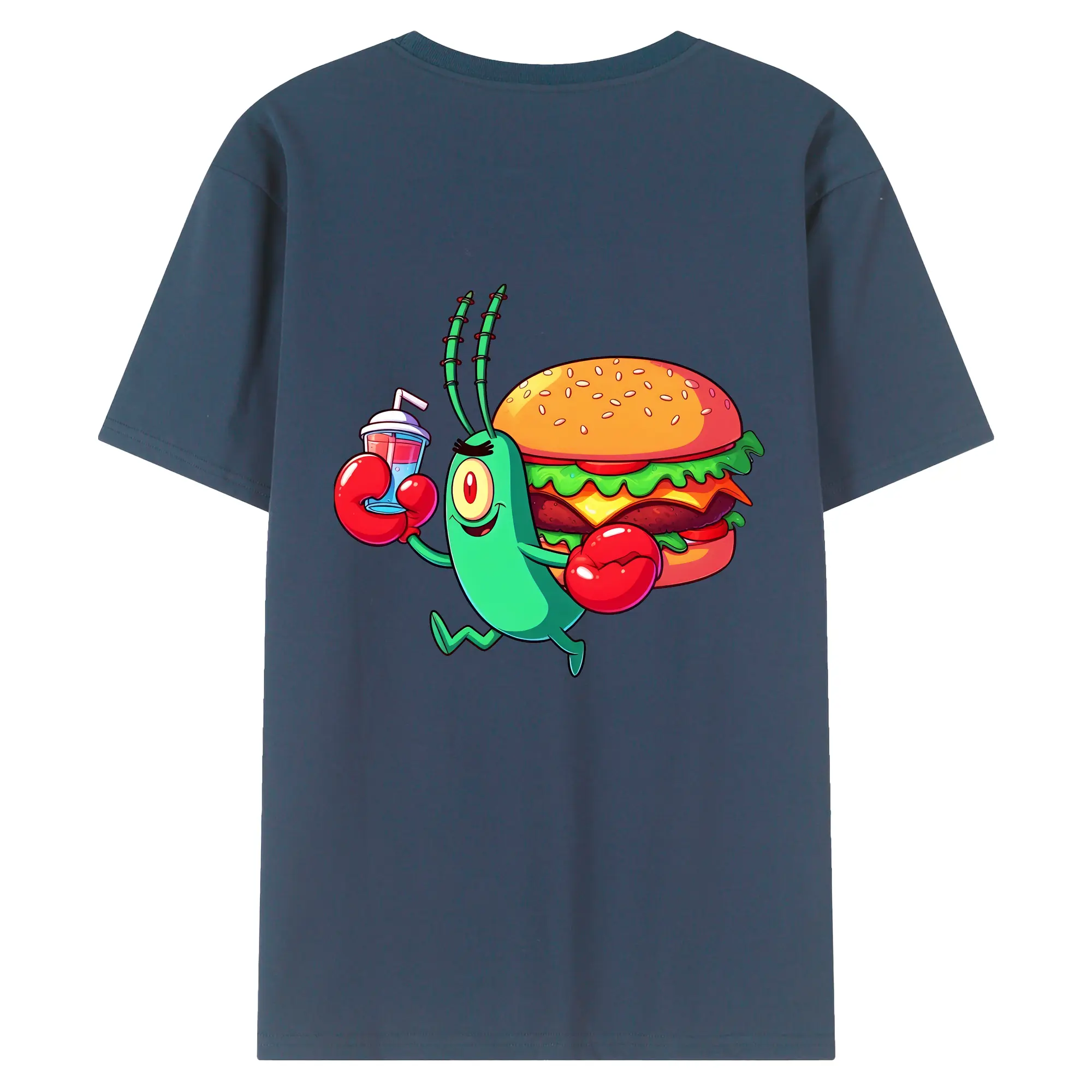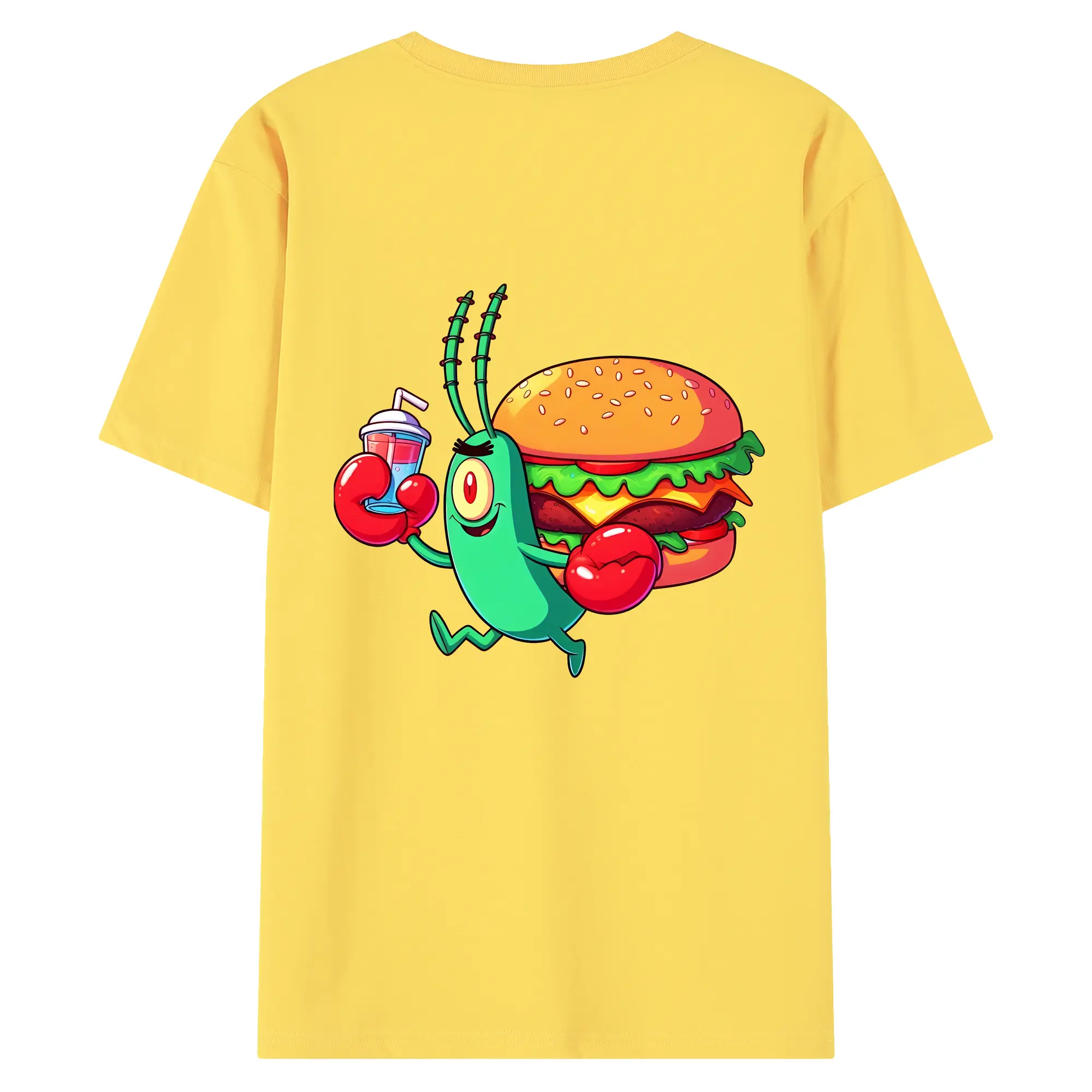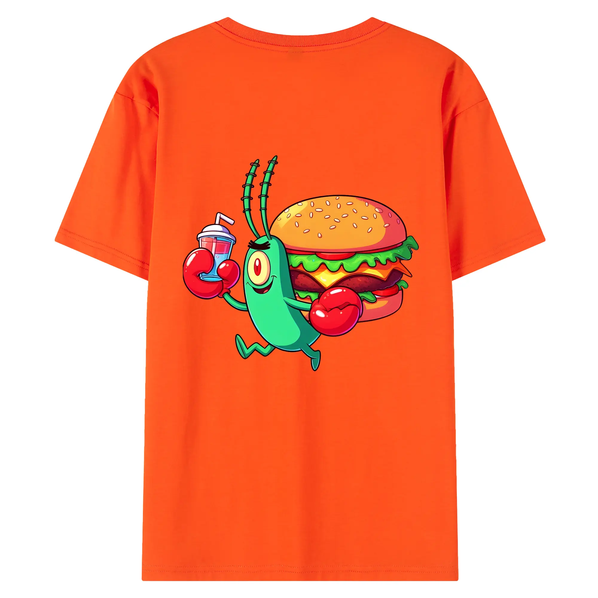 スポンジボブ グッズ プランクトン - 綿100% ヴィンテージ風 半袖Tシャツ ・ 背面プリント ・ 柔らか肌触り ・ 通気性 快適 ・ スポーツ カジュアル 外出用