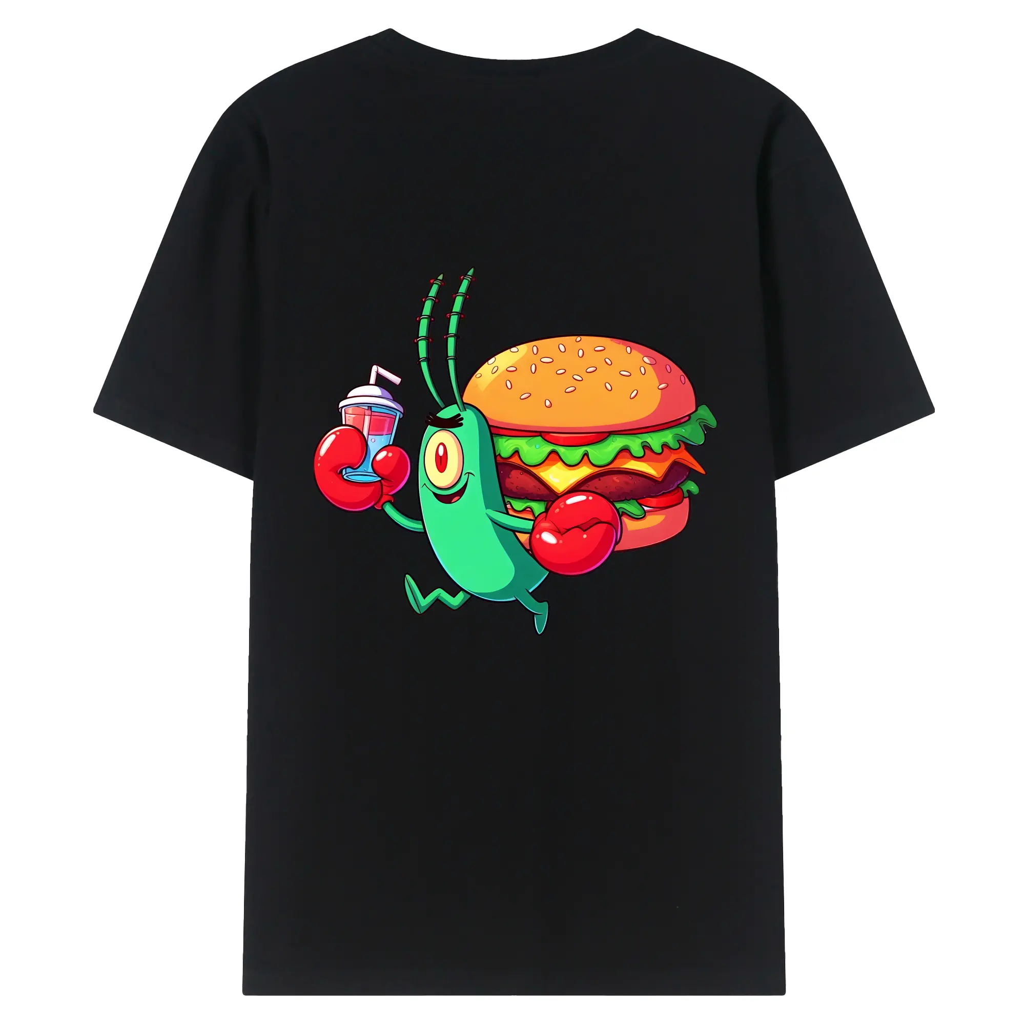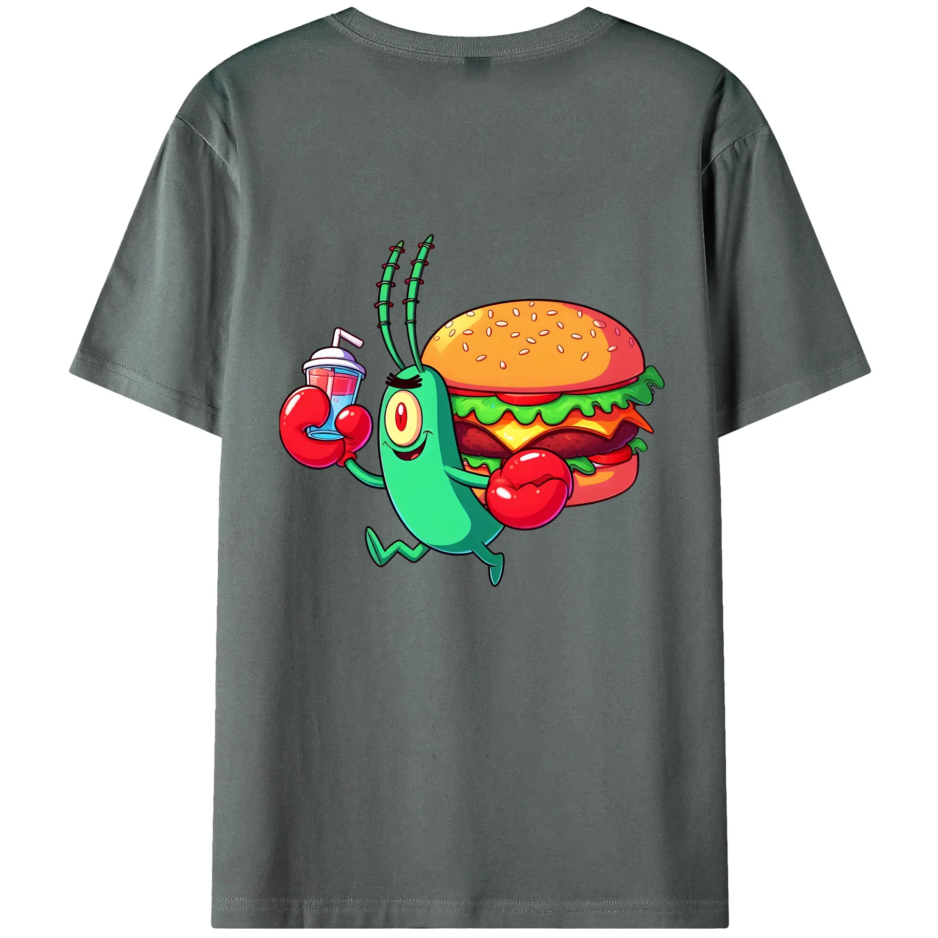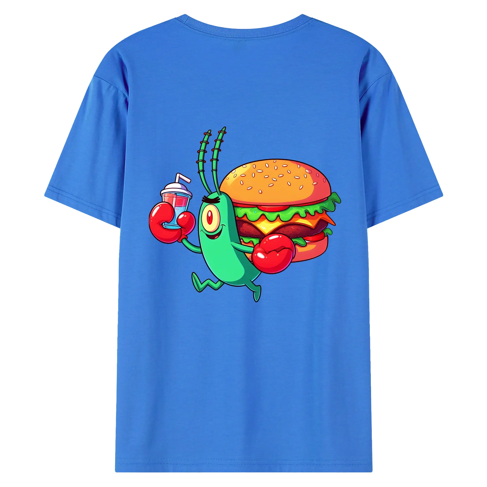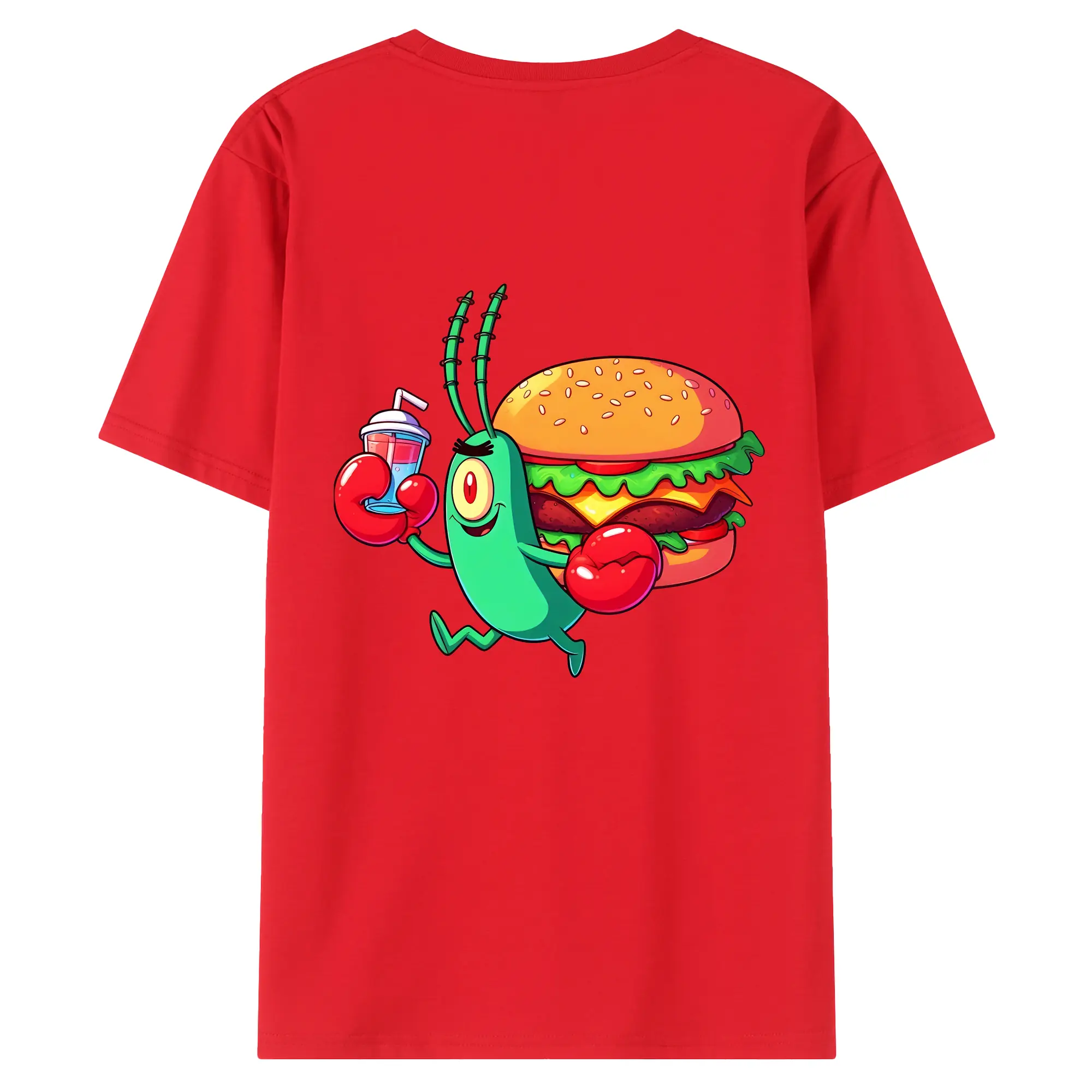 スポンジボブ グッズ プランクトン - 綿100% ヴィンテージ風 半袖Tシャツ ・ 背面プリント ・ 柔らか肌触り ・ 通気性 快適 ・ スポーツ カジュアル 外出用