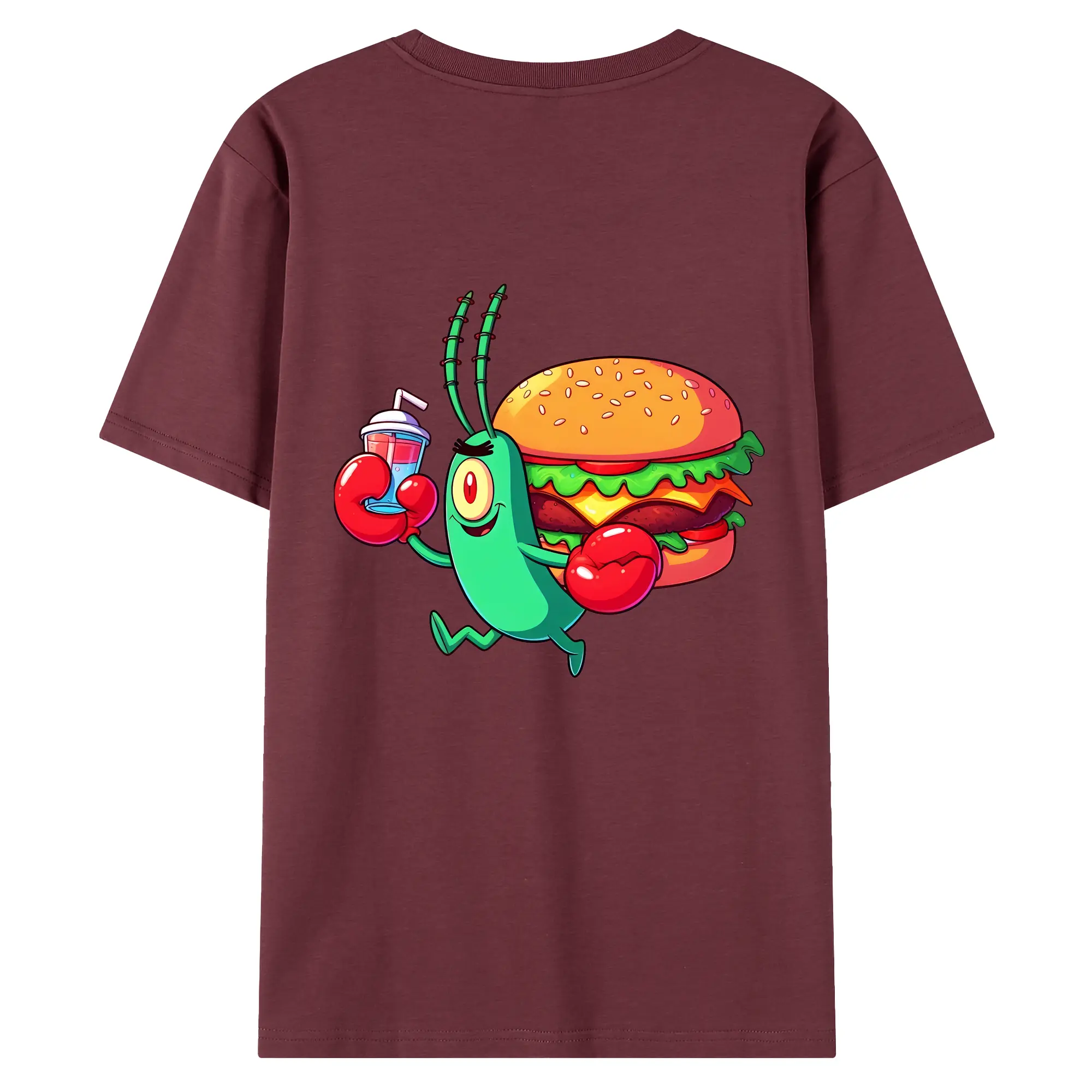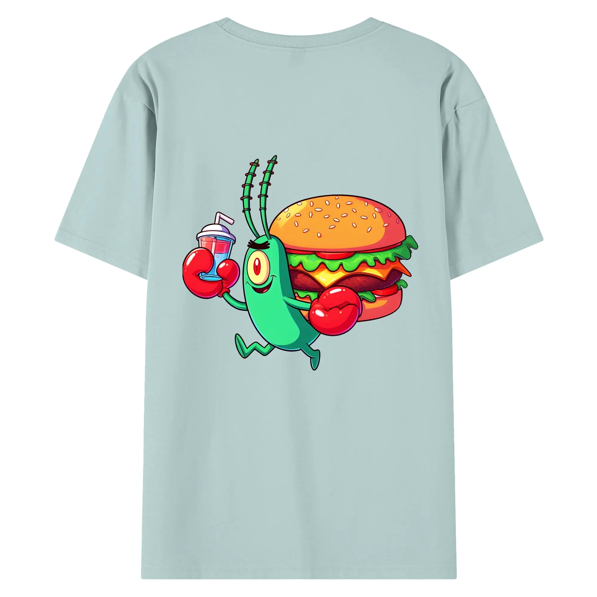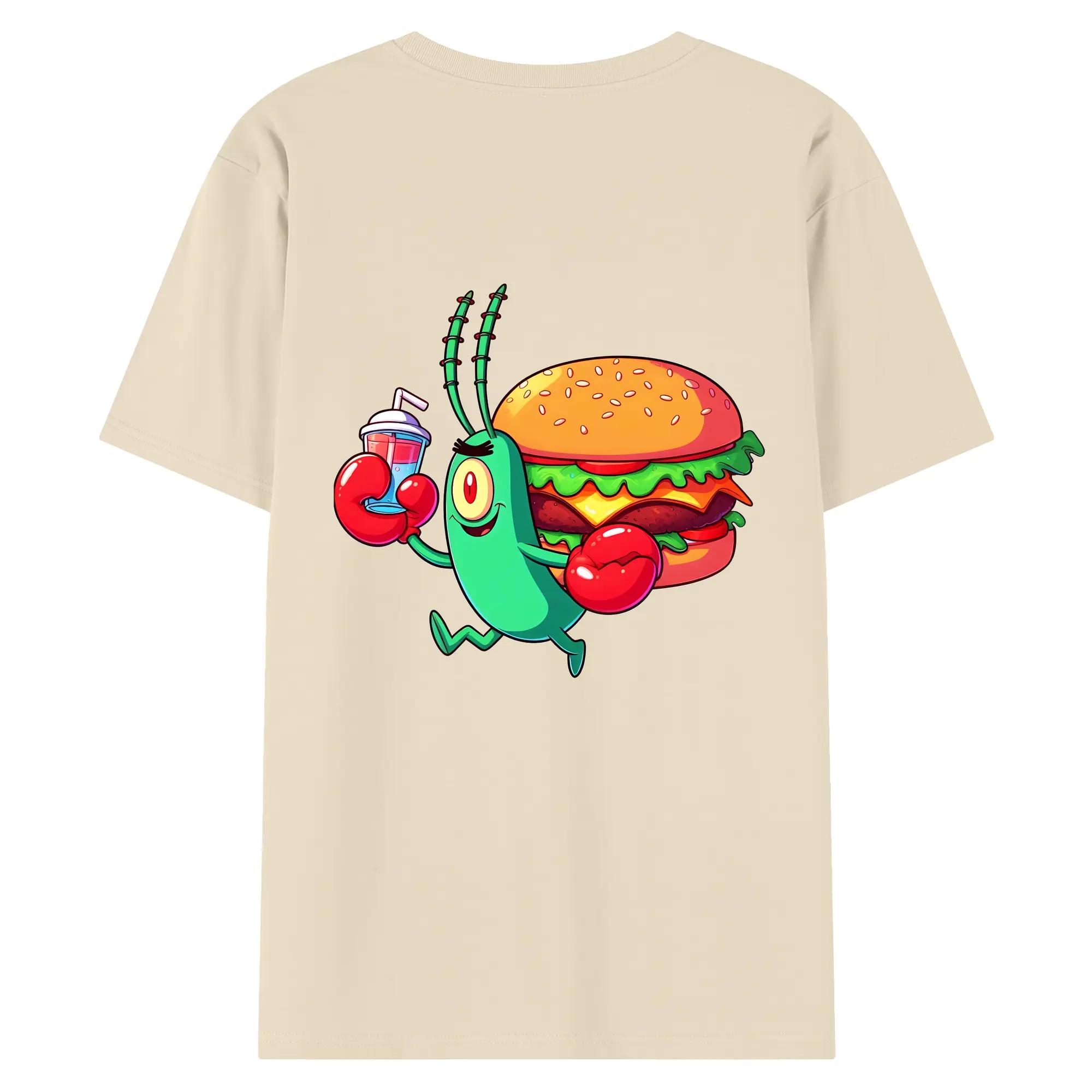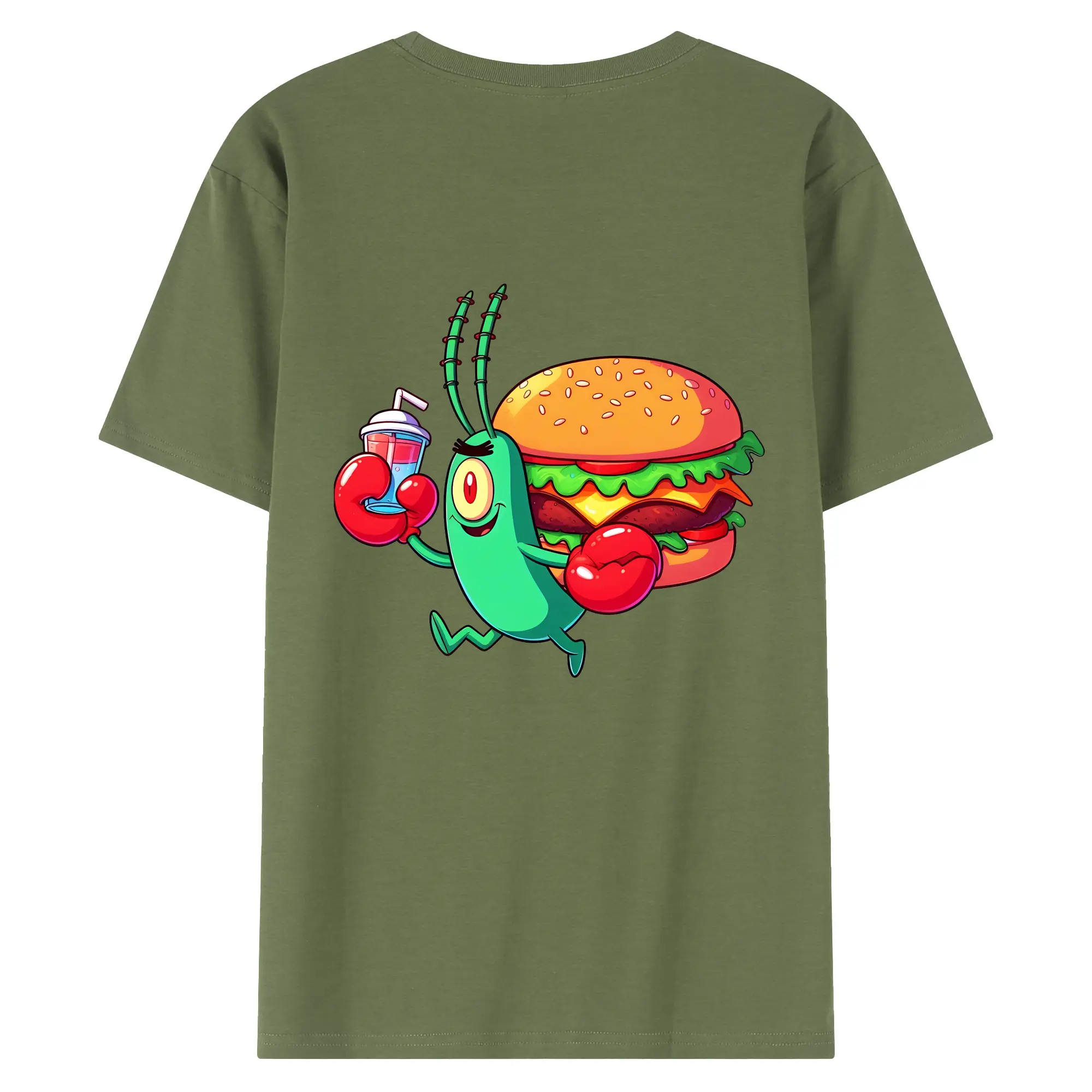 スポンジボブ グッズ プランクトン - 綿100% ヴィンテージ風 半袖Tシャツ ・ 背面プリント ・ 柔らか肌触り ・ 通気性 快適 ・ スポーツ カジュアル 外出用