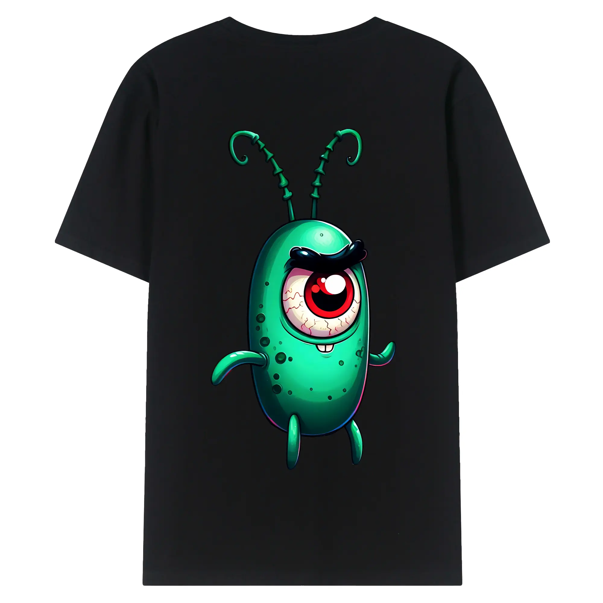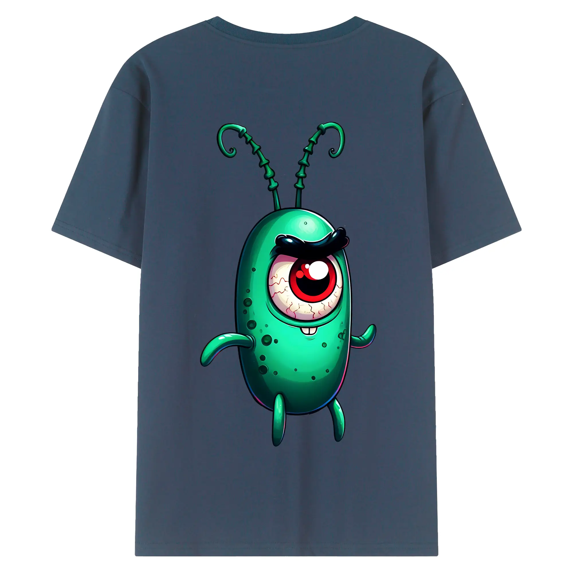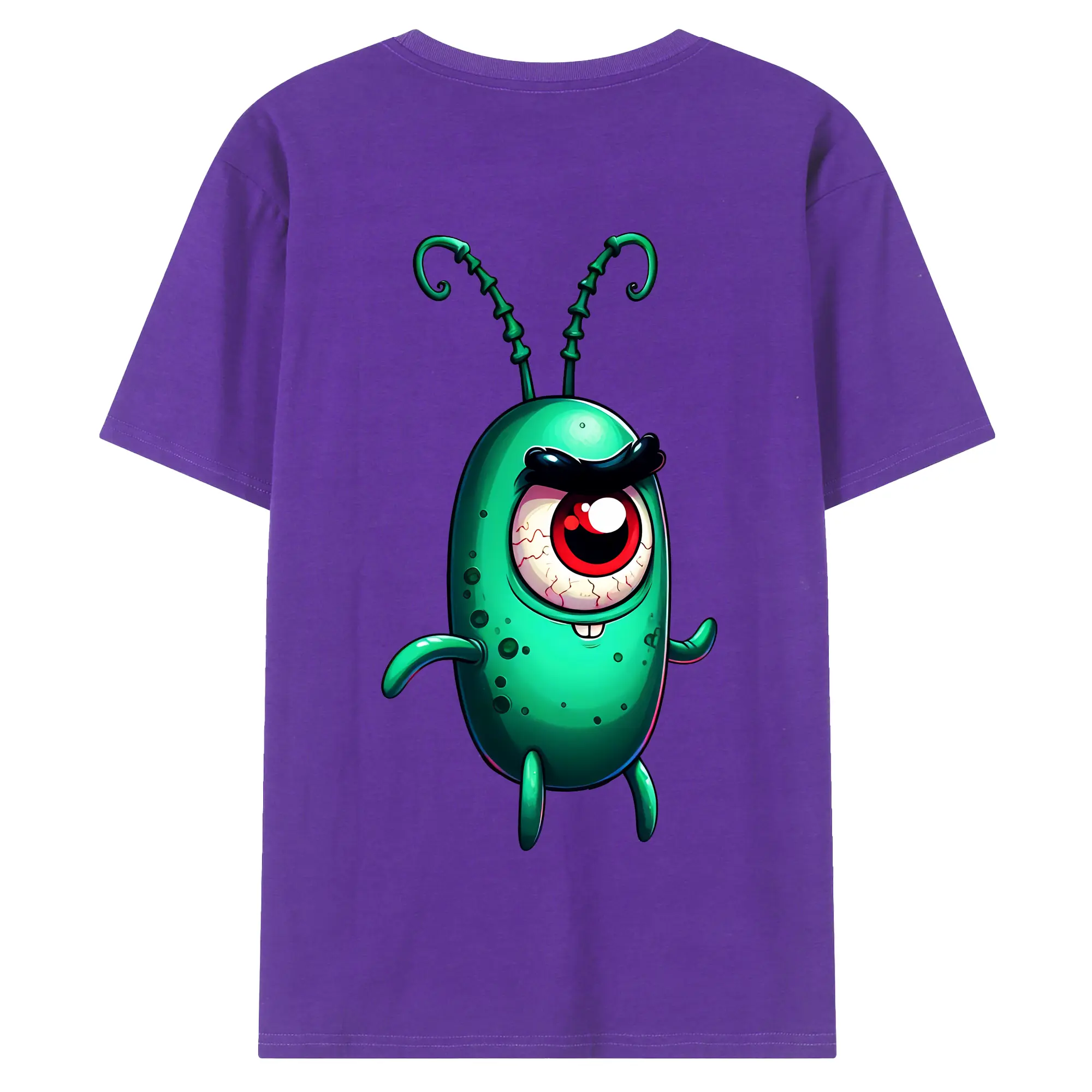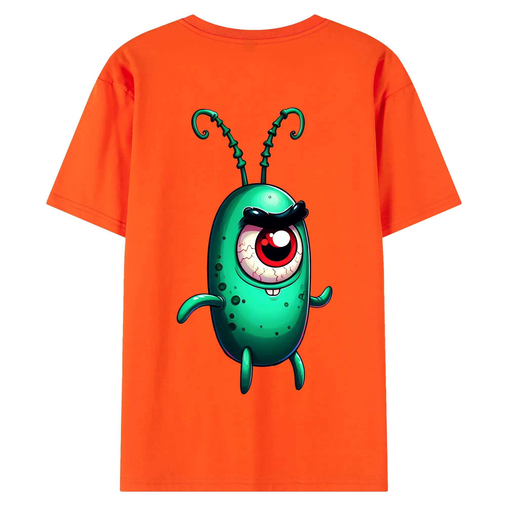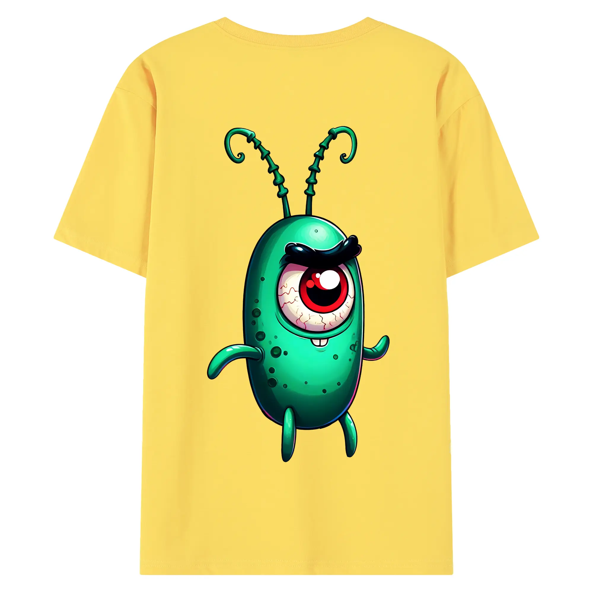 スポンジボブ グッズ プランクトン - 綿100% ヴィンテージ風 半袖Tシャツ ・ 背面プリント ・ 柔らか肌触り ・ 通気性 快適 ・ スポーツ カジュアル 外出用