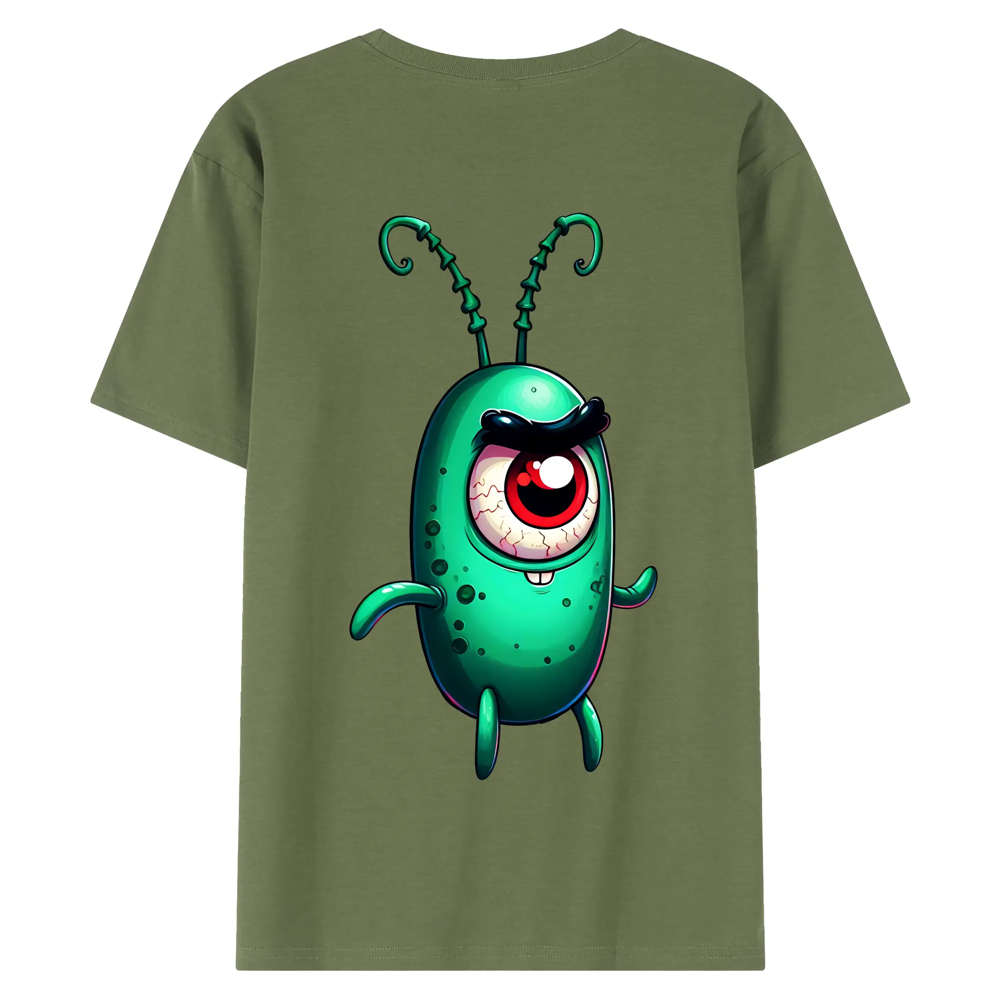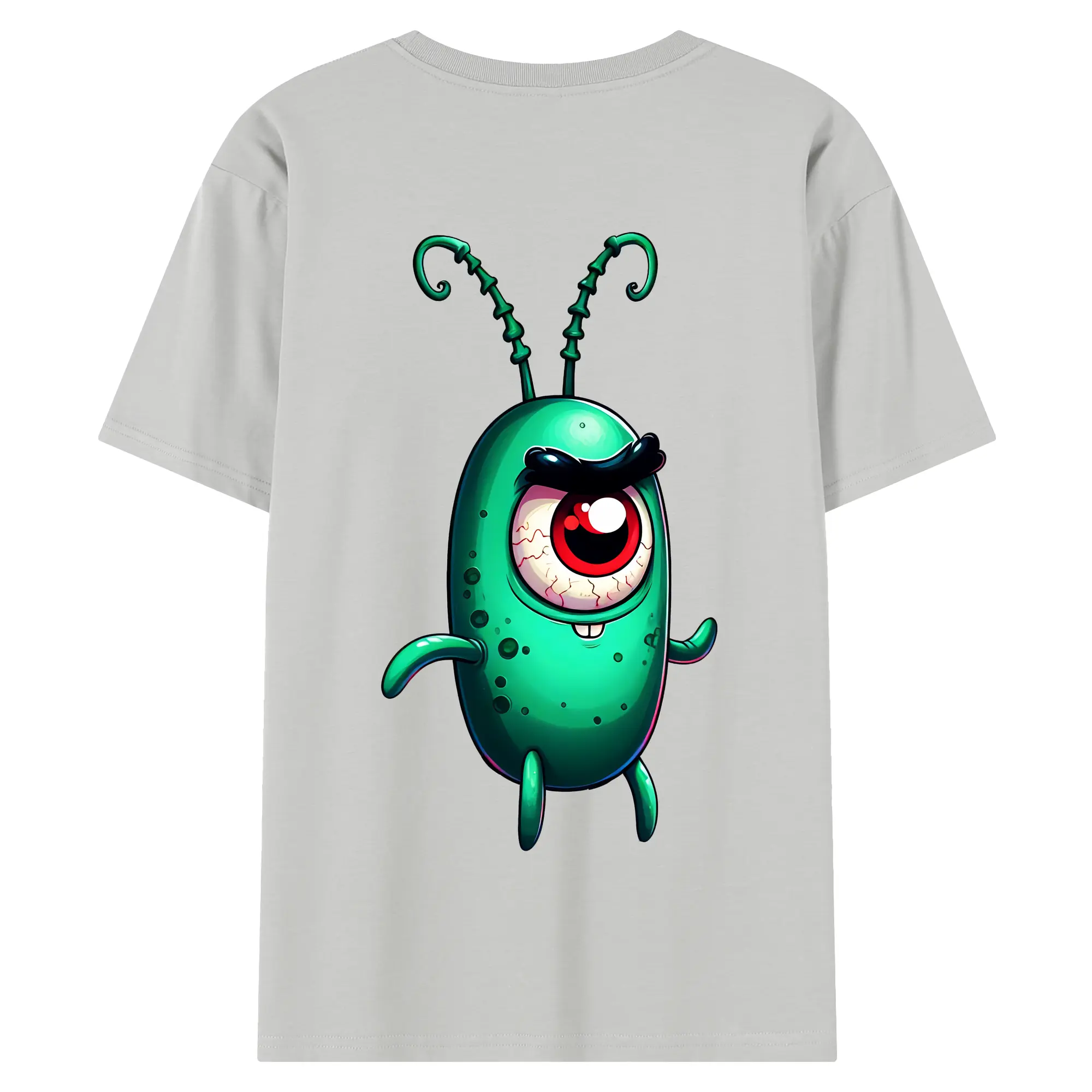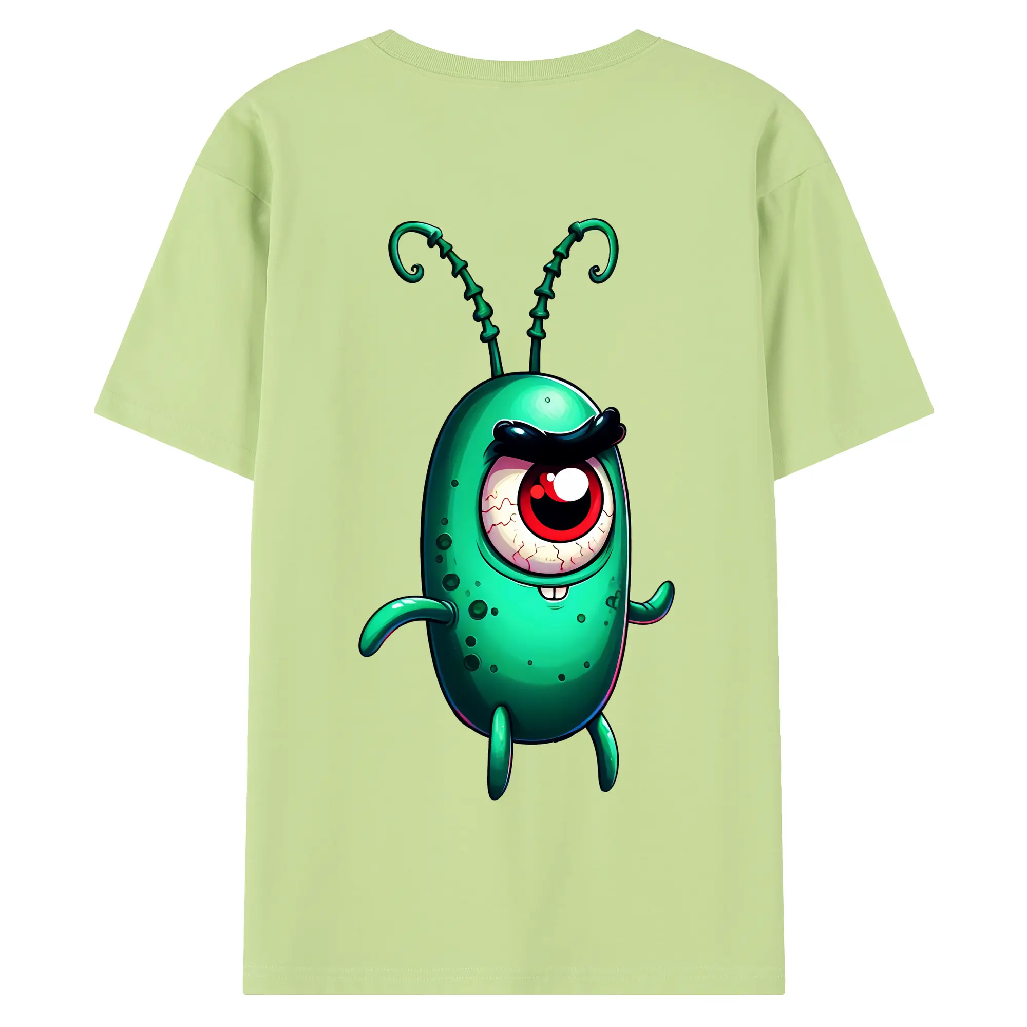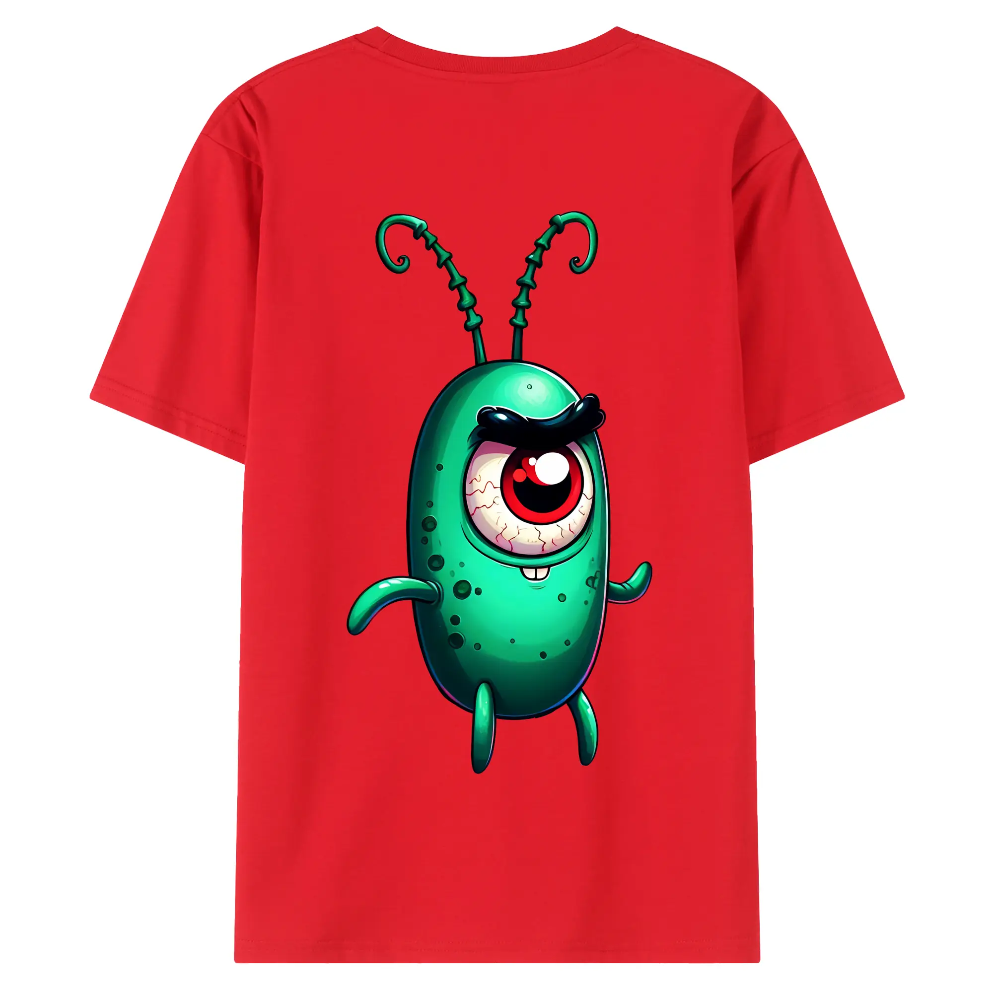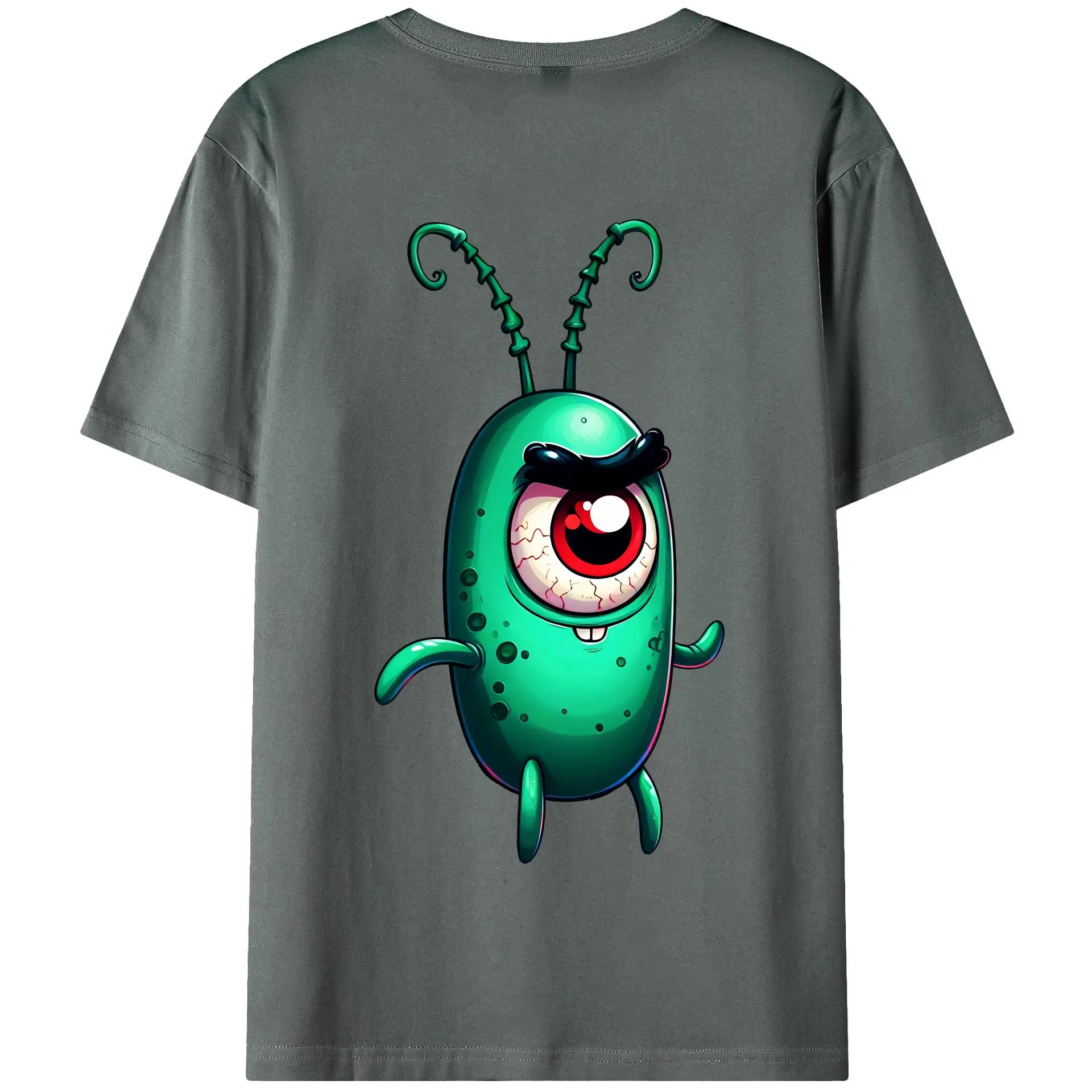スポンジボブ グッズ プランクトン - 綿100% ヴィンテージ風 半袖Tシャツ ・ 背面プリント ・ 柔らか肌触り ・ 通気性 快適 ・ スポーツ カジュアル 外出用