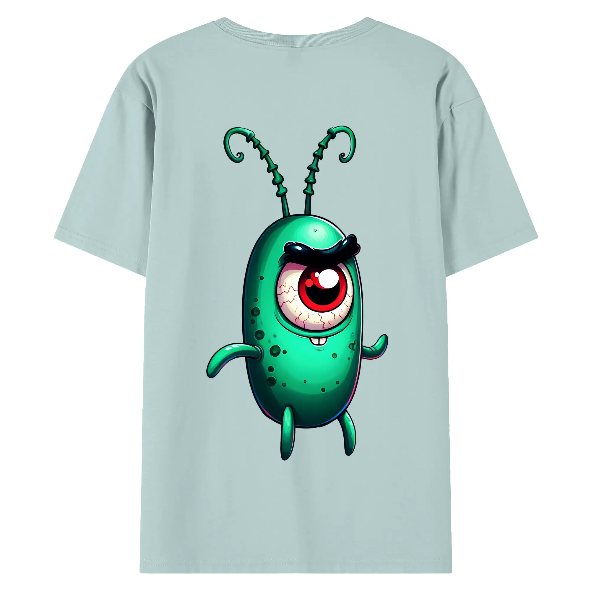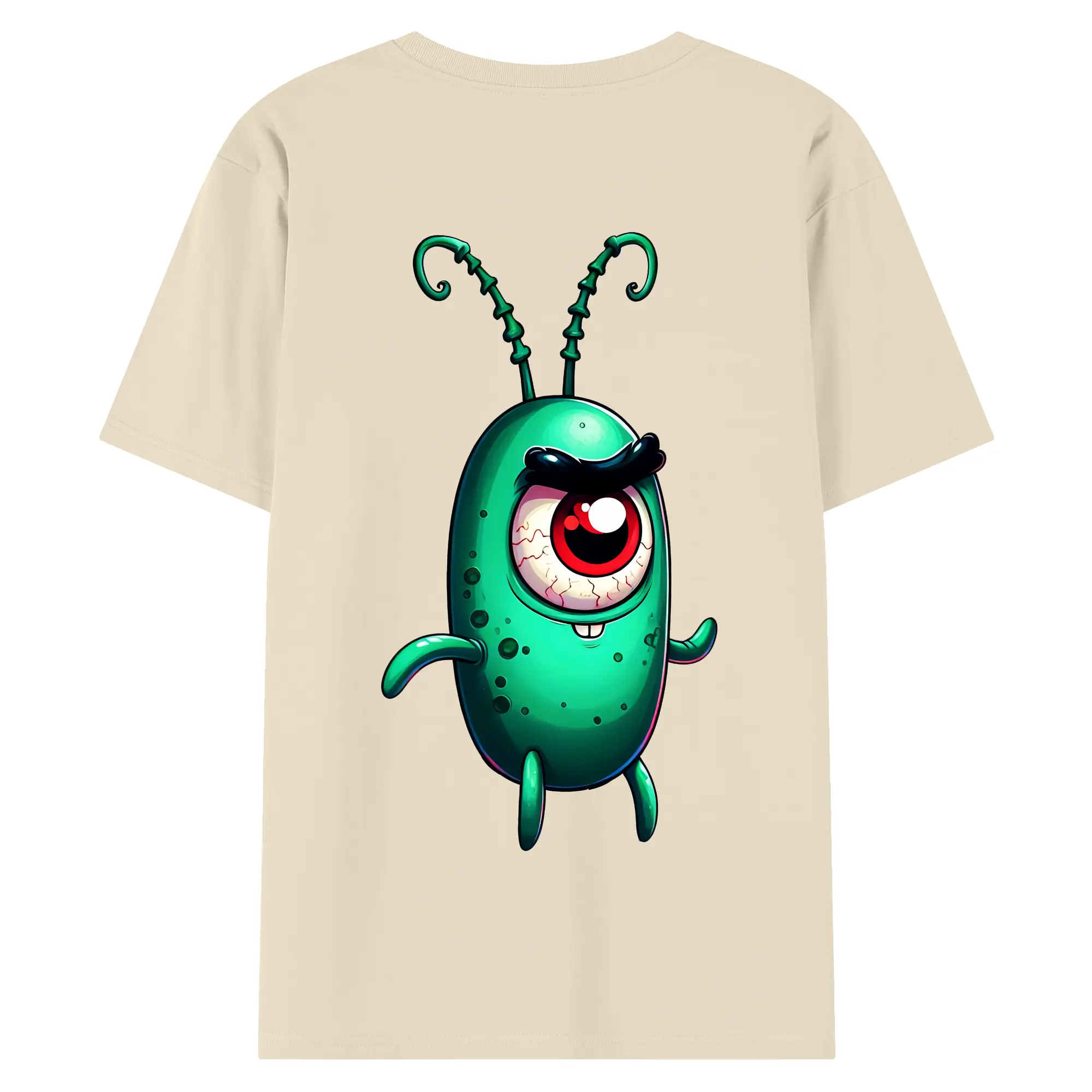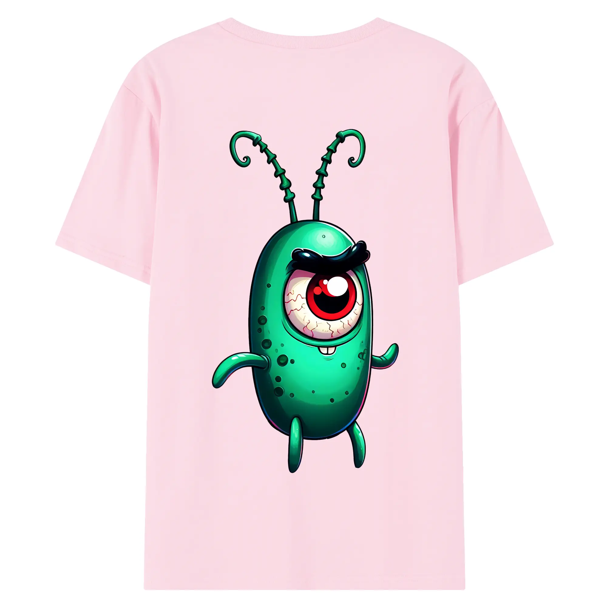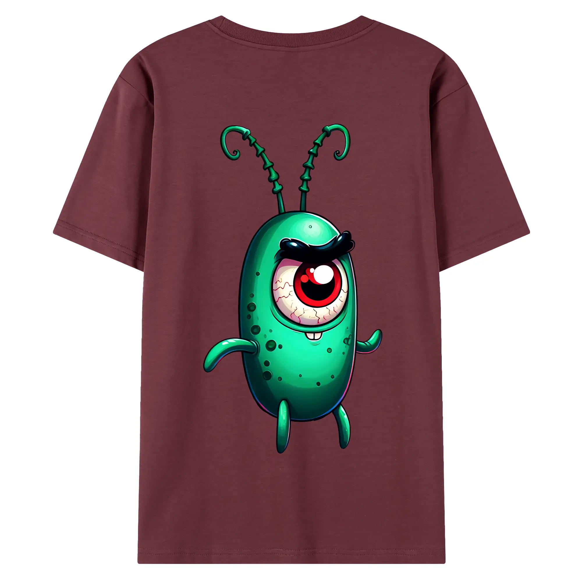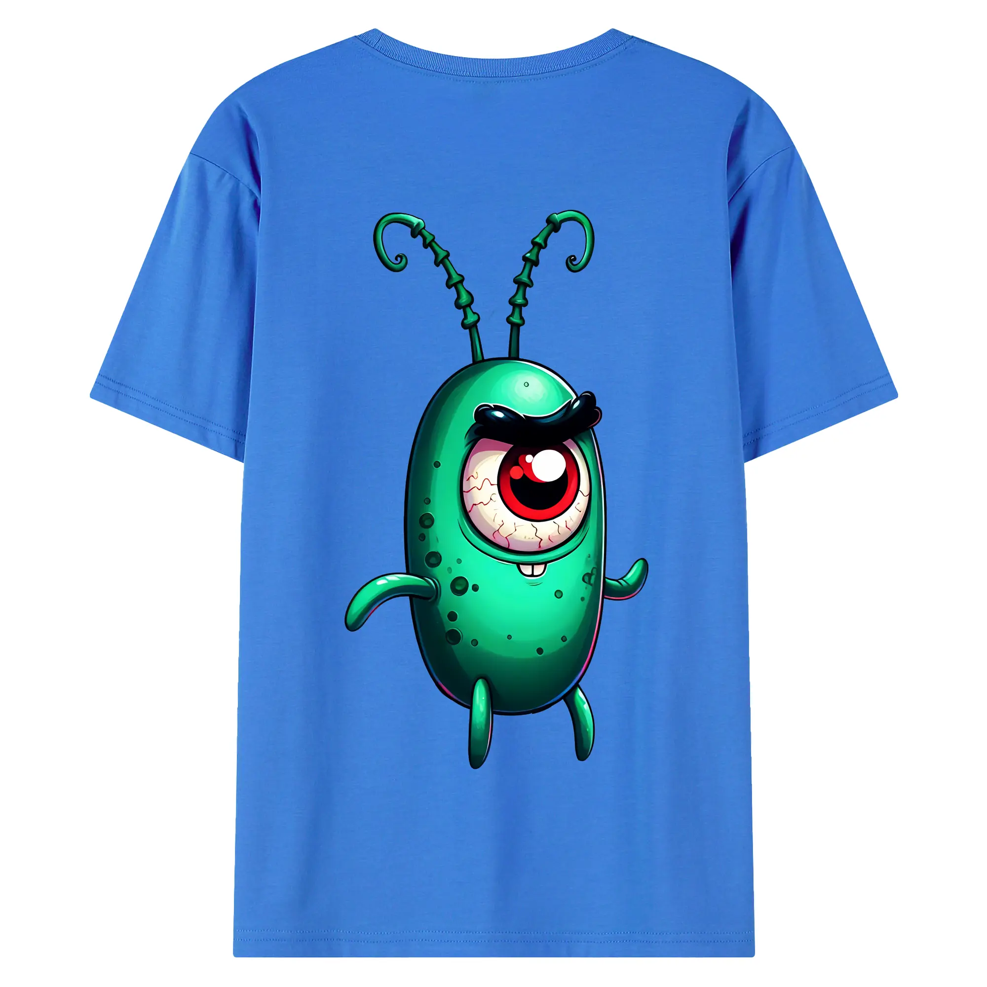 スポンジボブ グッズ プランクトン - 綿100% ヴィンテージ風 半袖Tシャツ ・ 背面プリント ・ 柔らか肌触り ・ 通気性 快適 ・ スポーツ カジュアル 外出用