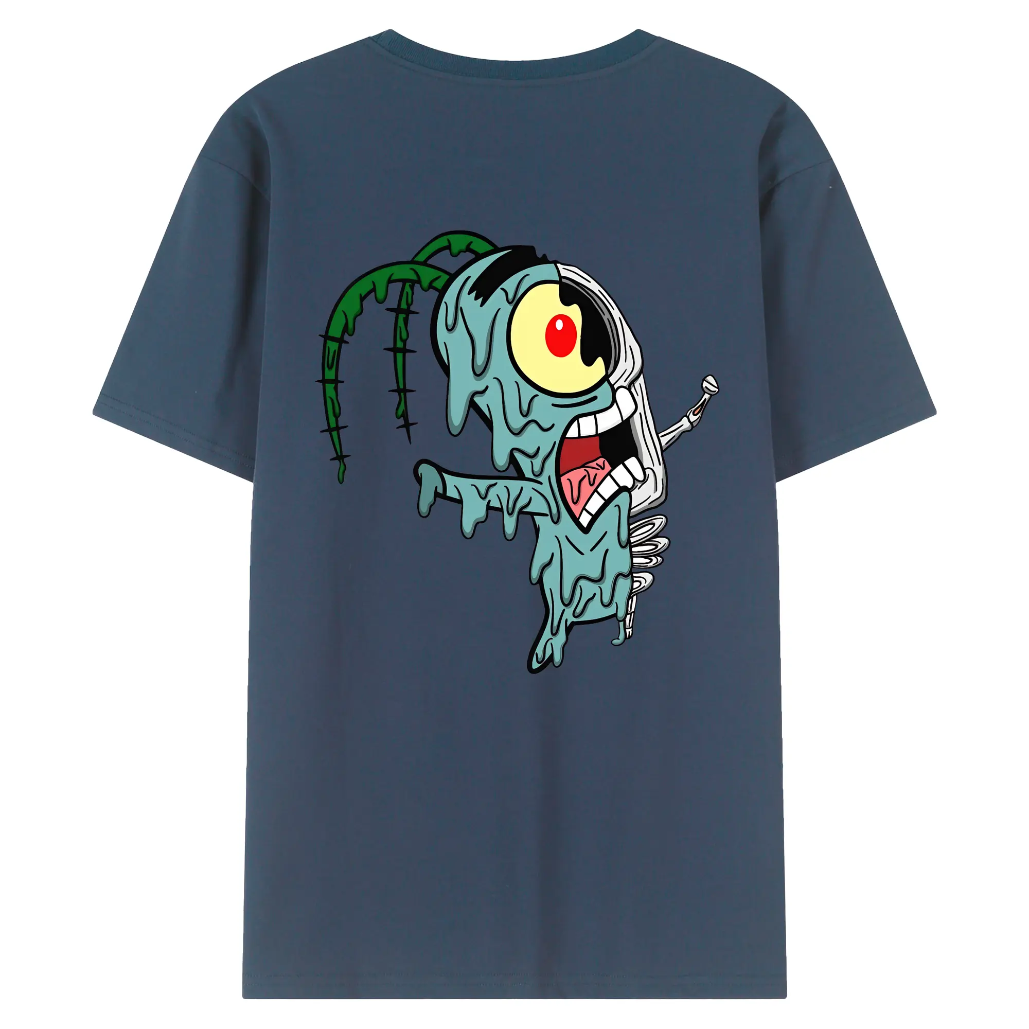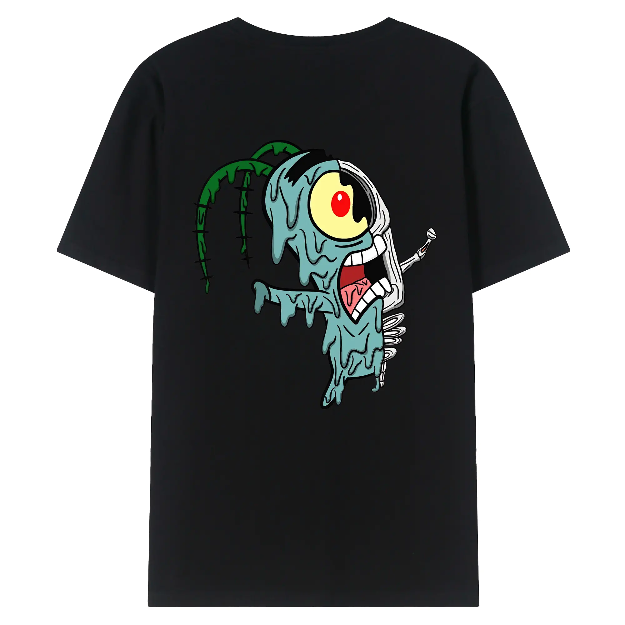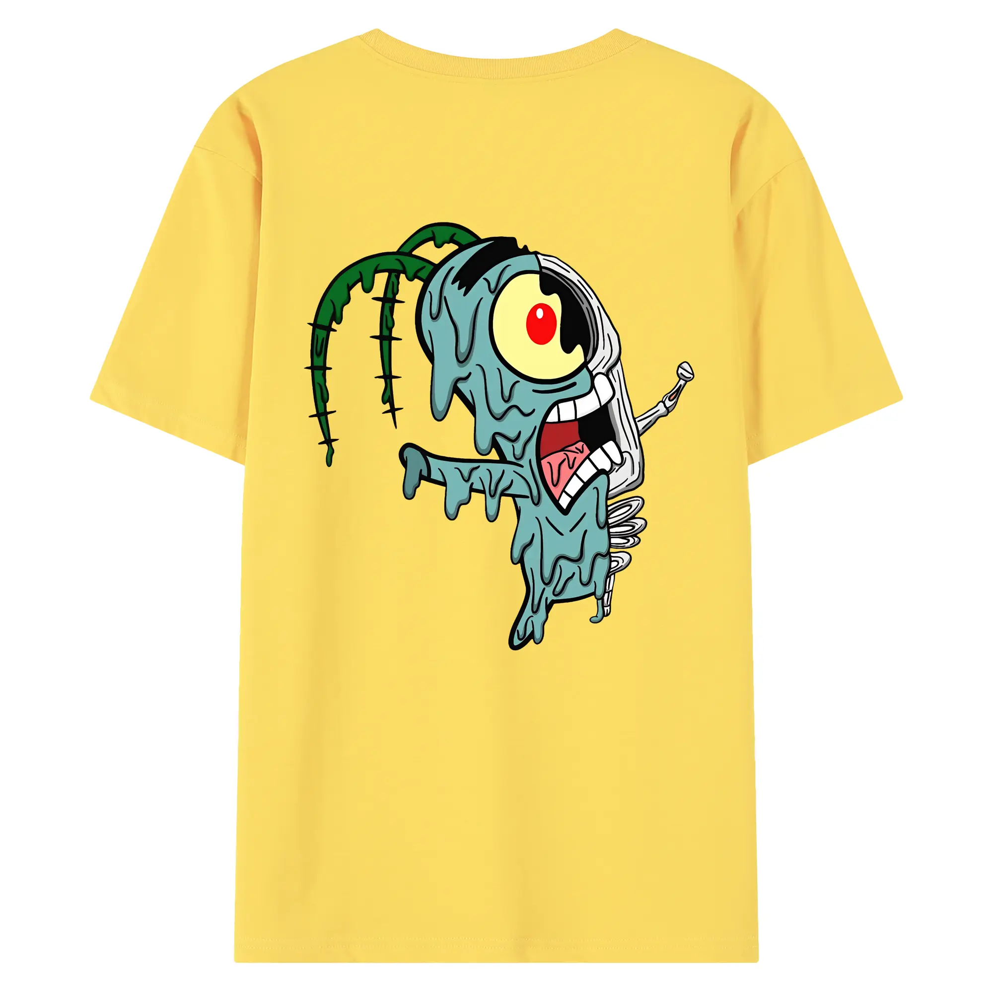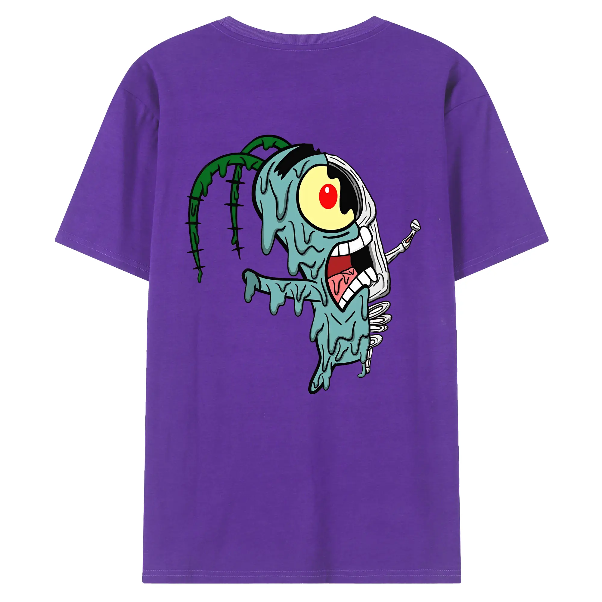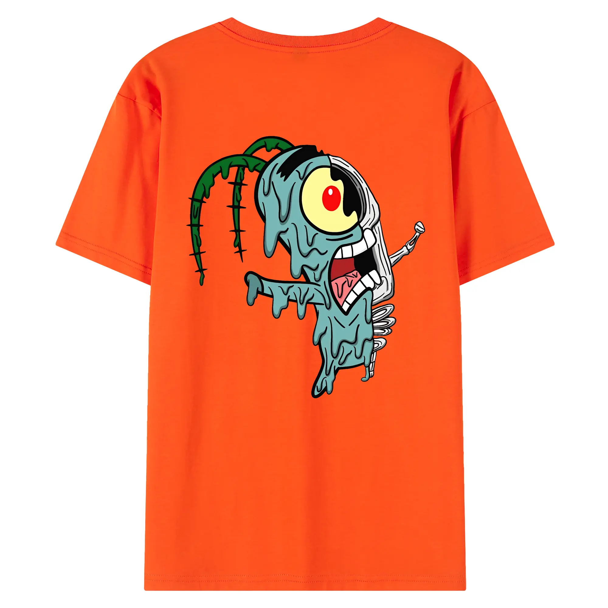 スポンジボブ グッズ プランクトン - 綿100% ヴィンテージ風 半袖Tシャツ ・ 背面プリント ・ 柔らか肌触り ・ 通気性 快適 ・ スポーツ カジュアル 外出用