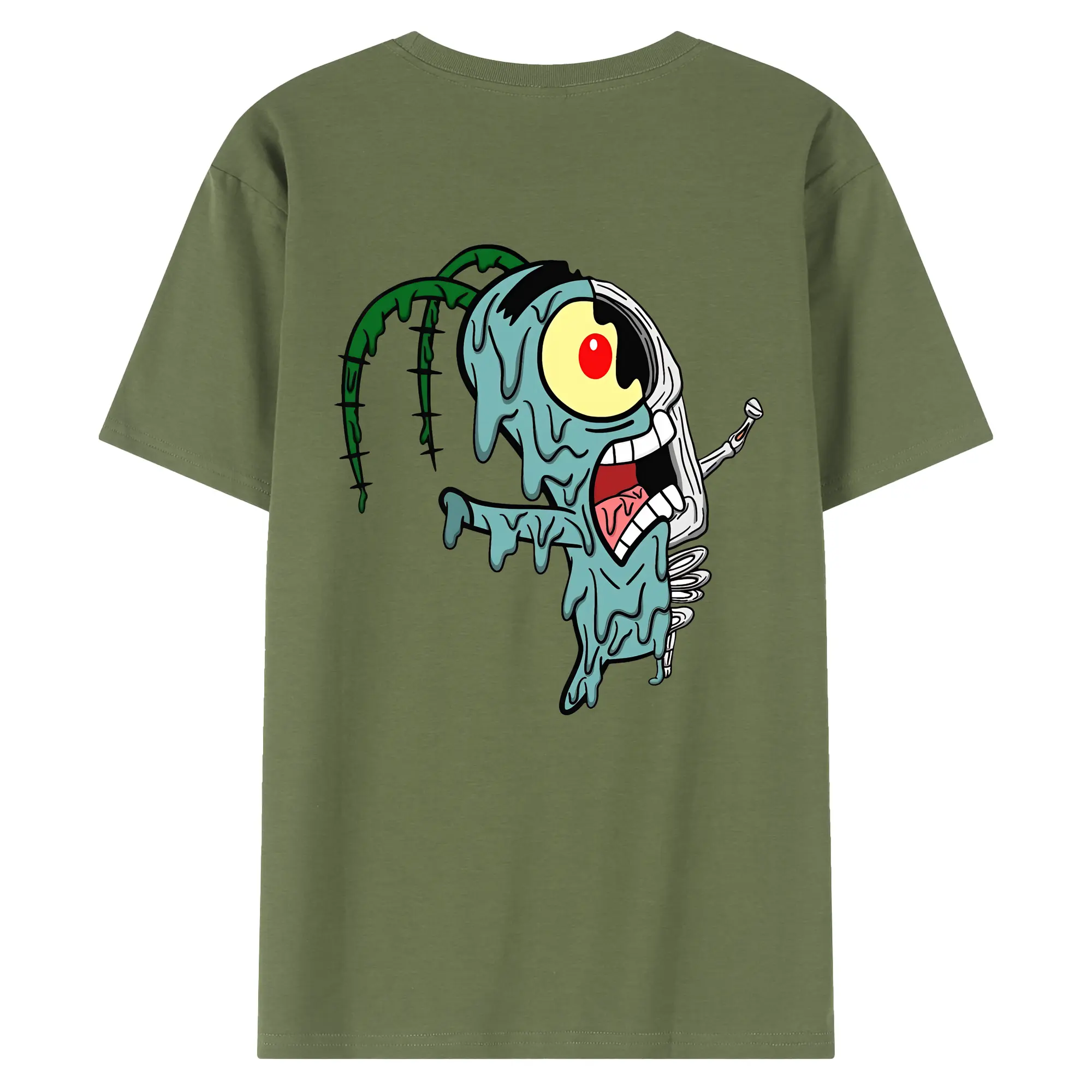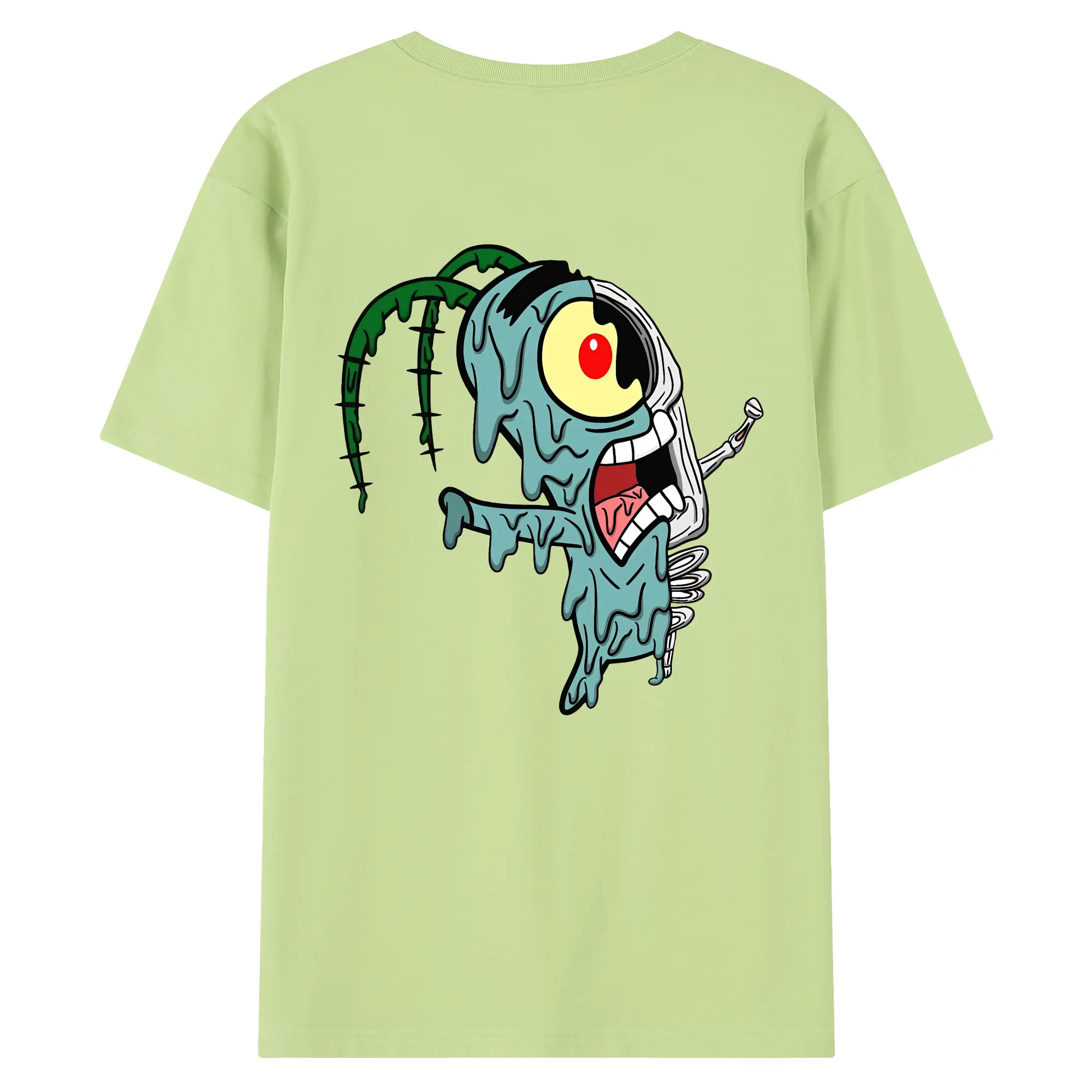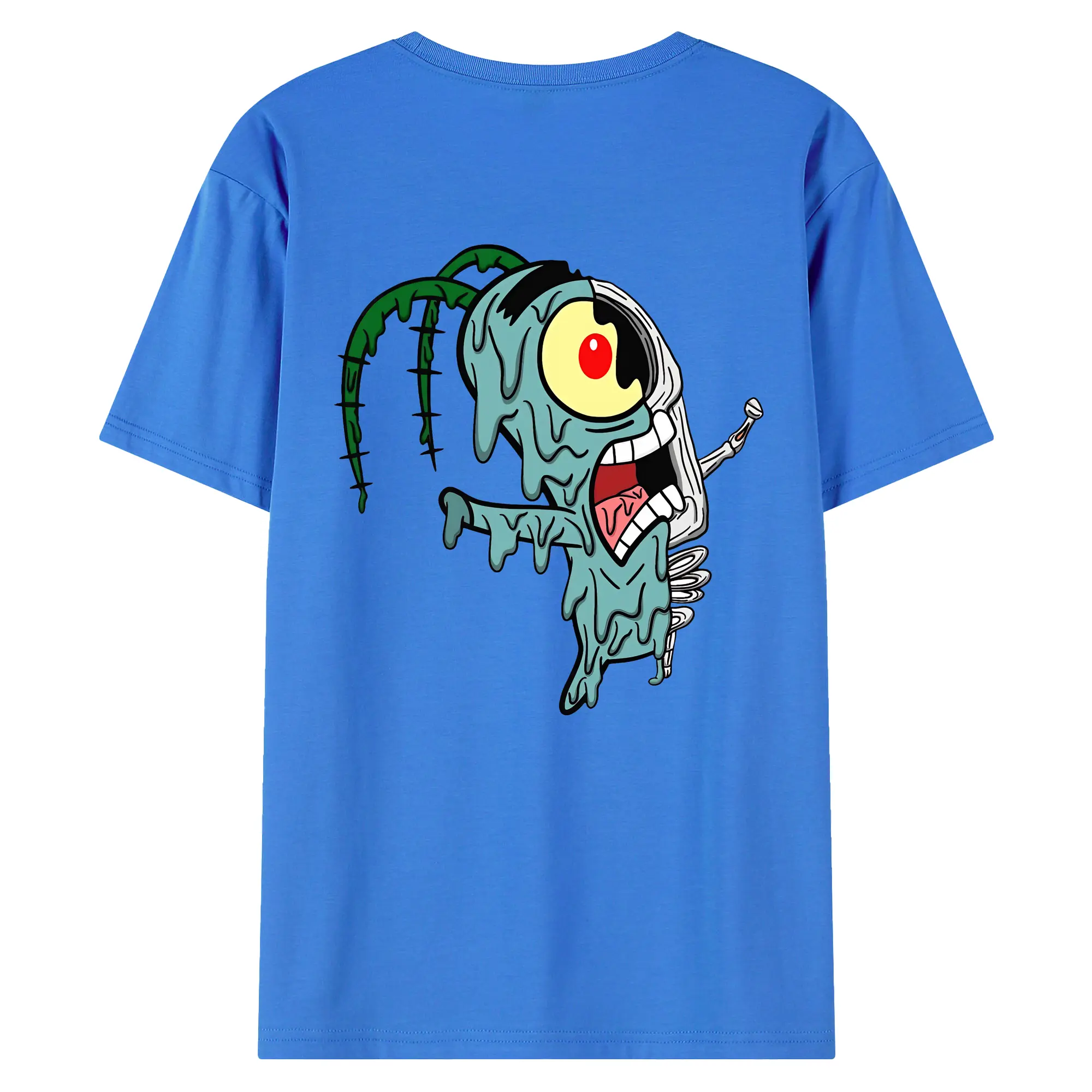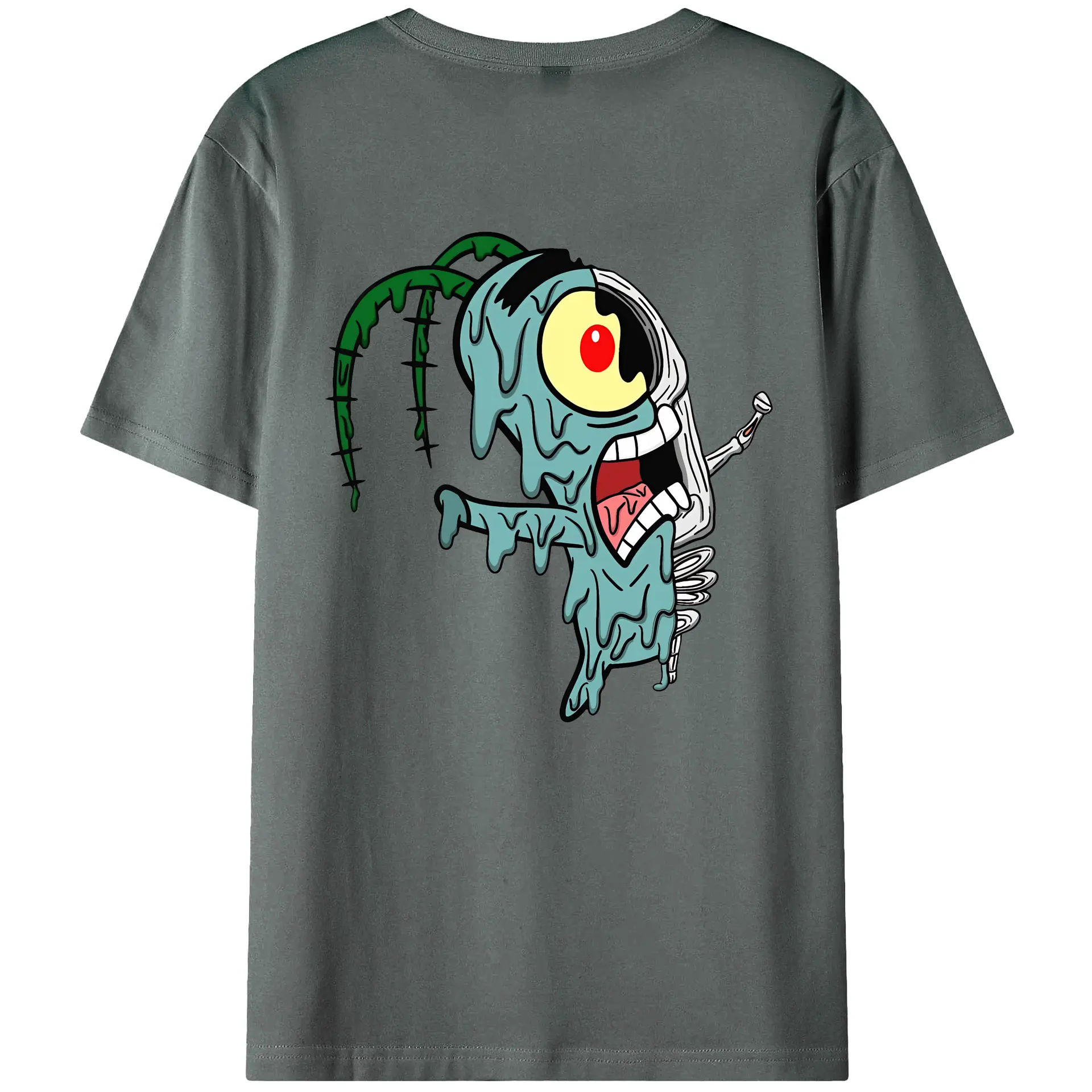スポンジボブ グッズ プランクトン - 綿100% ヴィンテージ風 半袖Tシャツ ・ 背面プリント ・ 柔らか肌触り ・ 通気性 快適 ・ スポーツ カジュアル 外出用