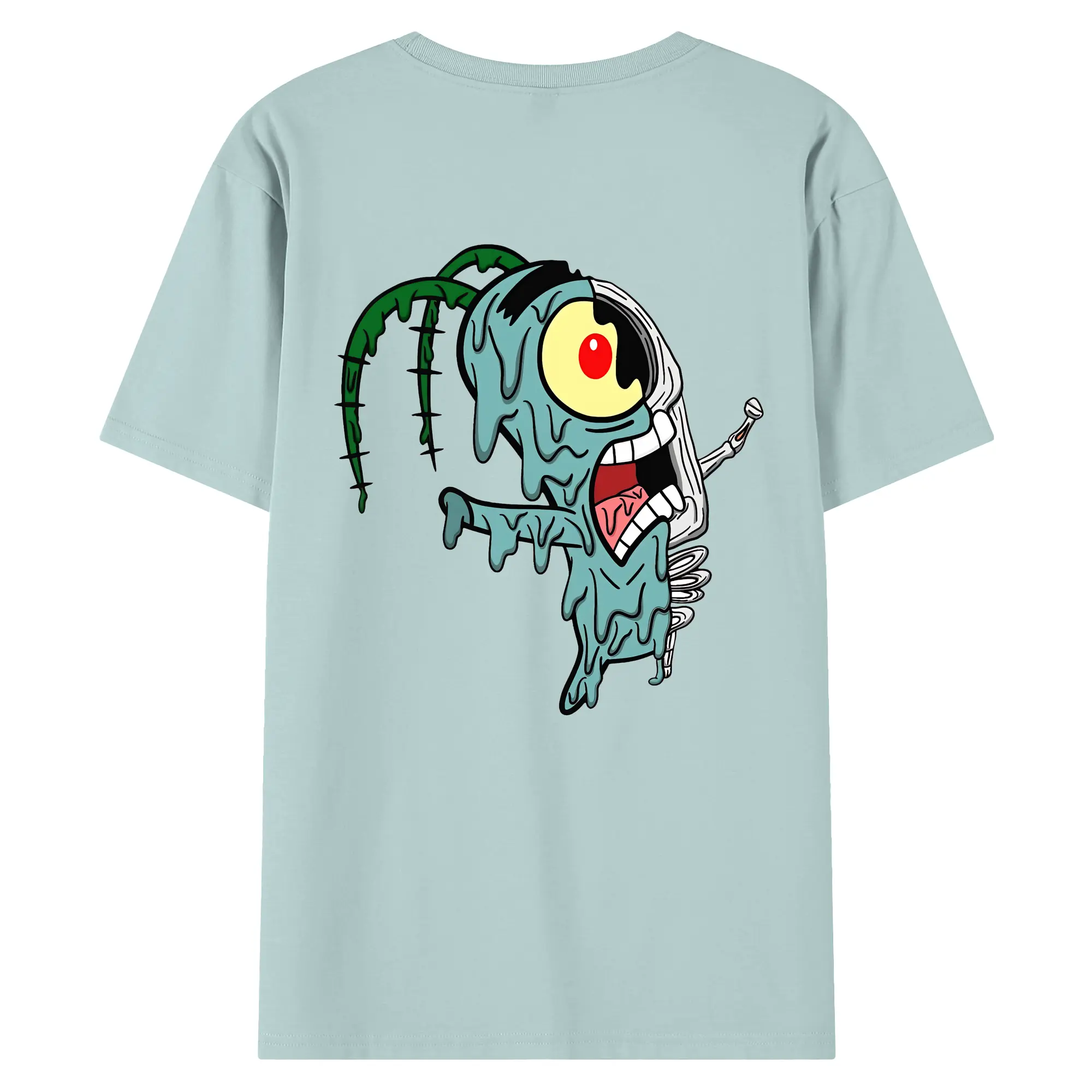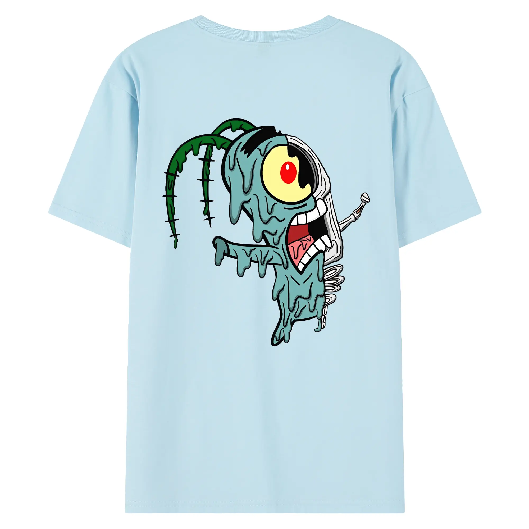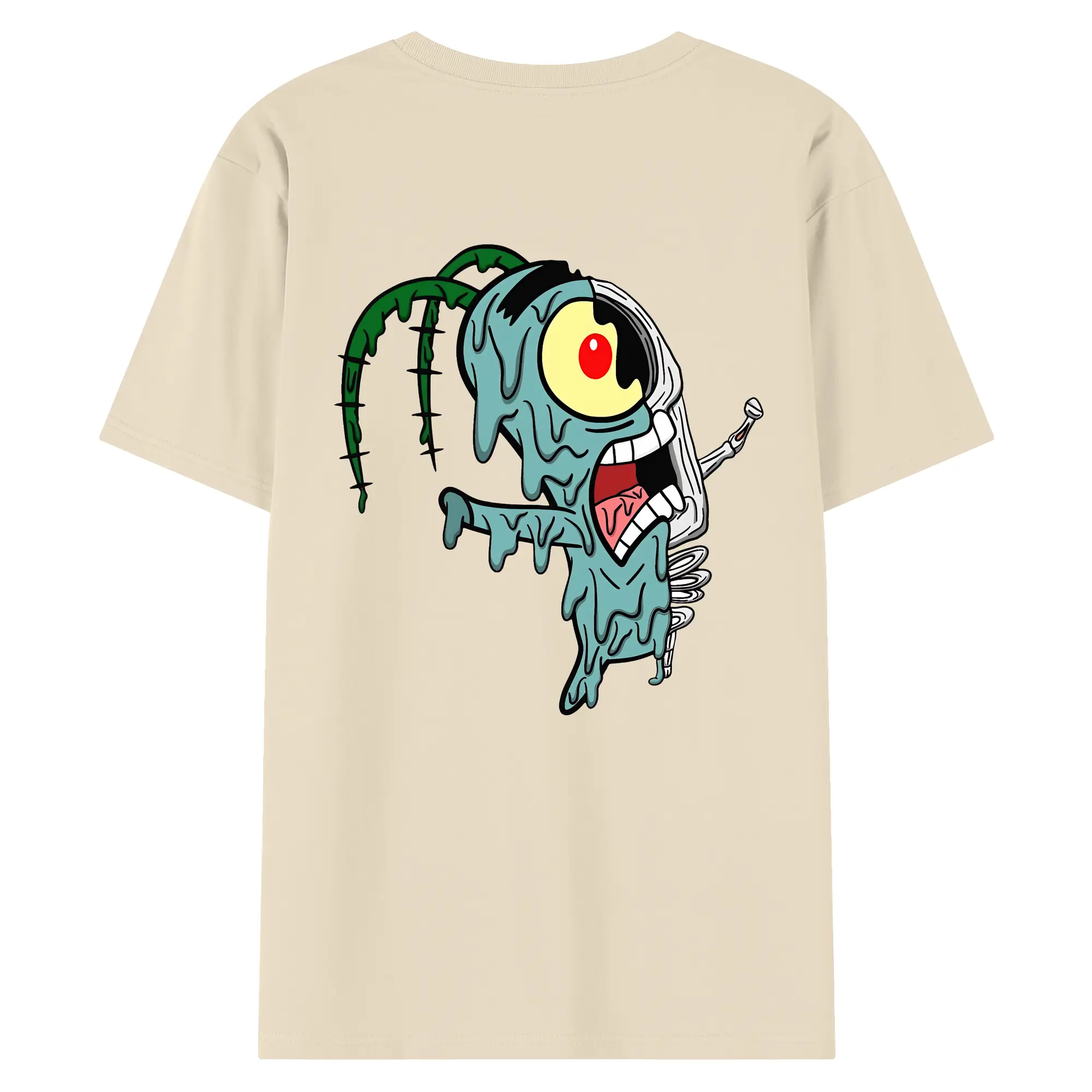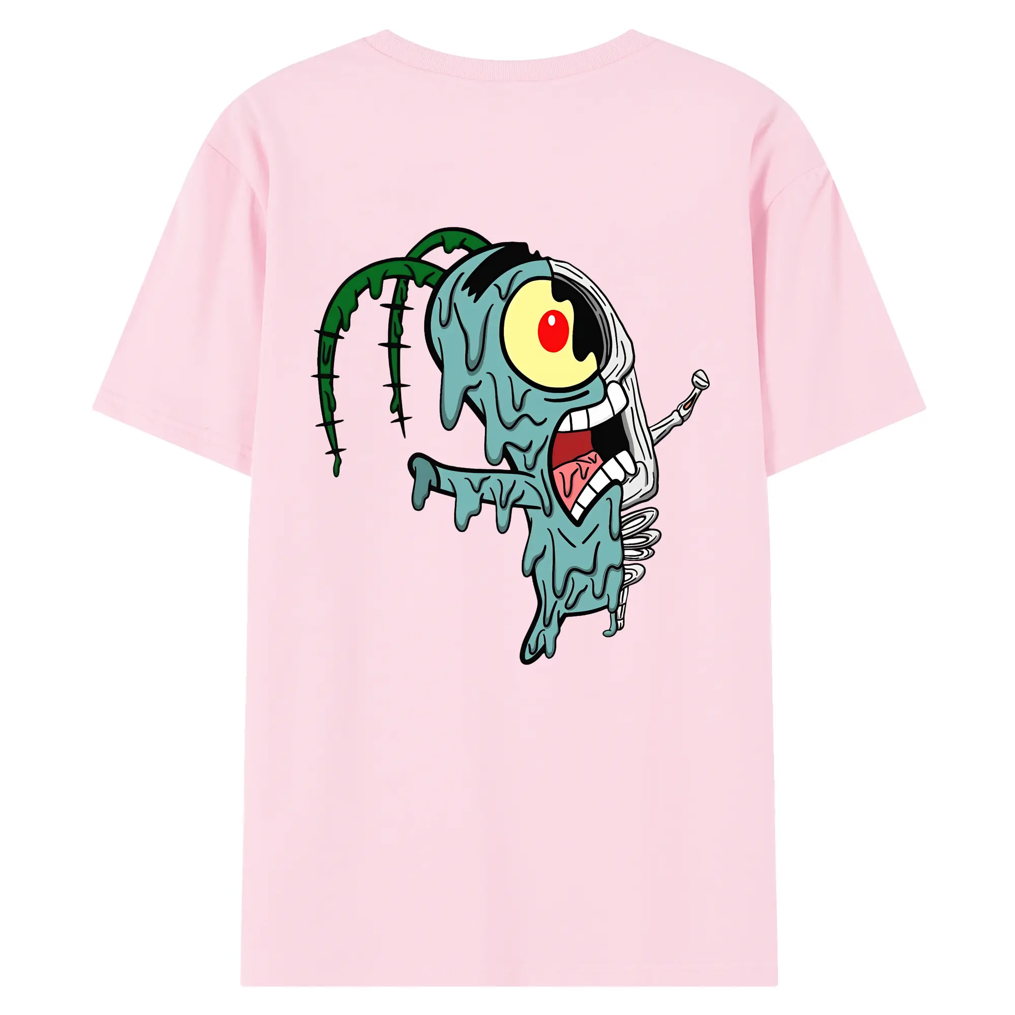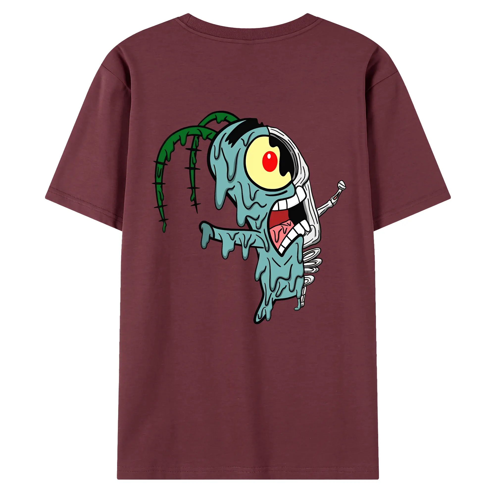 スポンジボブ グッズ プランクトン - 綿100% ヴィンテージ風 半袖Tシャツ ・ 背面プリント ・ 柔らか肌触り ・ 通気性 快適 ・ スポーツ カジュアル 外出用