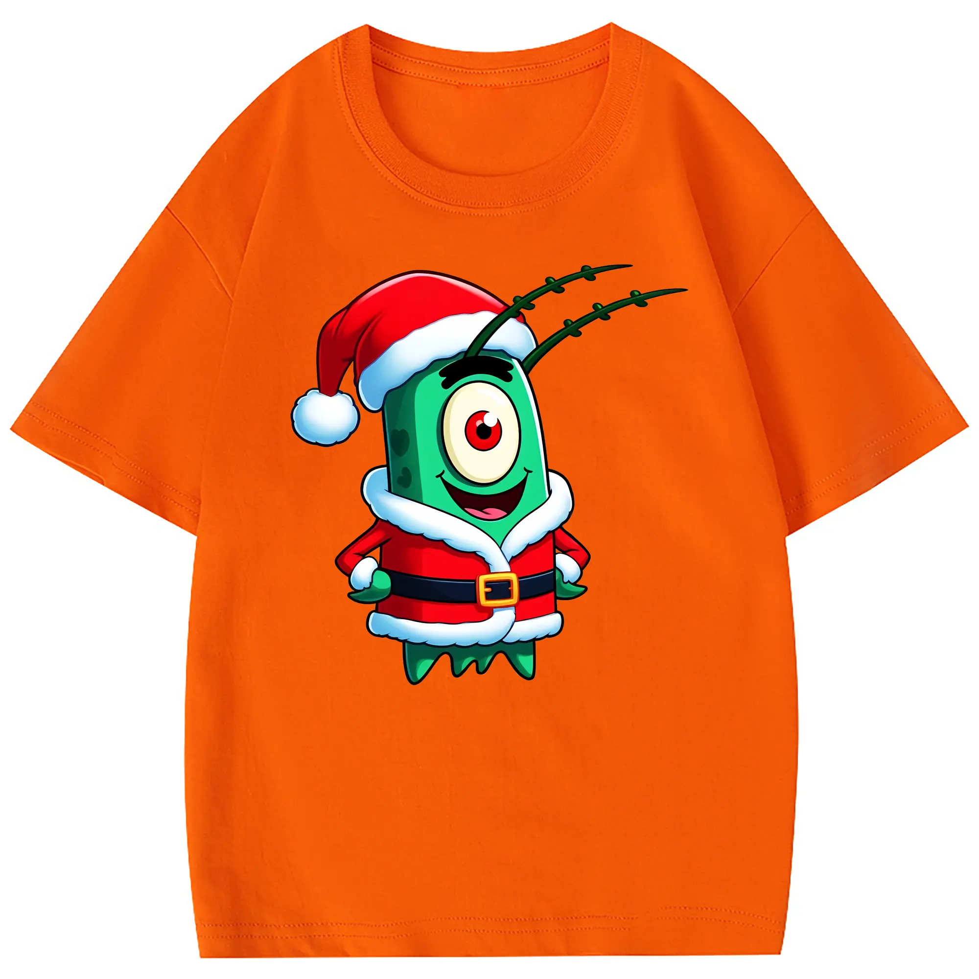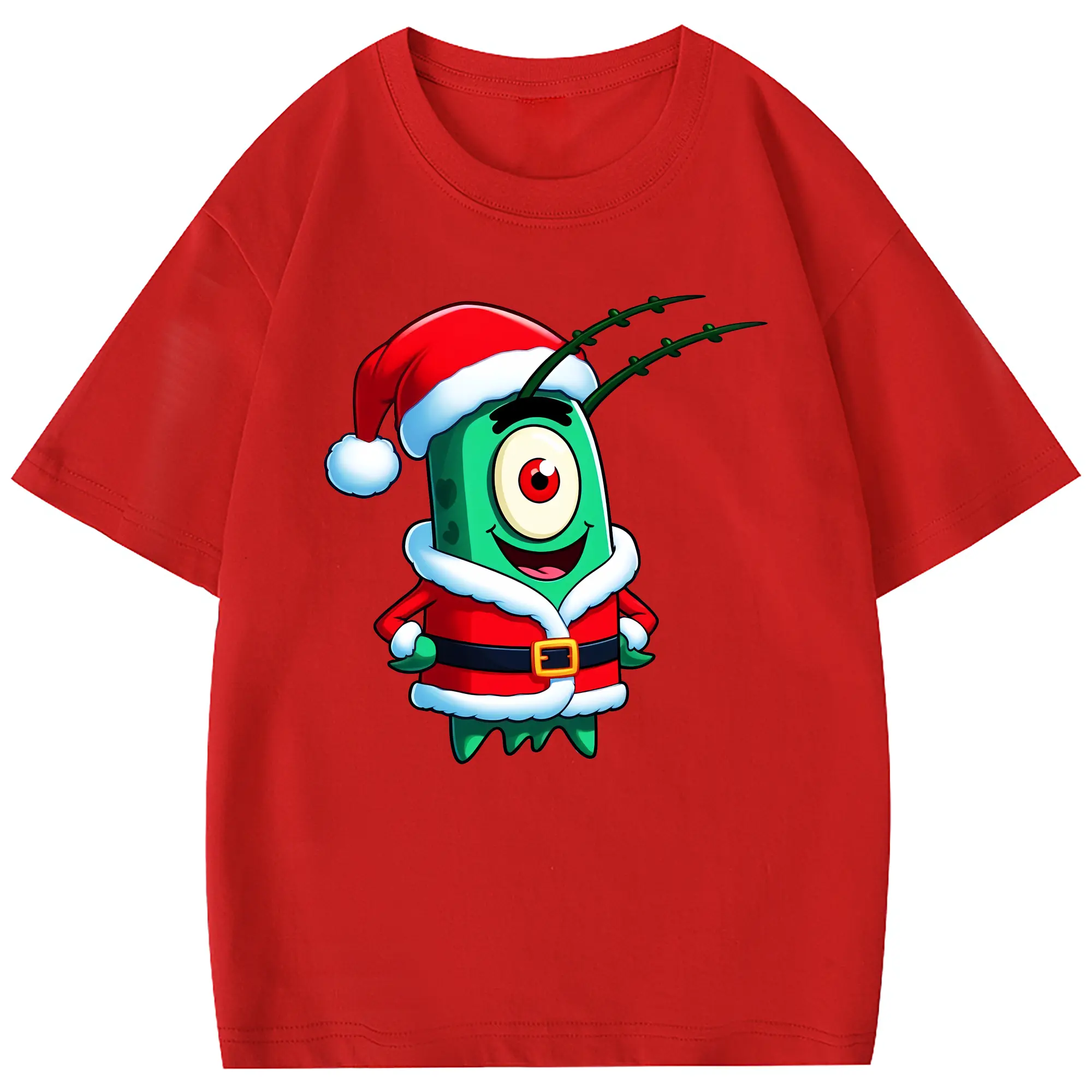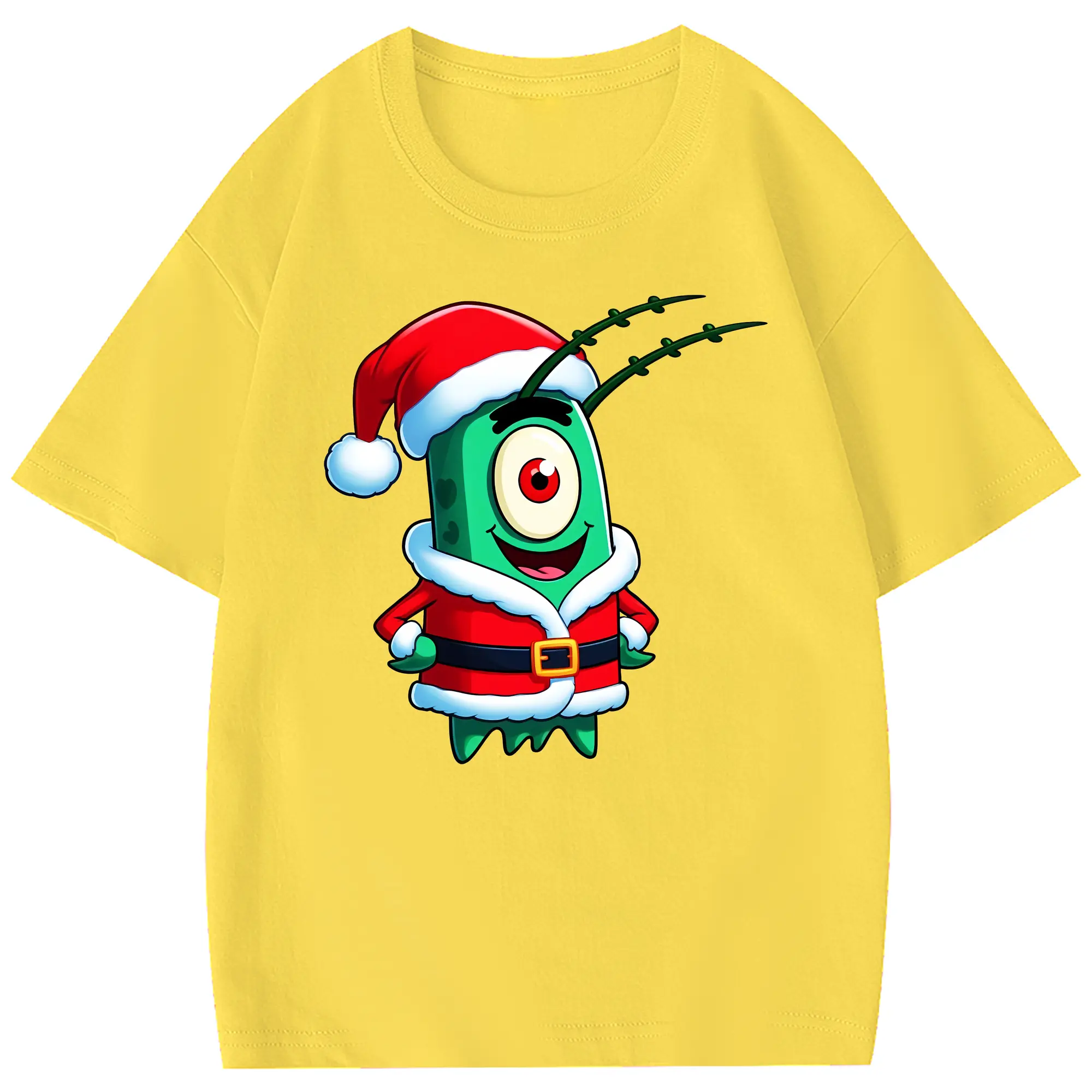 スポンジボブ グッズ プランクトン - 綿100% 半袖Tシャツ ・ フロントプリント ・ 快適 通気性 ・ 日常使い 散歩 スポーツ用