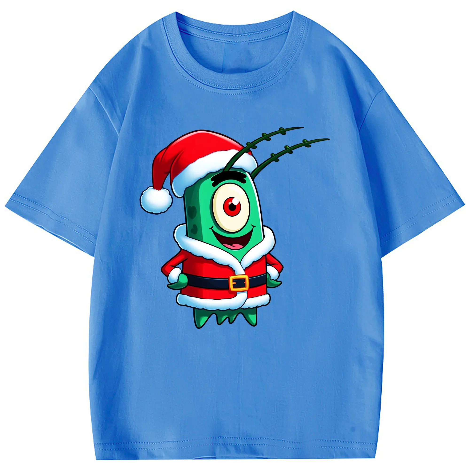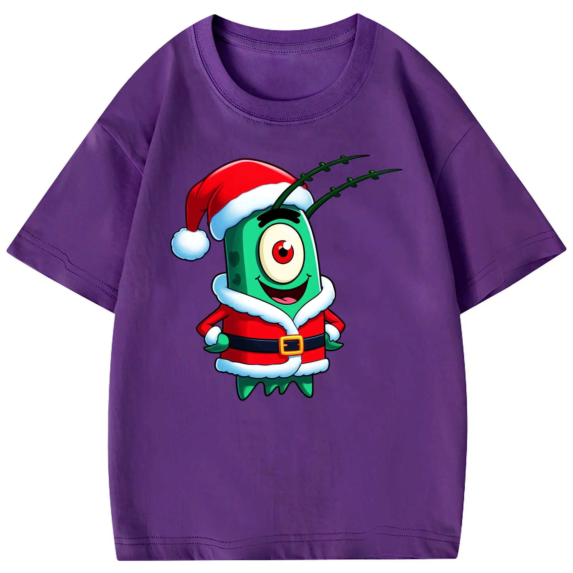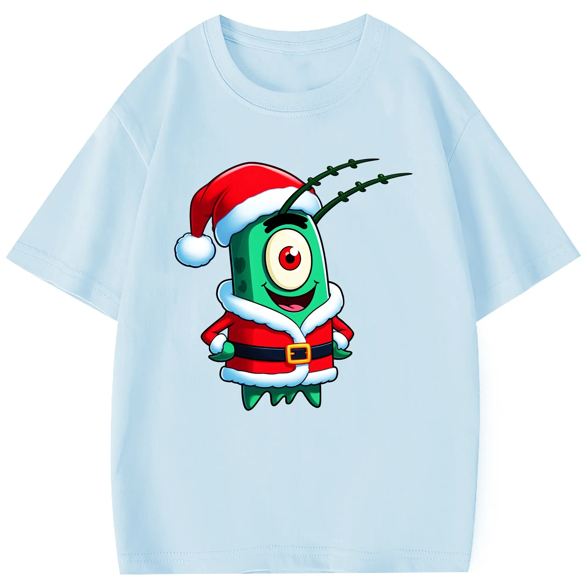 スポンジボブ グッズ プランクトン - 綿100% 半袖Tシャツ ・ フロントプリント ・ 快適 通気性 ・ 日常使い 散歩 スポーツ用