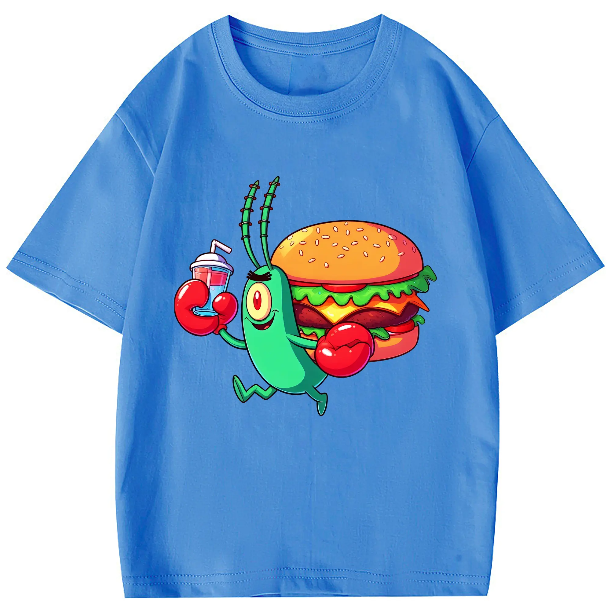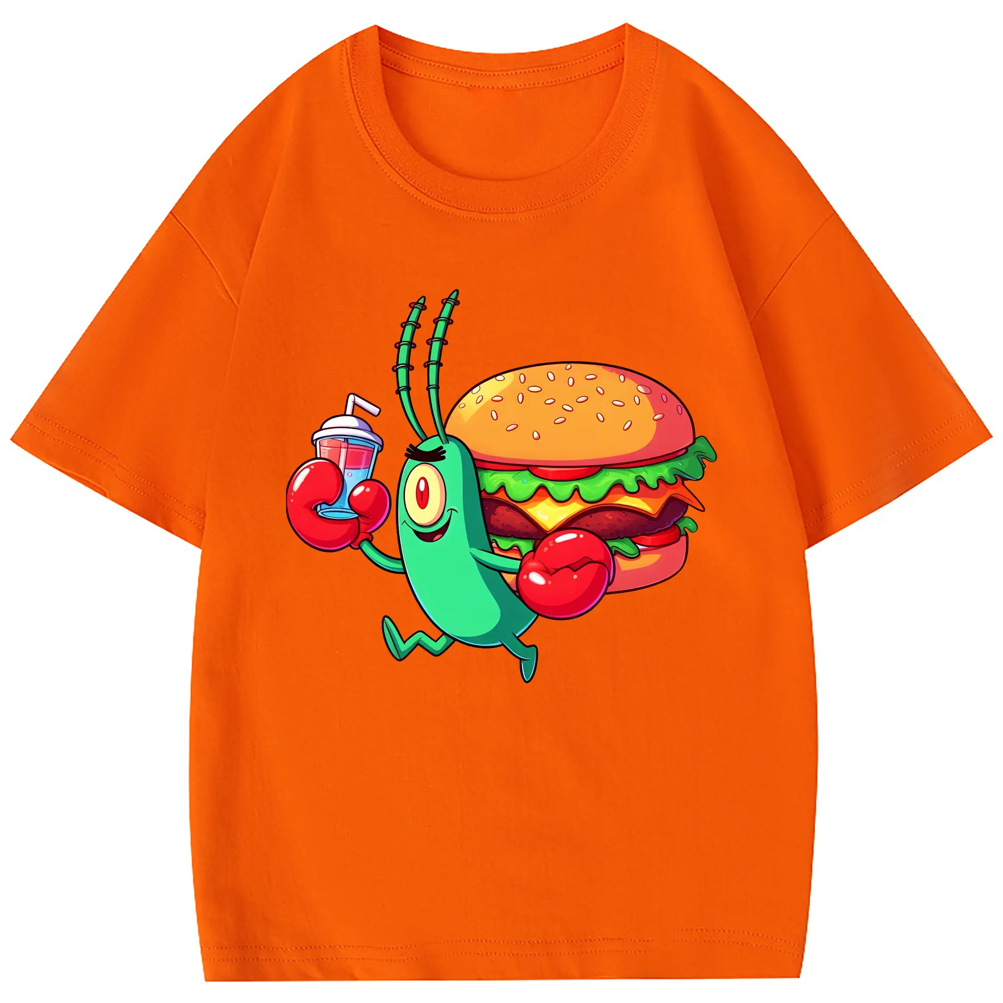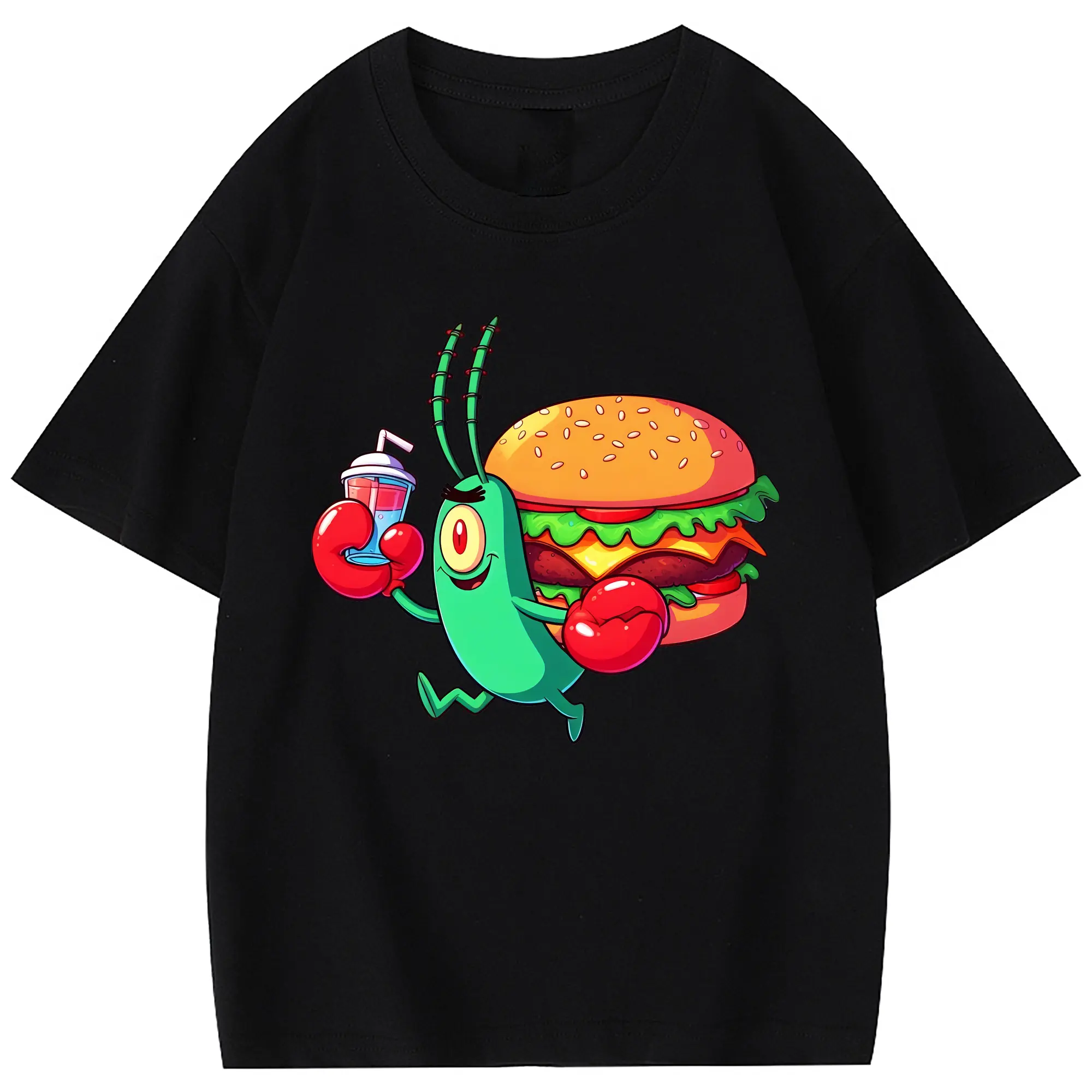 スポンジボブ グッズ プランクトン - 綿100% 半袖Tシャツ ・ フロントプリント ・ 快適 通気性 ・ 日常使い 散歩 スポーツ用