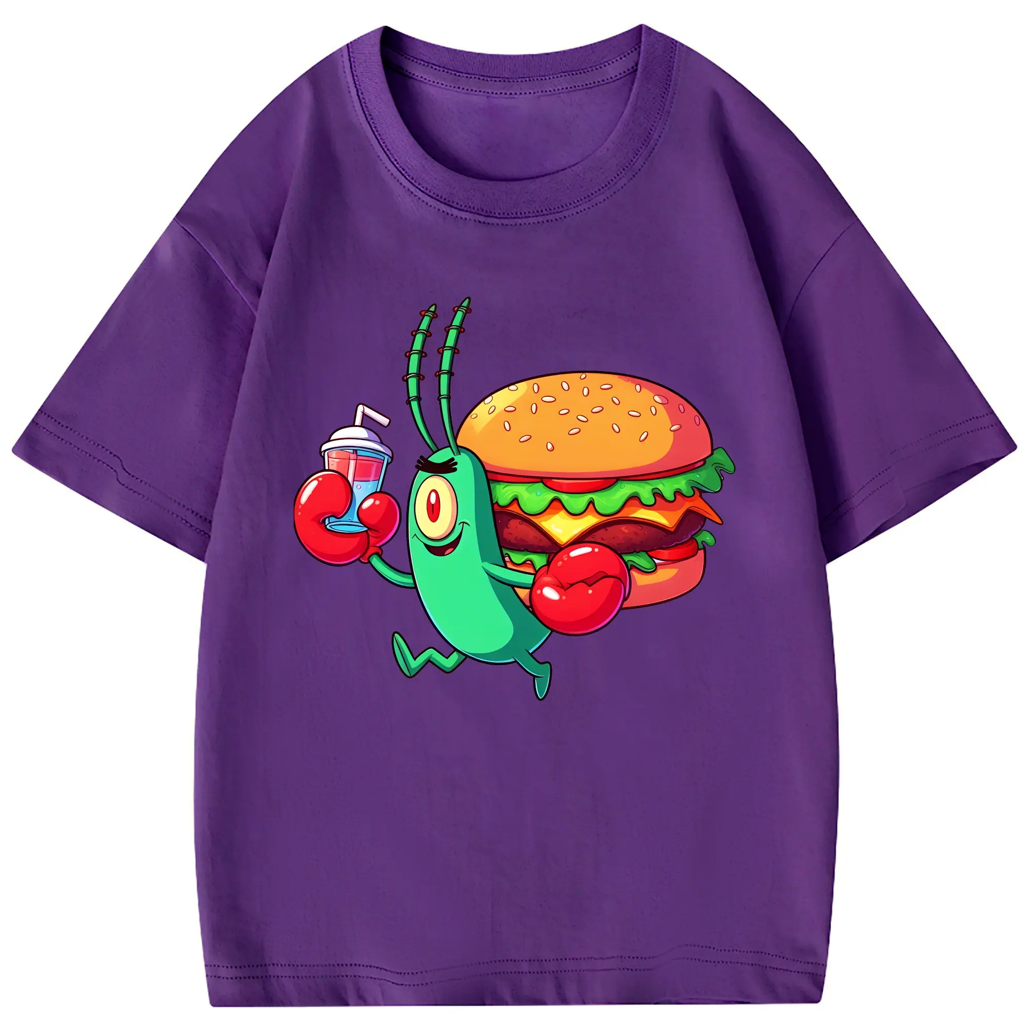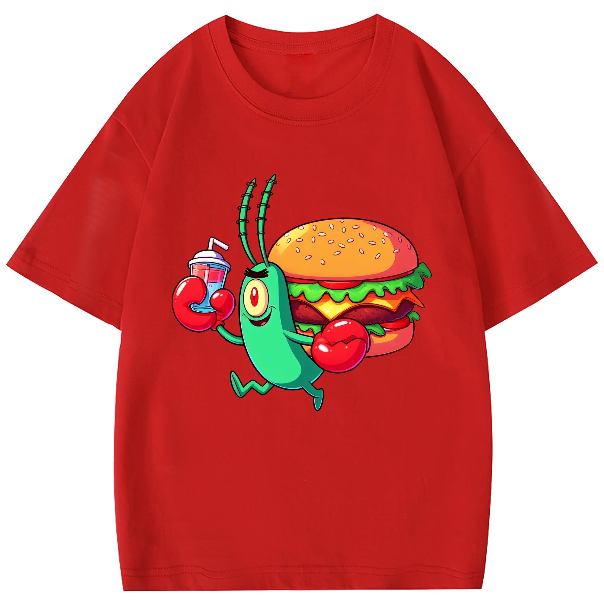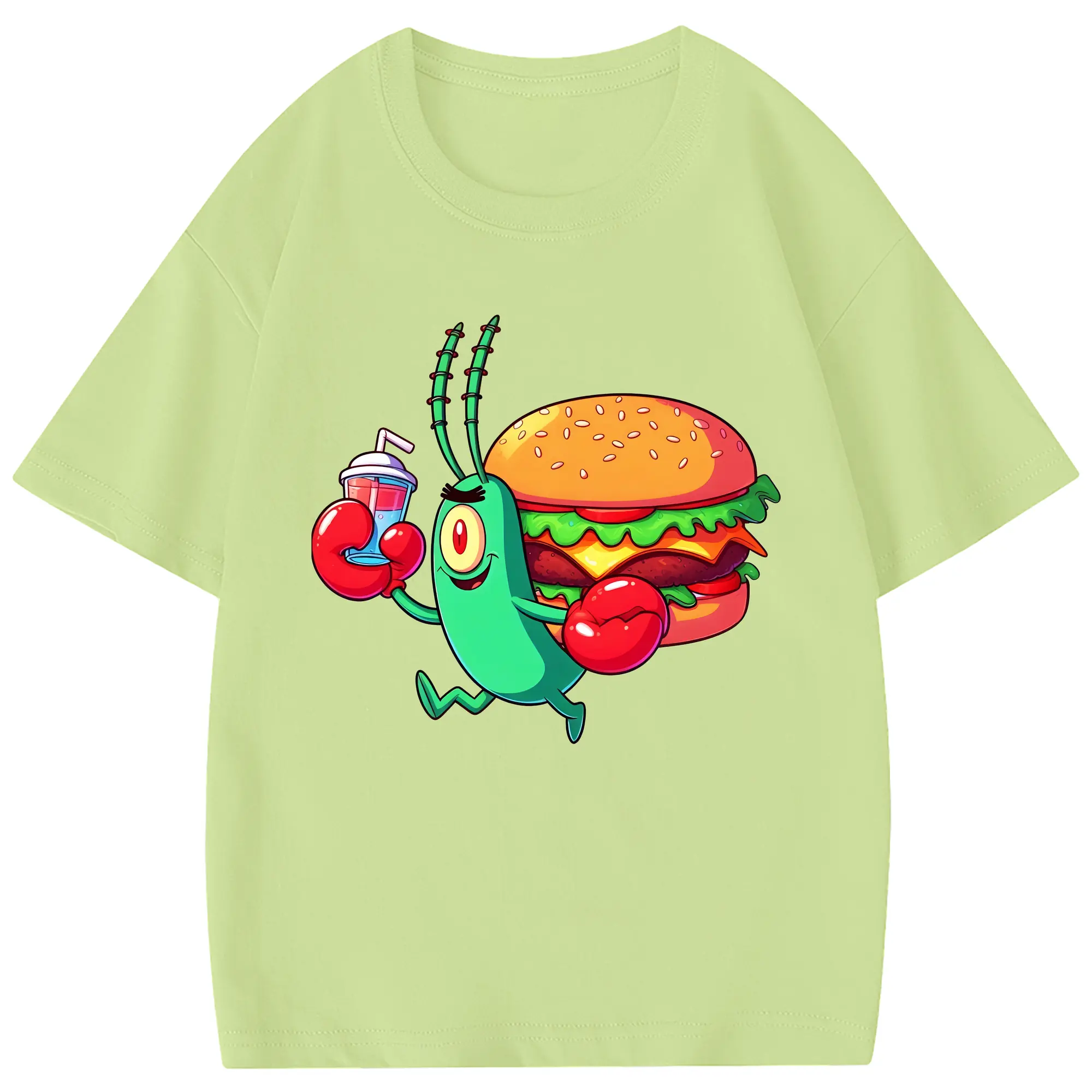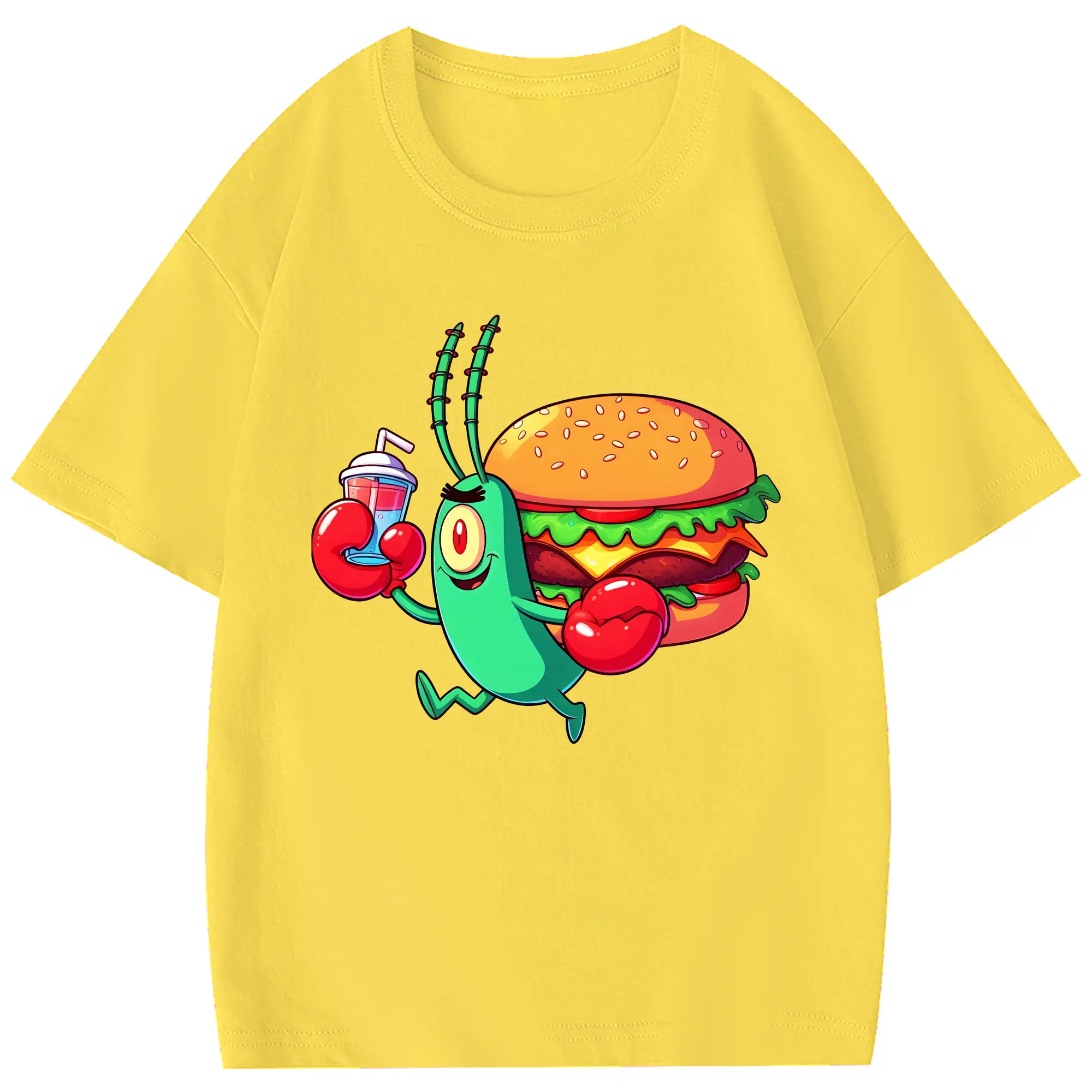 スポンジボブ グッズ プランクトン - 綿100% 半袖Tシャツ ・ フロントプリント ・ 快適 通気性 ・ 日常使い 散歩 スポーツ用