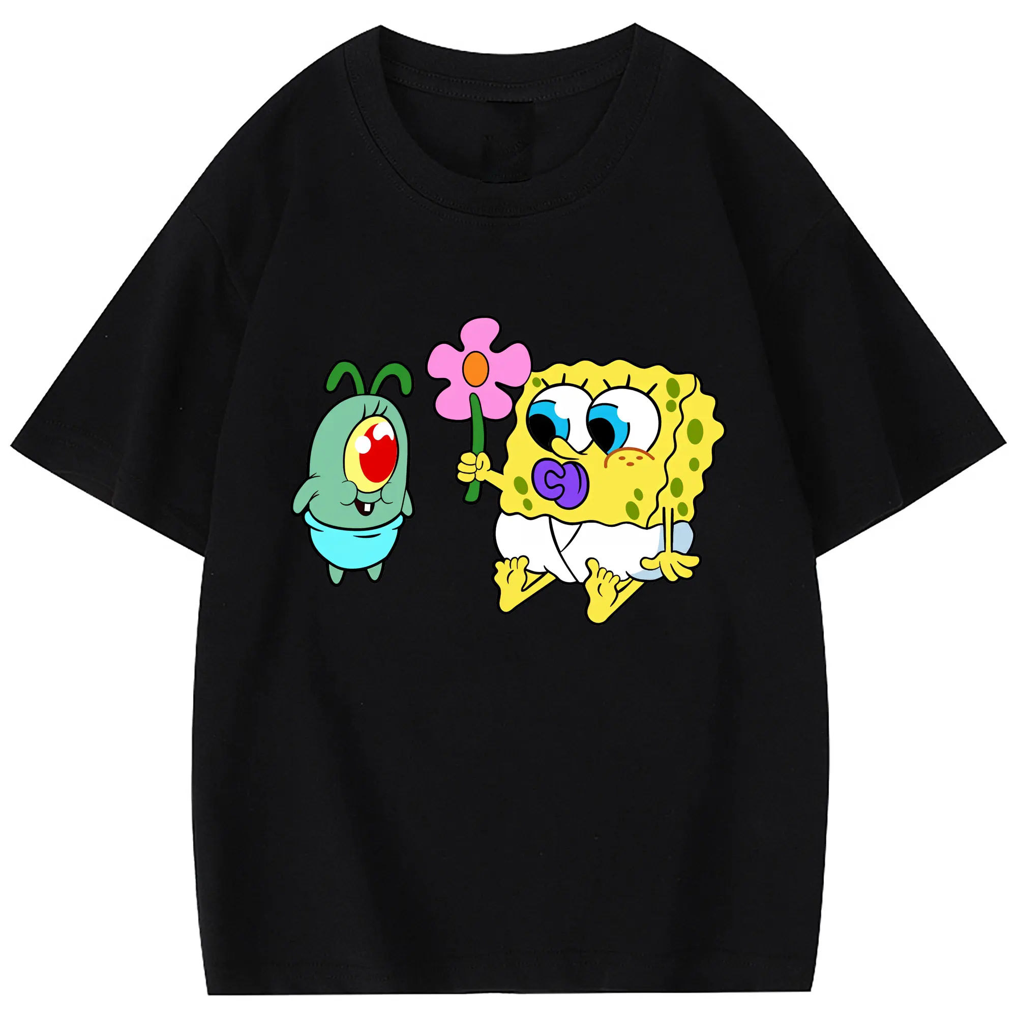 スポンジボブ グッズ プランクトン - 綿100% 半袖Tシャツ ・ バックプリント ・ 快適 通気性 ・ 日常使い 散歩 スポーツ用