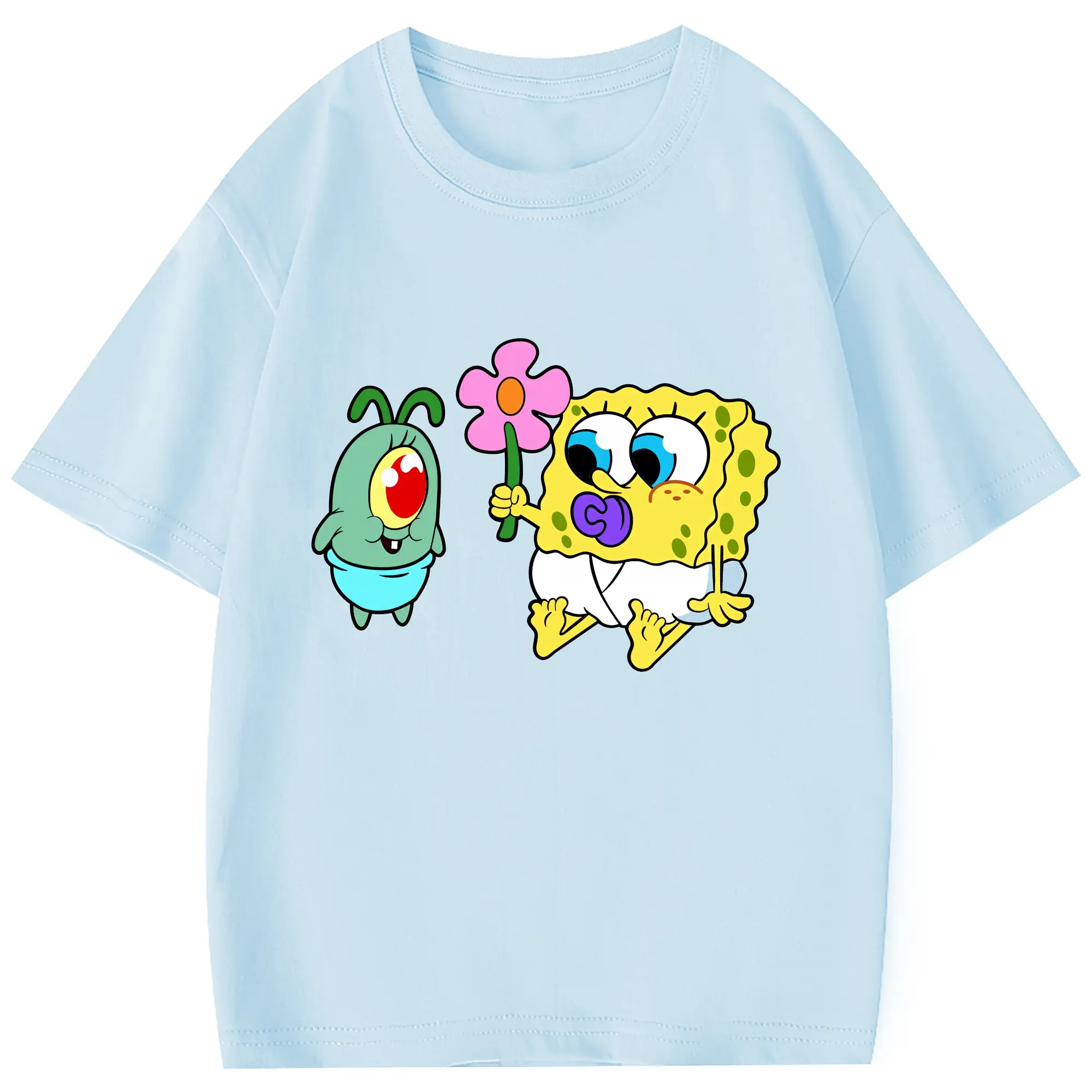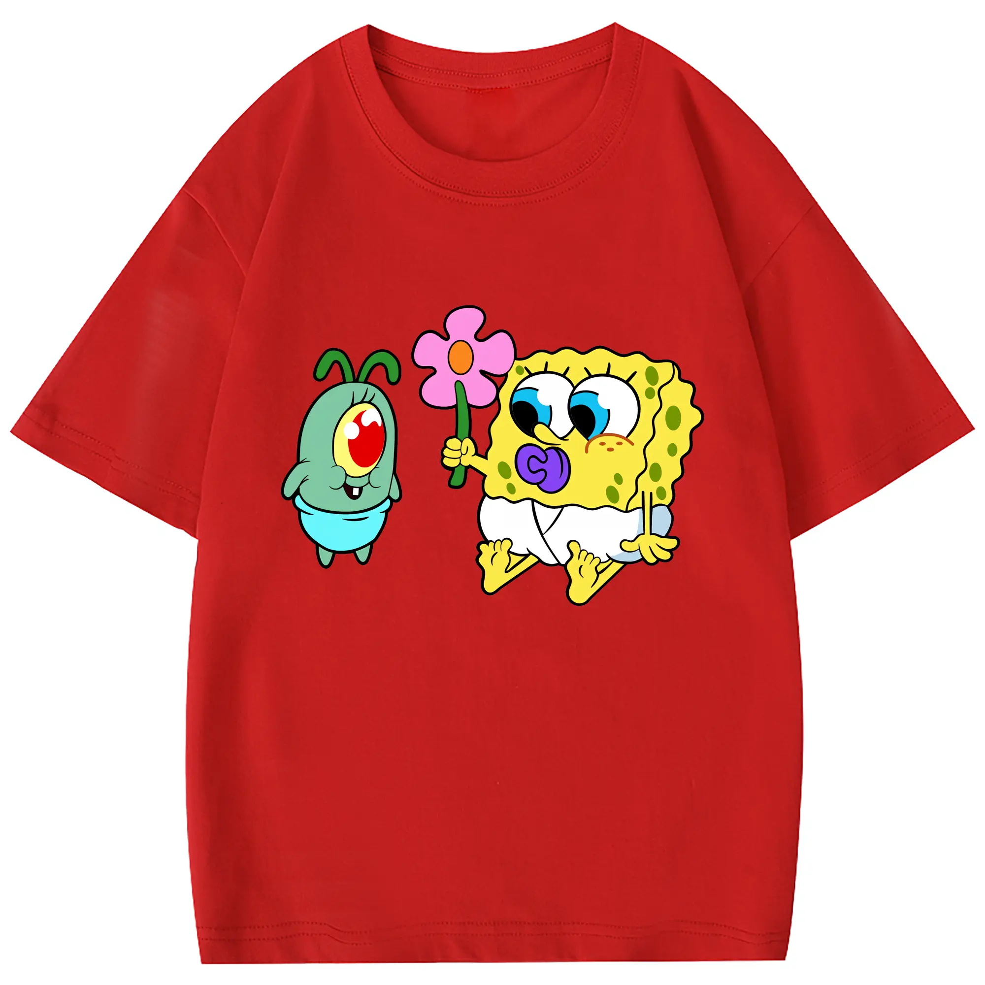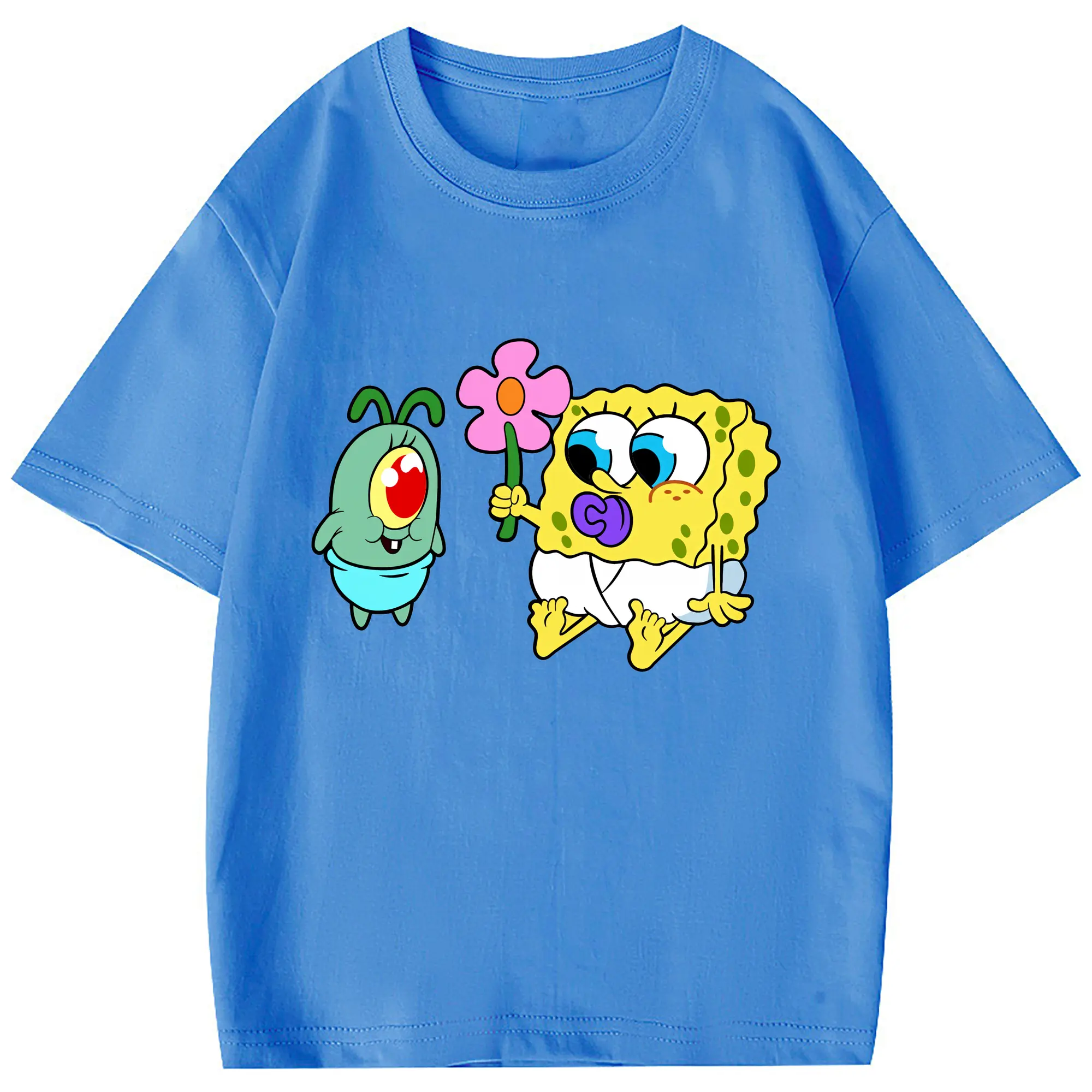 スポンジボブ グッズ プランクトン - 綿100% 半袖Tシャツ ・ フロントプリント ・ 快適 通気性 ・ 日常使い 散歩 スポーツ用