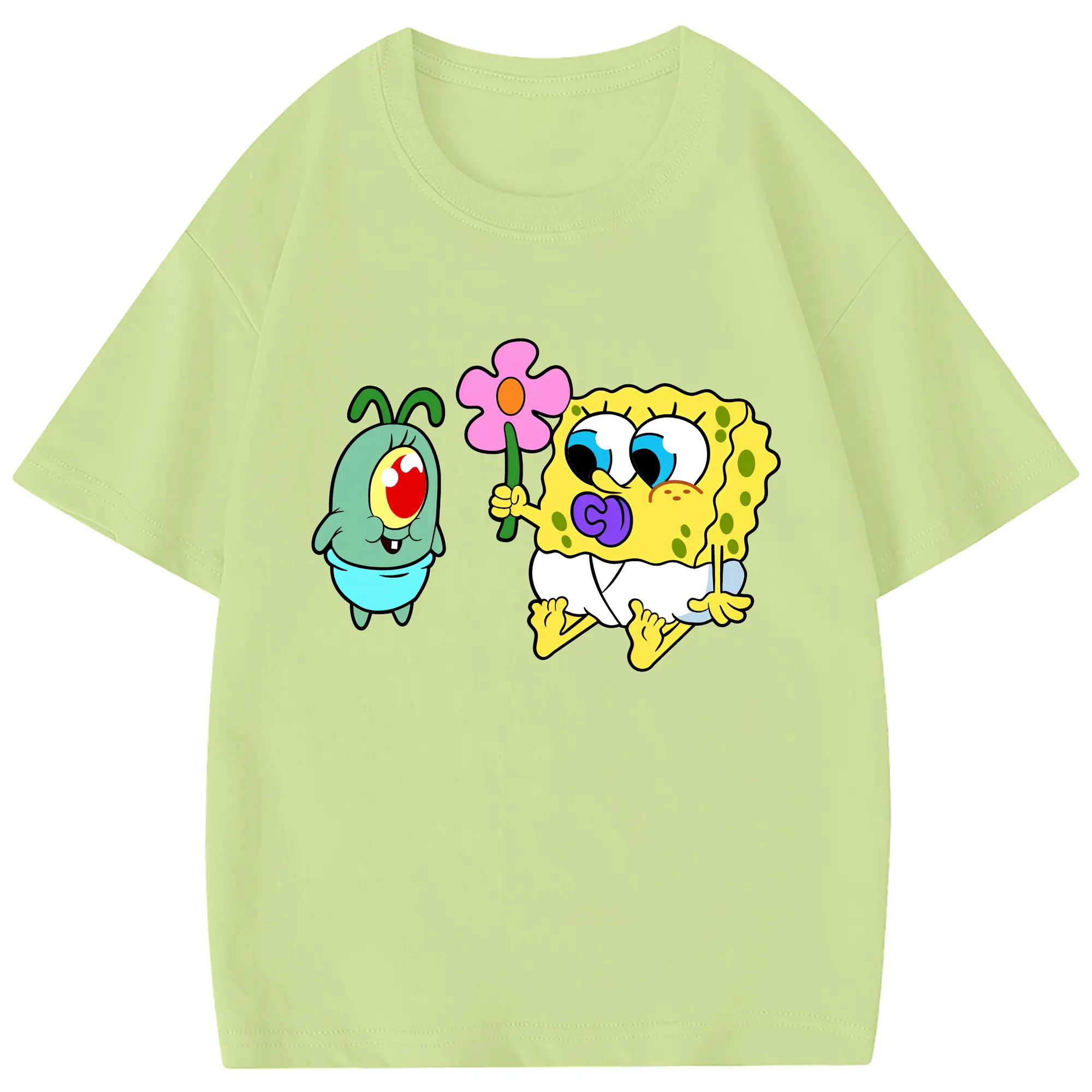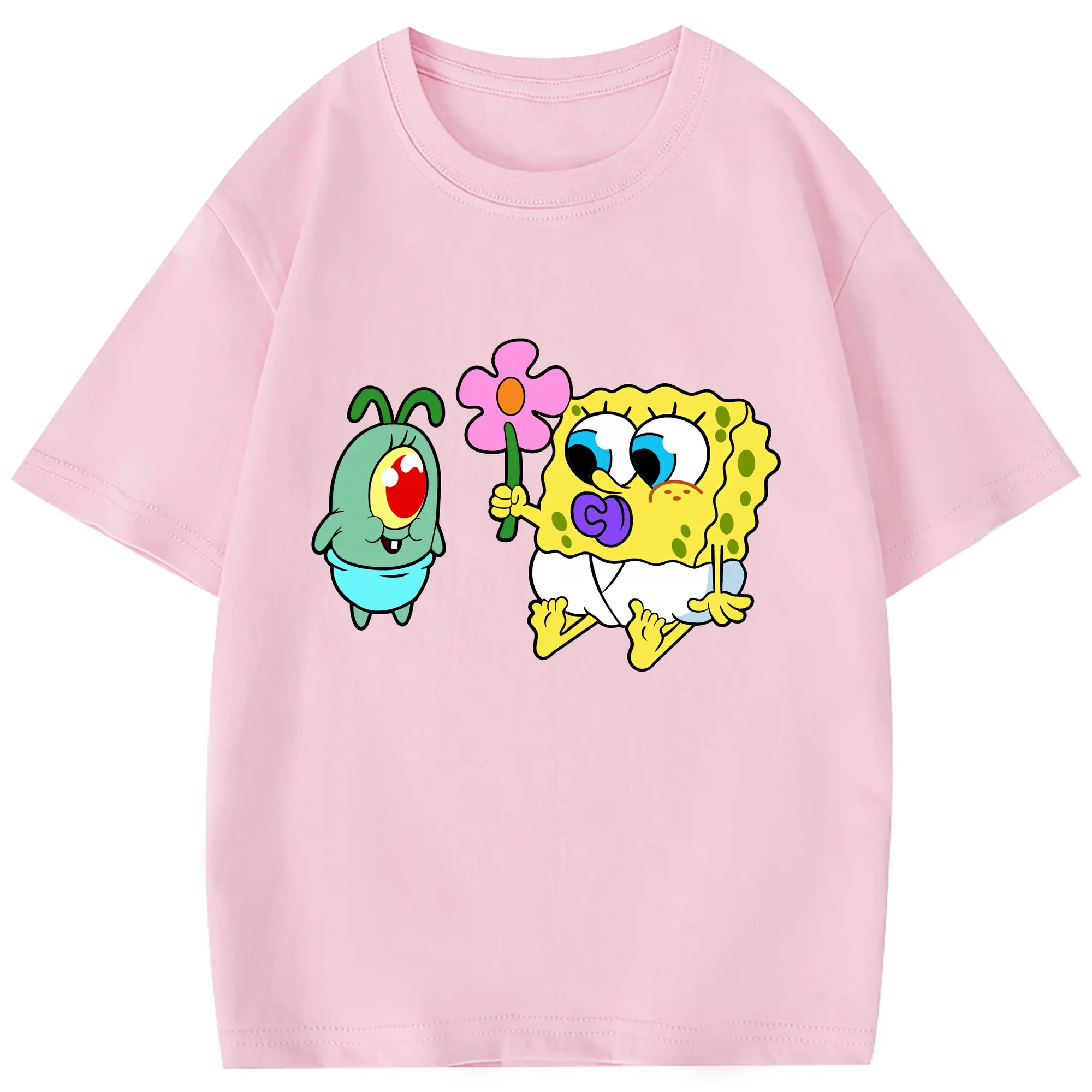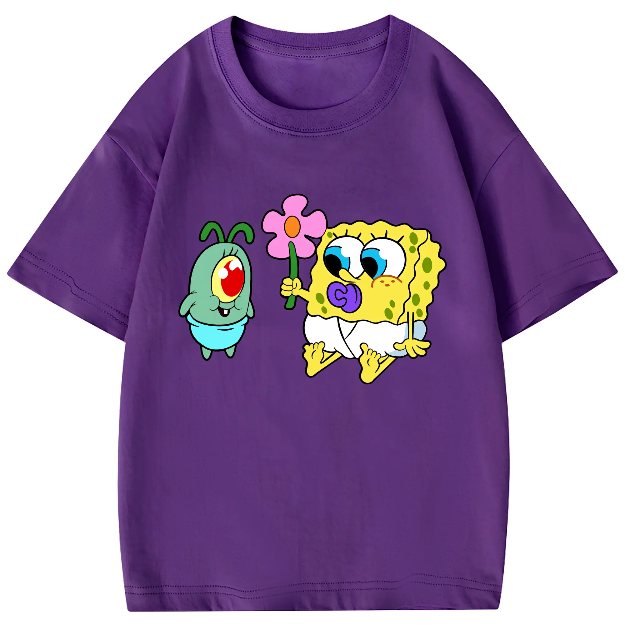 スポンジボブ グッズ パトリック・スター - 綿100% キッズTシャツ ・ フロントプリント ・ 快適 通気性 ・ スポーツ カジュアル 散歩用
